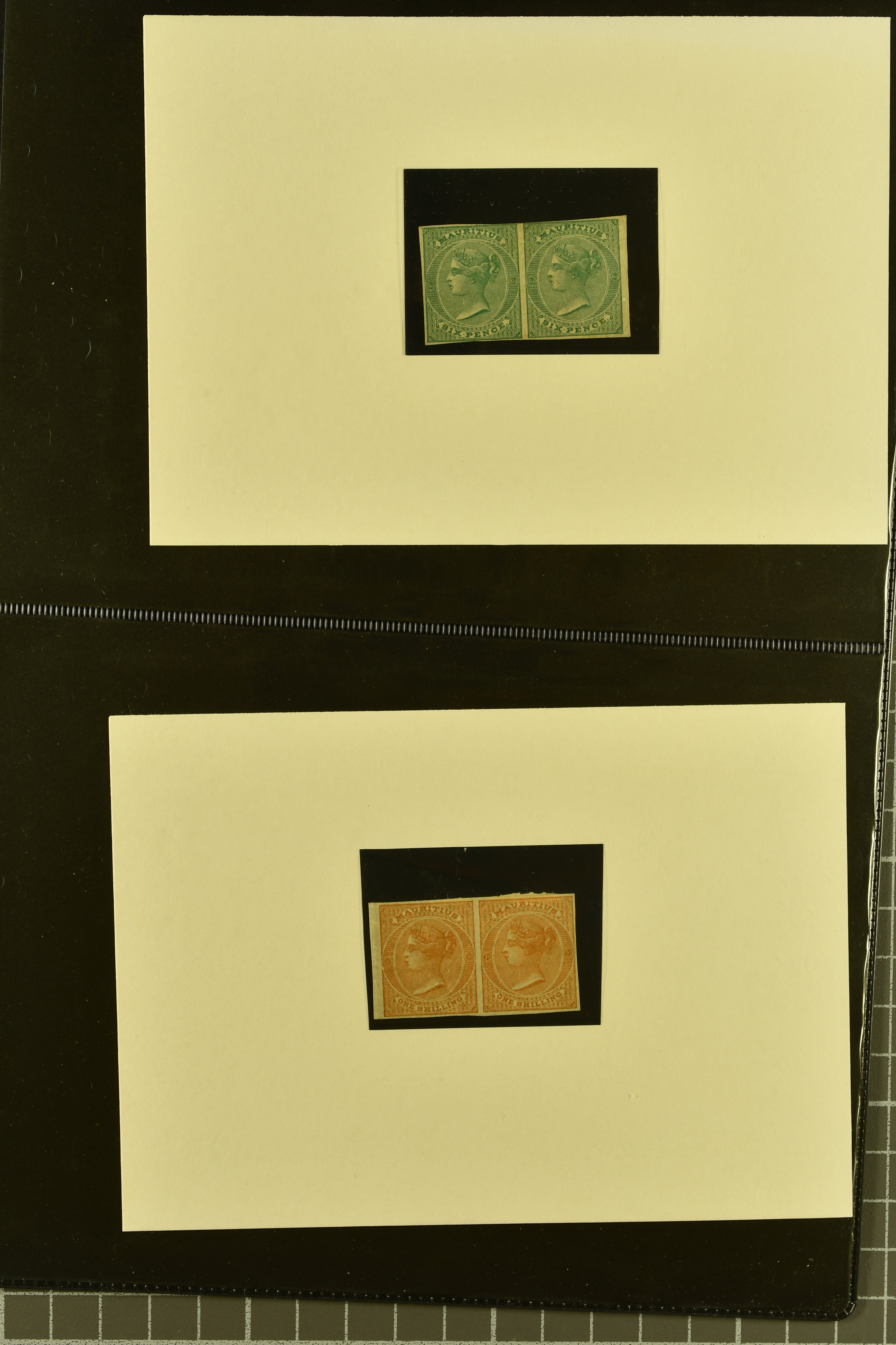 cds in black; 1880 Reunion to Port Louis with crisp 'ship letter' handstamp; also 6 entires / covers outgoing to France and Great Britain and two imperforate Imprimatur Pairs of 1860/63 Typographed by De La Rue 6 d. green and 1 s. buff (Image 1)