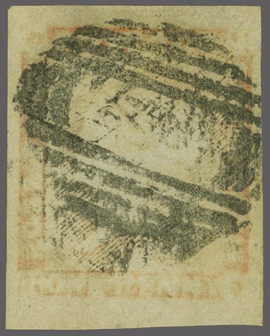 1859: 1 d. red, latest impression in a pale shade, large margins all round, slightest thin spot at top, cancelled by void obliterator in black Gi = £ 950 (Image 1)