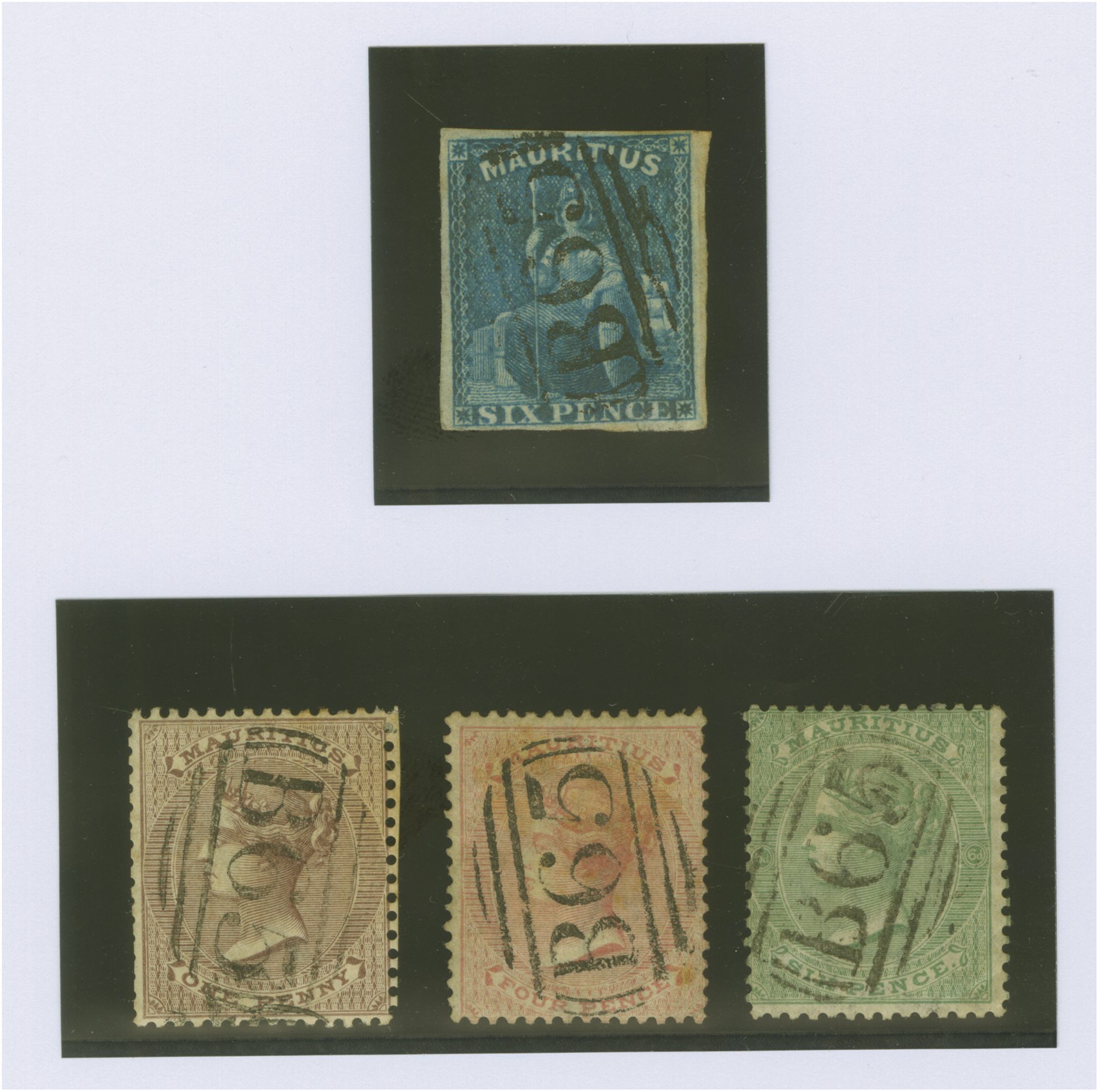 d. rose and 6 d. yellow-green, all with superb strikes of the "B65" Rodrigues obliterator in black. A very scarce group (Image 1)