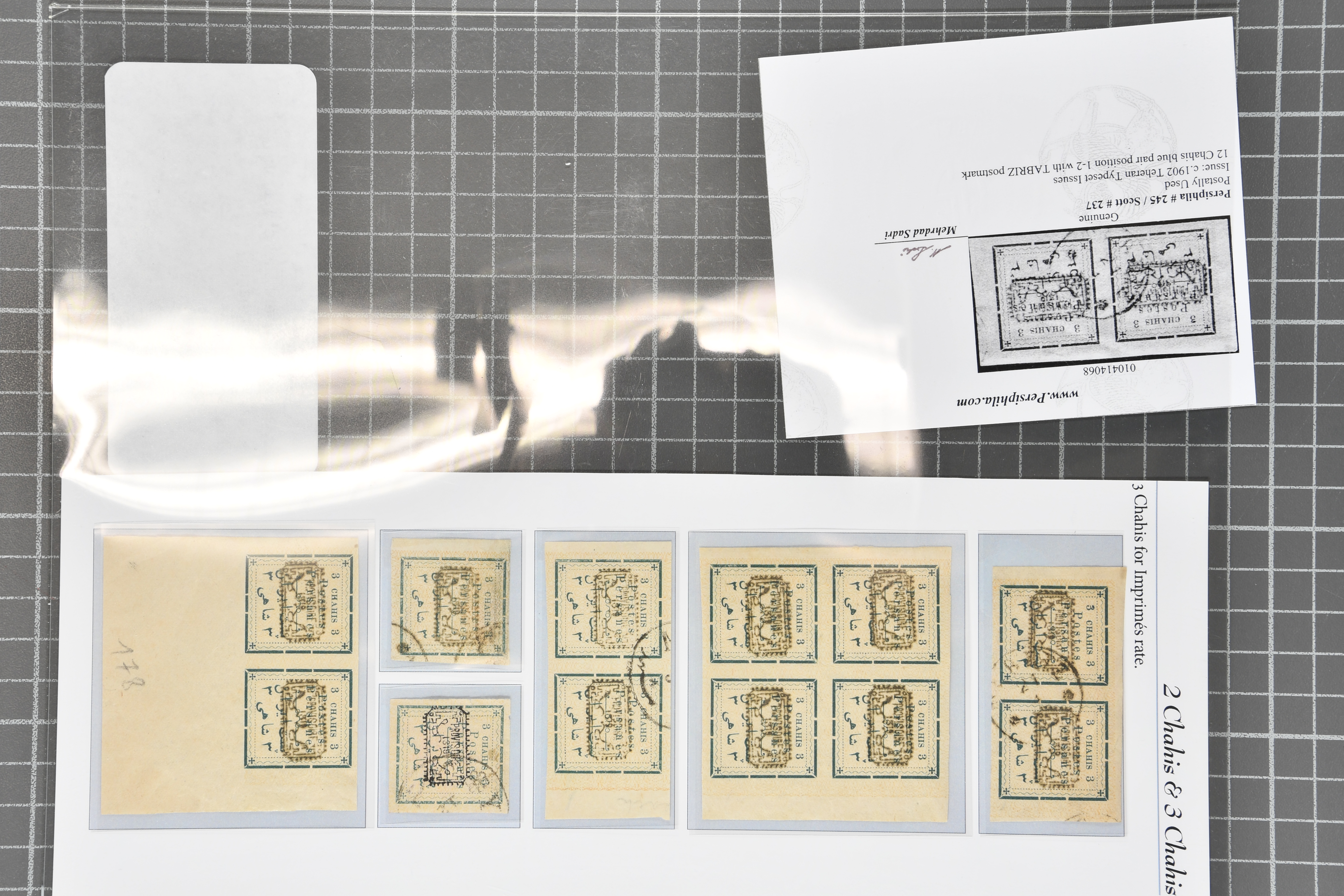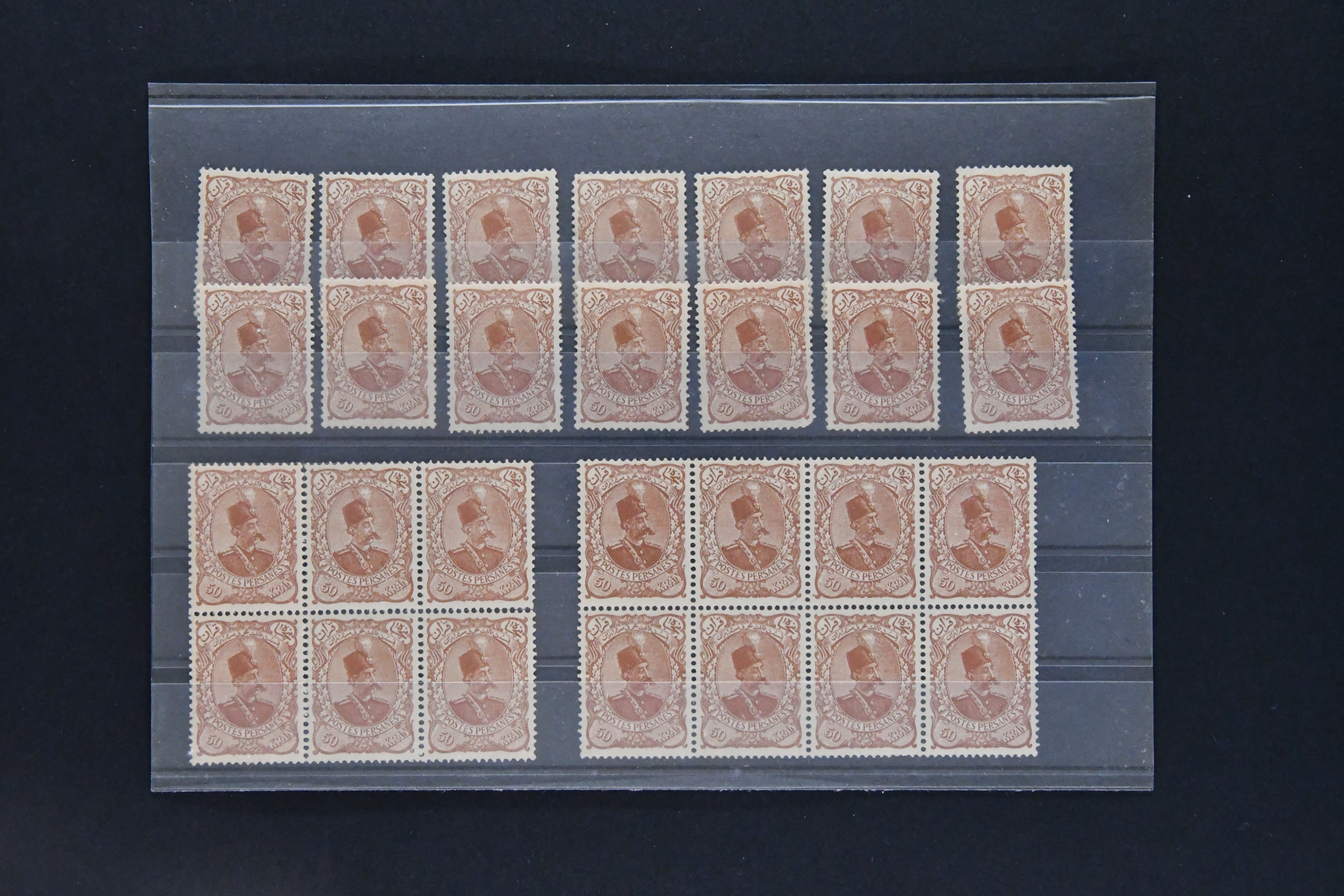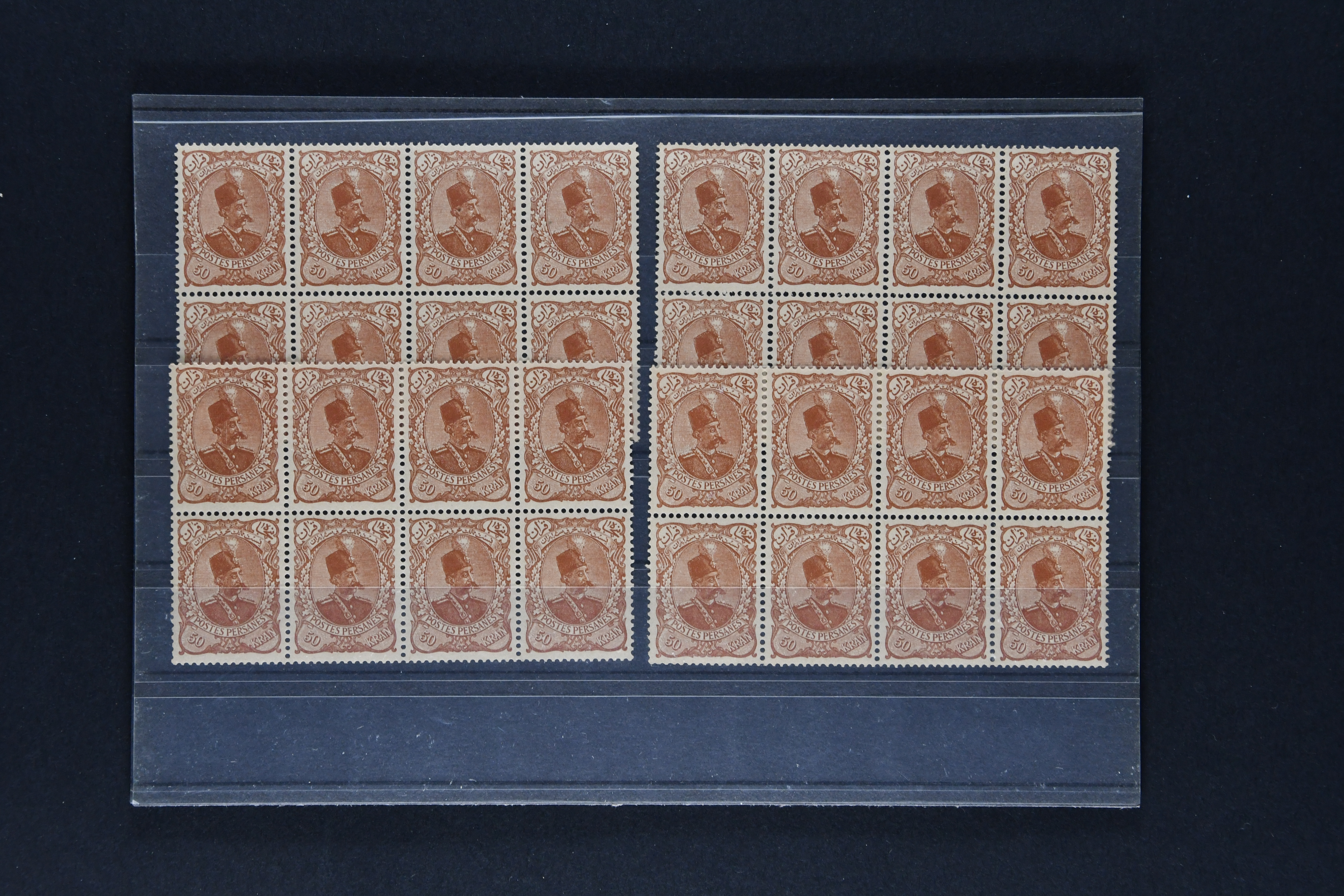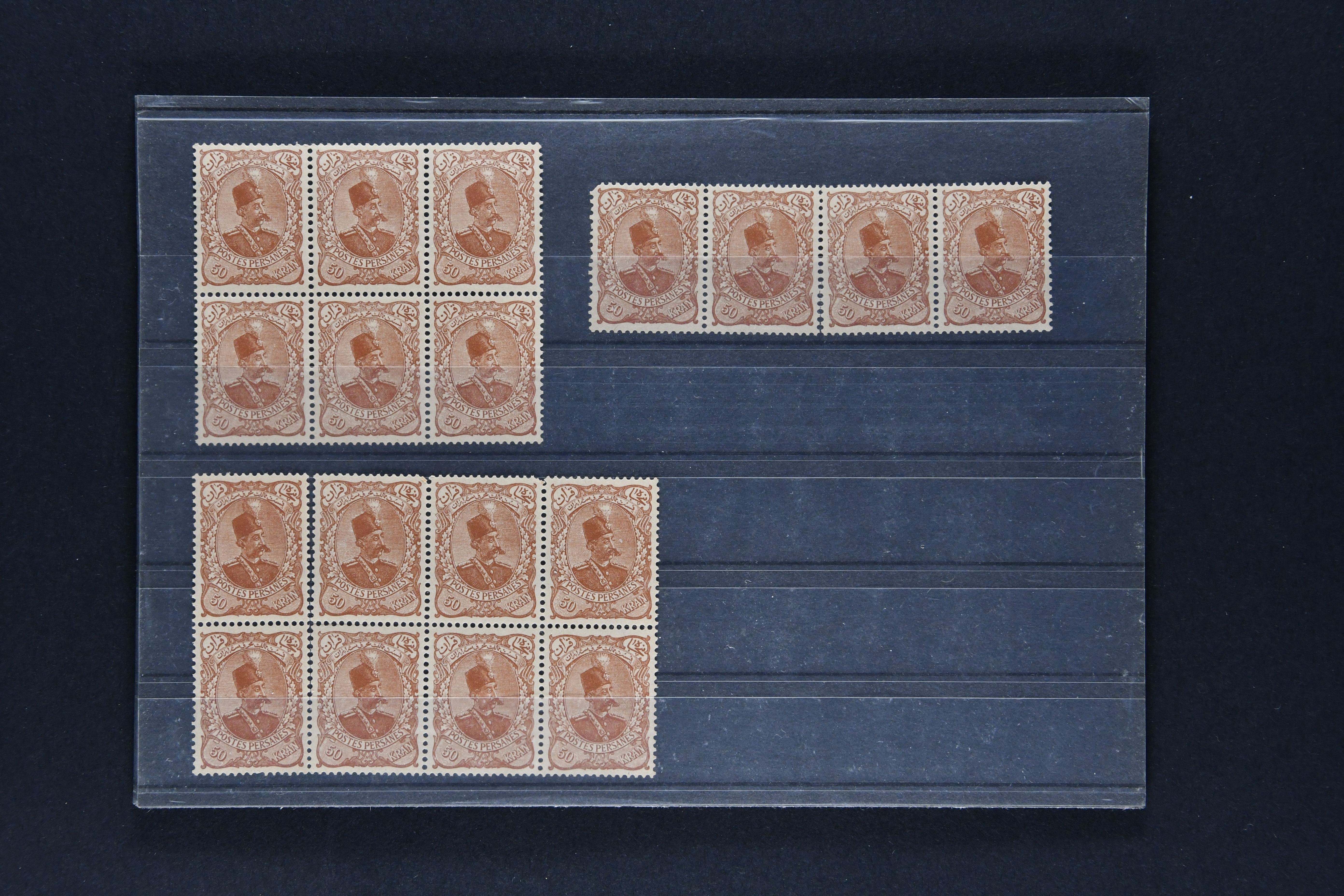 1902 (March): Tehran Typeset provisional 2 ch. brown & buff imperforate, overprinted framed 'Provisioire' (Type I) in black, the reconstructed pane of 12 subjects (2 x 6), showing two unused blocks of four,