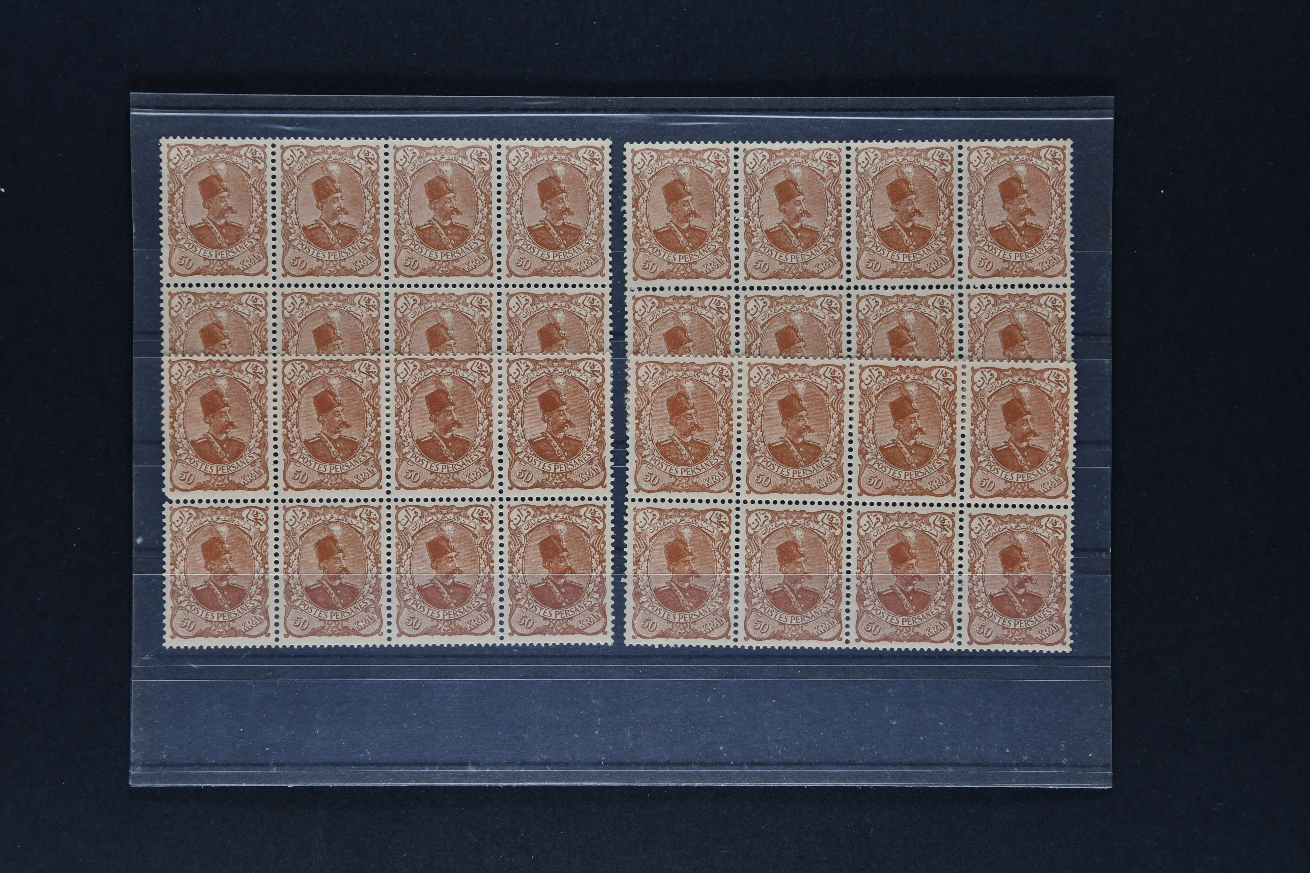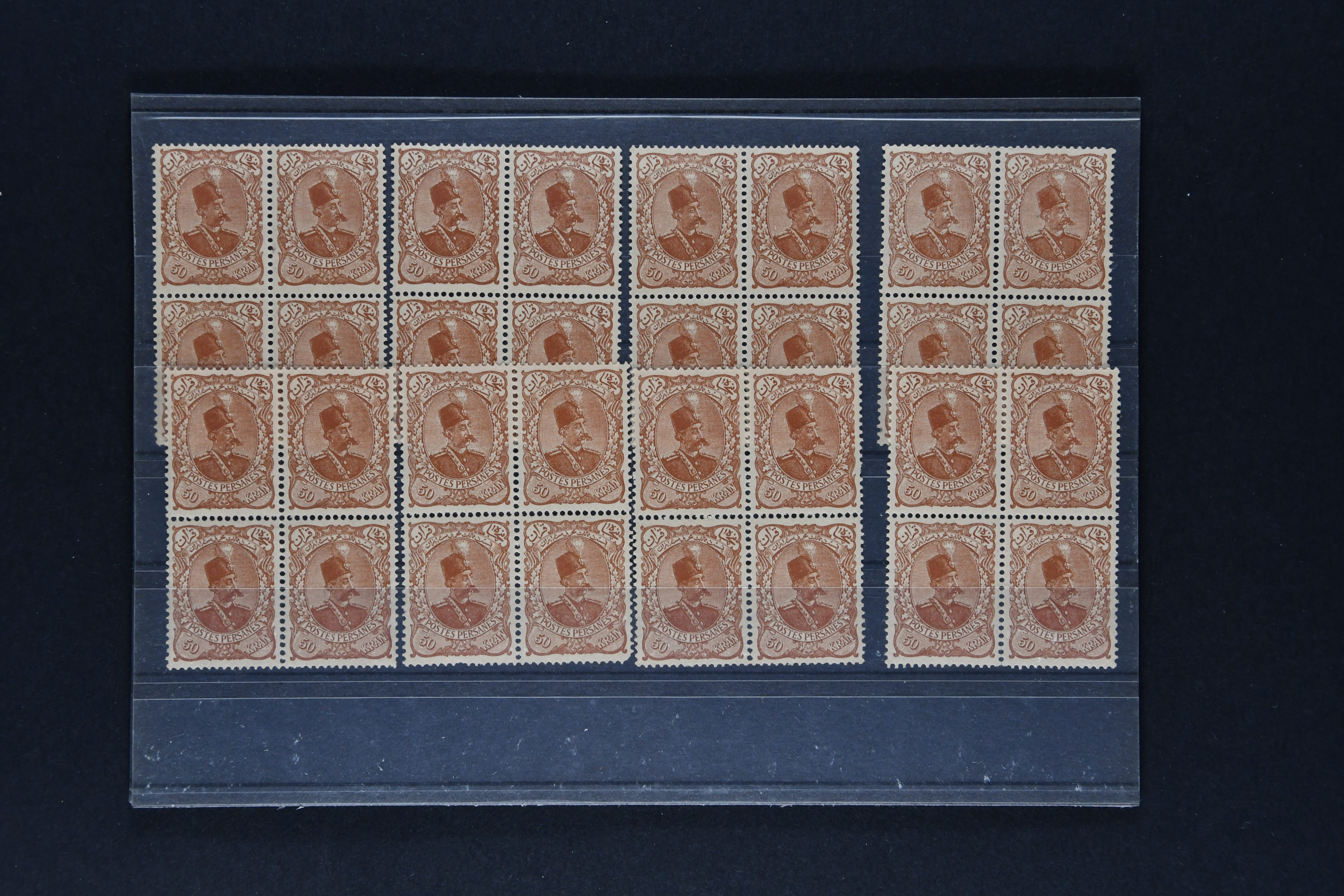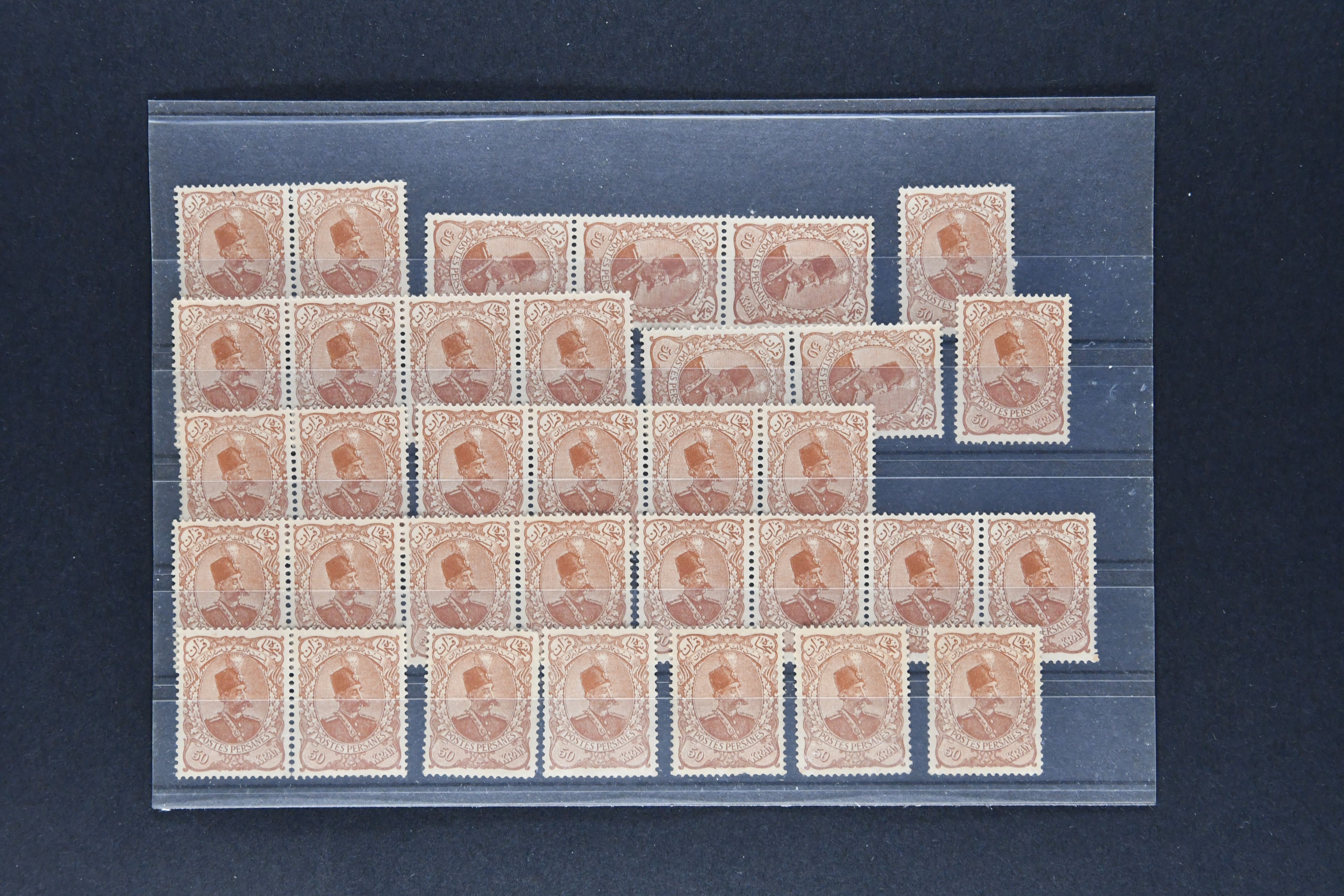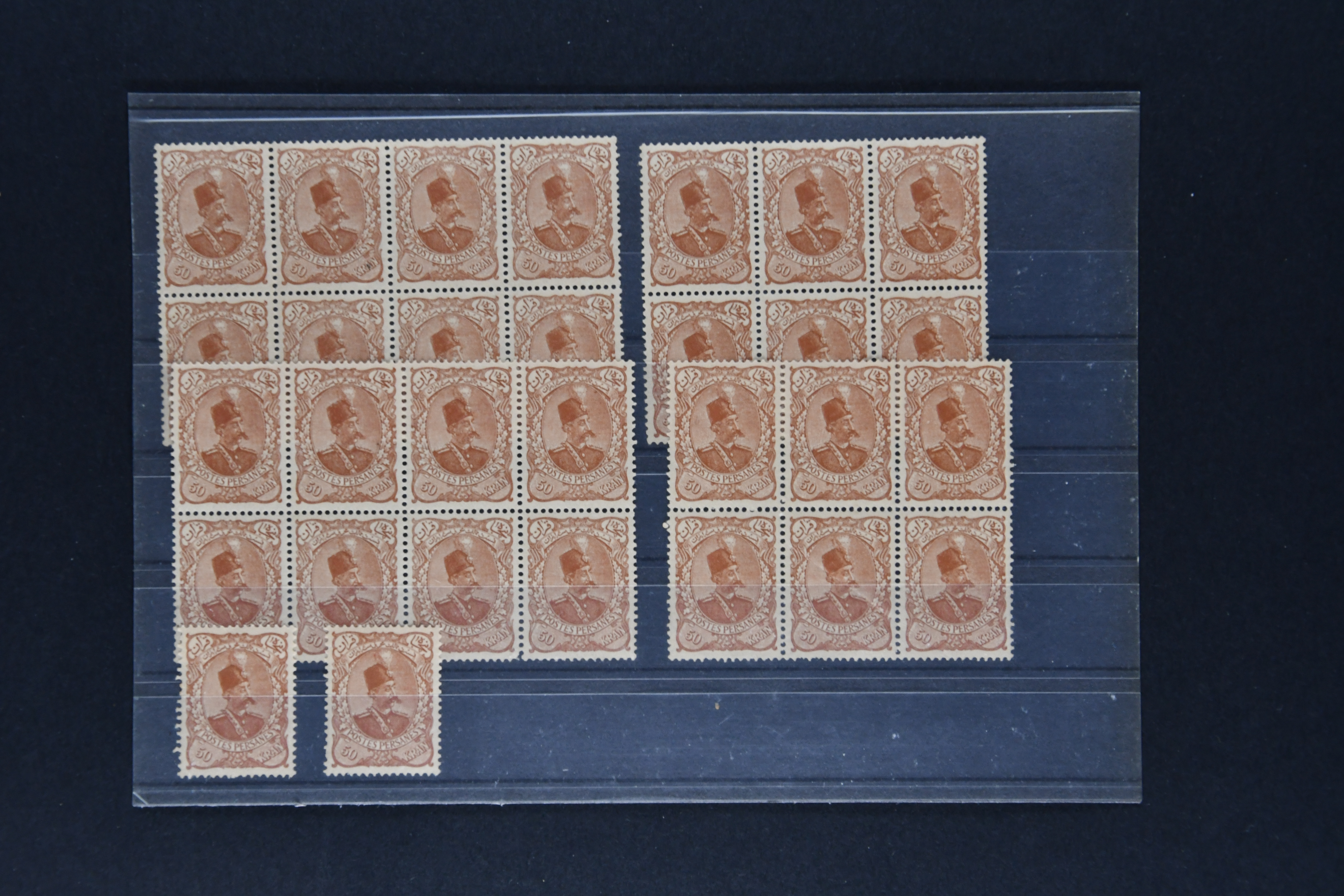 1902 (March): Tehran Typeset provisional 2 ch. brown & buff imperforate, overprinted framed 'Provisioire' (Type I) in black, the reconstructed pane of 12 subjects (2 x 6), showing two unused blocks of four,