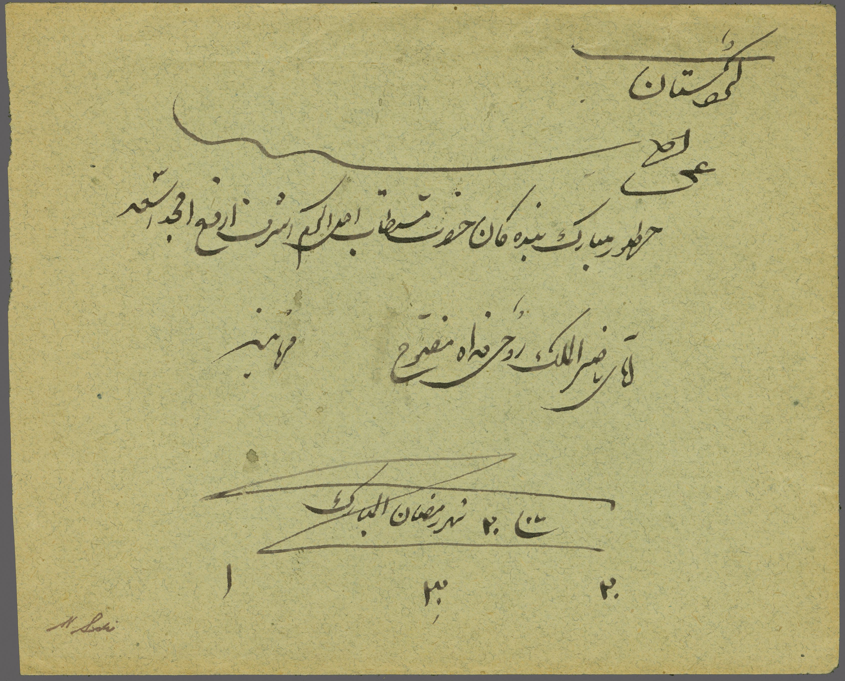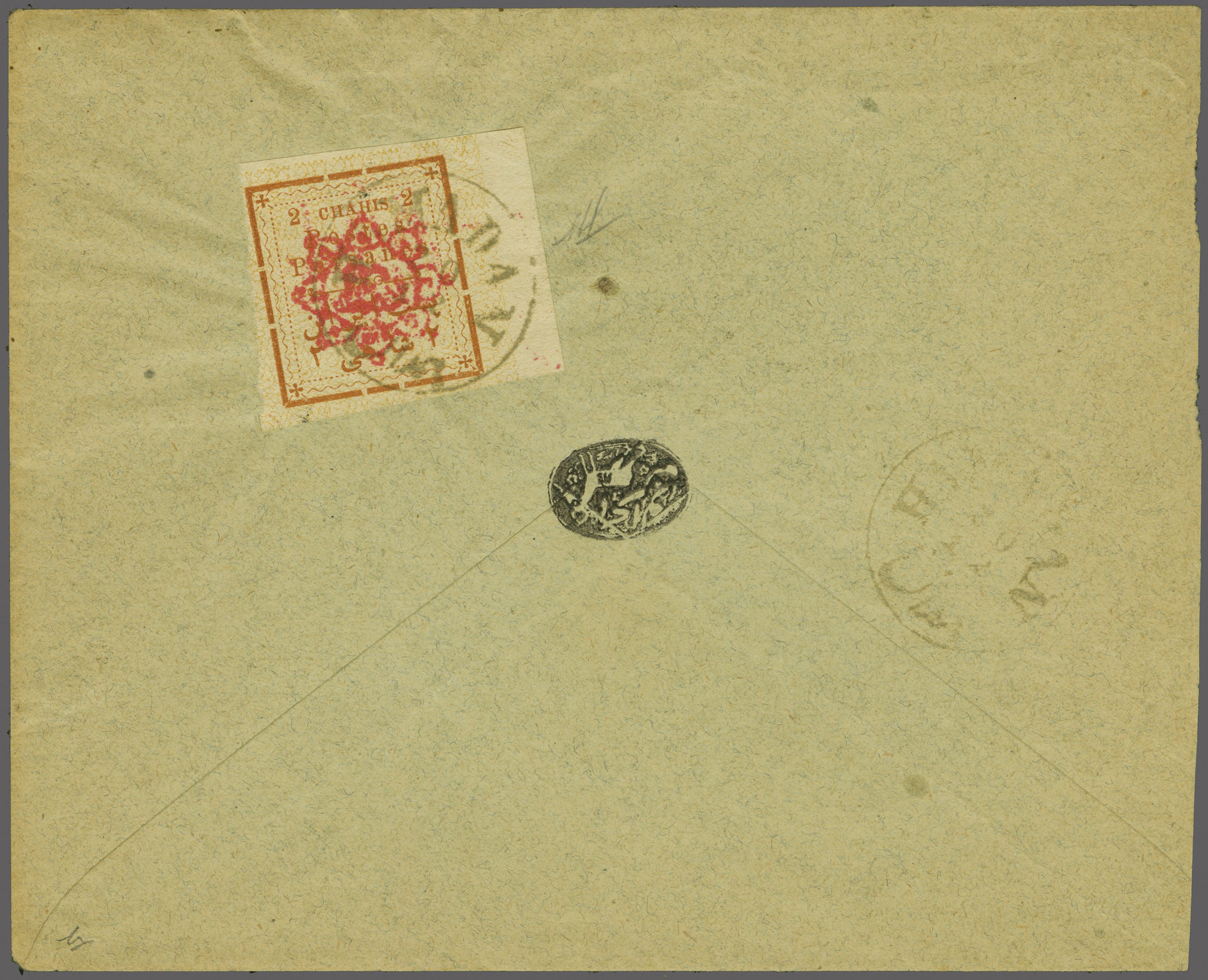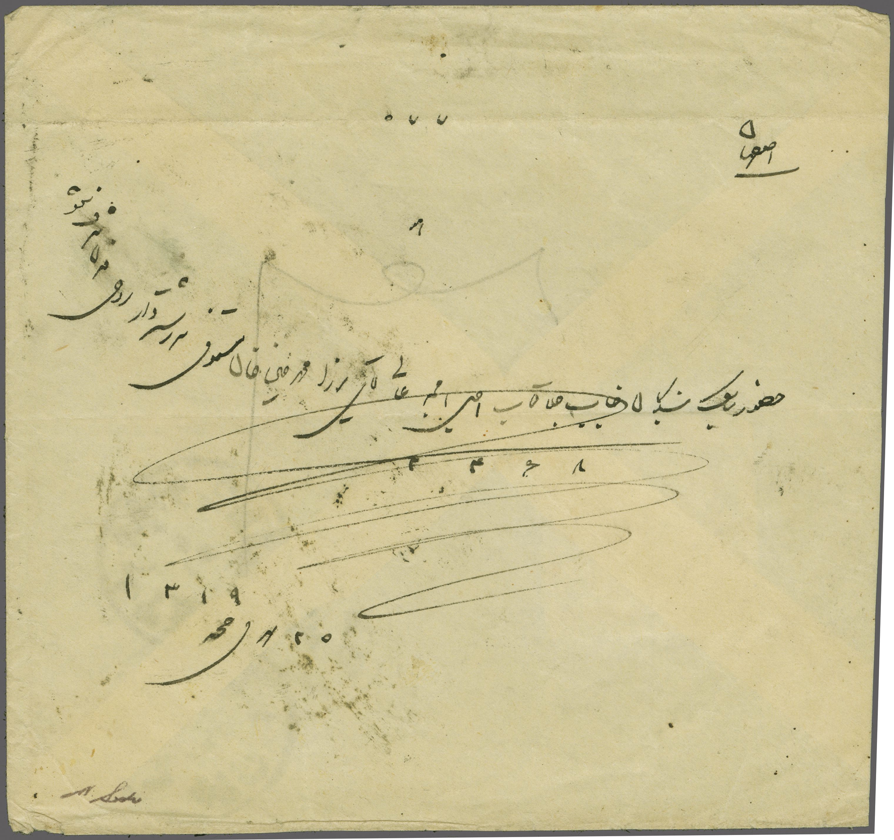 chahis from Hamadan to Sanandaj / Kurdistan tied by HAMADAN circular datestamp (Dec 20) in black with information strike at right. Just four known examples of this franking are known from Hamadan. Cert. Sadri (2005). Note: The normal single rate was