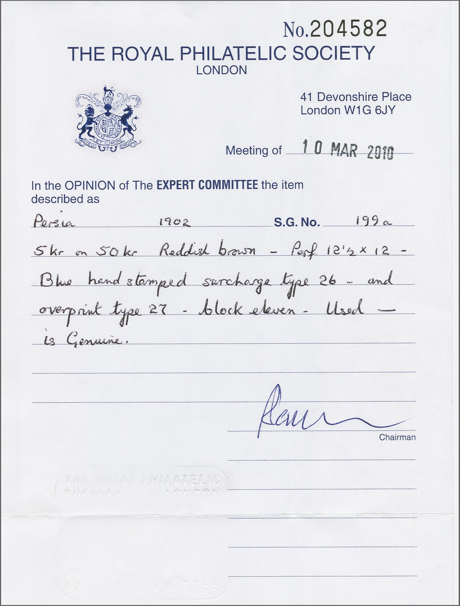 circular datestamps in black, including one example with cert. RPSL (2010) Gi. = GB£ 1'599 (Image 1)