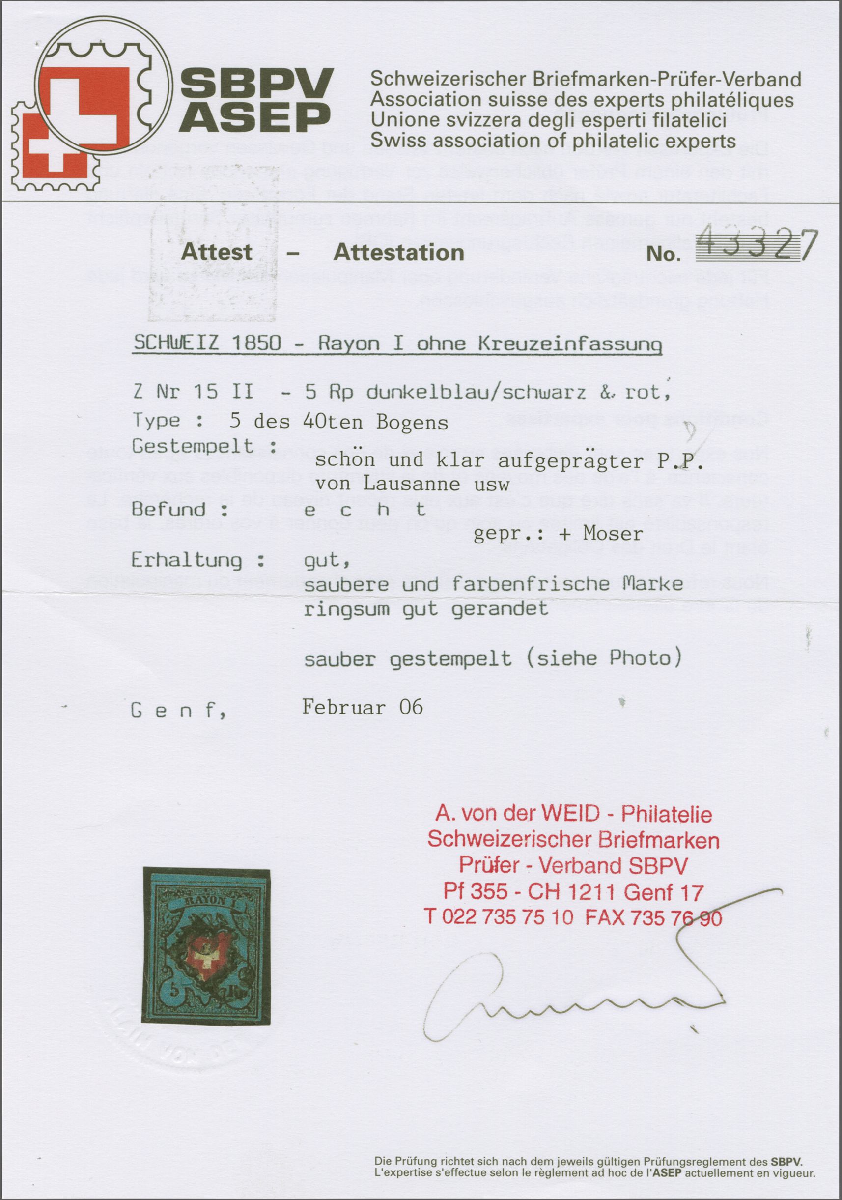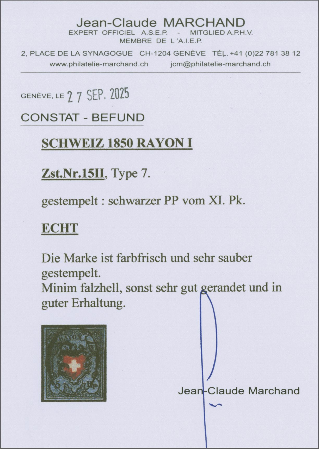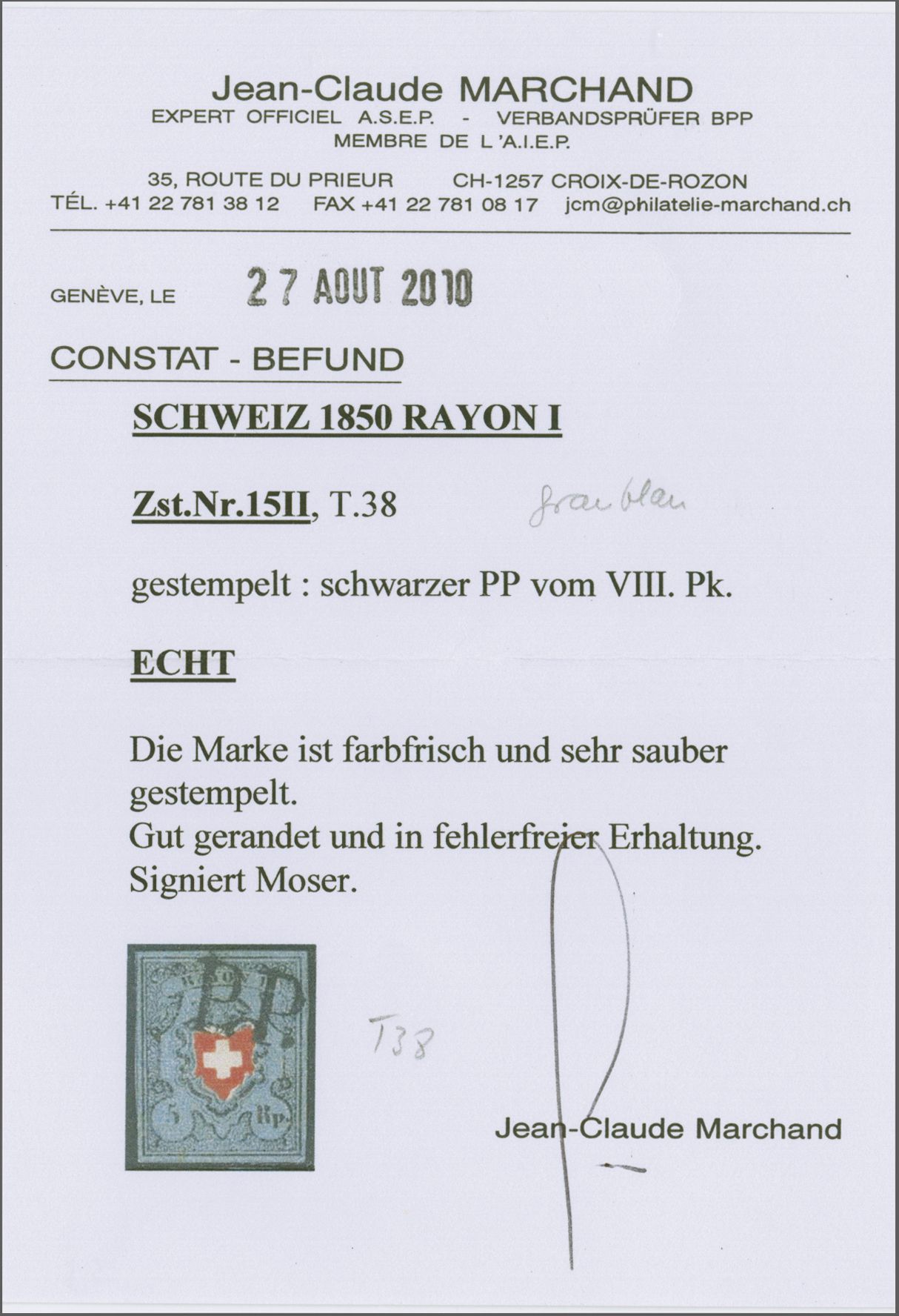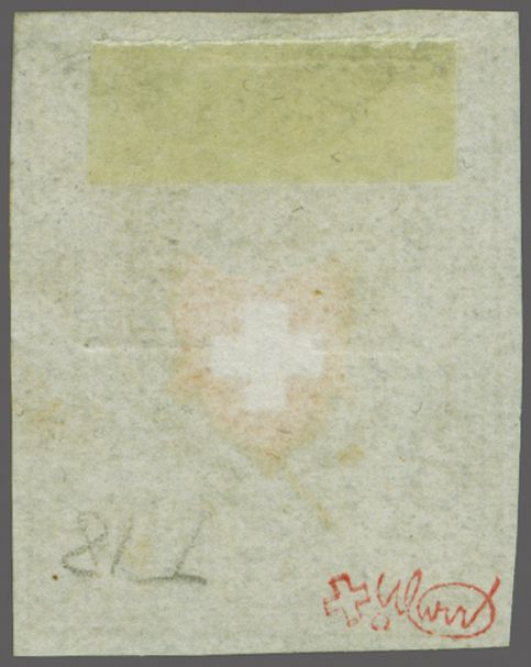 Type 24, farbfr. und gut- bis meist überrandig mit Bogenrand rechts, zart und voll aufgesetzt entw. mit blauem gefasstem "PP." (AW 275). Signiert Hunziker; Attest Renggli (1994) SBK = CHF 750 (Image 1)