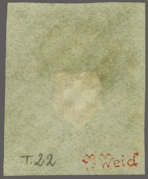 Type 1, farbfr. und gut- bis meist überrandig mit Bogenecke links oben, zartklar und voll aufgesetzt entw. mit schwarzem "P.P." des VIII. Postkreises. Befund Rellstab (1988) SBK = CHF 750 (Image 1)