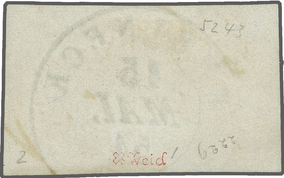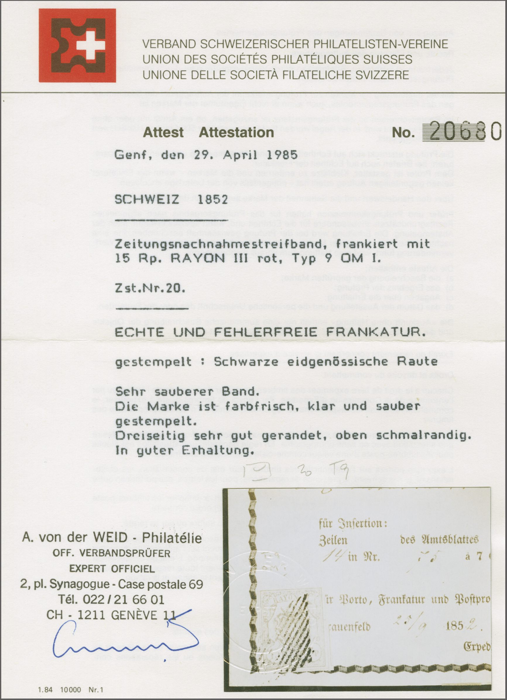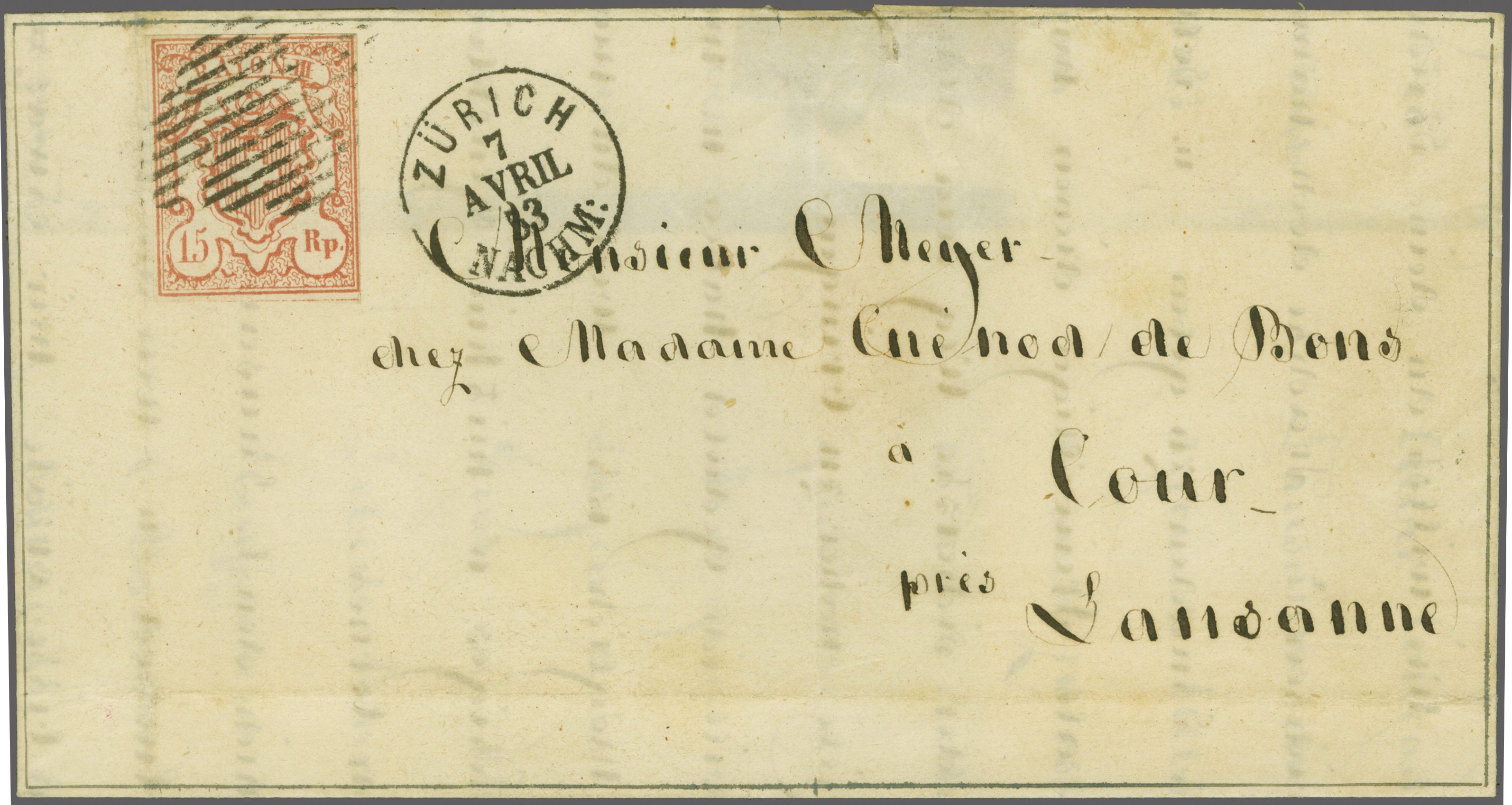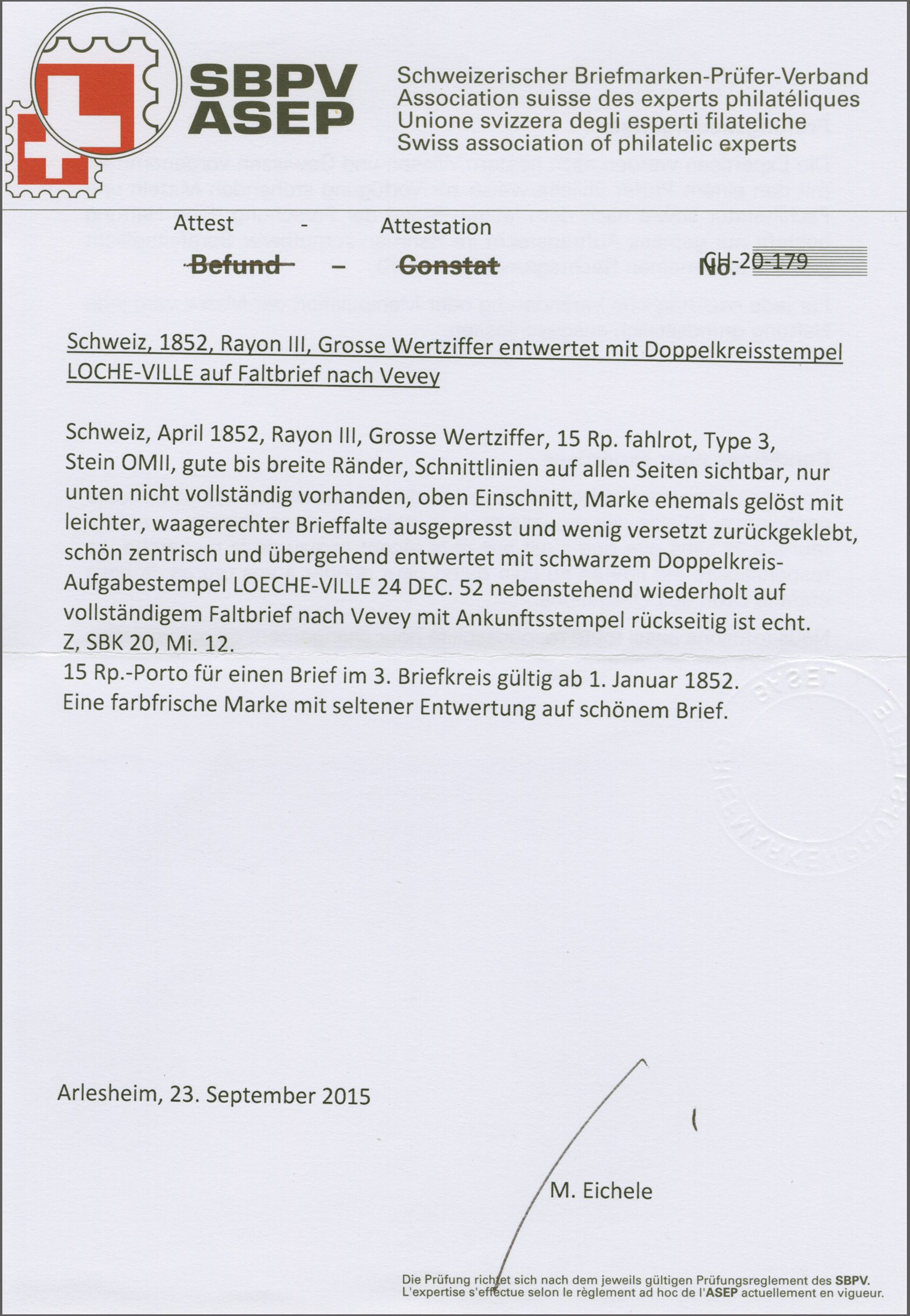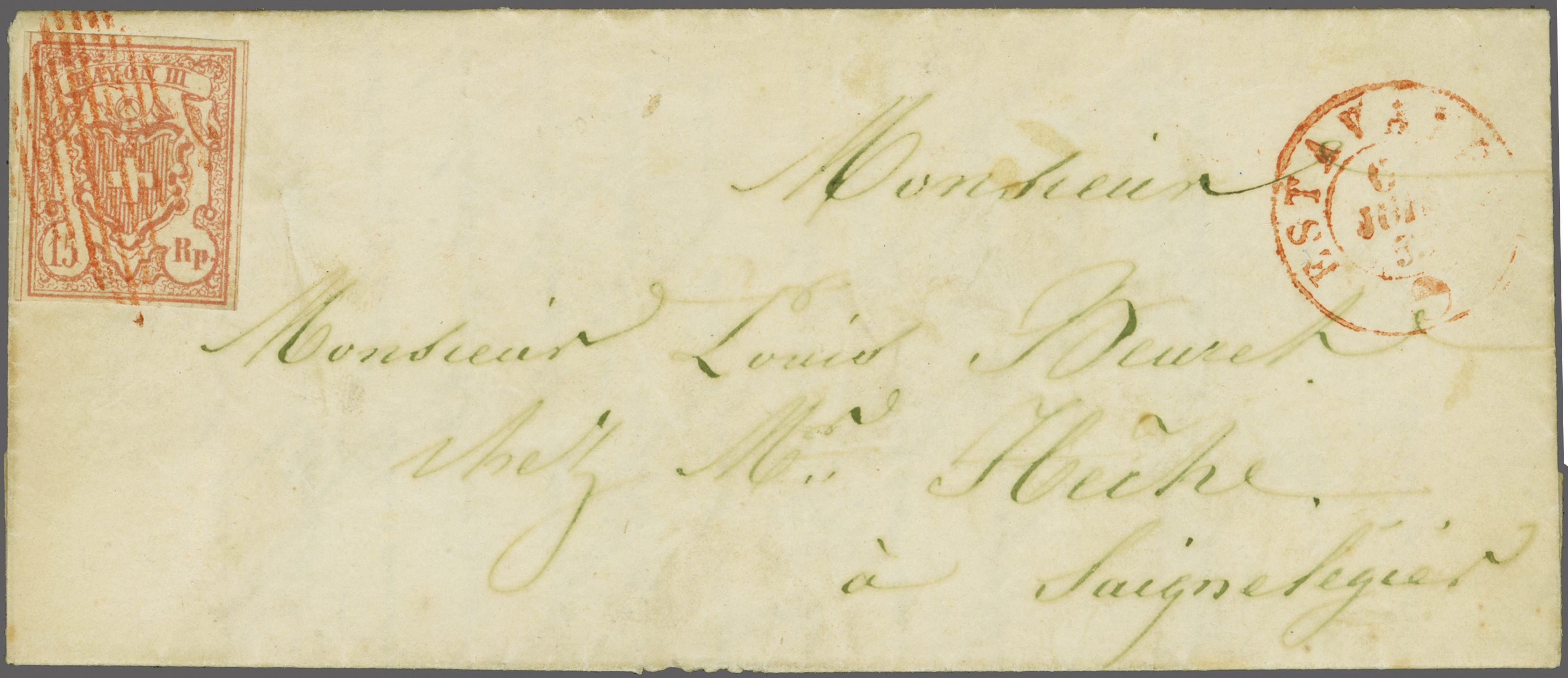 Schützenfestes in Nyon. Rücks. Ankunftsstp. vom Folgetag. Ein frischer und ursprünglicher Brief; Attest Rellstab (1981). Provenienz: 107. Corinphila-Auktion, Zürich September 1998, Los 6271; Sammlung Jack Luder, 219. Corinphila-Auktion, Zürich