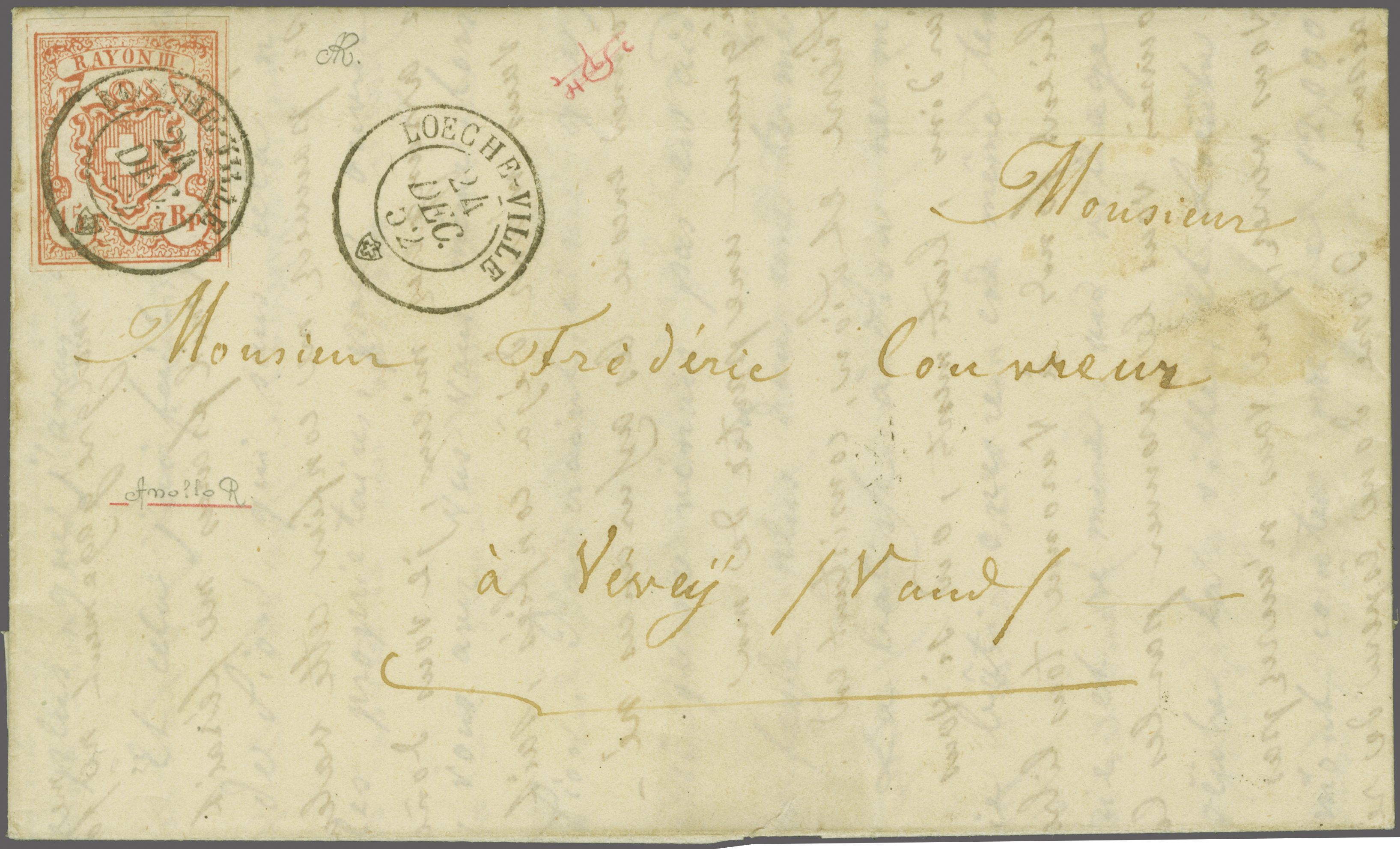 auf frischem und vollständigem Faltbrief (geglätteter Registraturbug durch die Marke, diese gelöst und zurückgeklebt) datiert "Varonne ce 24 Xbre 1852" und im 3. Briefrkeis von Varen über Leuk nach Vevey adressiert. Rücks. Ankunftsstp. vom