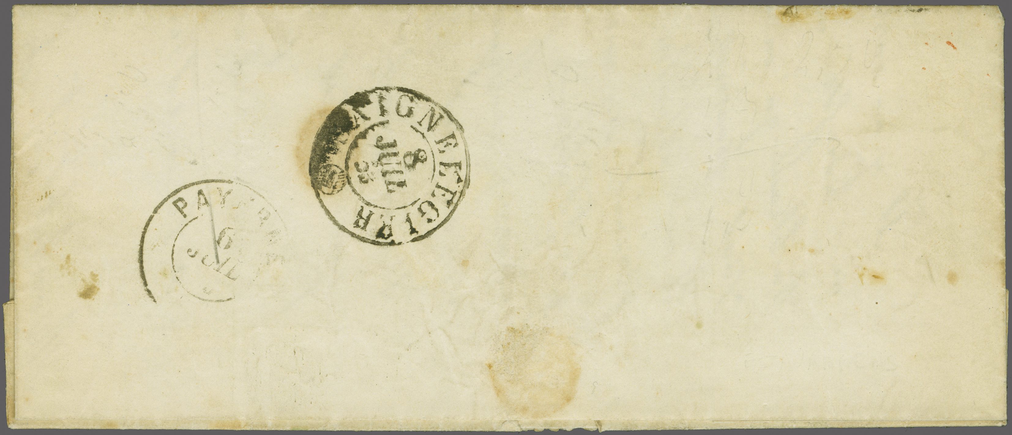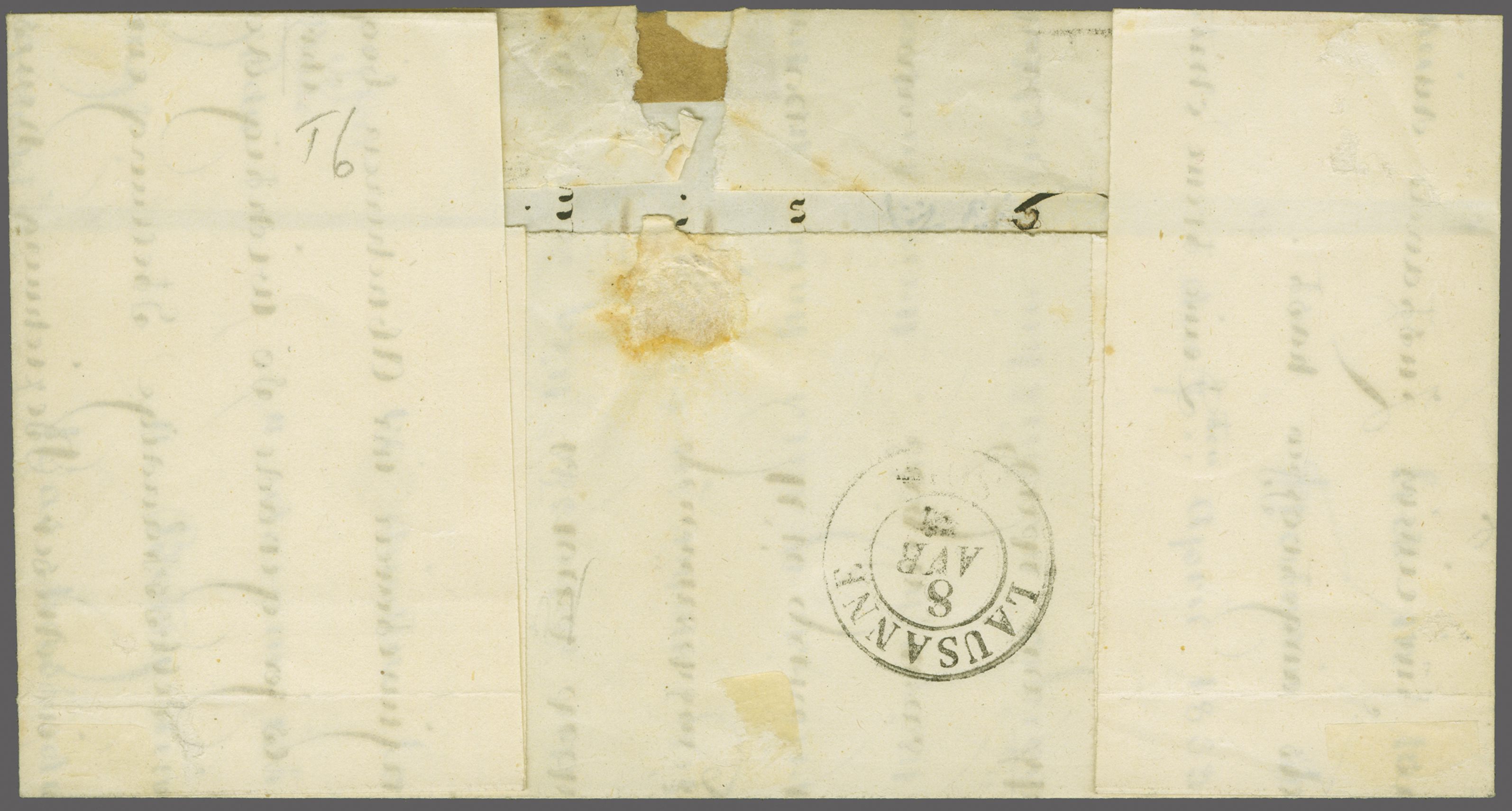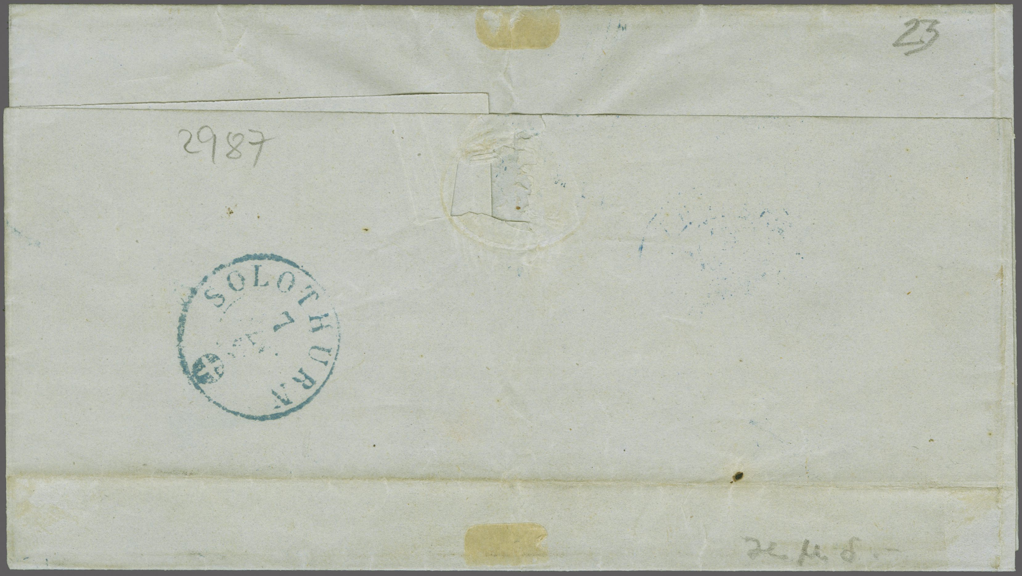 verfärbt) im 3. Briefkreis nach Saigenlégier. Rücks. Transitstp. "PAYERNE 6 JUIL" und Ankunftsstp. vom 8. Juli. Attest Rellstab (1993) (Image 1)