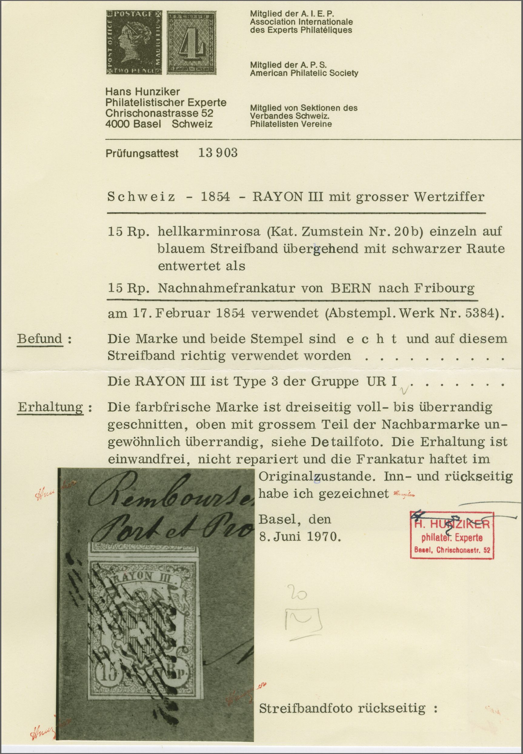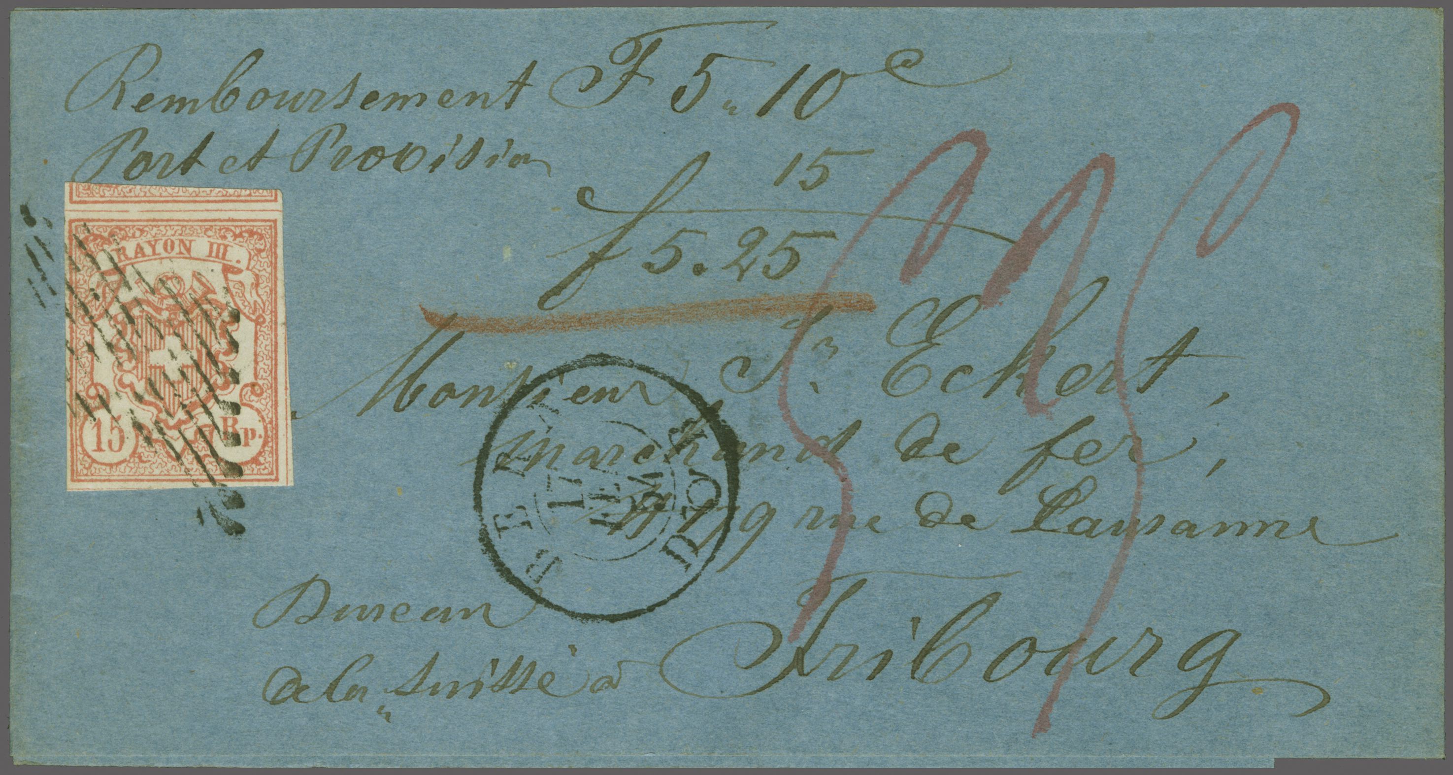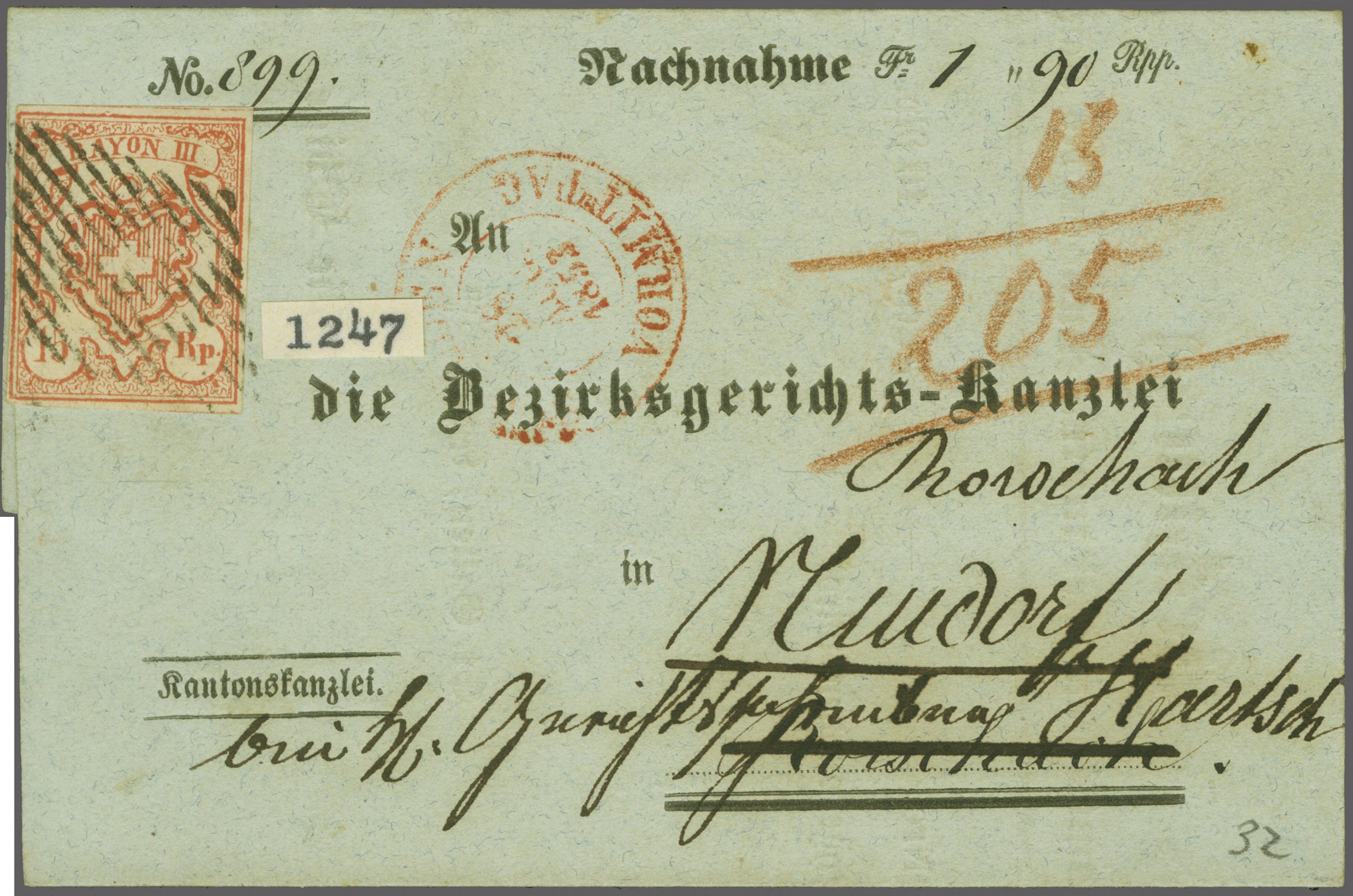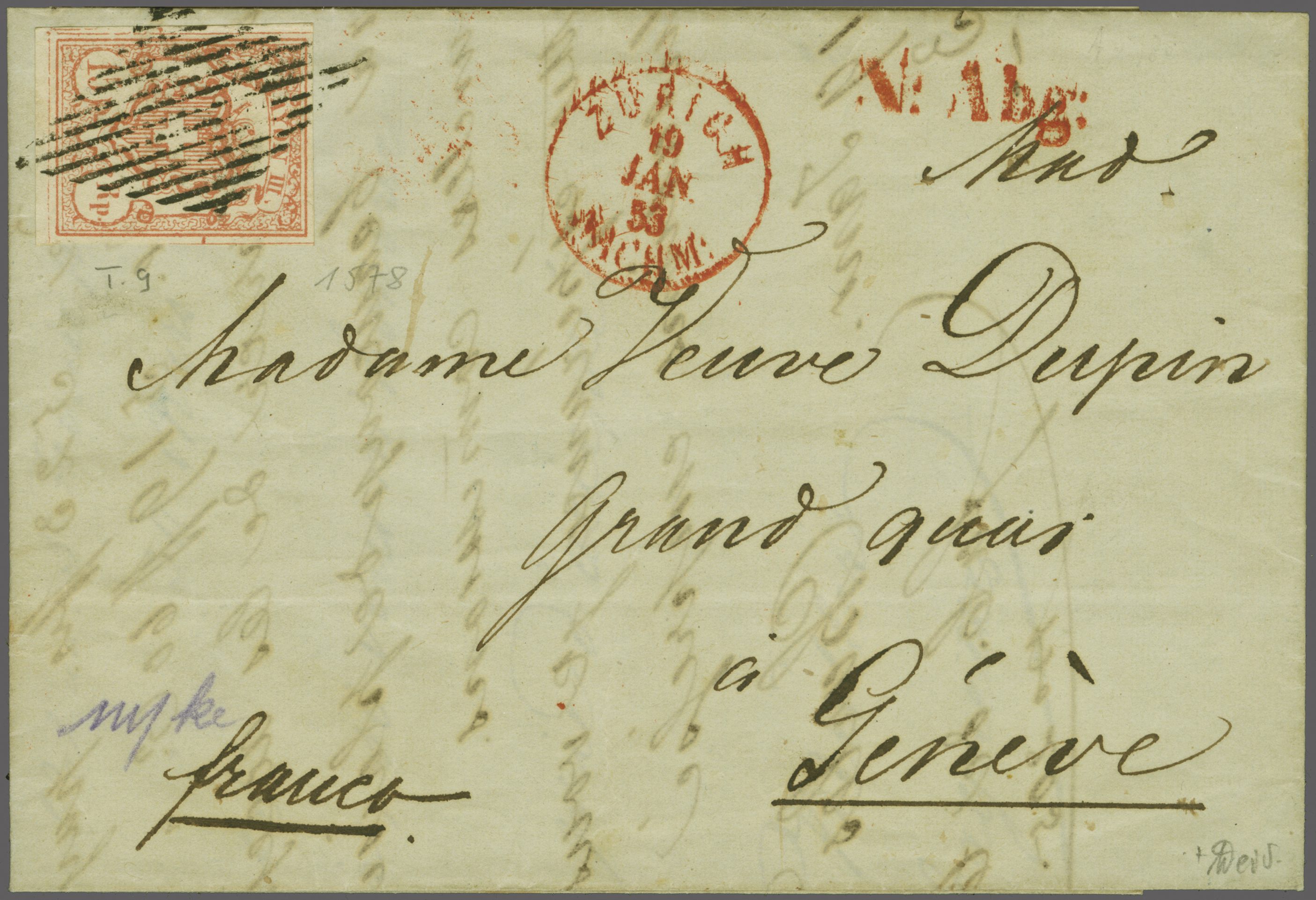 1852. Eine dekorative Nachnahmefrankatur; Attest Hunziker (1970) (Image 1)