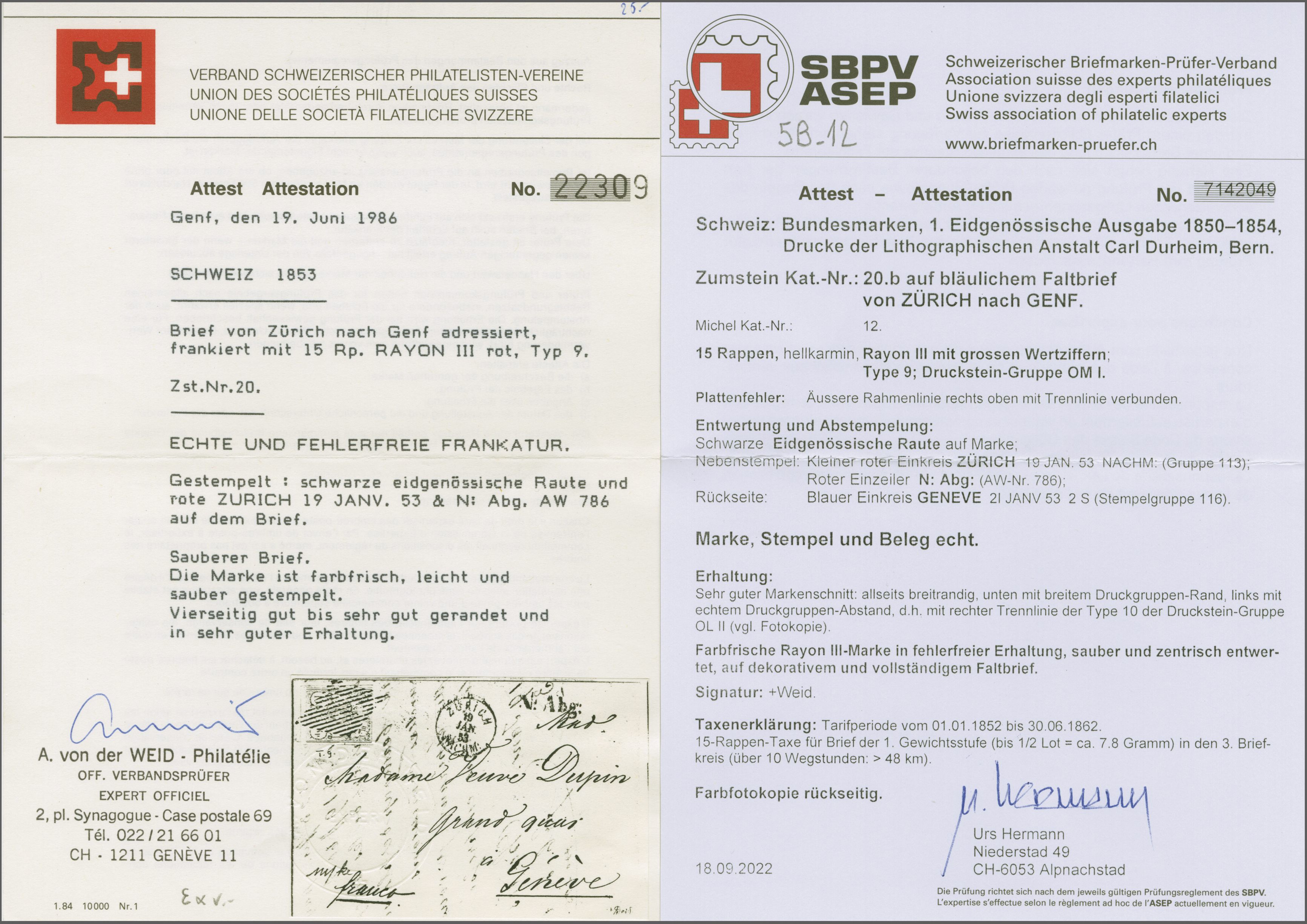 Ein schmucker und ausserordentlich frischer Stadtzürcher Brief; Atteste von der Weid (1986) und Hermann (2022) (Image 1)