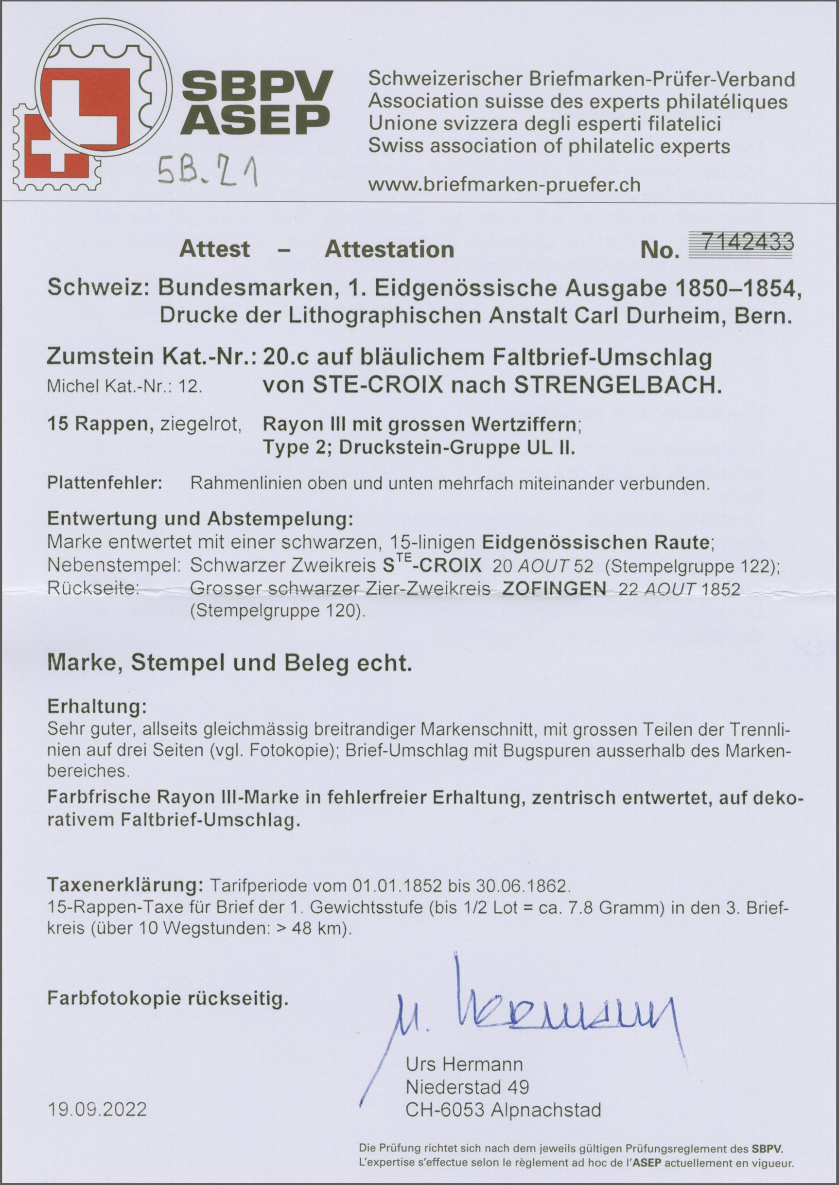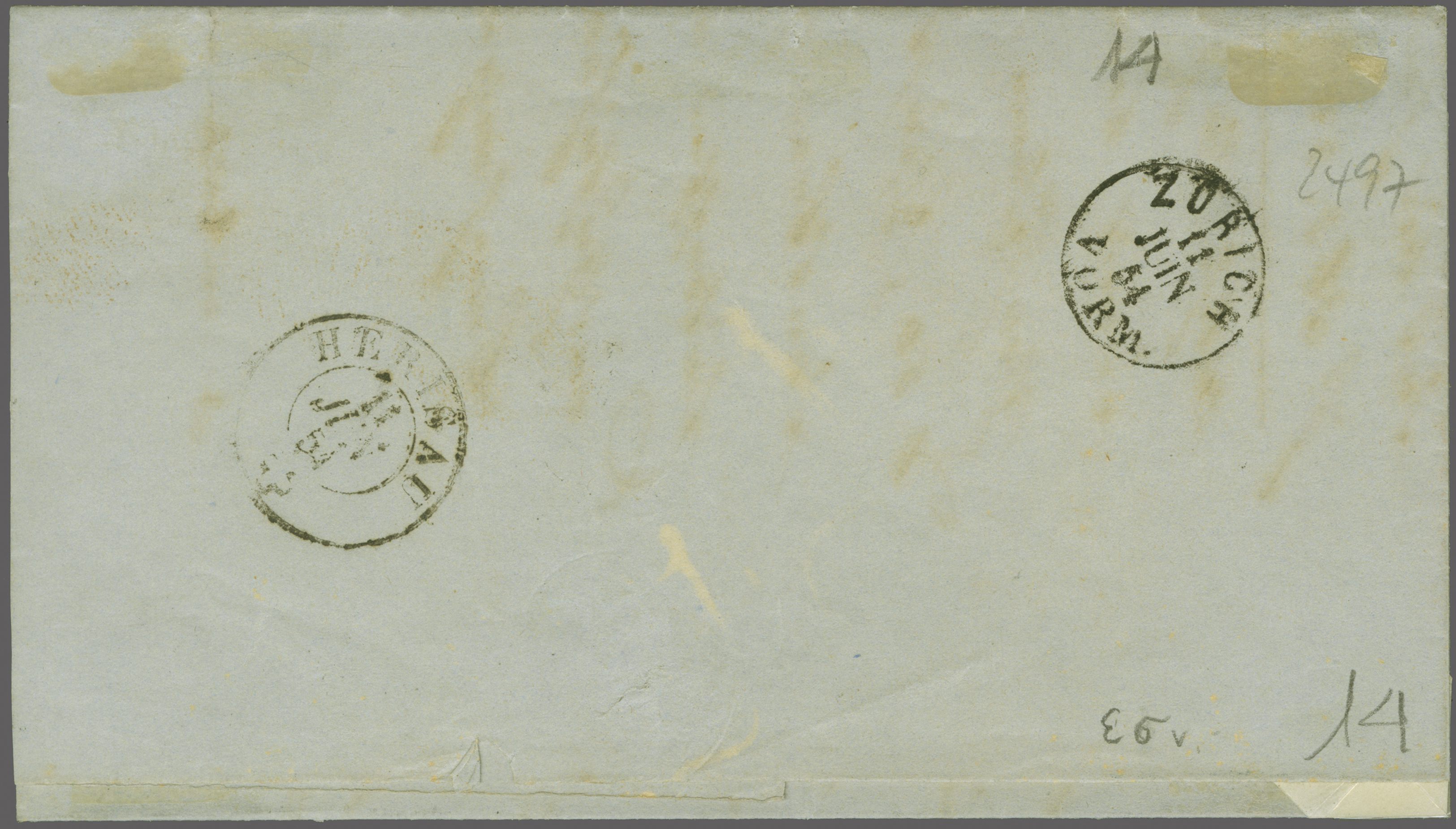 Rücks. Transitstp. "ZOFIGNEN 22 AOUT 1852". Attest Hermann (2022) (Image 1)