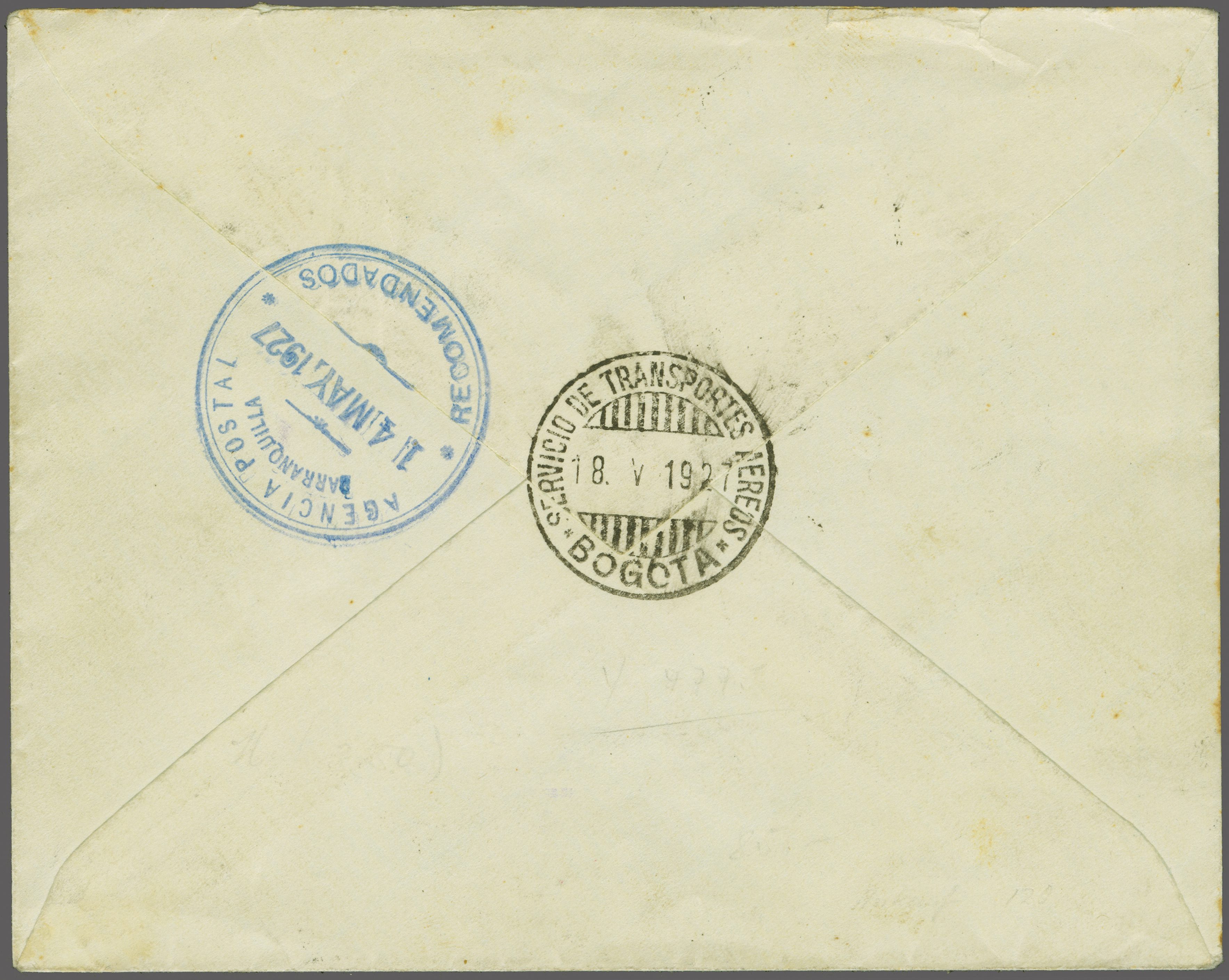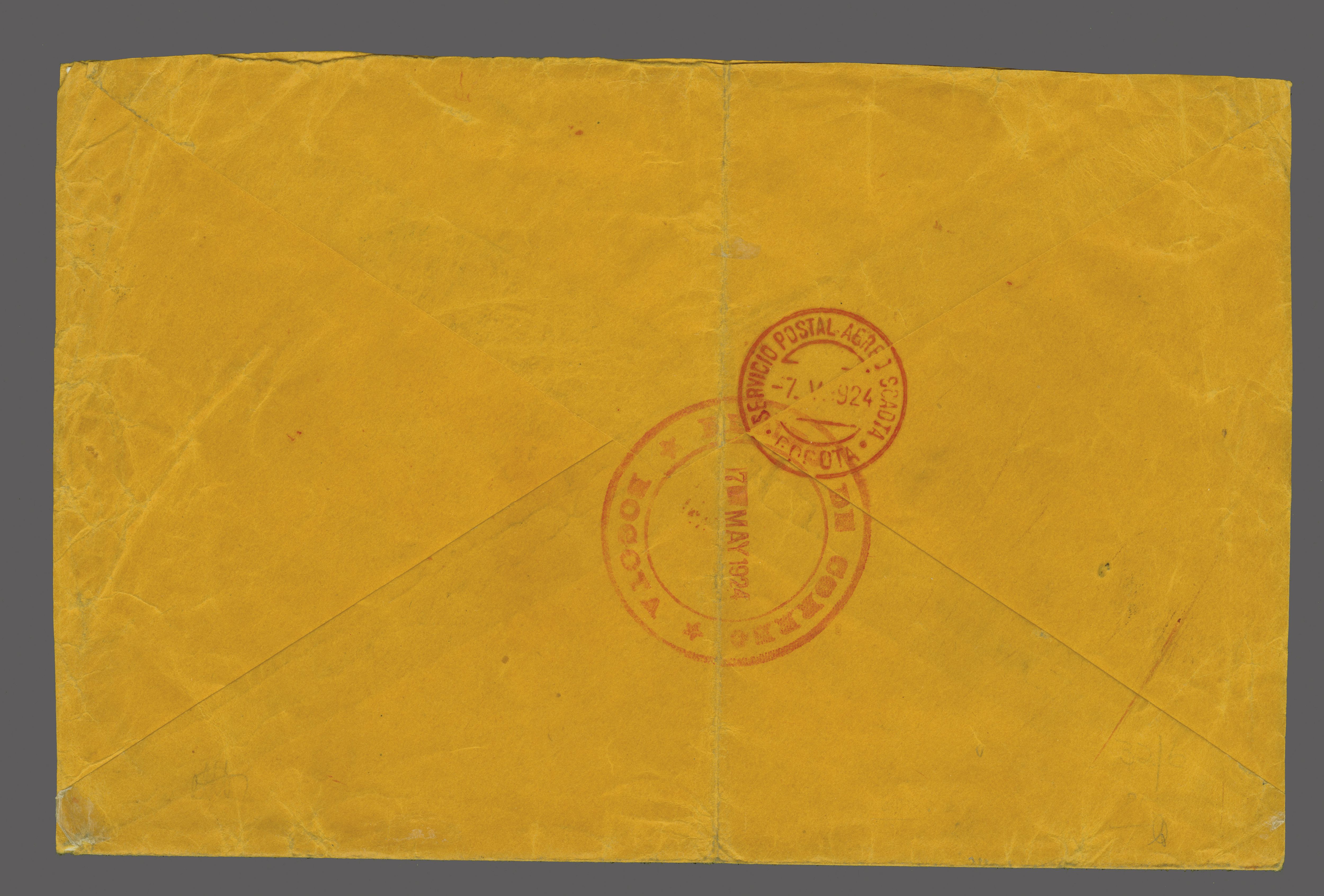 doch der hier vorliegende Beleg ist der einzig bekannte mit dem offiziellen Stempel vom Büro in Leticia und der blauen SCADTA Etikette "Par Avion de New York via P.A.A. & Scadta" (Image 1)