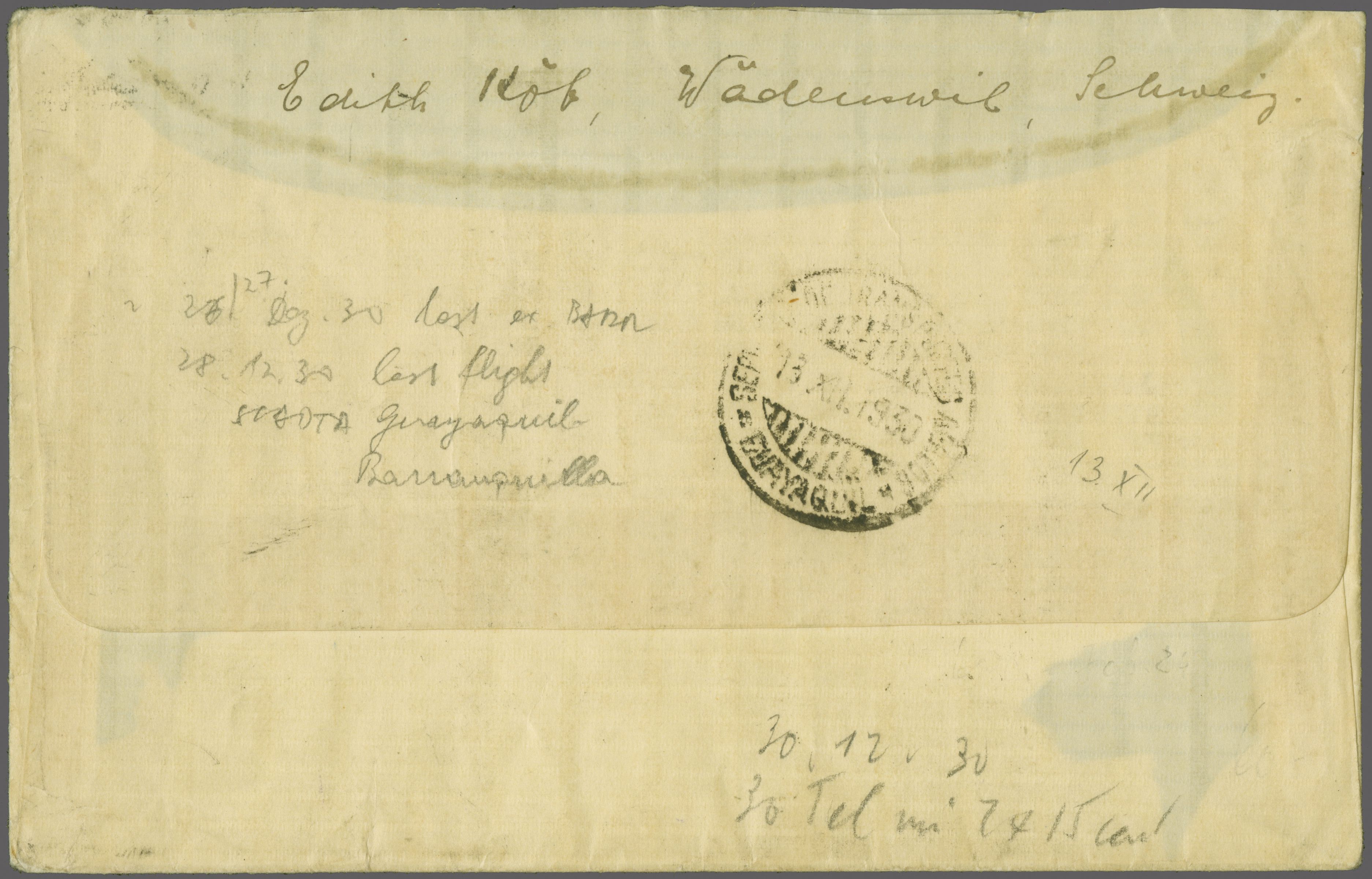 Transitstp. vom 10. Dez., bezw. AStp. Guayaquil vom 13. Dezember 1930 SLH = CHF 4'000 (Image 1)