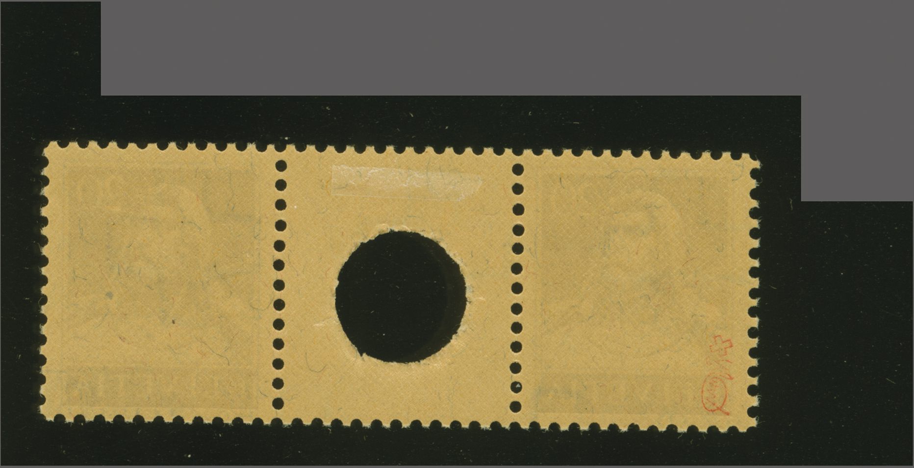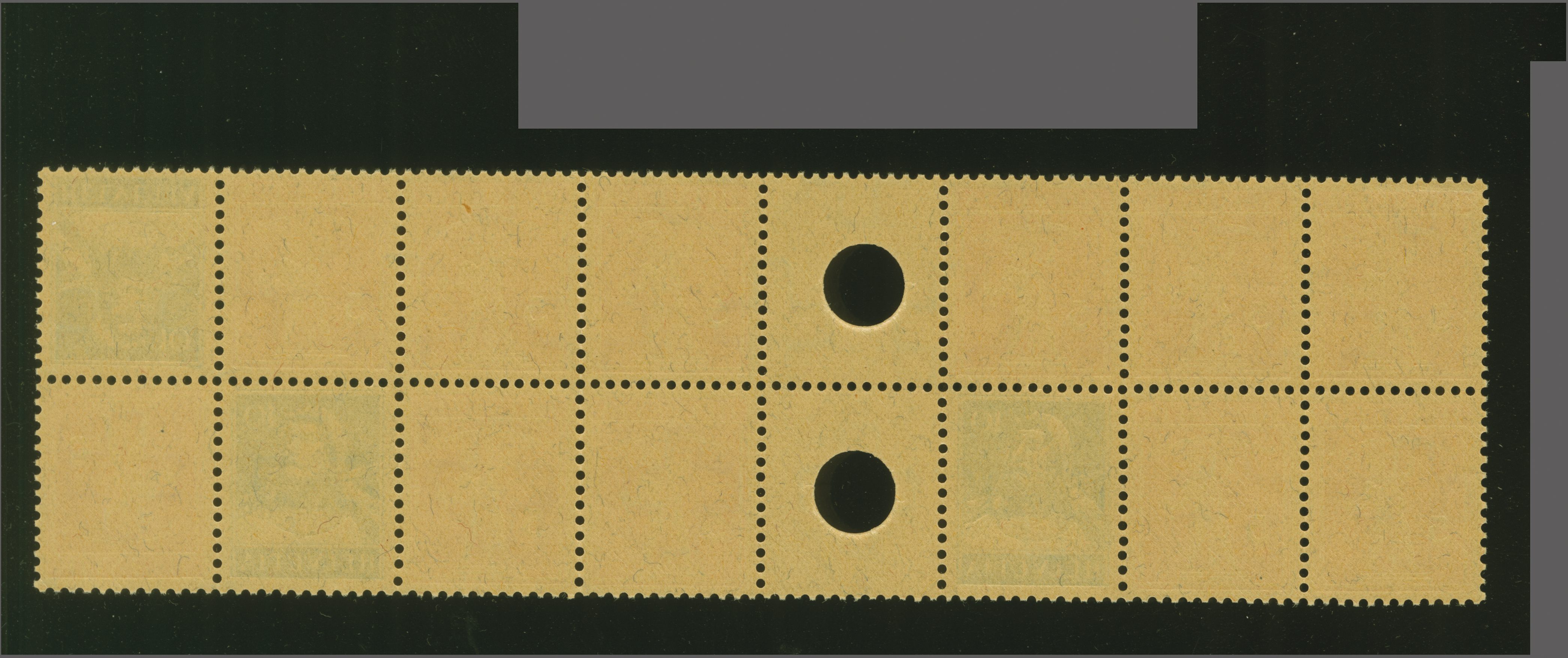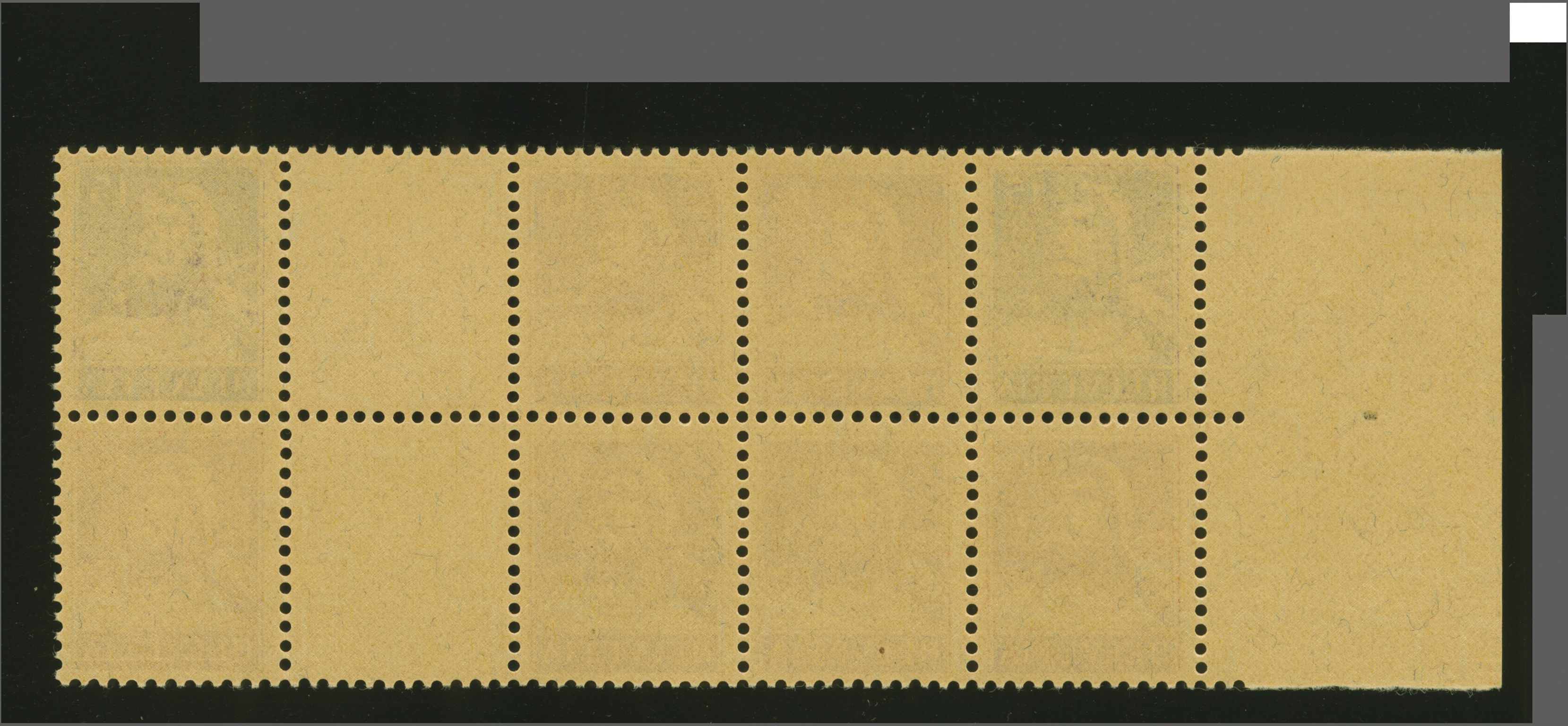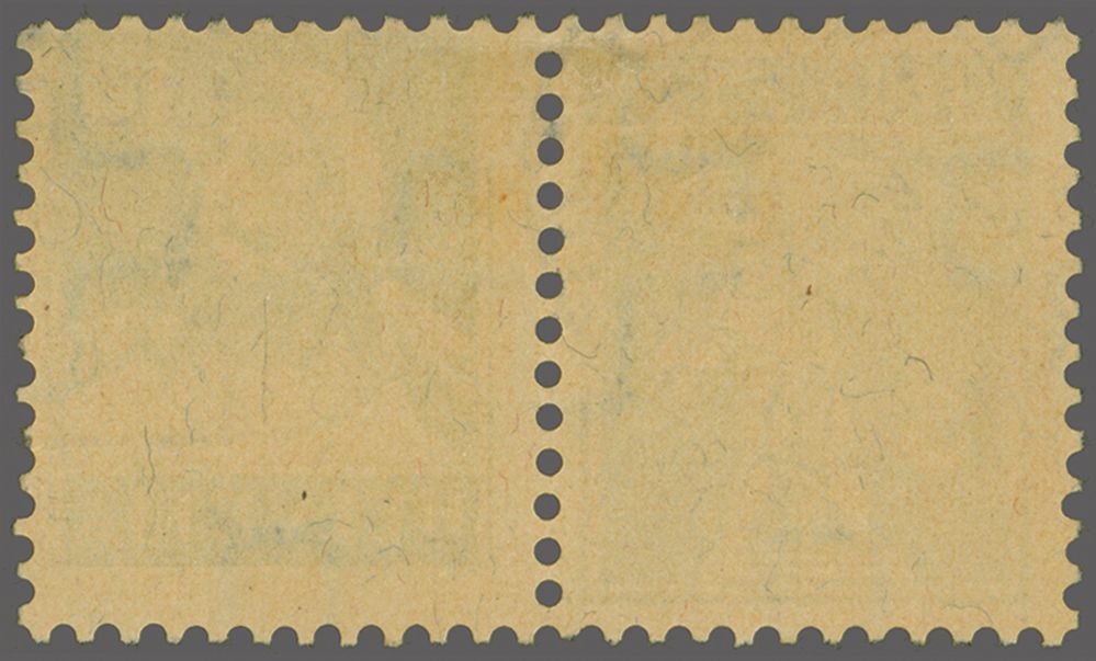 philatelistisch wiederentdeckt, war der Bogen inzwischen durch ungeeignete Lagerung so stark in Mitleidenschaft gezogen worden, dass nur fünf Kehrdruckpaare in sammelwürdiger Erhaltung entnommen werden konnten, wovon das vorliegende Paar als das