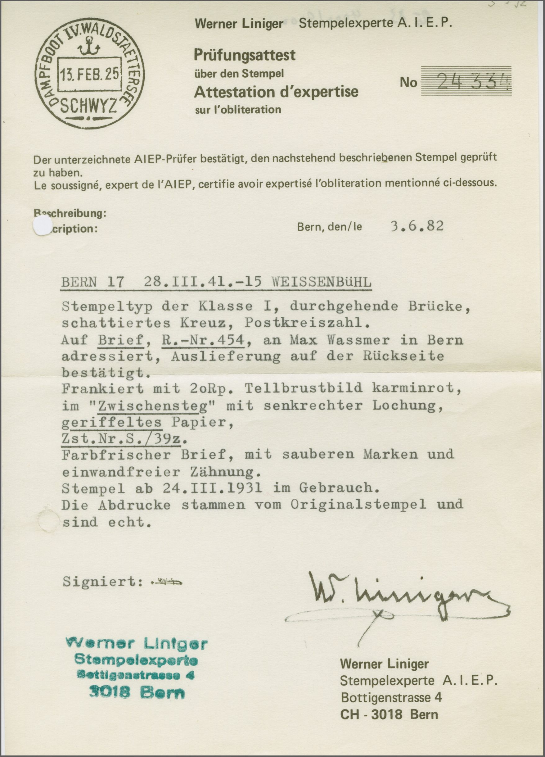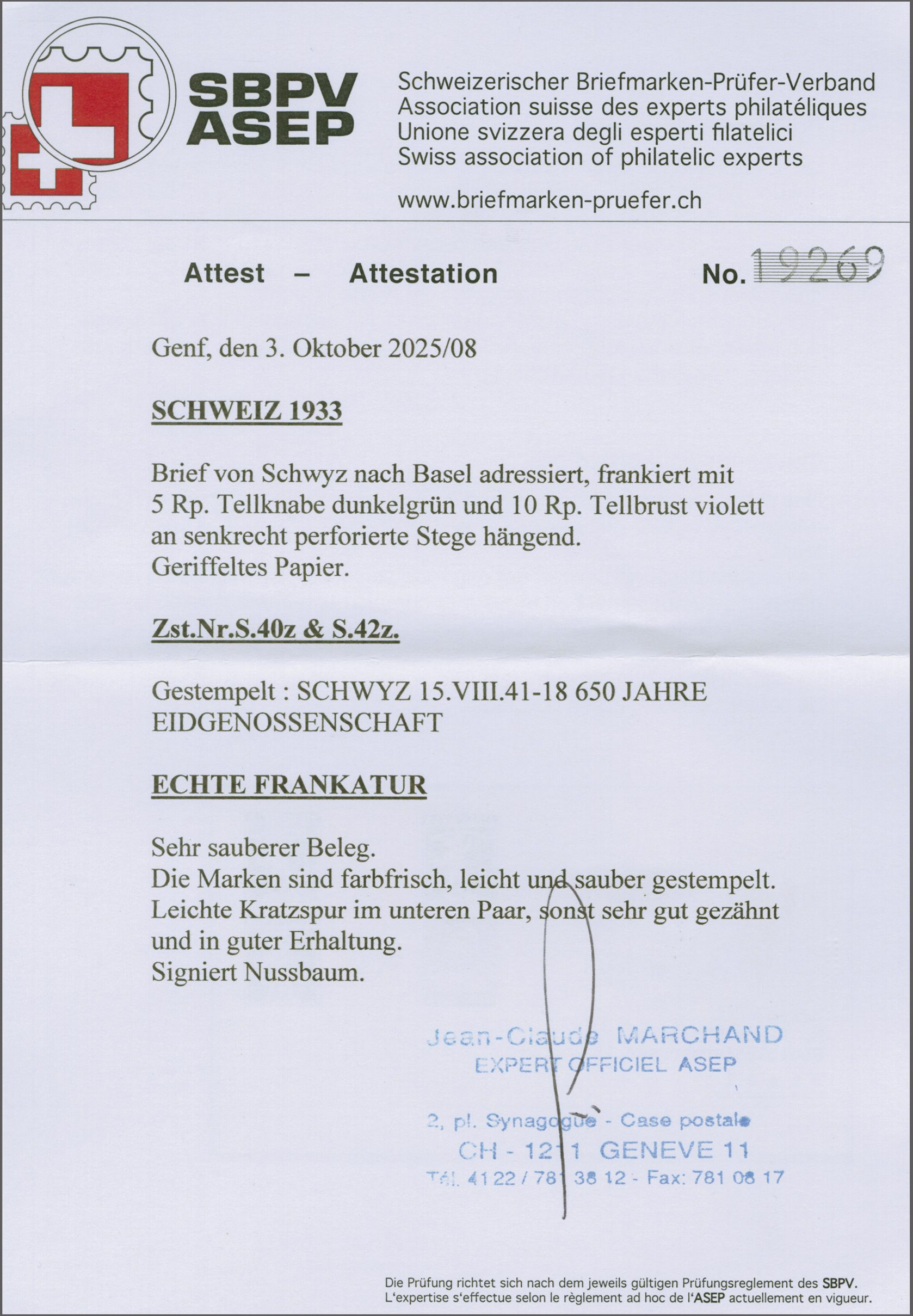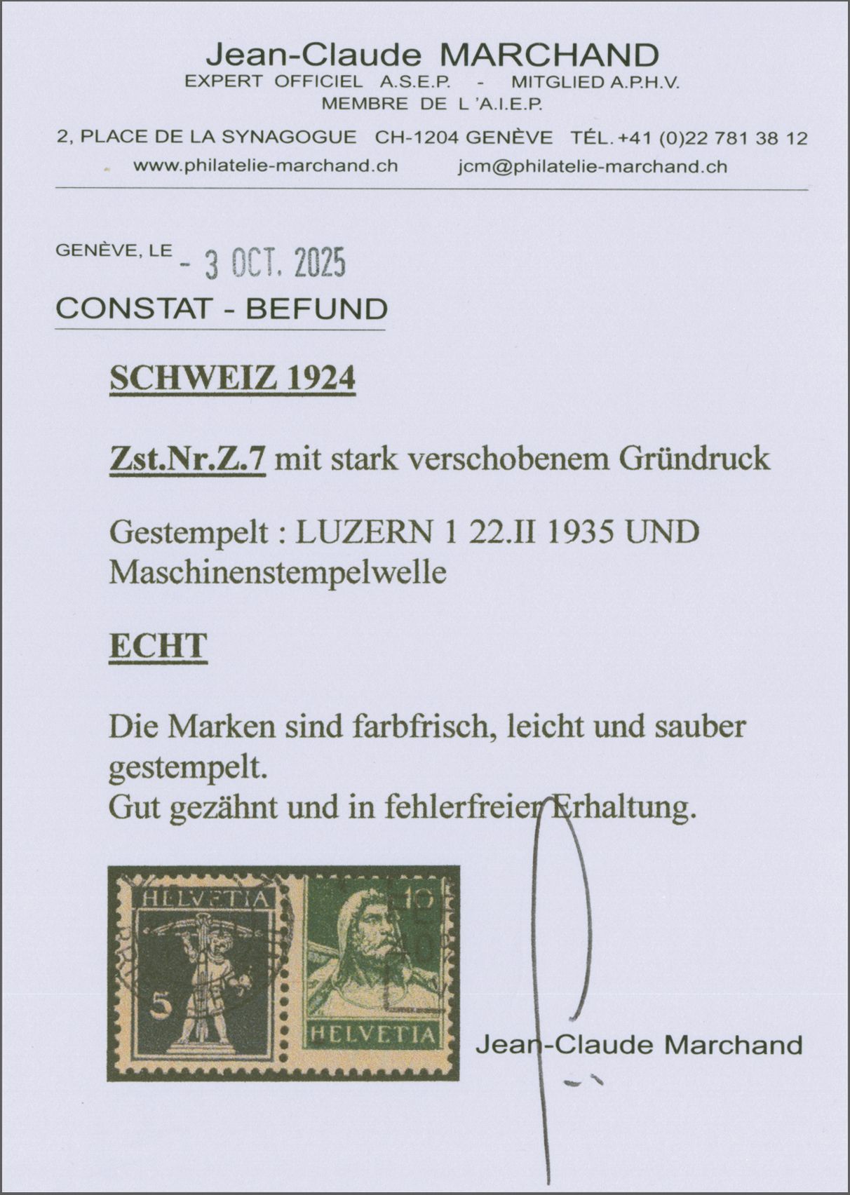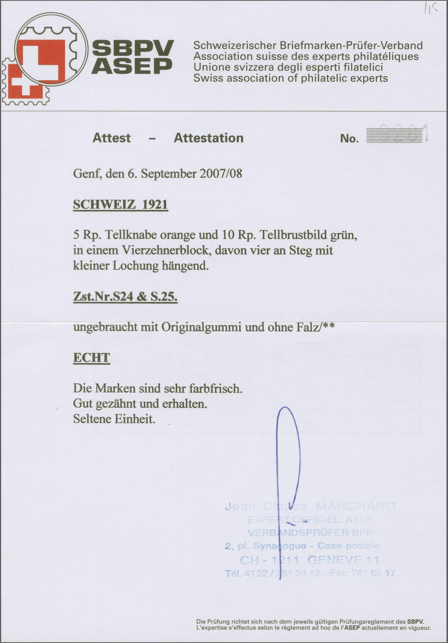 herstellungsbedingte senkr. Faltspur im Zwischensteg, Atteste Renggli (1999) und Marchand (2025). SBK=CHF 1'200 (Image 1)