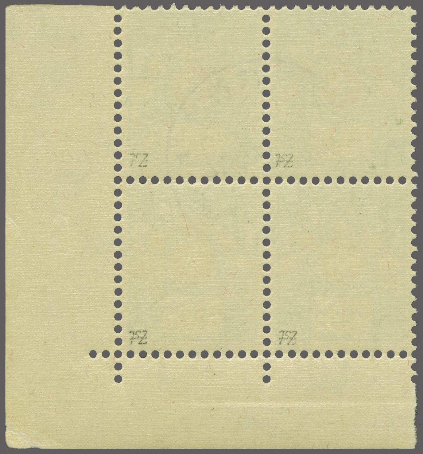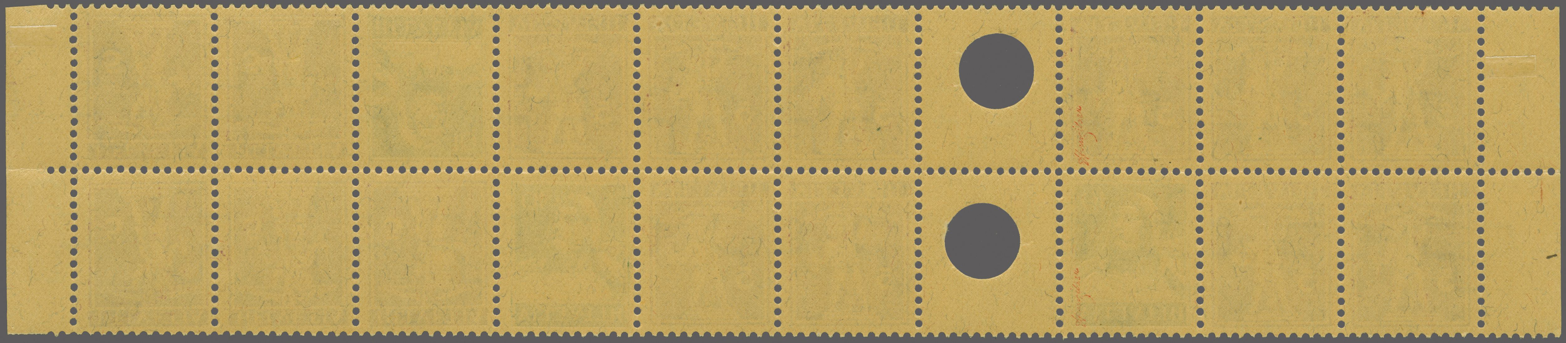 karminrot auf geriffeltem Papier ungebraucht, Befund Rellstab; weiterhin Zusammenhängende mit Altstoffverwertung in zwei gest Originalbogen, 1953 Zusammenhängende aus Kehrdruckbogen; Zwischenstege, meist ungebraucht mit grosser Lochung, aber auch