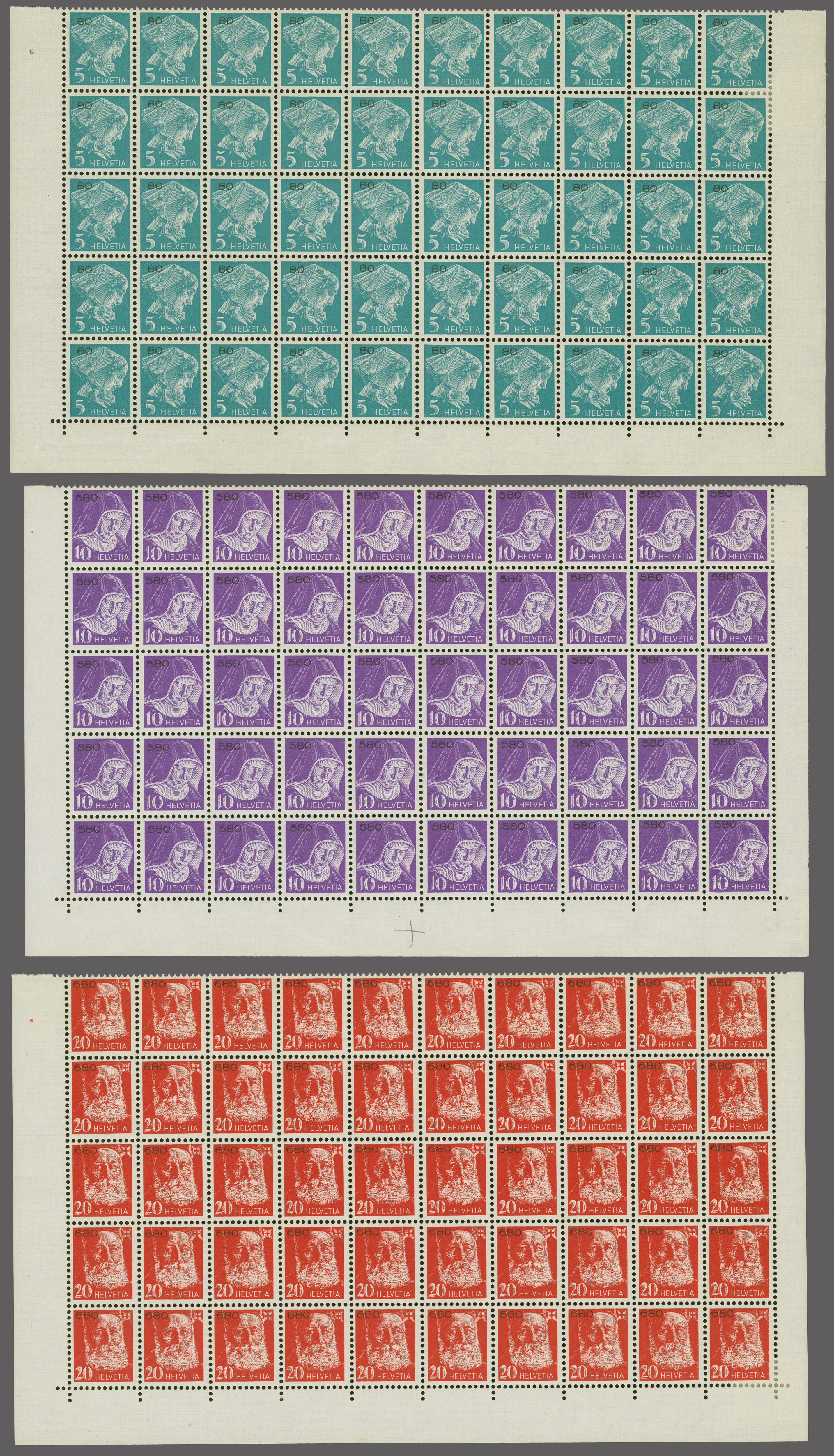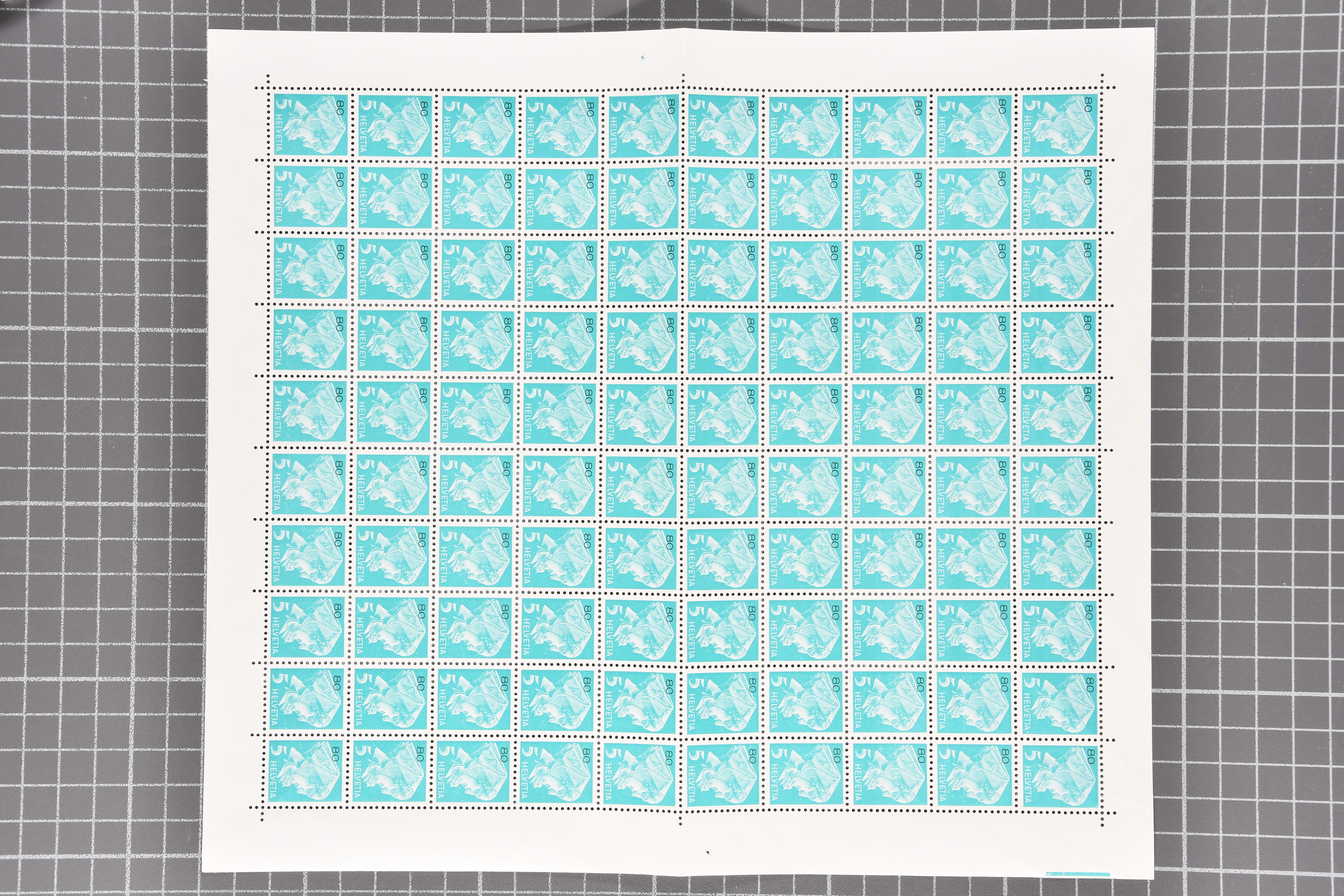 in kompletten Bögen zu 100 postfrischen Marken, die Bögen mittig waagrecht gefaltet. SBK = CH 3'800 für Einzelwerte (Image 1)
