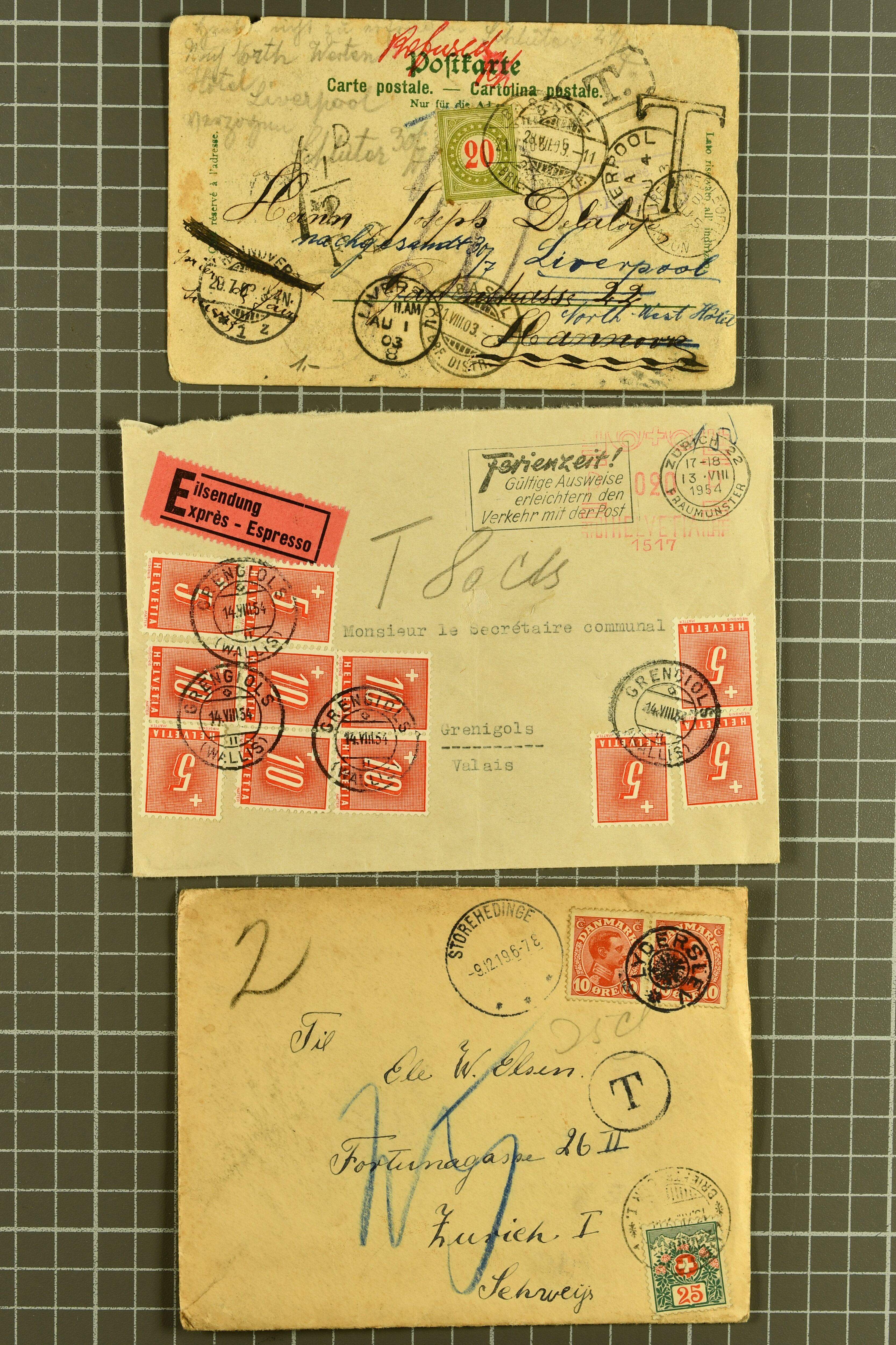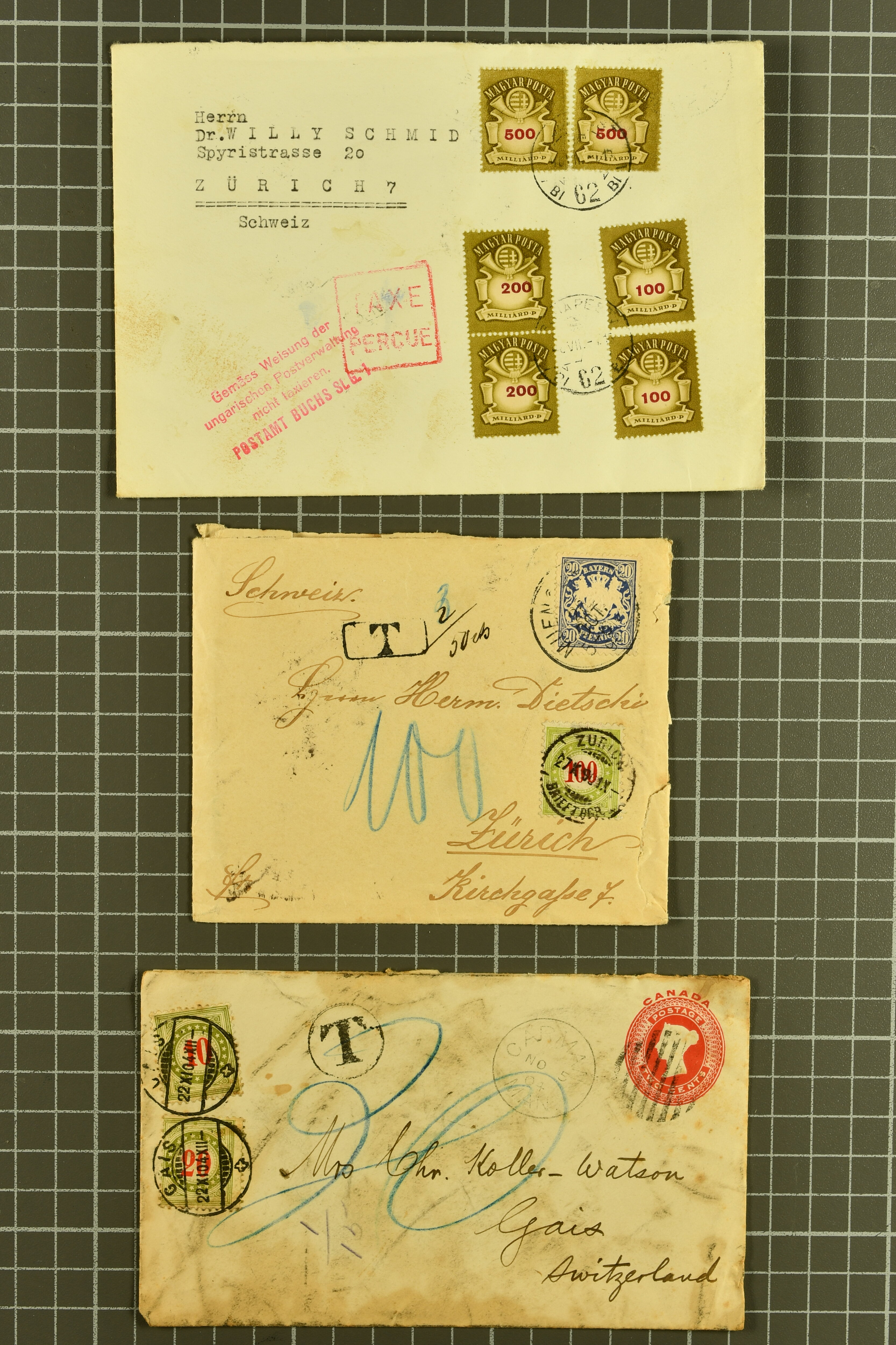 1890/1990ca: Umfangreicher und vielfältiger Bestand von Bedarfsbriefen mit Strafportomarken ab ca. 1890, in grosser Bandbreite in zwei prall gefüllten Lagerschachteln. Enthalten sind auch spätere Belege nach der