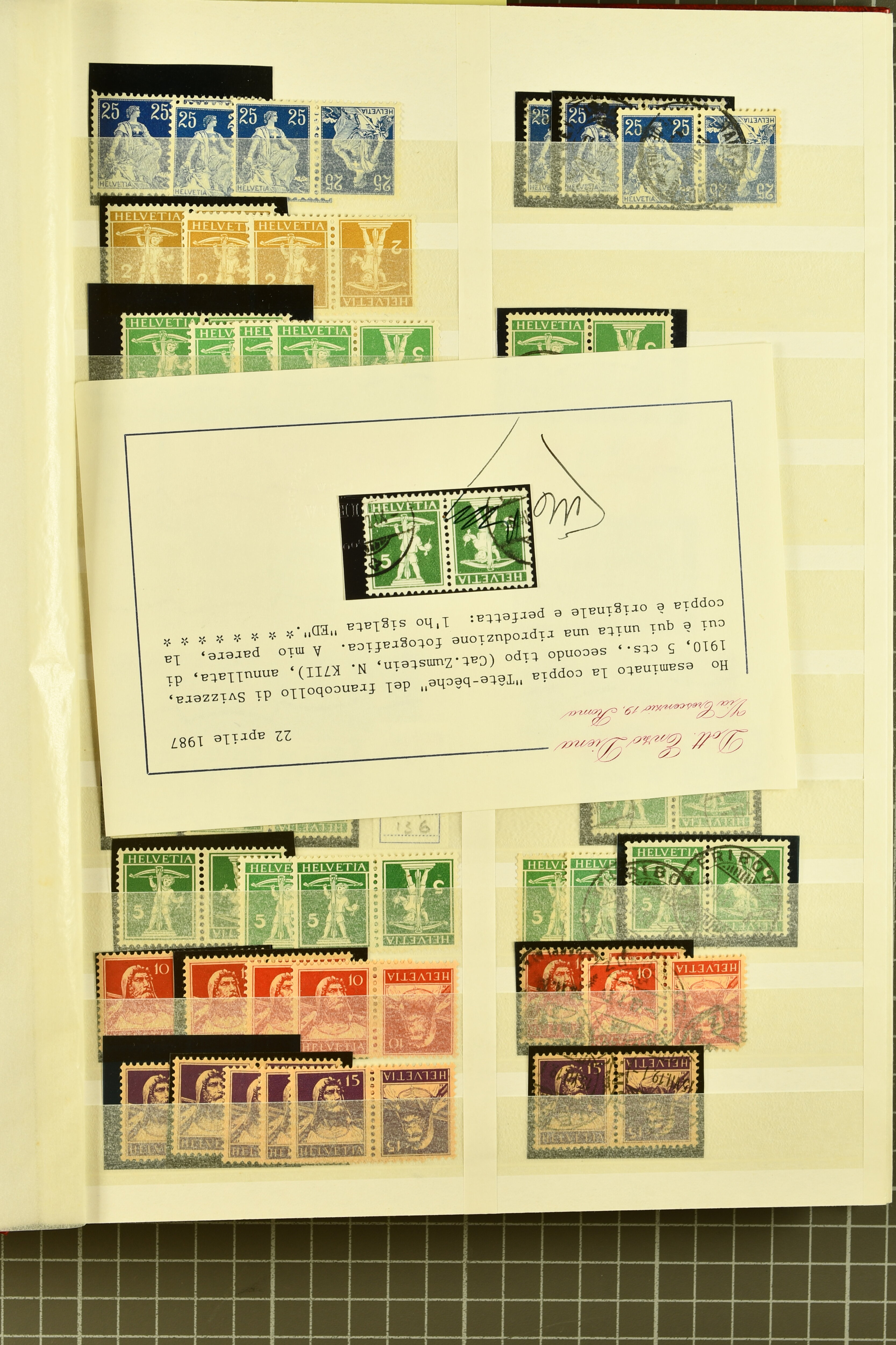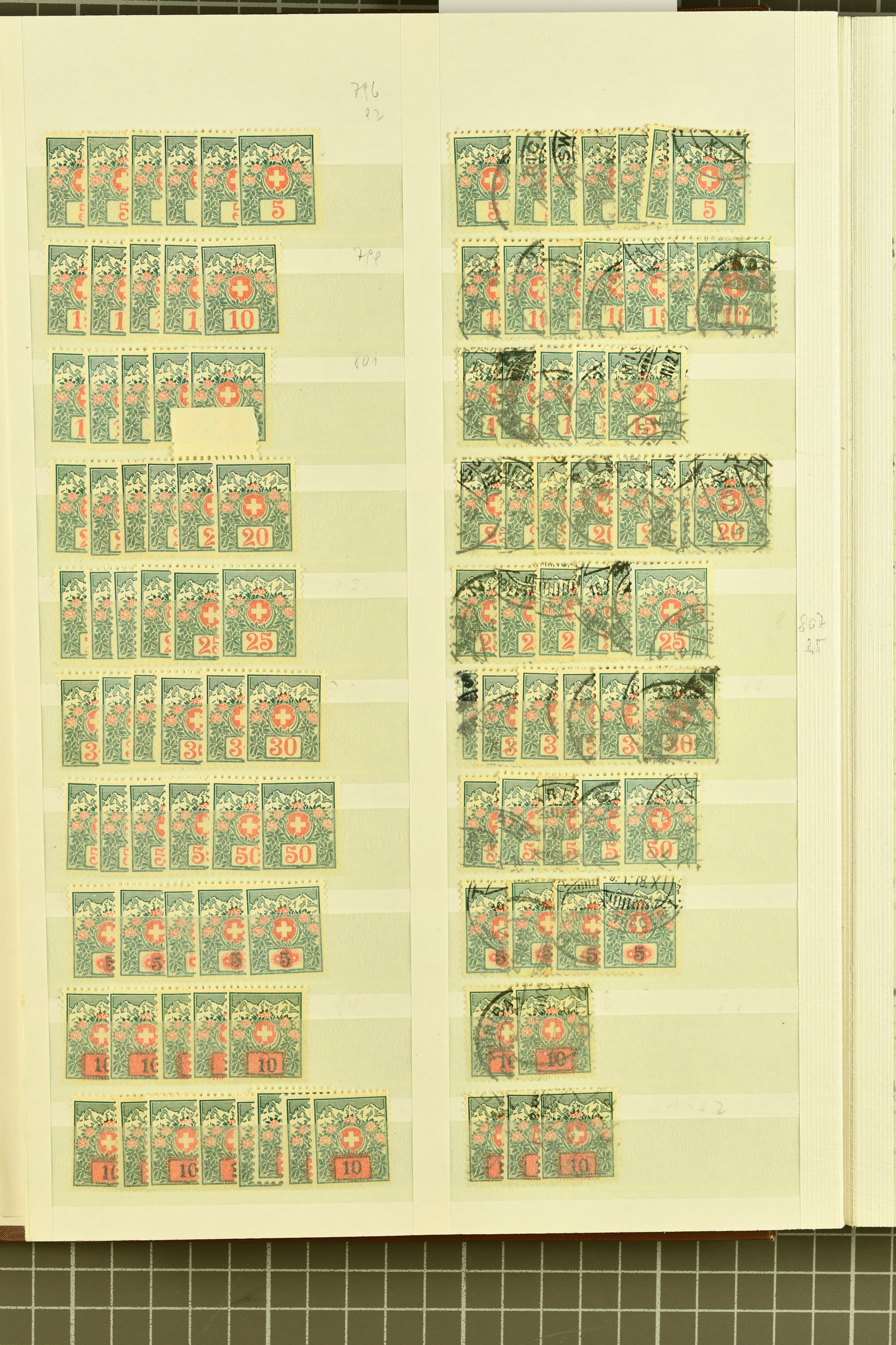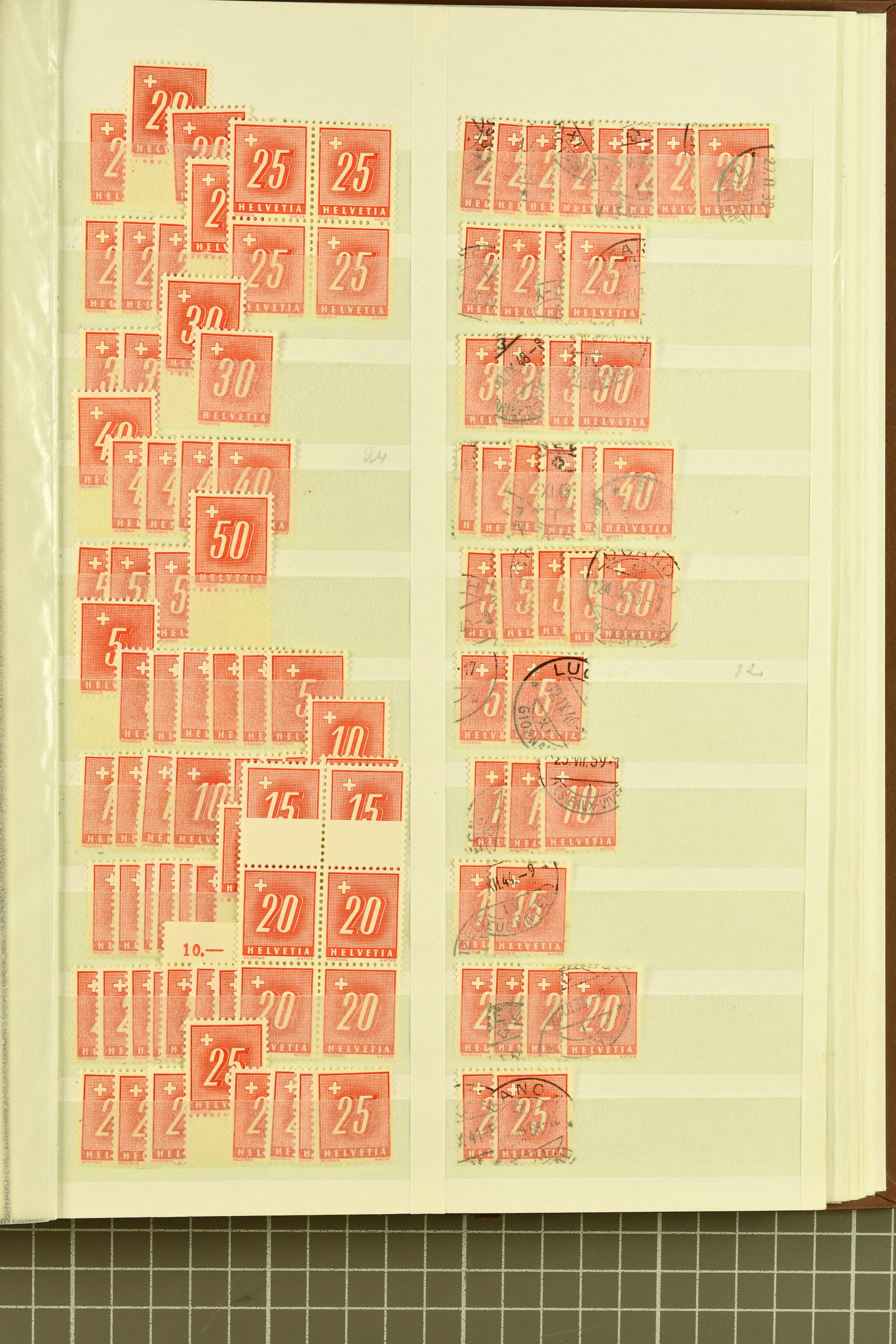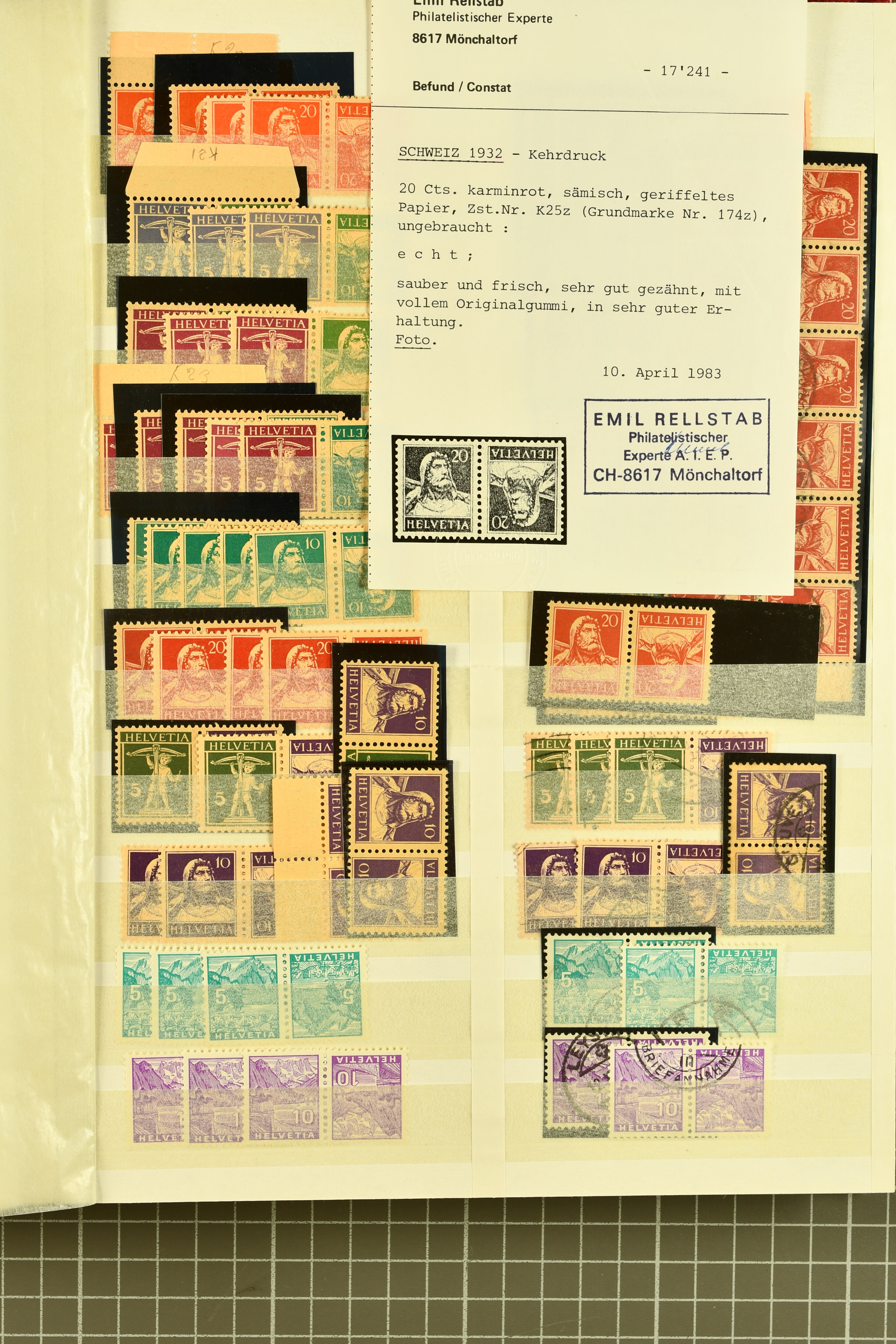 Zusammenhängende 1907/48ca: Lot hunderter gest. / ungest. Marken, dabei Kehrdrucke mit Tellbub 5 Rp. grün Type II in ungest. (2) und gest. Erhaltung, K11 Sennbub ungest. (8) und gest. auf Briefstück, K25z 20 Rp.