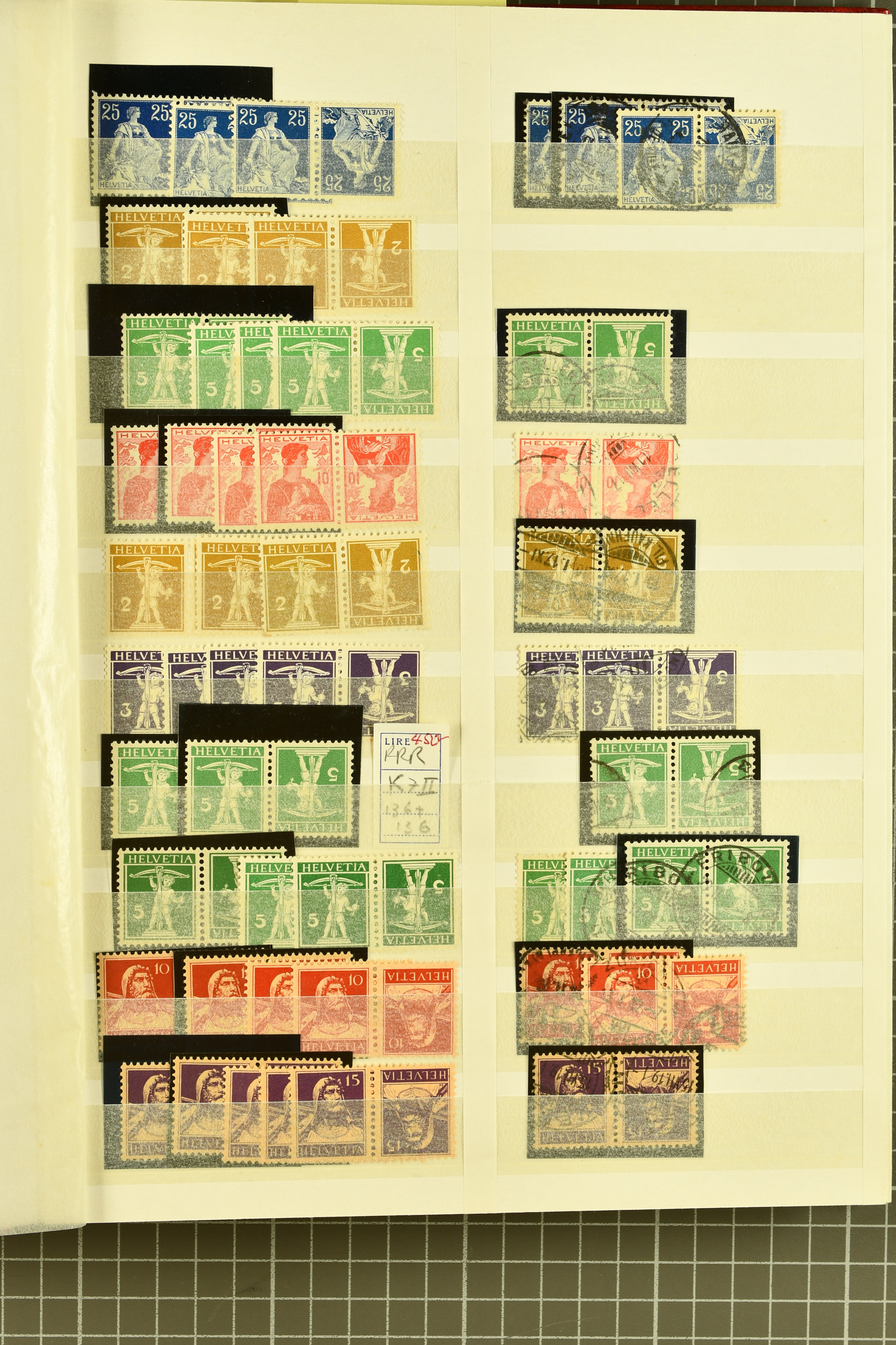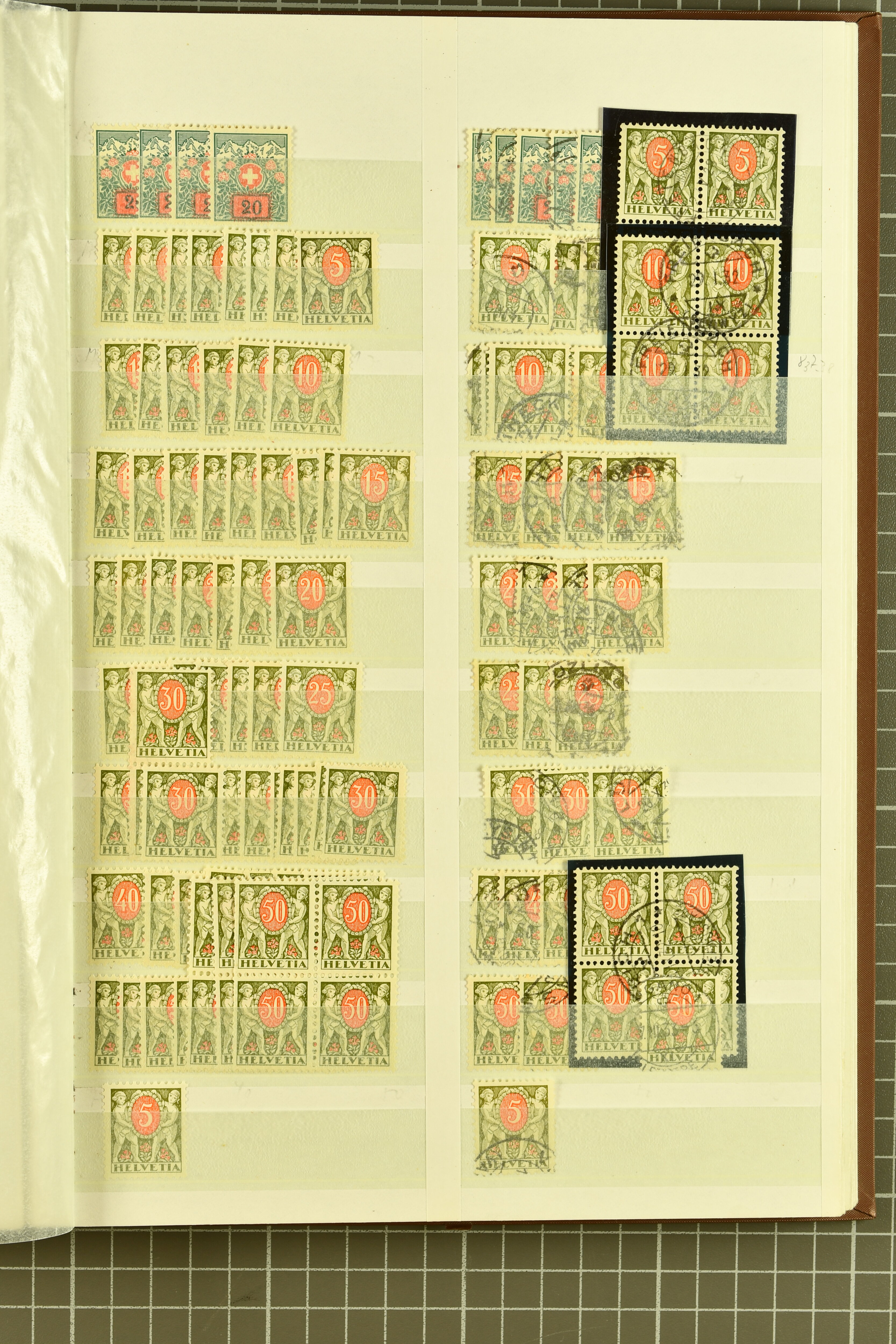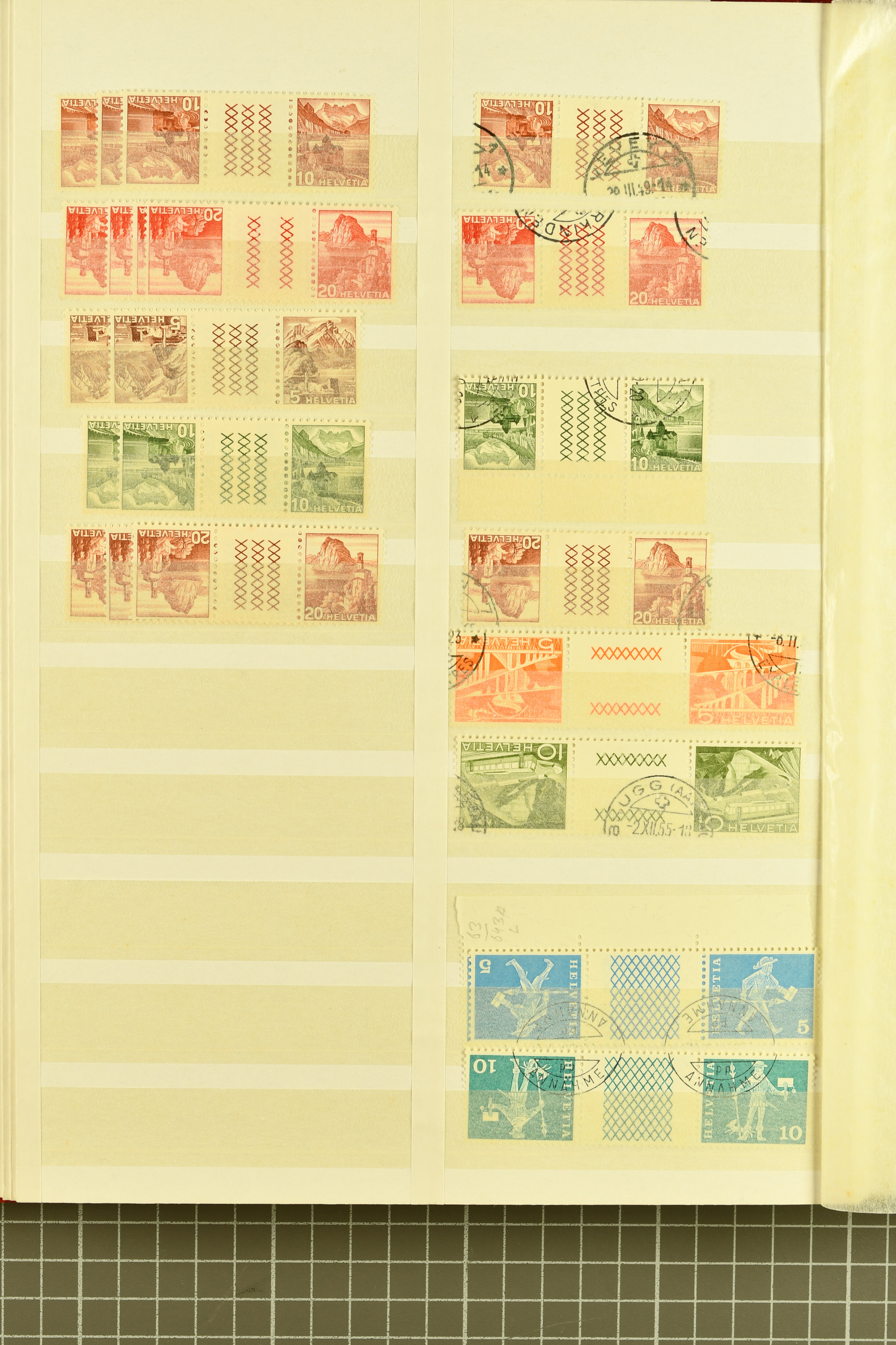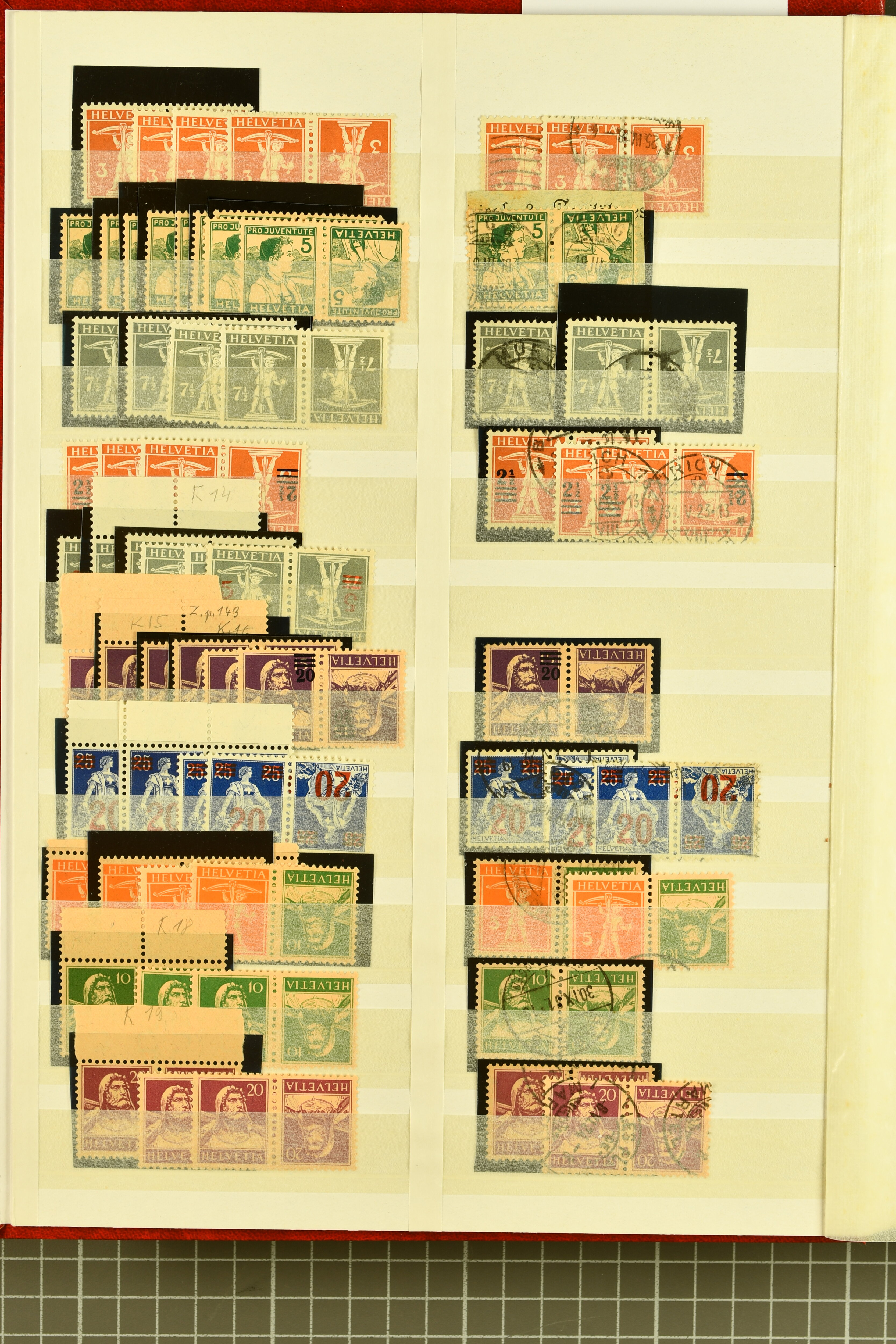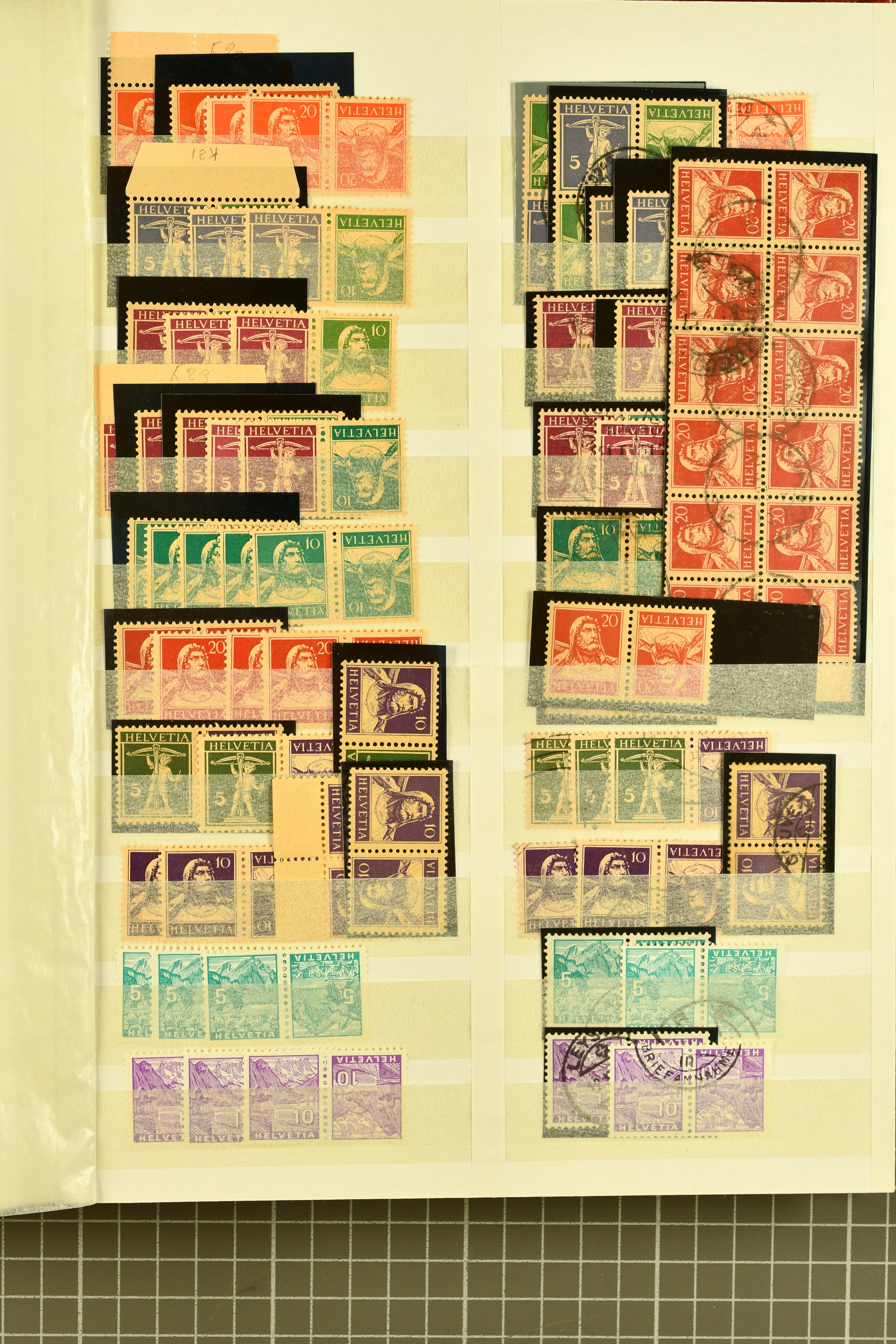 Zusammenhängende 1907/48ca: Lot hunderter gest. / ungest. Marken, dabei Kehrdrucke mit Tellbub 5 Rp. grün Type II in ungest. (2) und gest. Erhaltung, K11 Sennbub ungest. (8) und gest. auf Briefstück, K25z 20 Rp.