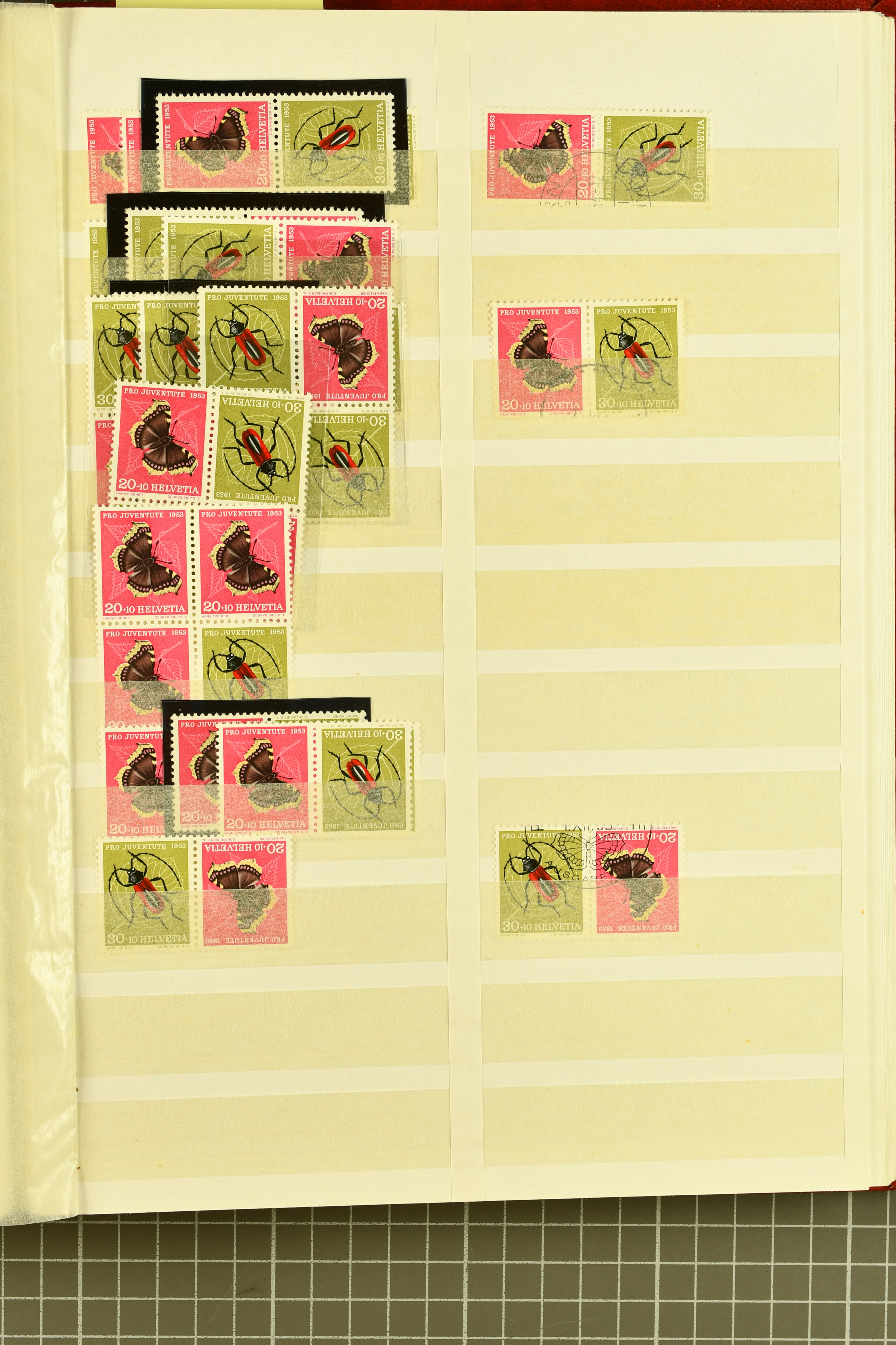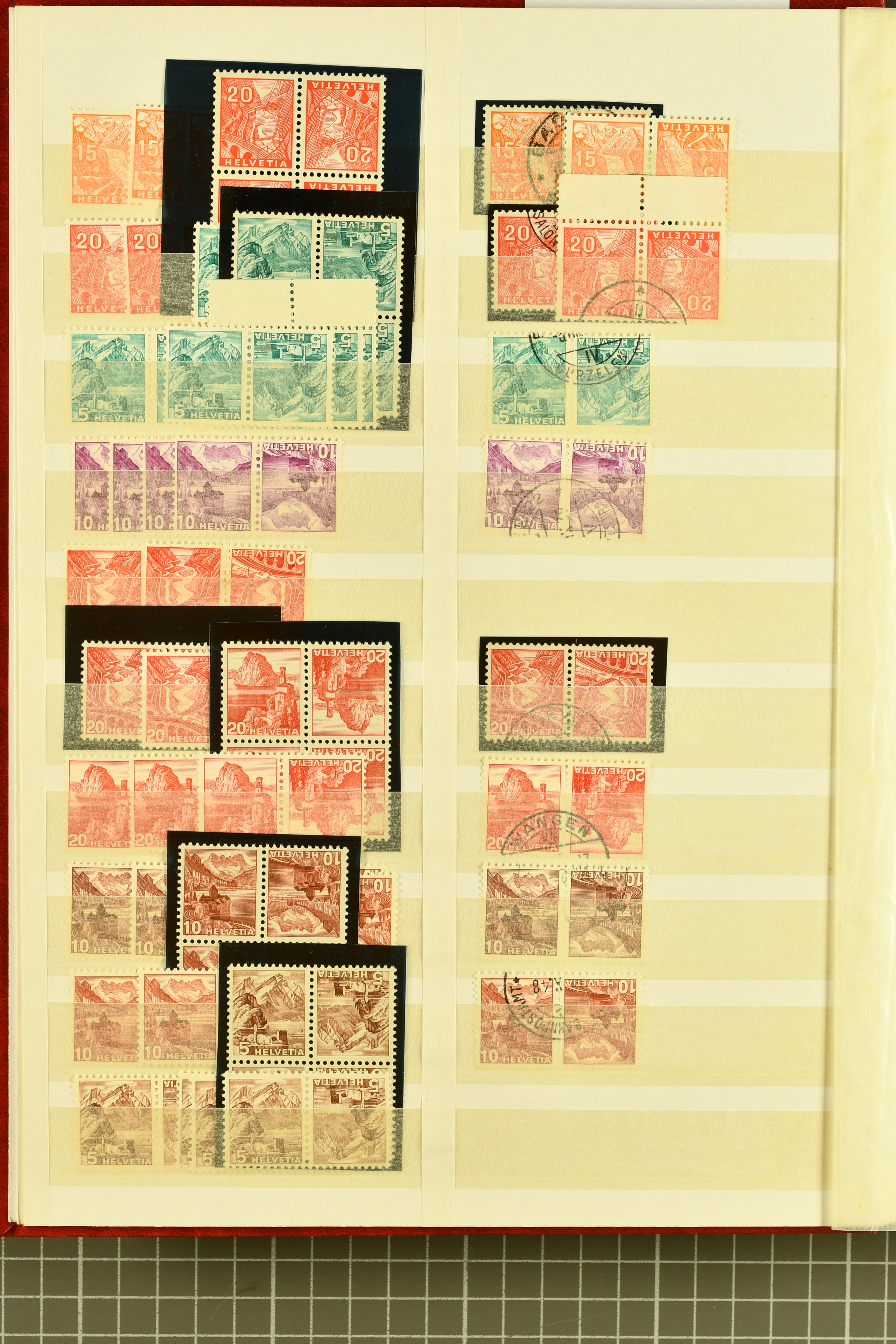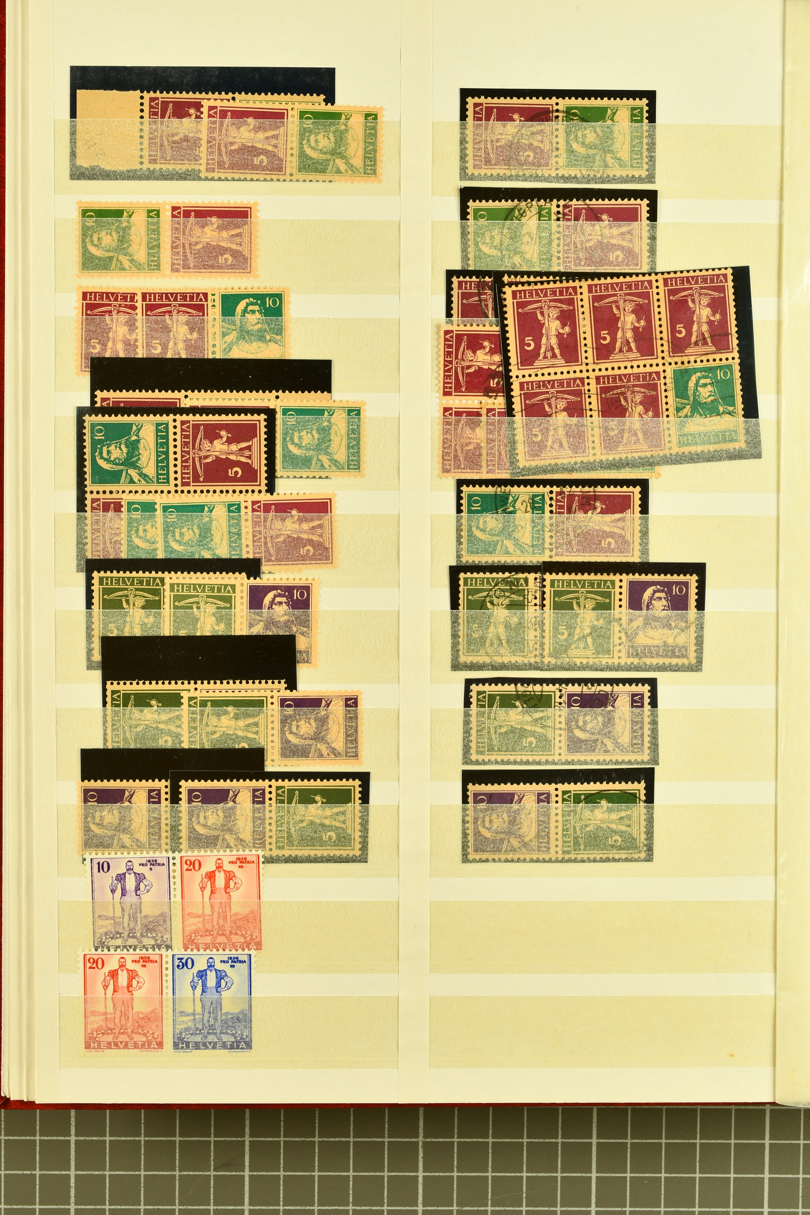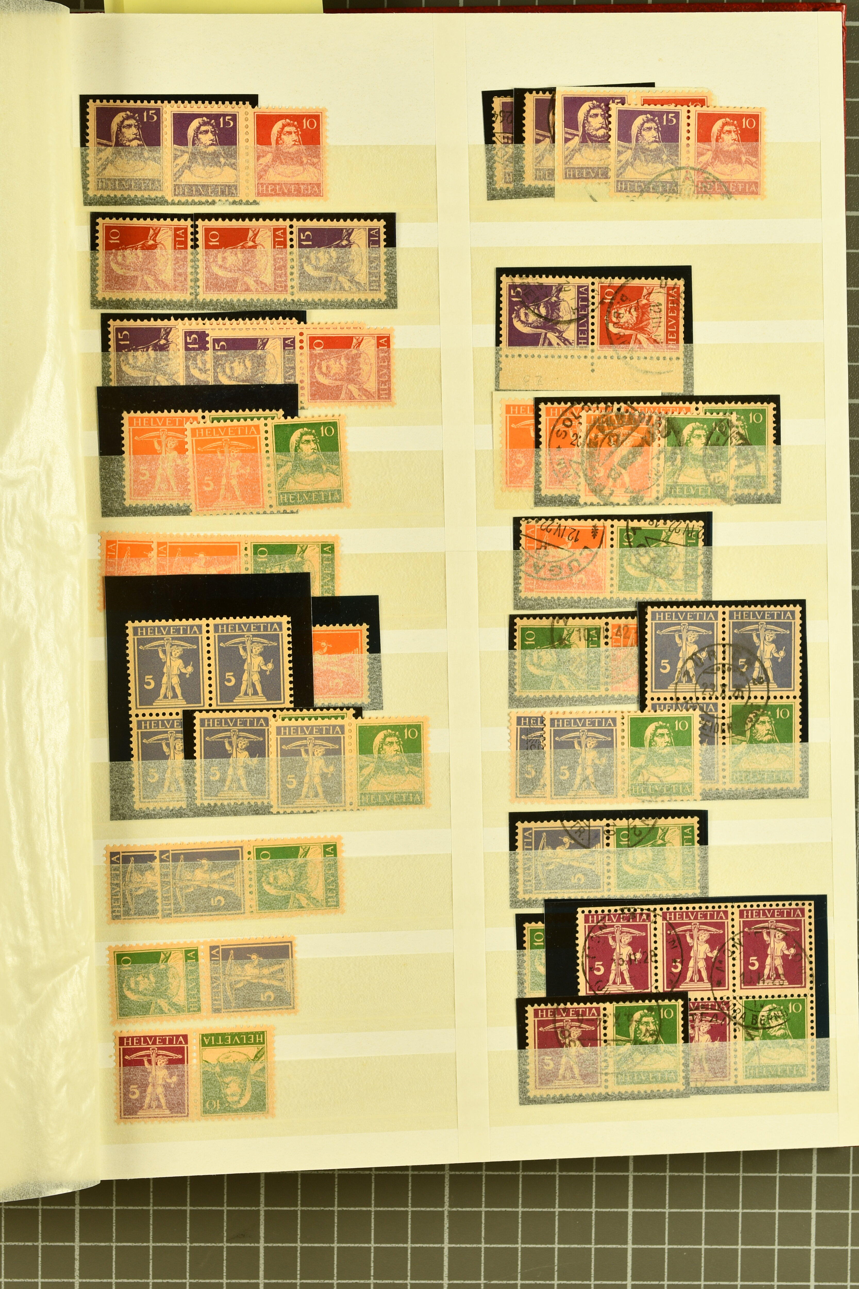 Zusammenhängende 1907/48ca: Lot hunderter gest. / ungest. Marken, dabei Kehrdrucke mit Tellbub 5 Rp. grün Type II in ungest. (2) und gest. Erhaltung, K11 Sennbub ungest. (8) und gest. auf Briefstück, K25z 20 Rp.