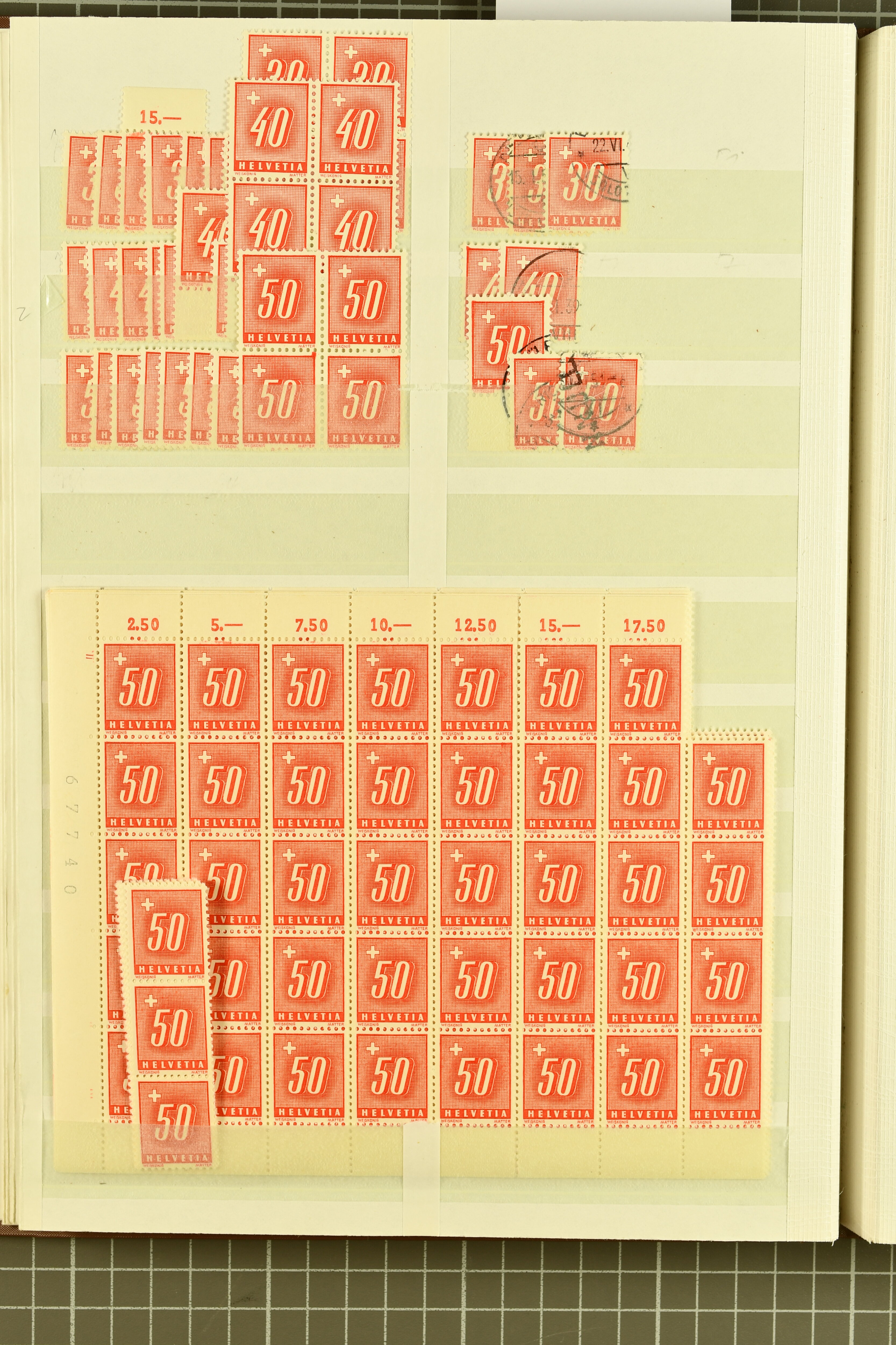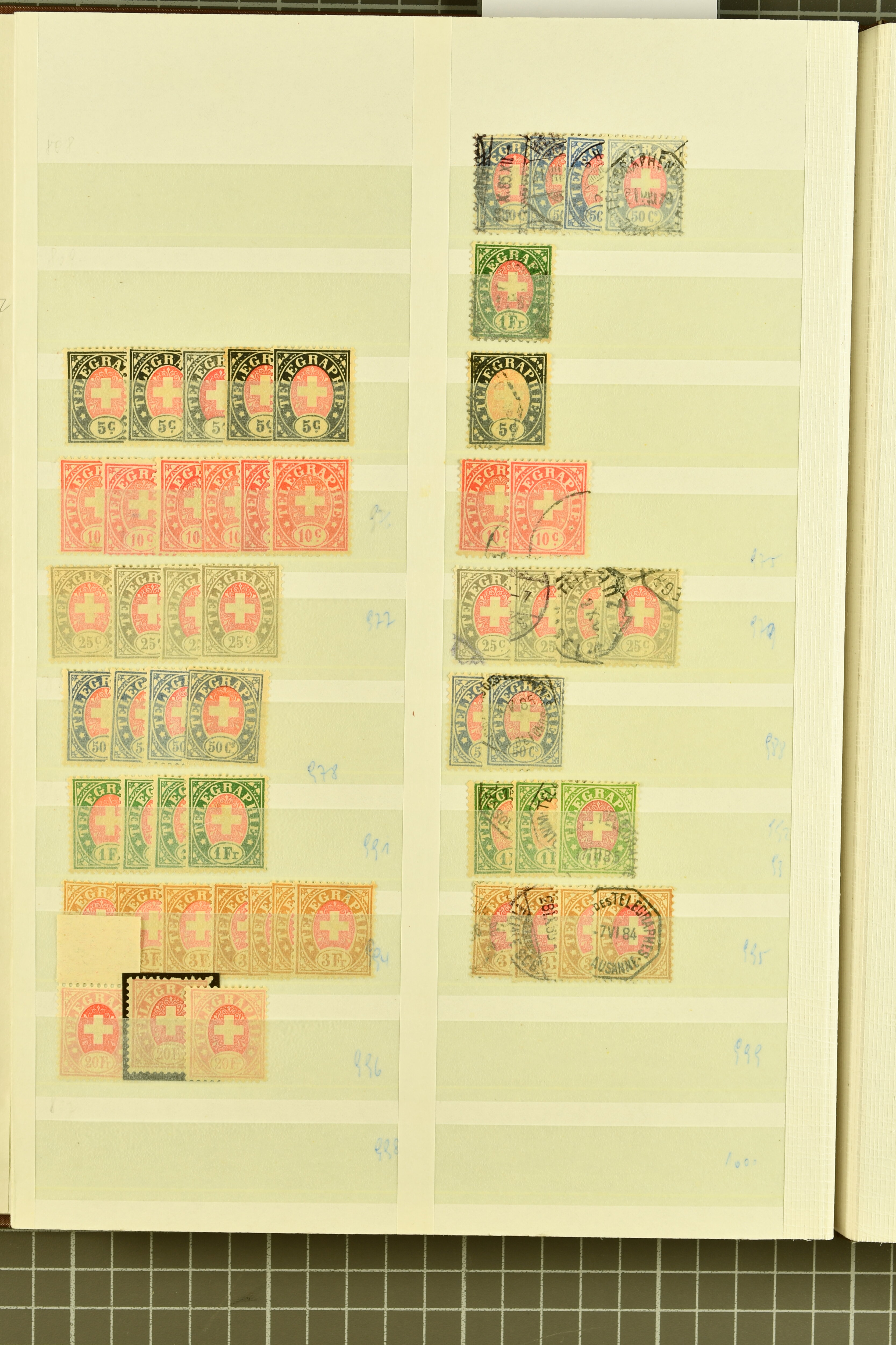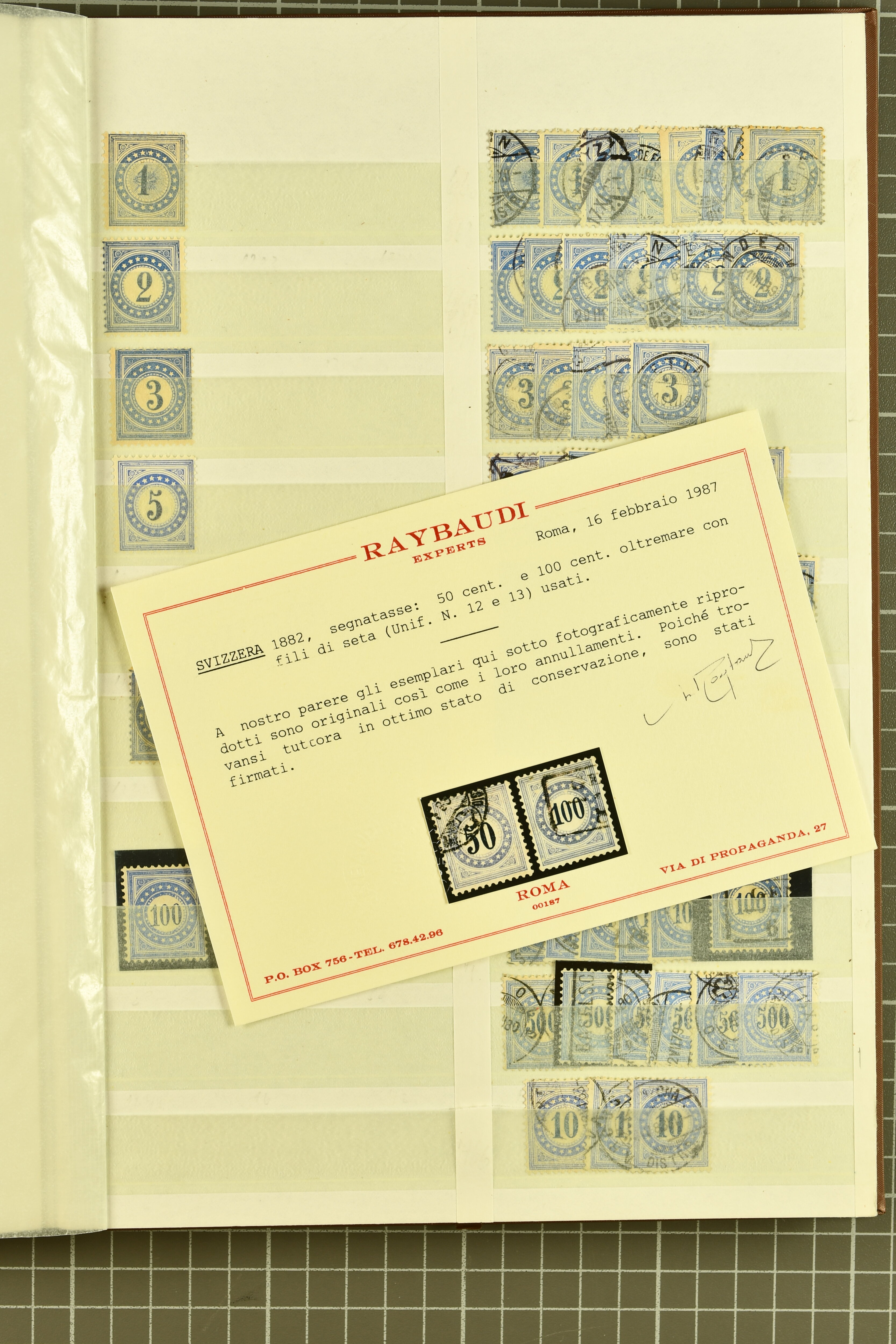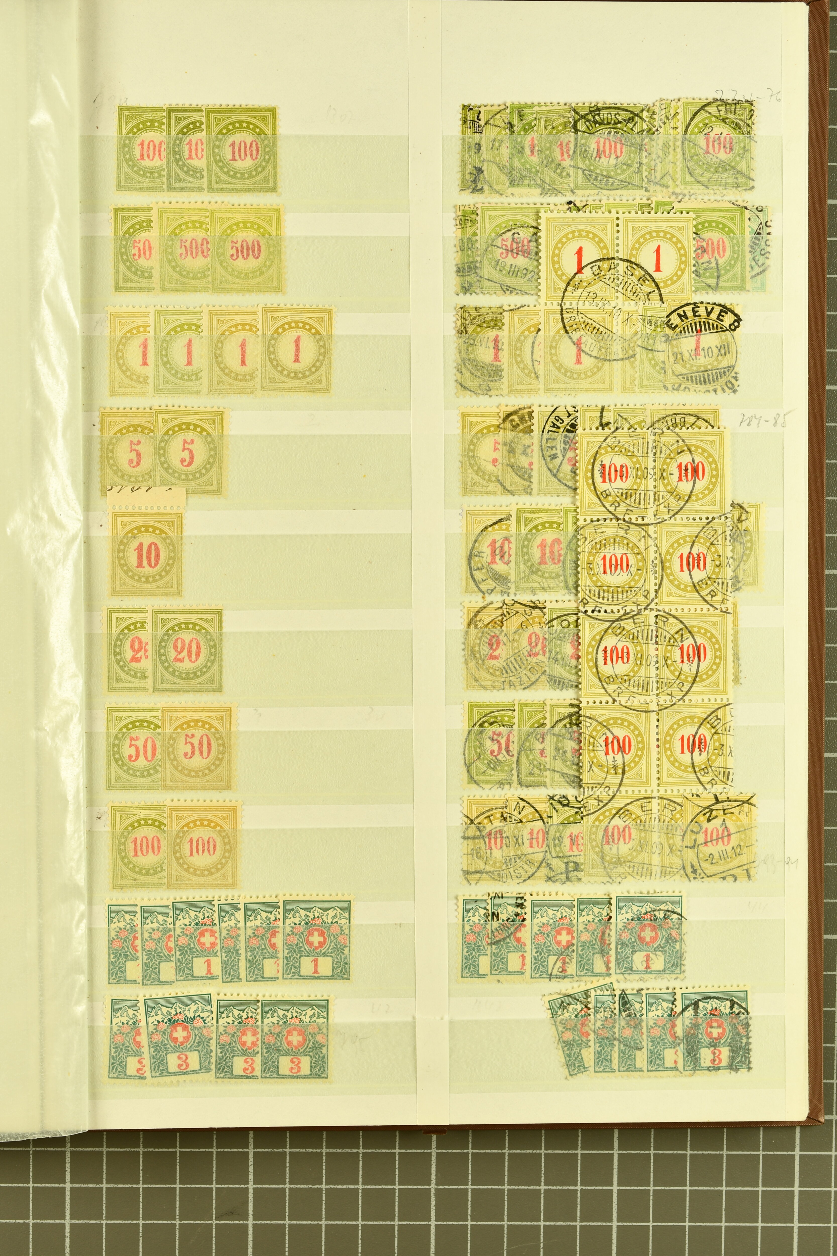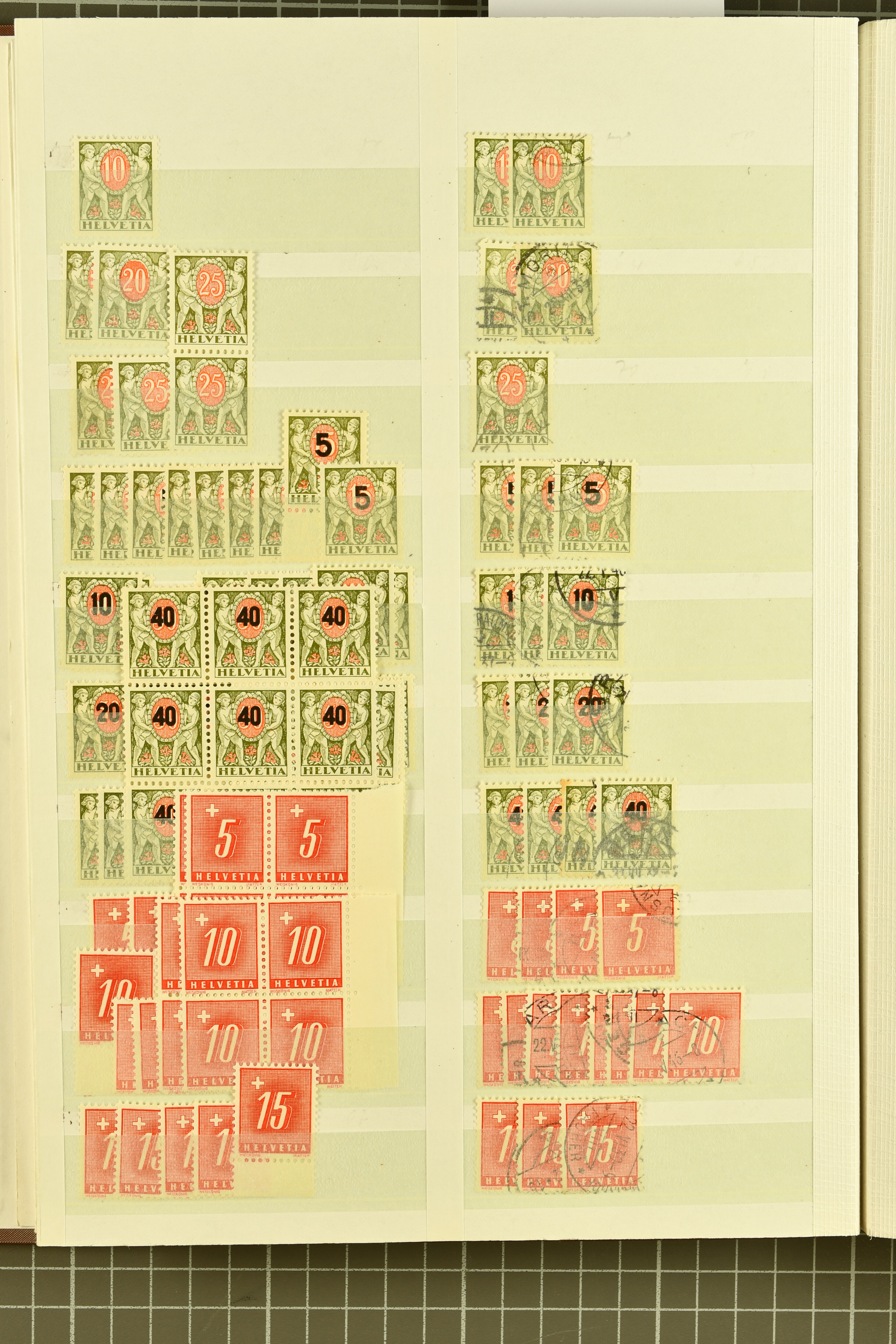 Portomarken 1878/1938: Lot hunderter Marken gest. / ungest., auch 1882 auf Faserpapier bis zu 500 Rp., auch die späteren Ausgaben z. T. in Einheiten; weiterhin Telegraphenmarken auf weissem und Faserpapier. In
