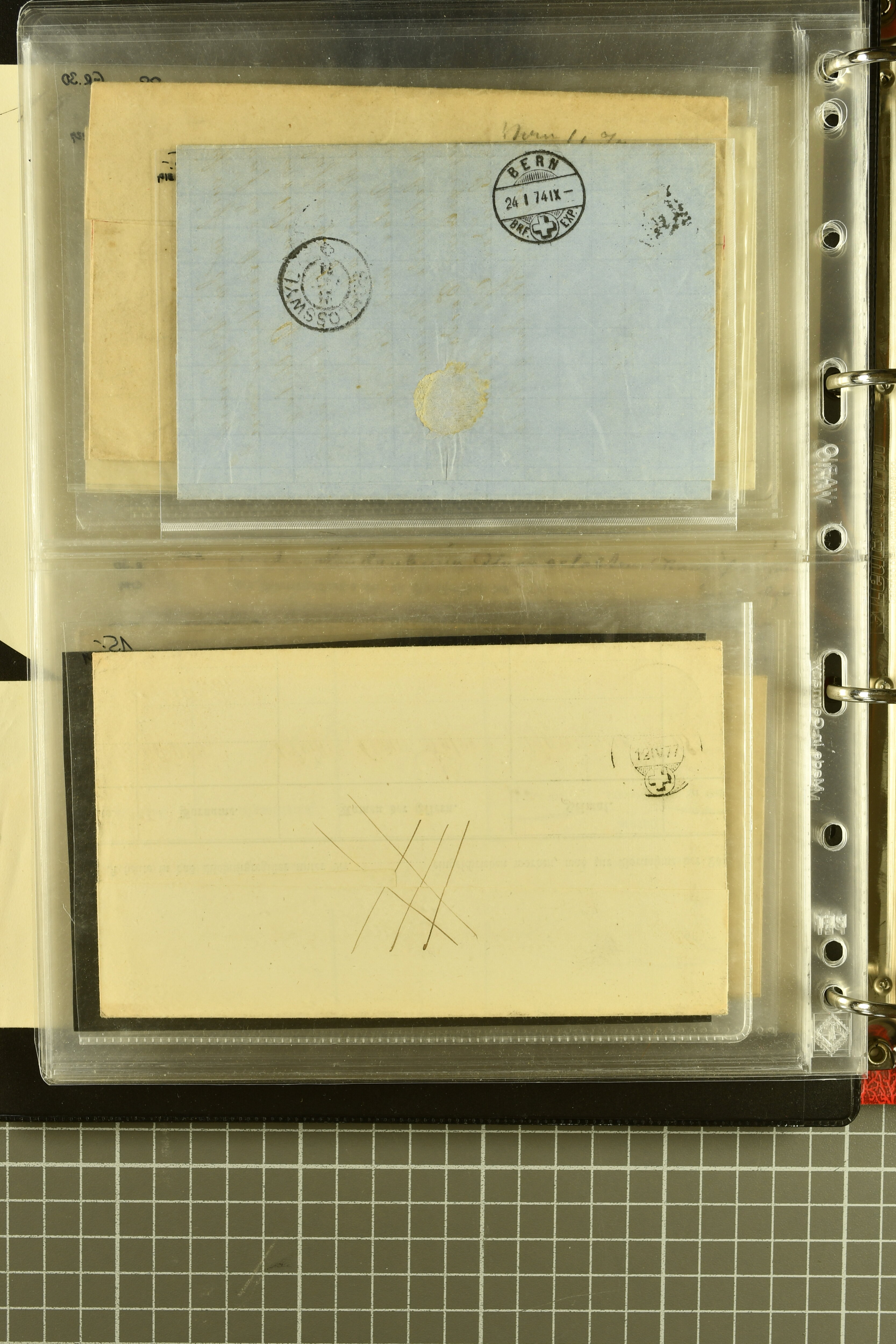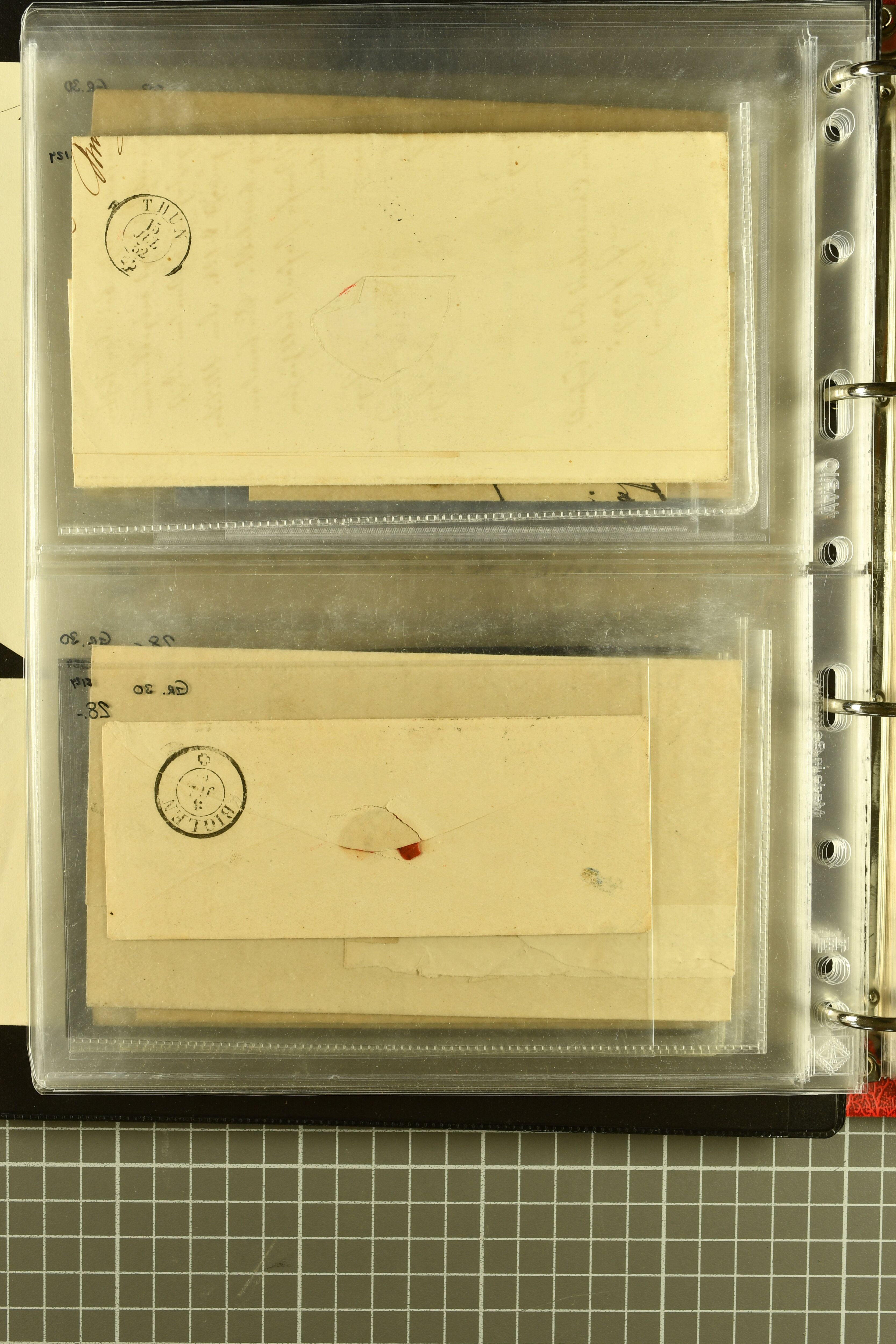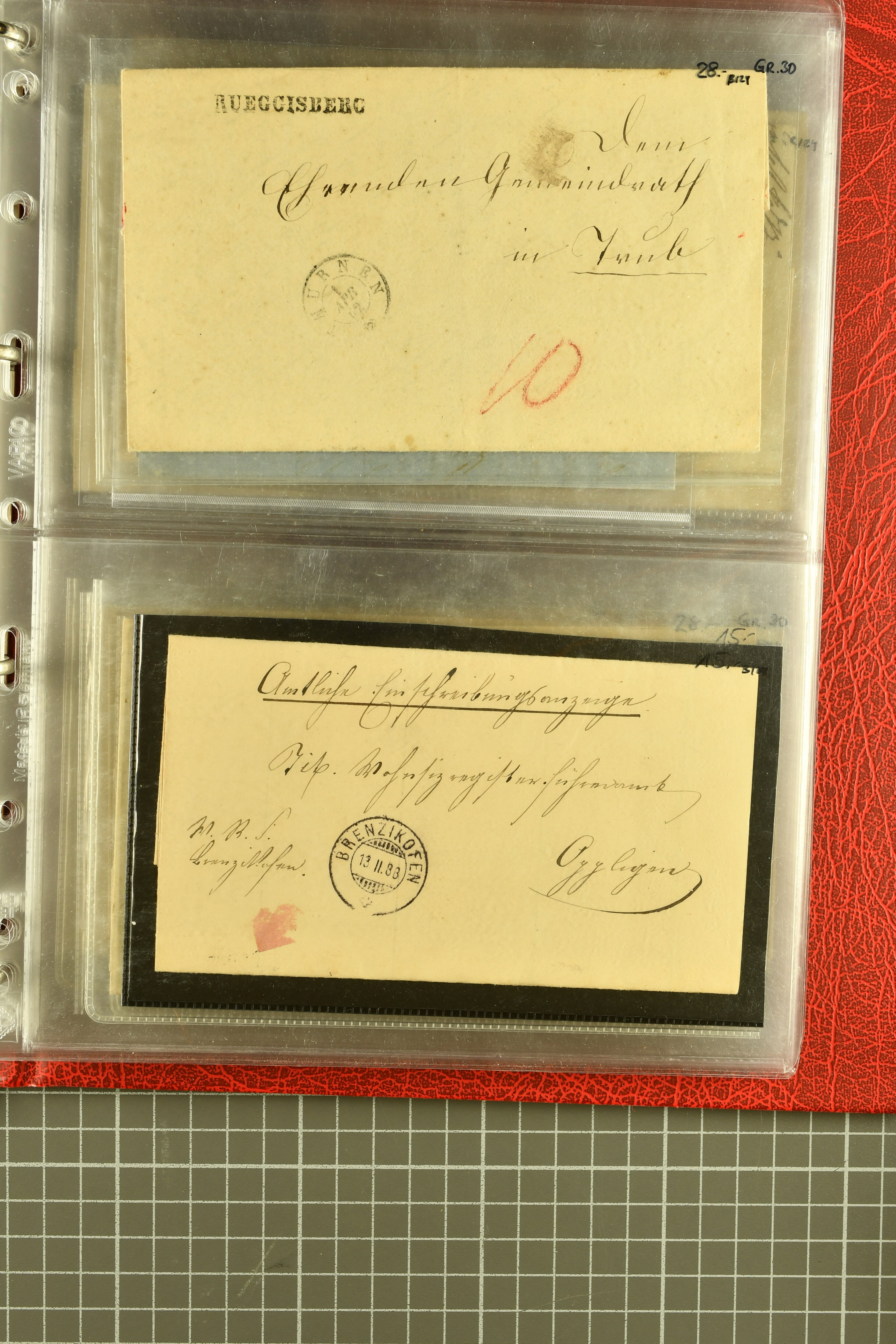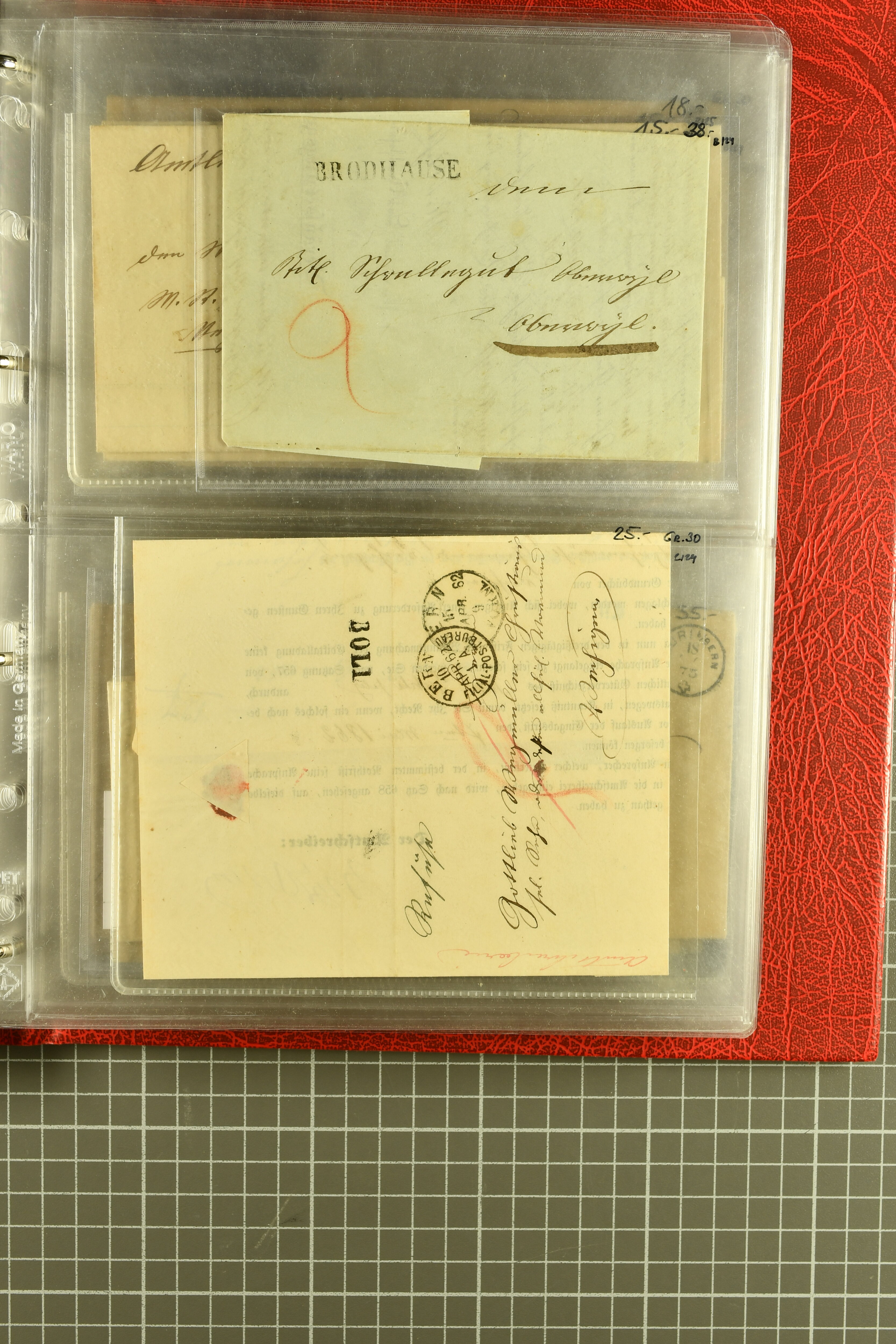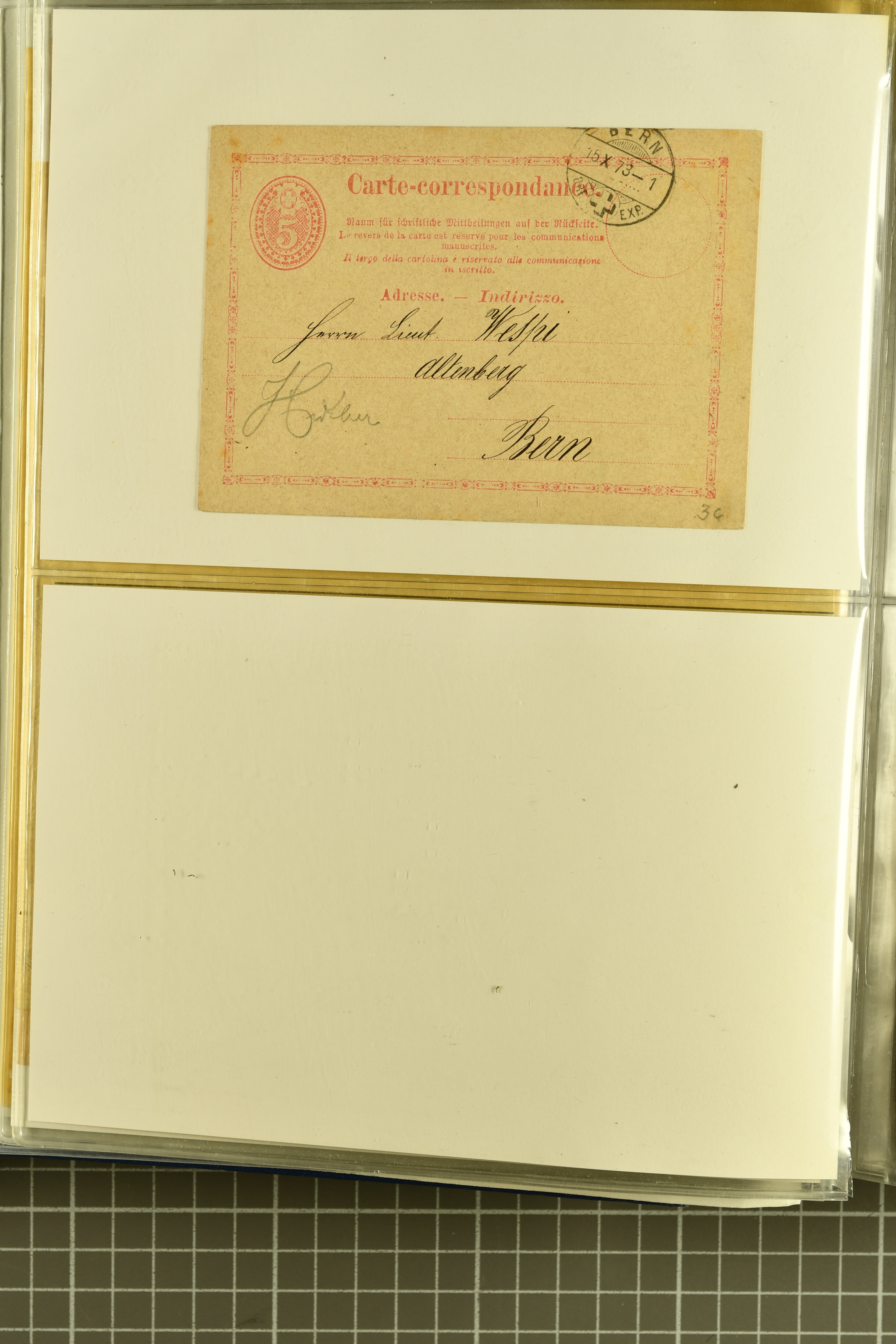 9873 cover imageKt. Bern 1835/1909: Lot 50 Briefe, dabei 1853 Rayon III Typen 7 & 9 auf Einschreibebrief gest. "Bern 8 Feb. 53 DB" (Befund Marchand), Chargé-Brief frankiert mit Sitz. Helvetia 20 Rp. von Blankenburg, Ziffer 15 Rp. gelb auf Nachnahme von "Rüthi b/Riggisberg 12.1.88" nach Schwarzenburg, weiter div. amtliche Briefe ohne Marken aus dem Kanton Bern, dabei Brief vom 'Statthalteramt Seftigen via Belp (1854) nach Schwarzenburg, dazu Stabstp. auf Briefen von Brodhaus nach Oberwyl, Amsoldingen, Boll, Boltigen, Gunten, Heimberg, Kehrsatz, Mülinen, Oberwyl, Reutigen, Rueggisberg, Wangen, Zweisimmen. Ein schönes Angebot (Image 1) (Image 2) (Image 3) (Image 4) (Image 5) (Image 6) (Image 7) (Image 8) (Image 9) (Image 10) (Image 11) (Image 12) (Image 13) (Image 14) (Image 15) (Image 16) (Image 17) (Image 18) (Image 19) (Image 20) (Image 21) (Image 22) (Image 23) (Image 24) (Image 25) (Image 26) (Image 27) (Image 28) (Image 29) (Image 30) (Image 31) (Image 32) (Image 33) (Image 34) (Image 35) (Image 36) (Image 37) (Image 38) (Image 39) (Image 40) (Image 41) (Image 42) (Image 43) (Image 44) (Image 45) (Image 46) (Image 47) (Image 48) (Image 49) (Image 50)