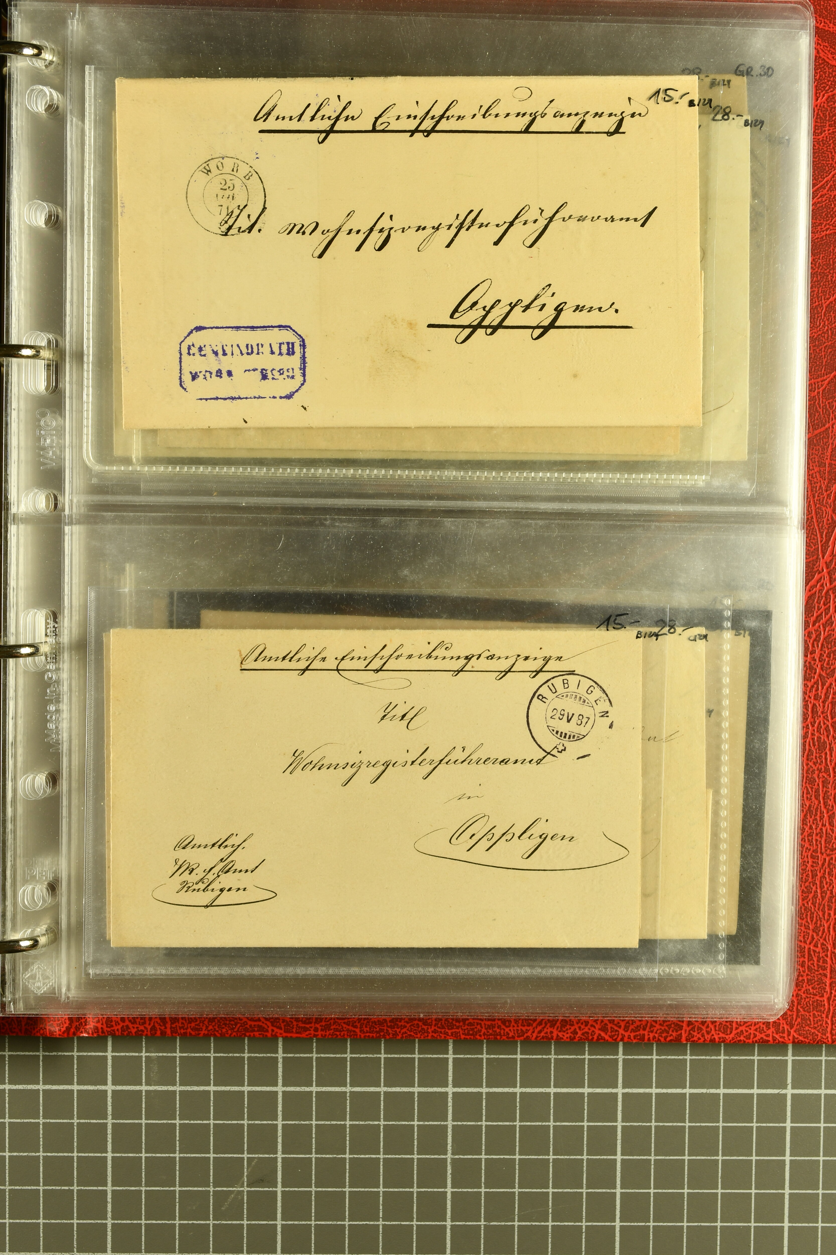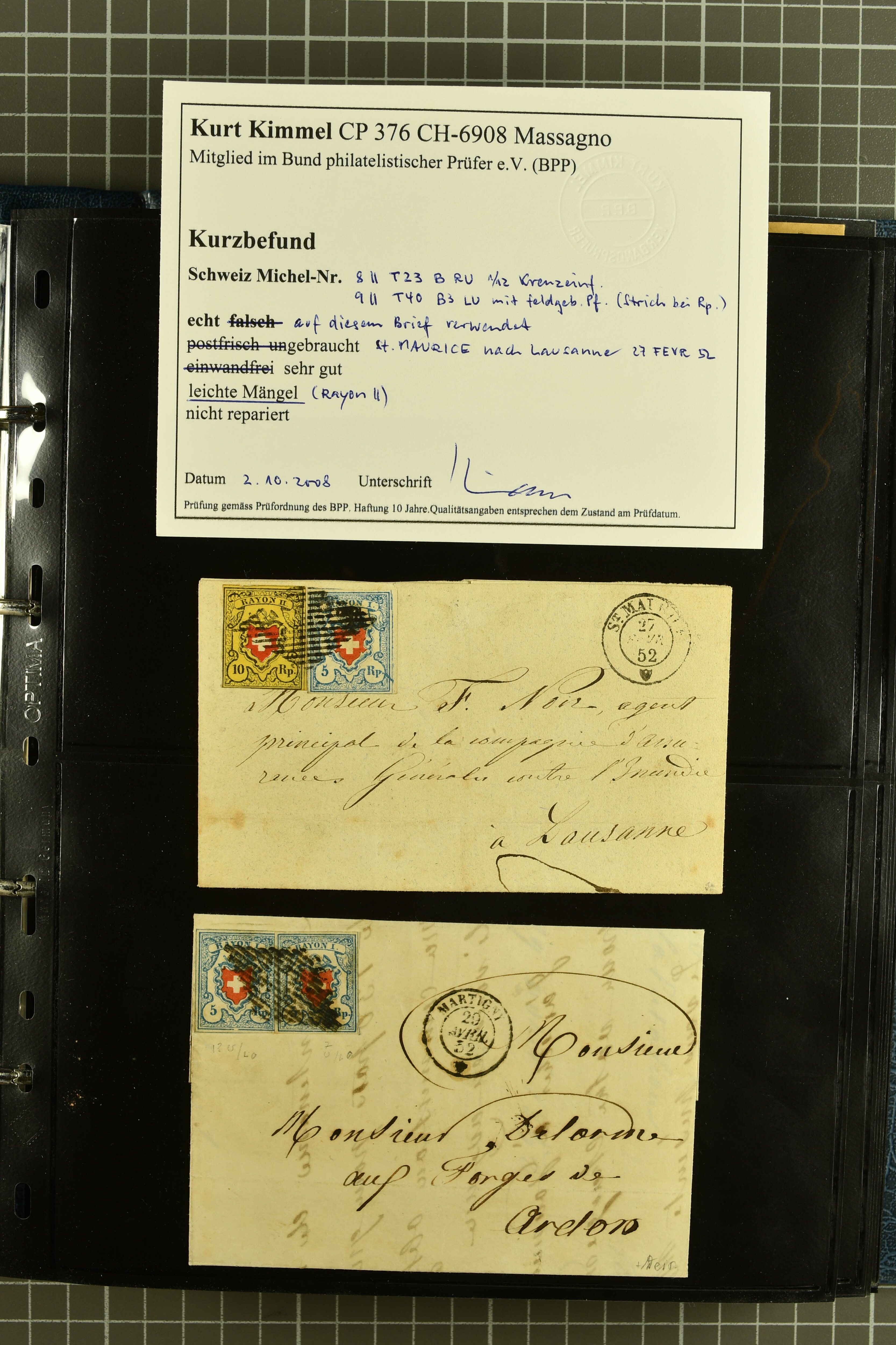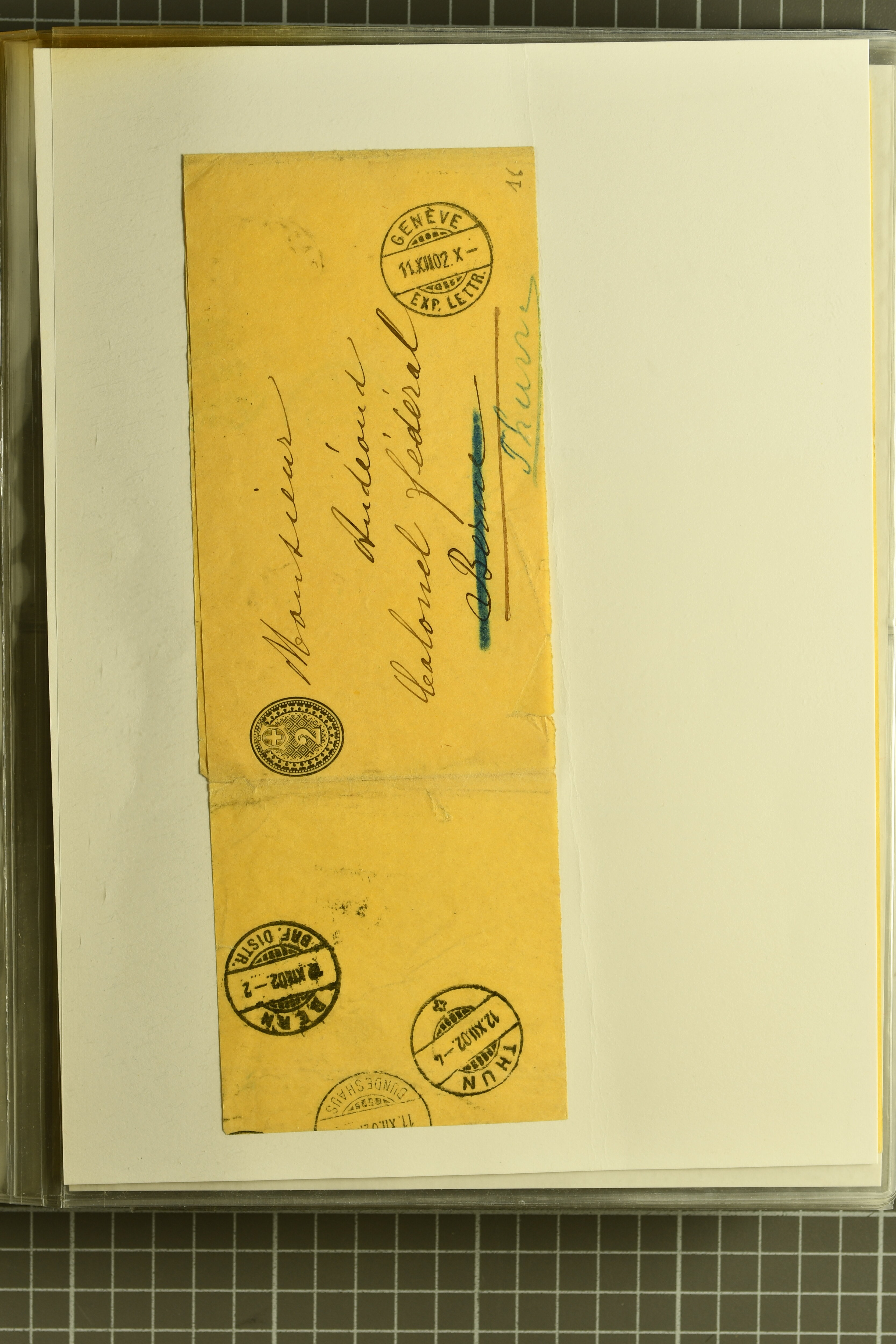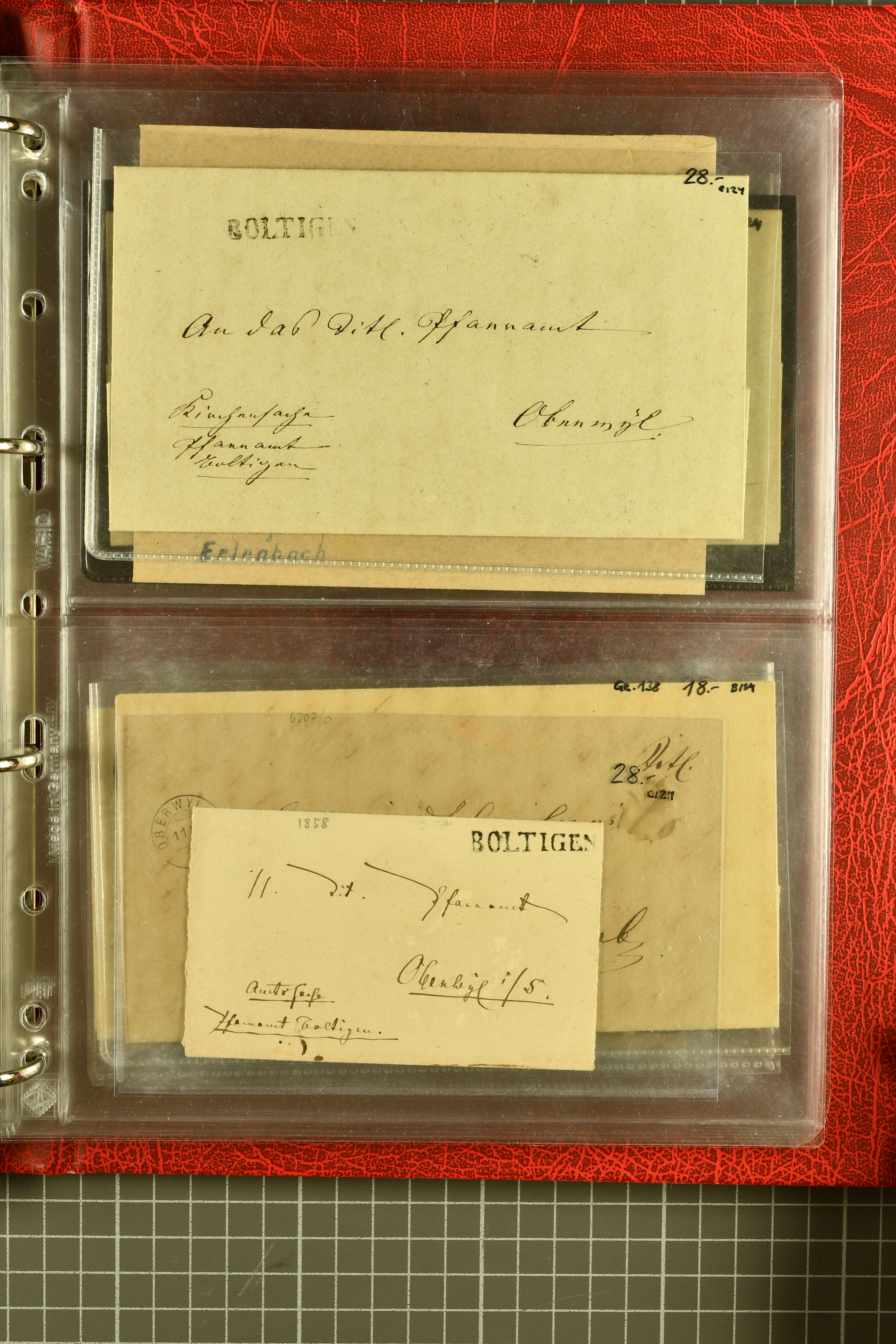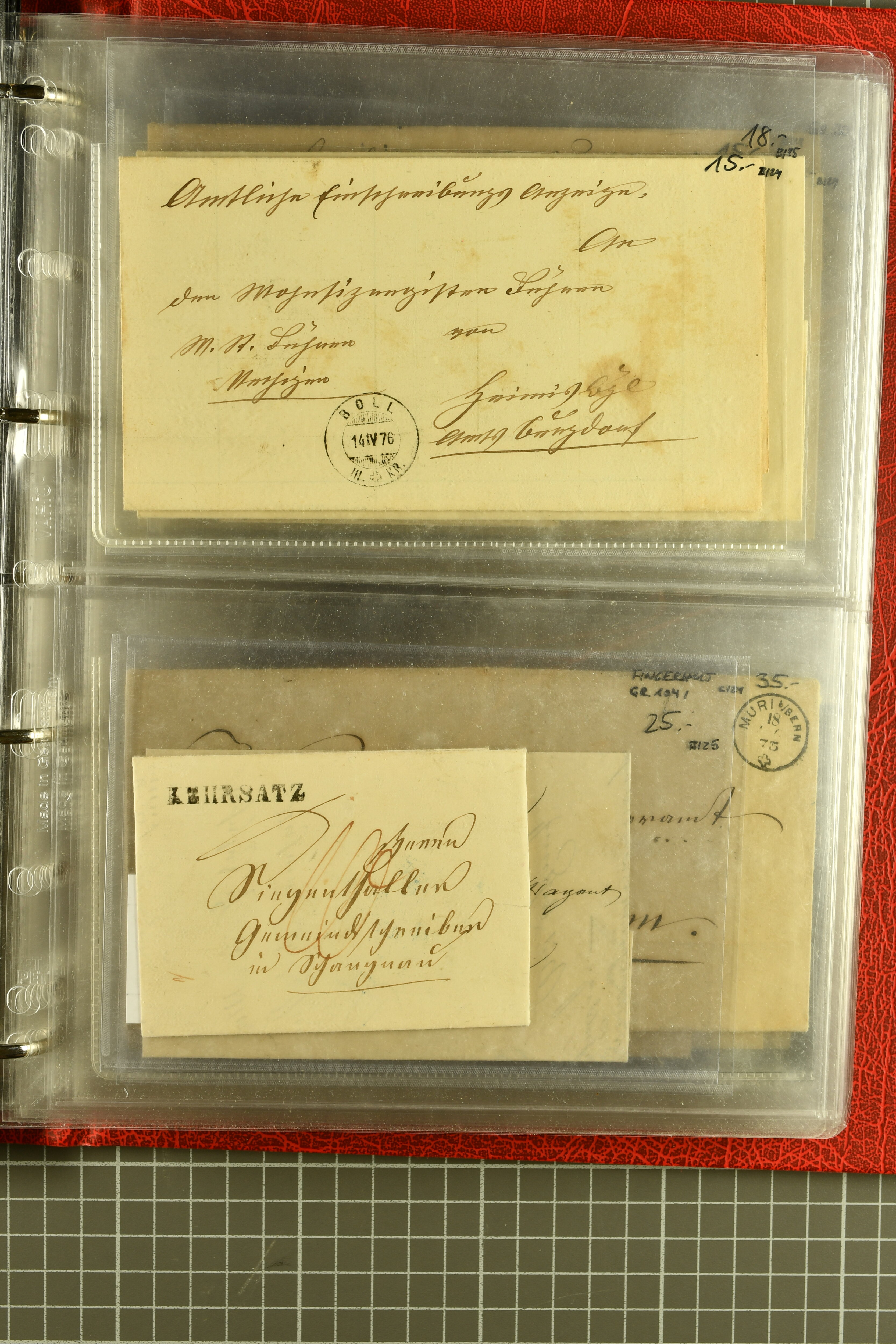 9873 cover imageKt. Bern 1835/1909: Lot 50 Briefe, dabei 1853 Rayon III Typen 7 & 9 auf Einschreibebrief gest. "Bern 8 Feb. 53 DB" (Befund Marchand), Chargé-Brief frankiert mit Sitz. Helvetia 20 Rp. von Blankenburg, Ziffer 15 Rp. gelb auf Nachnahme von "Rüthi b/Riggisberg 12.1.88" nach Schwarzenburg, weiter div. amtliche Briefe ohne Marken aus dem Kanton Bern, dabei Brief vom 'Statthalteramt Seftigen via Belp (1854) nach Schwarzenburg, dazu Stabstp. auf Briefen von Brodhaus nach Oberwyl, Amsoldingen, Boll, Boltigen, Gunten, Heimberg, Kehrsatz, Mülinen, Oberwyl, Reutigen, Rueggisberg, Wangen, Zweisimmen. Ein schönes Angebot (Image 1) (Image 2) (Image 3) (Image 4) (Image 5) (Image 6) (Image 7) (Image 8) (Image 9) (Image 10) (Image 11) (Image 12) (Image 13) (Image 14) (Image 15) (Image 16) (Image 17) (Image 18) (Image 19) (Image 20) (Image 21) (Image 22) (Image 23) (Image 24) (Image 25) (Image 26) (Image 27) (Image 28) (Image 29) (Image 30) (Image 31) (Image 32) (Image 33) (Image 34) (Image 35) (Image 36) (Image 37) (Image 38) (Image 39) (Image 40) (Image 41) (Image 42) (Image 43) (Image 44) (Image 45) (Image 46) (Image 47) (Image 48) (Image 49) (Image 50)