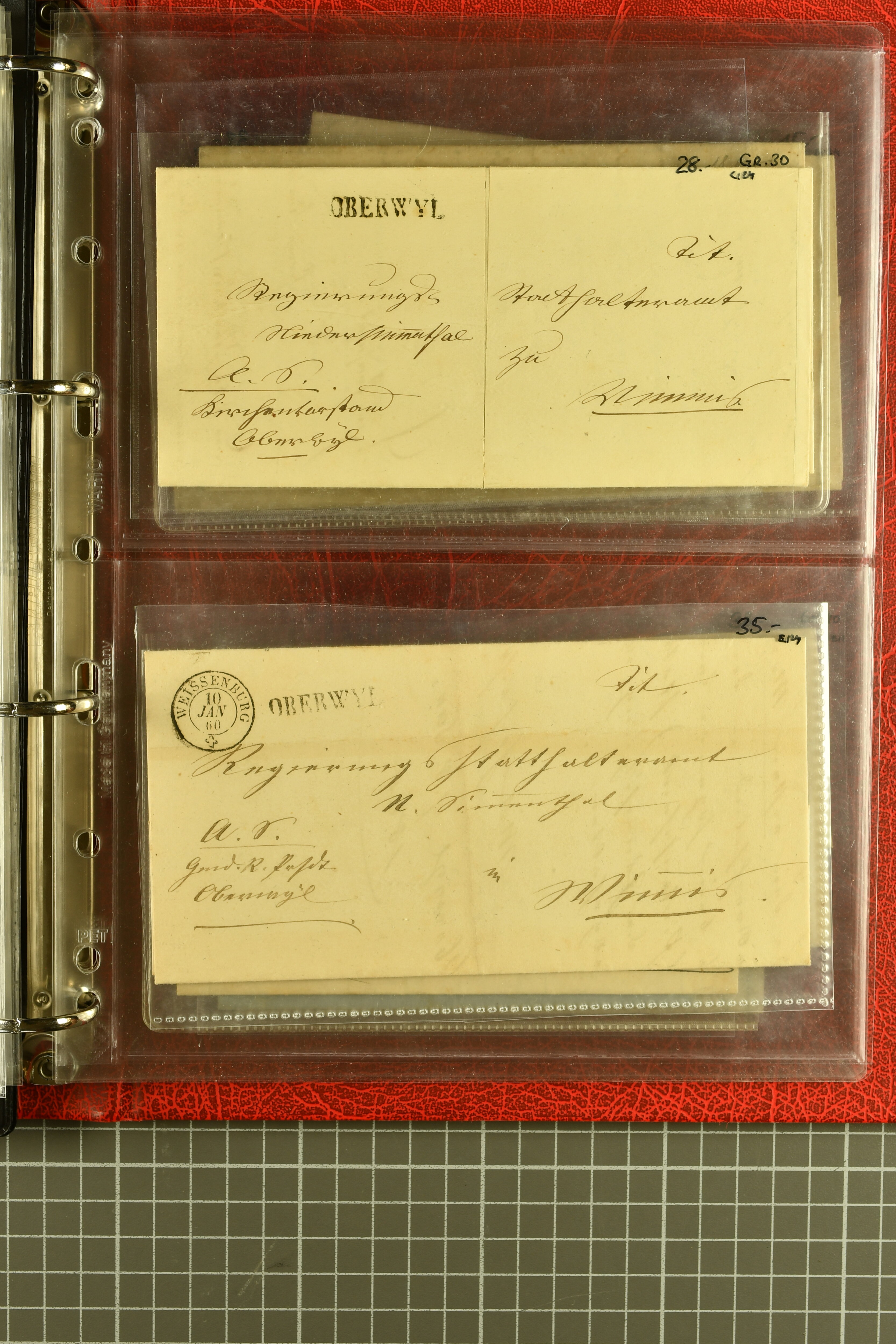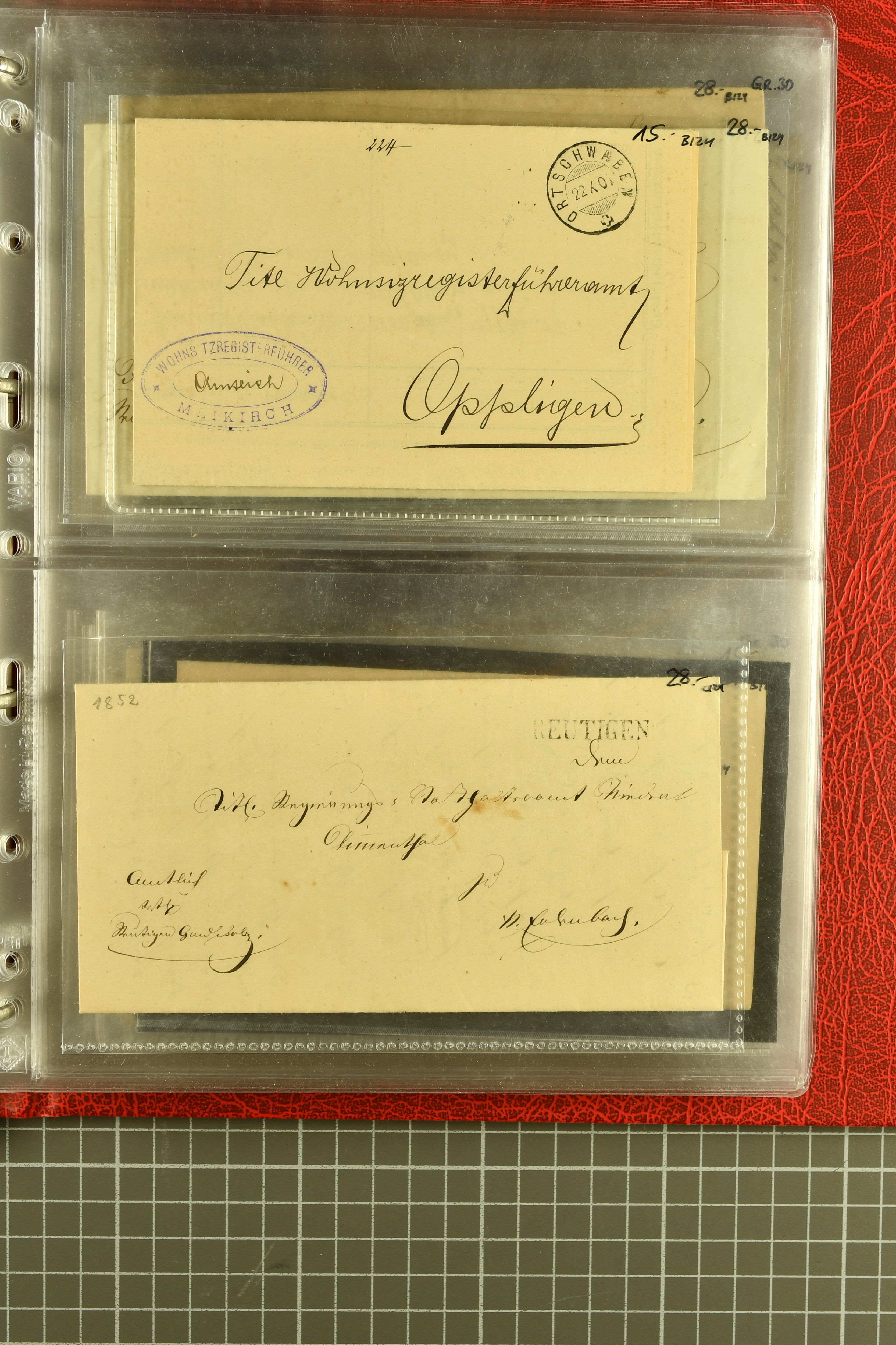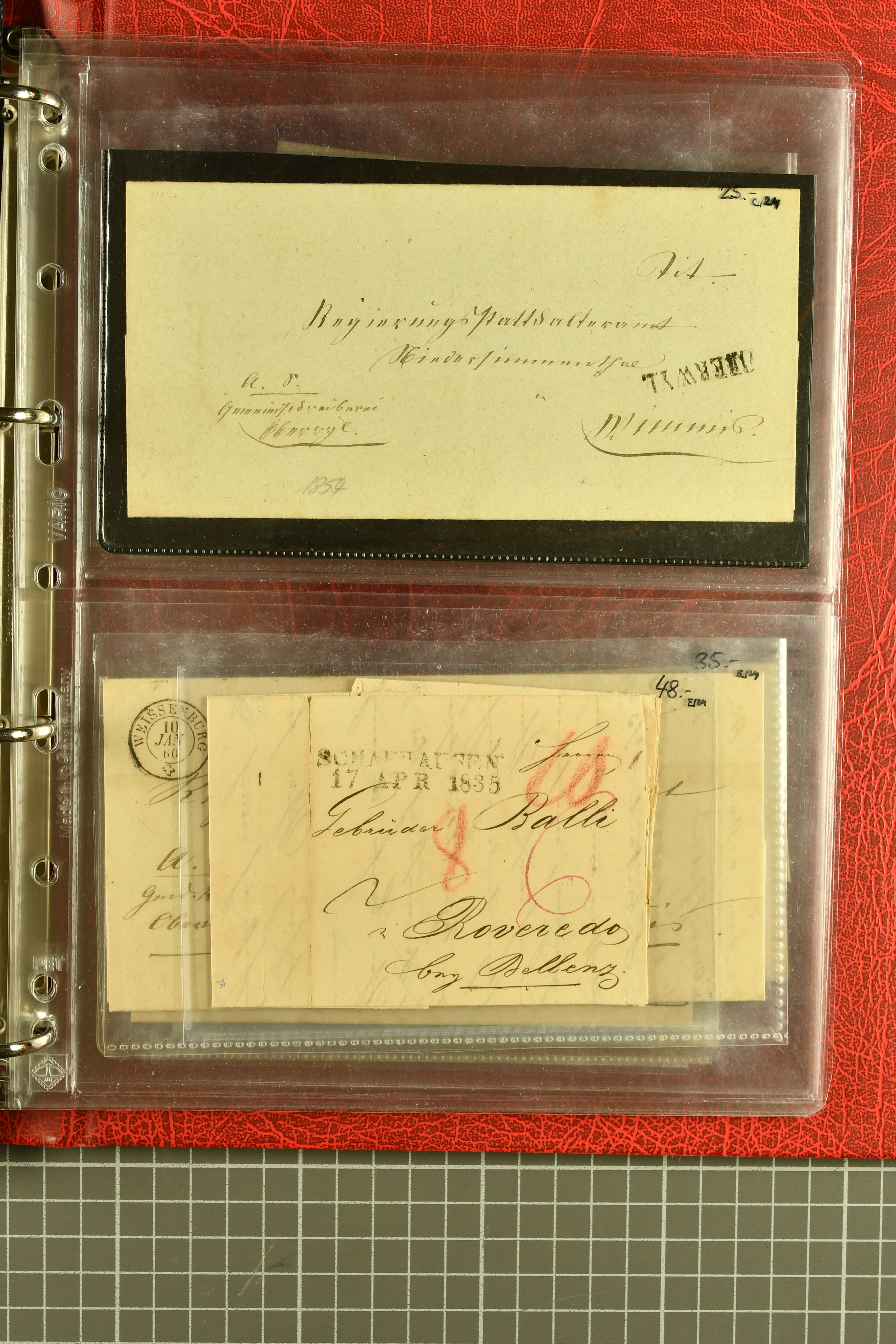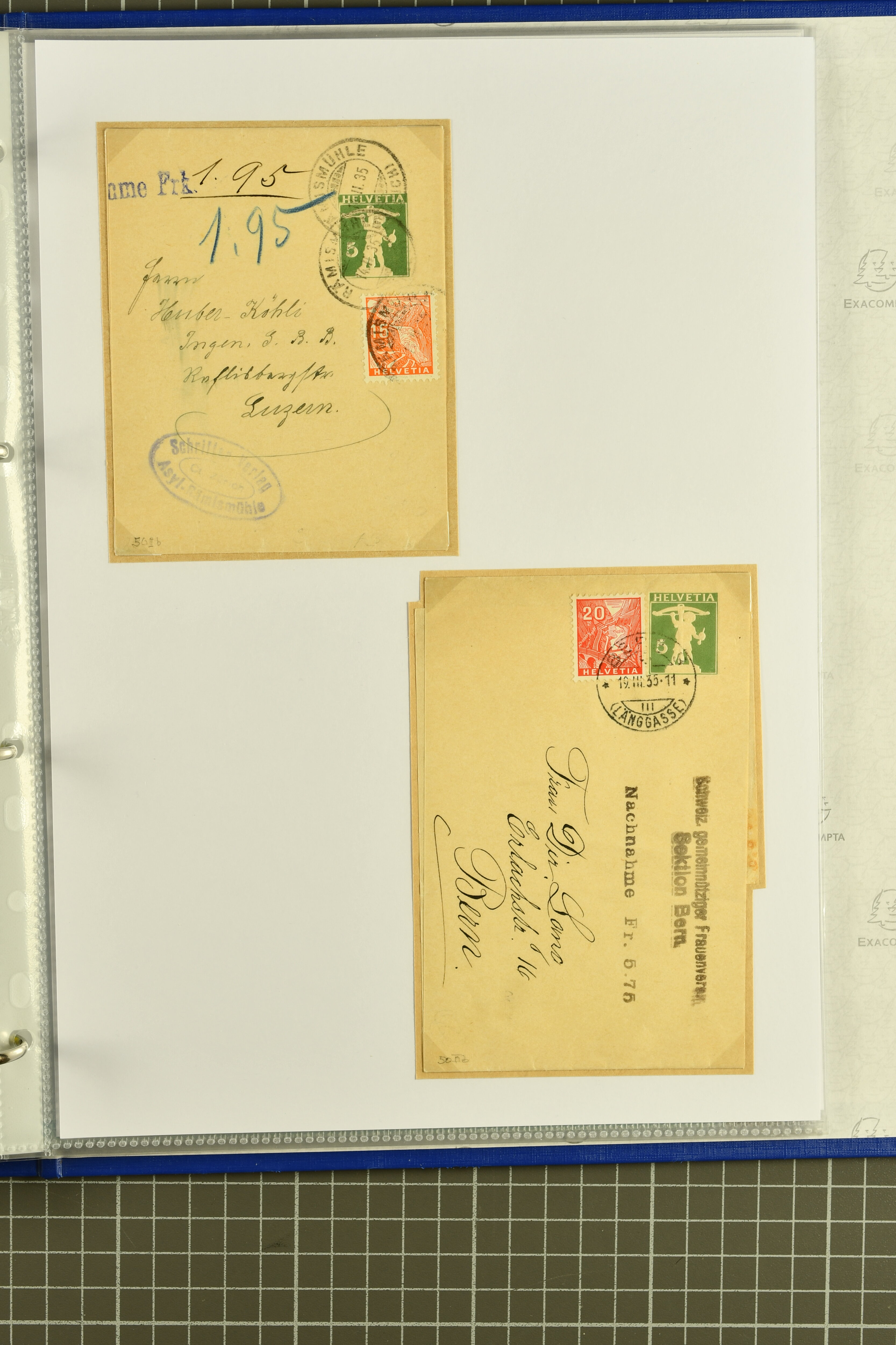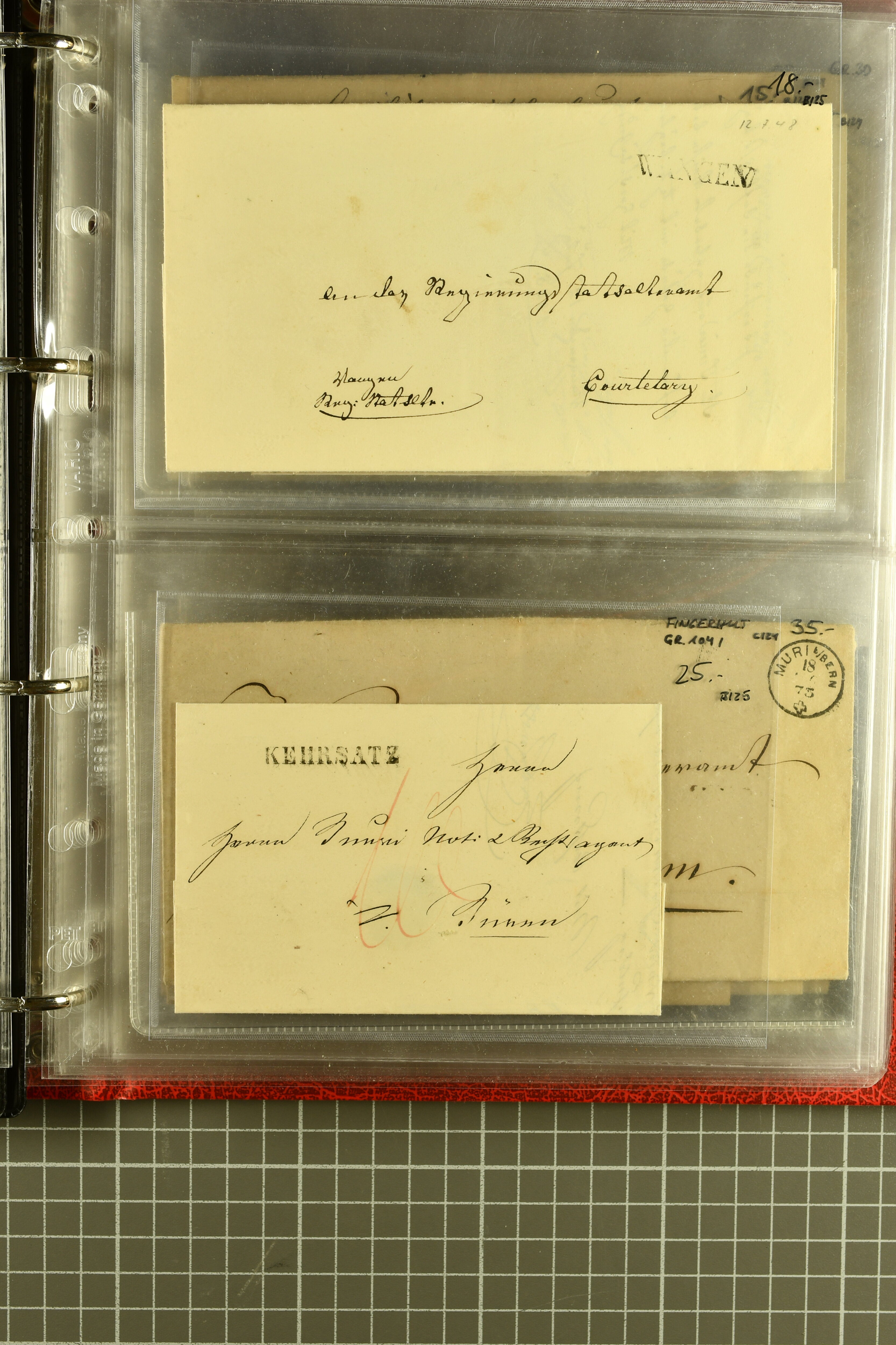 9873 cover imageKt. Bern 1835/1909: Lot 50 Briefe, dabei 1853 Rayon III Typen 7 & 9 auf Einschreibebrief gest. "Bern 8 Feb. 53 DB" (Befund Marchand), Chargé-Brief frankiert mit Sitz. Helvetia 20 Rp. von Blankenburg, Ziffer 15 Rp. gelb auf Nachnahme von "Rüthi b/Riggisberg 12.1.88" nach Schwarzenburg, weiter div. amtliche Briefe ohne Marken aus dem Kanton Bern, dabei Brief vom 'Statthalteramt Seftigen via Belp (1854) nach Schwarzenburg, dazu Stabstp. auf Briefen von Brodhaus nach Oberwyl, Amsoldingen, Boll, Boltigen, Gunten, Heimberg, Kehrsatz, Mülinen, Oberwyl, Reutigen, Rueggisberg, Wangen, Zweisimmen. Ein schönes Angebot (Image 1) (Image 2) (Image 3) (Image 4) (Image 5) (Image 6) (Image 7) (Image 8) (Image 9) (Image 10) (Image 11) (Image 12) (Image 13) (Image 14) (Image 15) (Image 16) (Image 17) (Image 18) (Image 19) (Image 20) (Image 21) (Image 22) (Image 23) (Image 24) (Image 25) (Image 26) (Image 27) (Image 28) (Image 29) (Image 30) (Image 31) (Image 32) (Image 33) (Image 34) (Image 35) (Image 36) (Image 37) (Image 38) (Image 39) (Image 40) (Image 41) (Image 42) (Image 43) (Image 44) (Image 45) (Image 46) (Image 47) (Image 48) (Image 49) (Image 50)