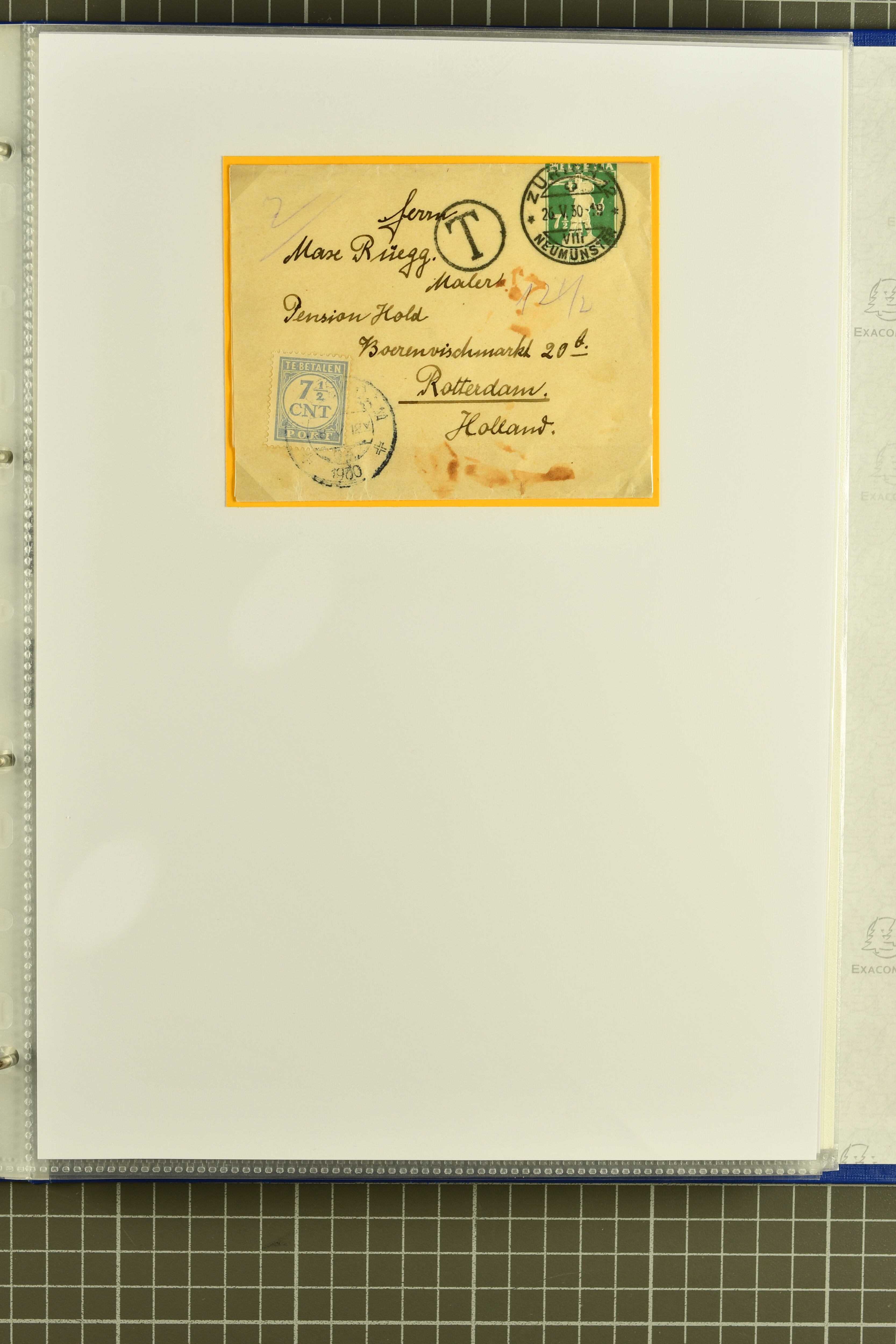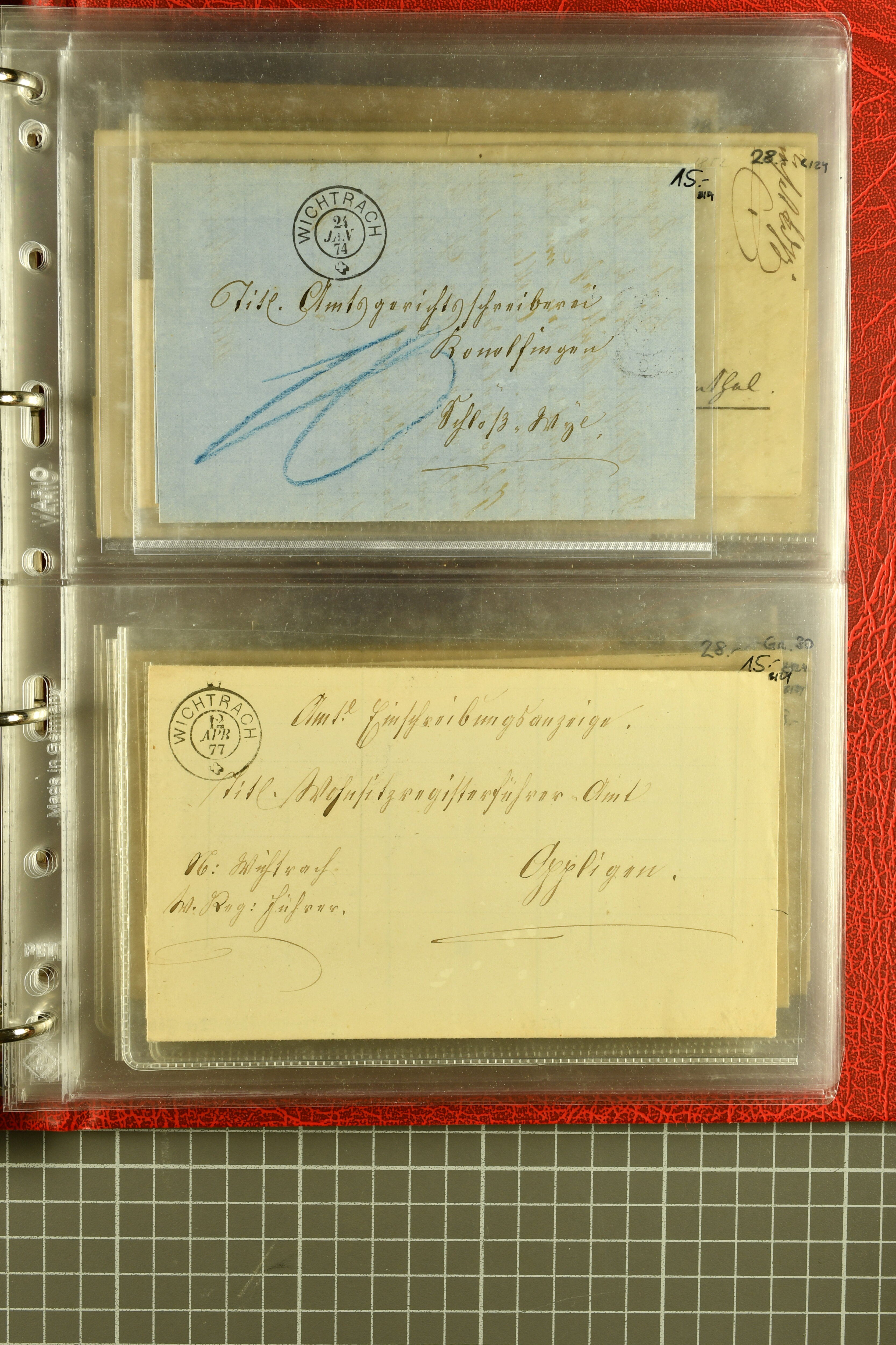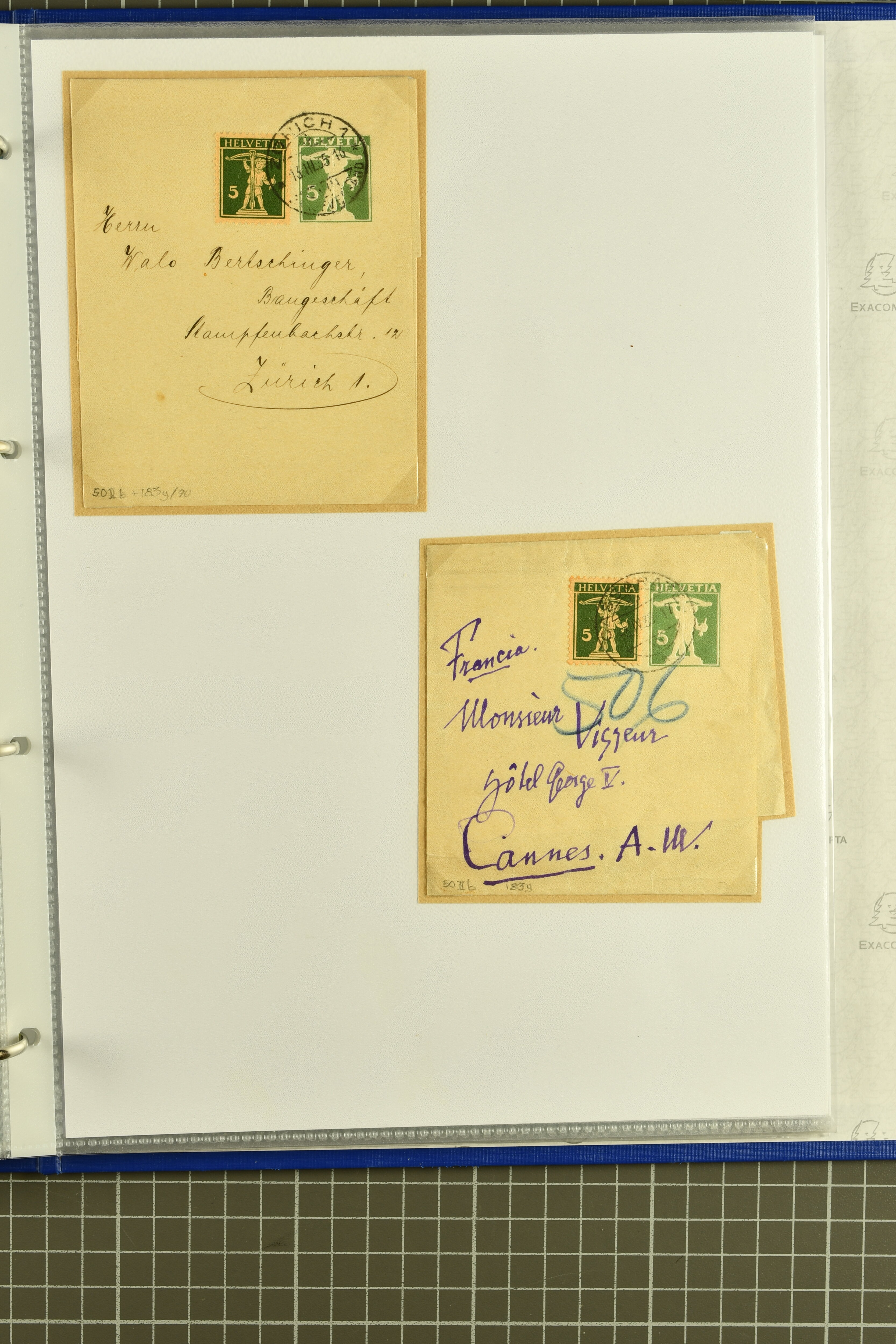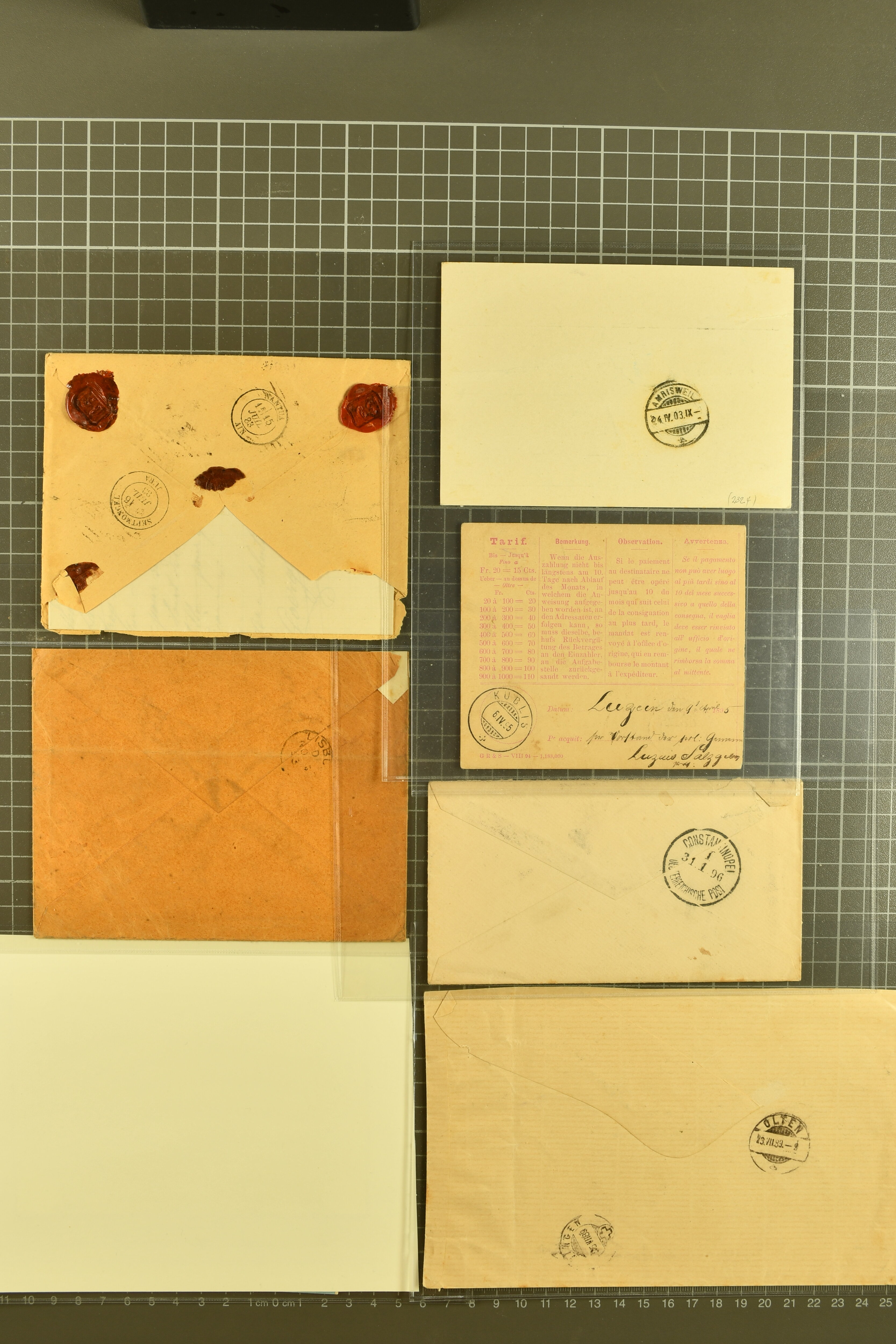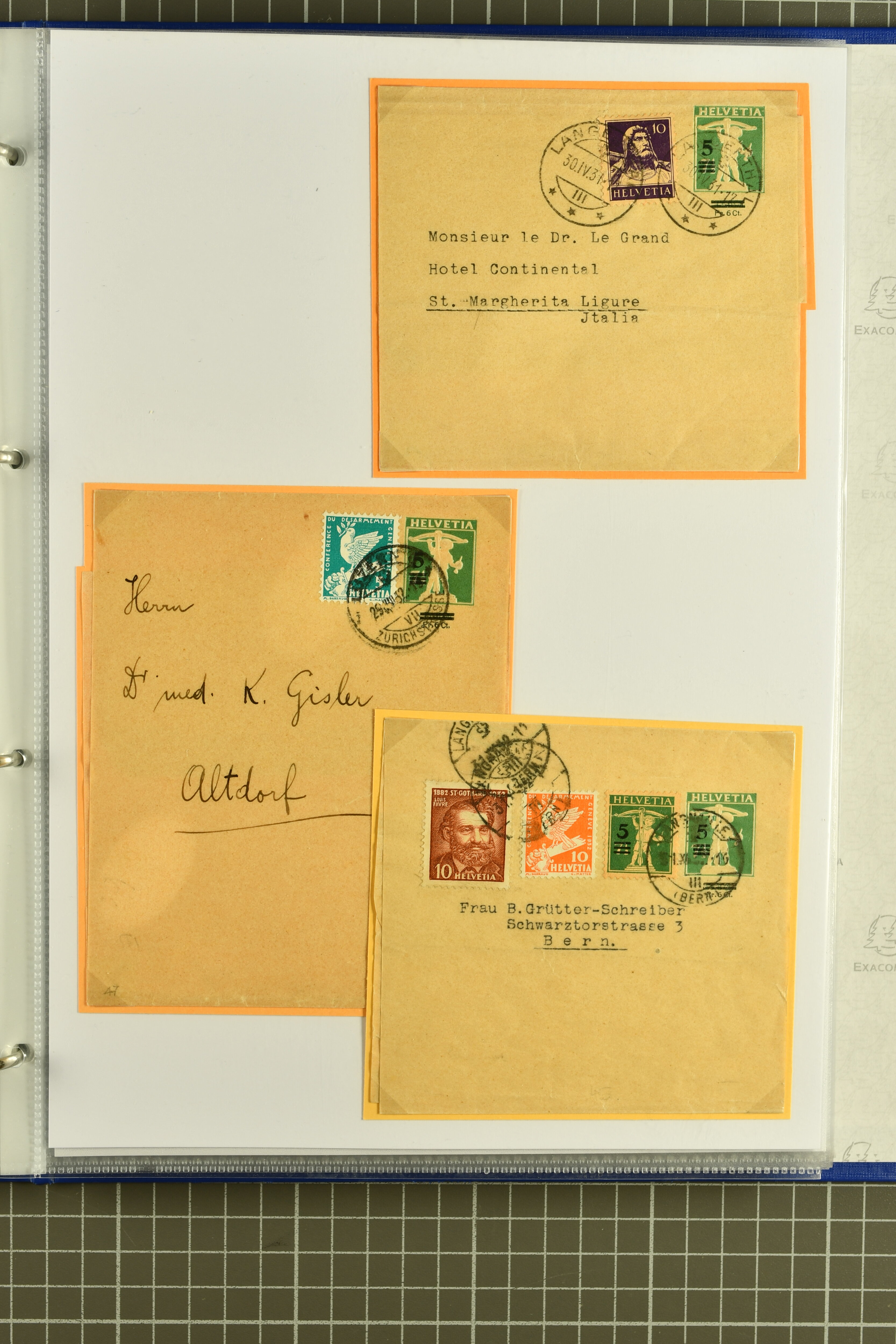 9882 cover imagePostgeschichte Kanton Wallis 1850/1970 (ca.): Bemerkenswerte Sammlung von über 200 Briefen und Karten. Beginnend mit Rayon I hellblau, Unbekannter Stein: Typen 7 + 13 l/o auf sauberem Faltbrief von Martigny nach Ardon sowie Buntfrankatur Rayon II, Stein B: Type 23 r/u und Rayon I hellblau, Stein B3: Type 40 l/u auf Faltbrief von St. Maurice nach Lausanne folgen drei Strubelfrankaturen inkl. einem Auslandsbrief von St. Bernard nach Besançon, Frankreich und eine starke Partie Sitzende Helvetia mit seltenen Entwertungen wie gefasstem Stabstp. "ST. MAURICE" (AW 3435) auf 10 Rp. rot im senkr. Paar als Zusatzfrankatur auf eingeschriebenem Tüblibrief 10 Rp. rot (Vorders.) nach Sion, Druckschrift-Stabstp. "SALVAN" (AW 2931) oder "GRANGES PRÈS SION" (AW 3089) jeweils als Entwertungsstp., kl. Zweikreisstp. "BOURG DE CONTHEY 25 FEV. 80" ideal klar auf 15 Rp. gelb als Einzelfrankatur auf Nachnahme-Couvert über Fr. 1.65 nach Sion aber auch Bahnpoststp., refüsierte Sendungen, Drucksachen, Nachnahmen, Auslandsfrankaturen etc sowie Ganzsachen wie Tüblibrief 10 Rp. rot entw. mit seltenerweise über dem Wertstempel aufges. Stabstp. "GONDO" oder Inlands-Doppelpostkarte 5 Rp. braun, Antwortteil (SGSSV: PK.005.A) mit seltenem zweizeiligem Stabstp. "LOUËSCHE / BAINS" (AW 2239) nach Bern (1877). Später Ziffermuster und Stehende Helvetia mit einigen hohen Nachnahmefrankaturen, Auslandsbriefen inkl. 50 Rp. blau in der "groben" Zähnung 9¾:9¼ (SBK 70B) auf eingeschr. Brief von Champéry nach Prag oder 25 Rp. grün in derselben Zähnung auf Brief von Zermatt nach Berlin, seltene Stabstp. wie zweizeilige "COURRIER FRANCAIS / CHAMONIX-CHTELARD", "BETTEN / (WALLIS)" oder "GRENGIOLS / (WALLIS)", seltener Stationsstempel "VERNAYAZ 18 AOUT 86" in violett oder zahlreiche Hotelstempel. Auch die späteren Ausgaben sind mit seltenen "Fleuron-" oder Stabstempel kleiner Ortschaften, attraktiven illustrierten Briefen und Karten, Telegrammen interessanten Frankaturen wie Tellbrustbild 10 Rp. rot, Type I (SBK 126/I) auf Nachnahmekarte von La Croix (Martigny) nach Saxon, schönen Pro Juventute-Frankaturen, Dienstleistungen wie Eilsendung von Riddes nach Paris, Postformularen wie "Rück- oder Auszahlungsschein" von Brig nach Varen mit entspr. Stabstp. oder kompl. Anrechnungskarte mit Helvetia mit Schwert 50 Rp. grün von Versegères gut vertreten. Eine vielseitige Sammlung in meist guter Erhaltung; zwei Befunde, drei Atteste (Image 1) (Image 2) (Image 3) (Image 4) (Image 5) (Image 6) (Image 7) (Image 8) (Image 9) (Image 10) (Image 11) (Image 12) (Image 13) (Image 14) (Image 15) (Image 16) (Image 17) (Image 18) (Image 19) (Image 20) (Image 21) (Image 22) (Image 23) (Image 24) (Image 25) (Image 26) (Image 27) (Image 28) (Image 29) (Image 30) (Image 31) (Image 32) (Image 33) (Image 34) (Image 35) (Image 36) (Image 37) (Image 38) (Image 39) (Image 40) (Image 41) (Image 42) (Image 43) (Image 44) (Image 45) (Image 46) (Image 47) (Image 48) (Image 49) (Image 50)