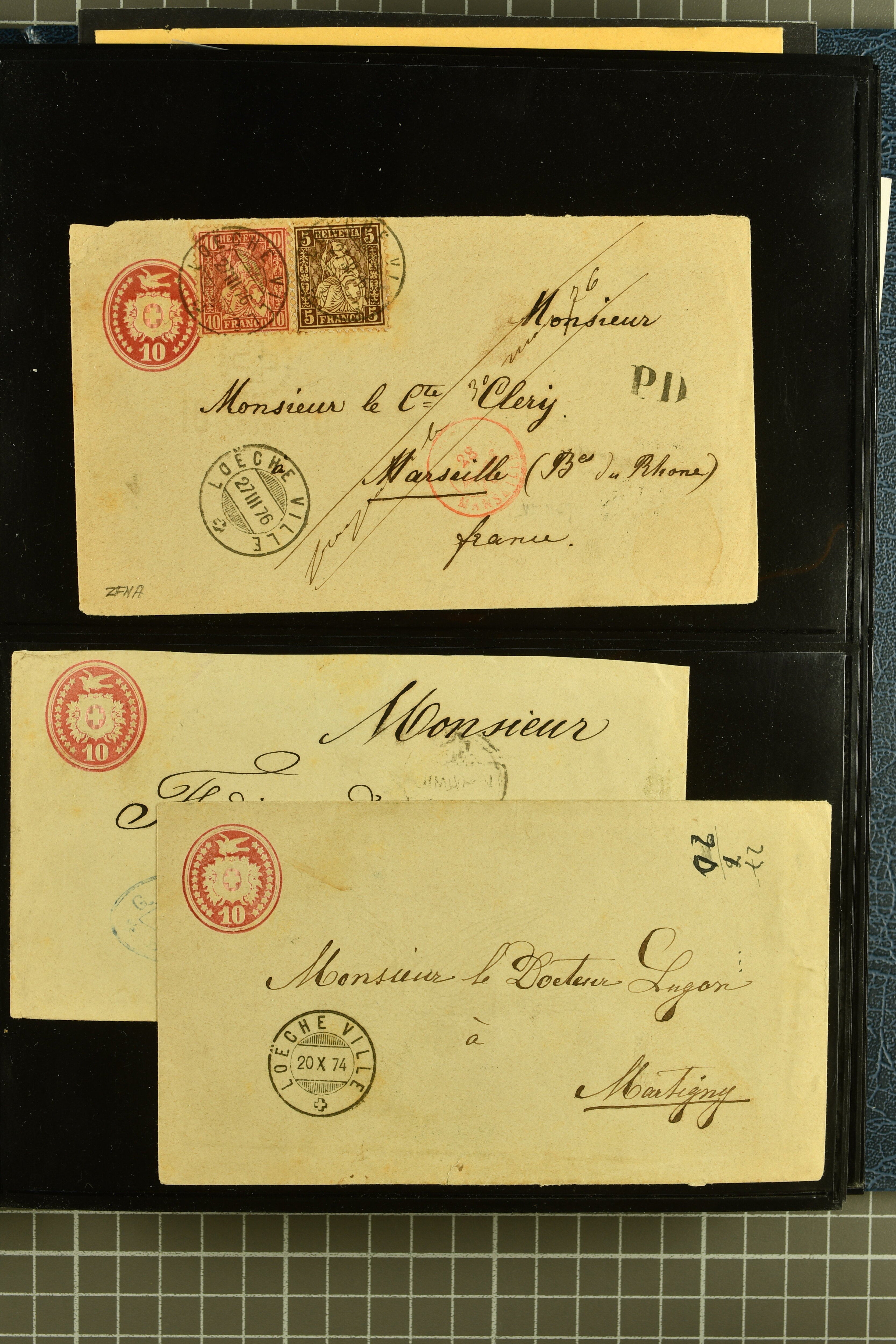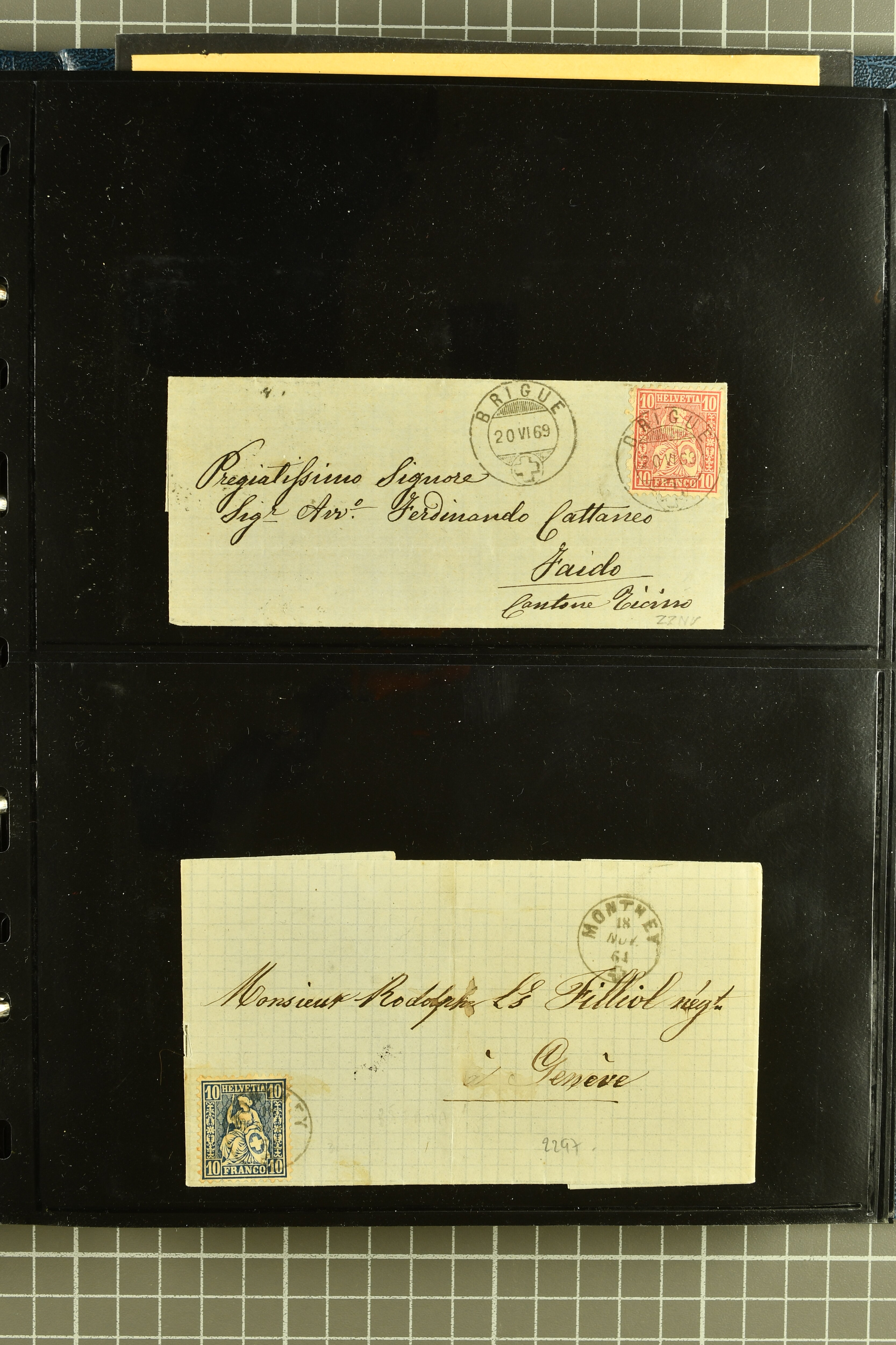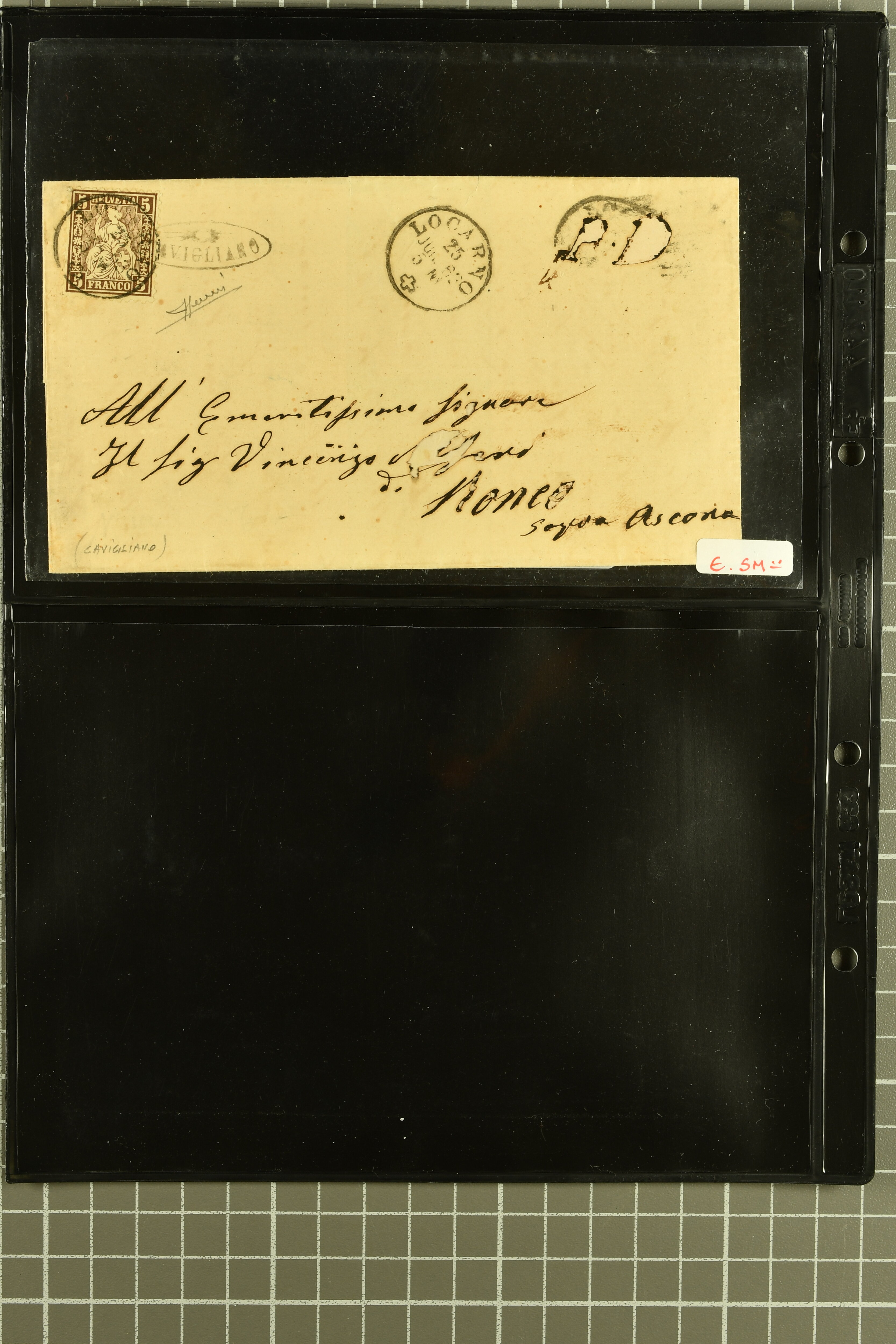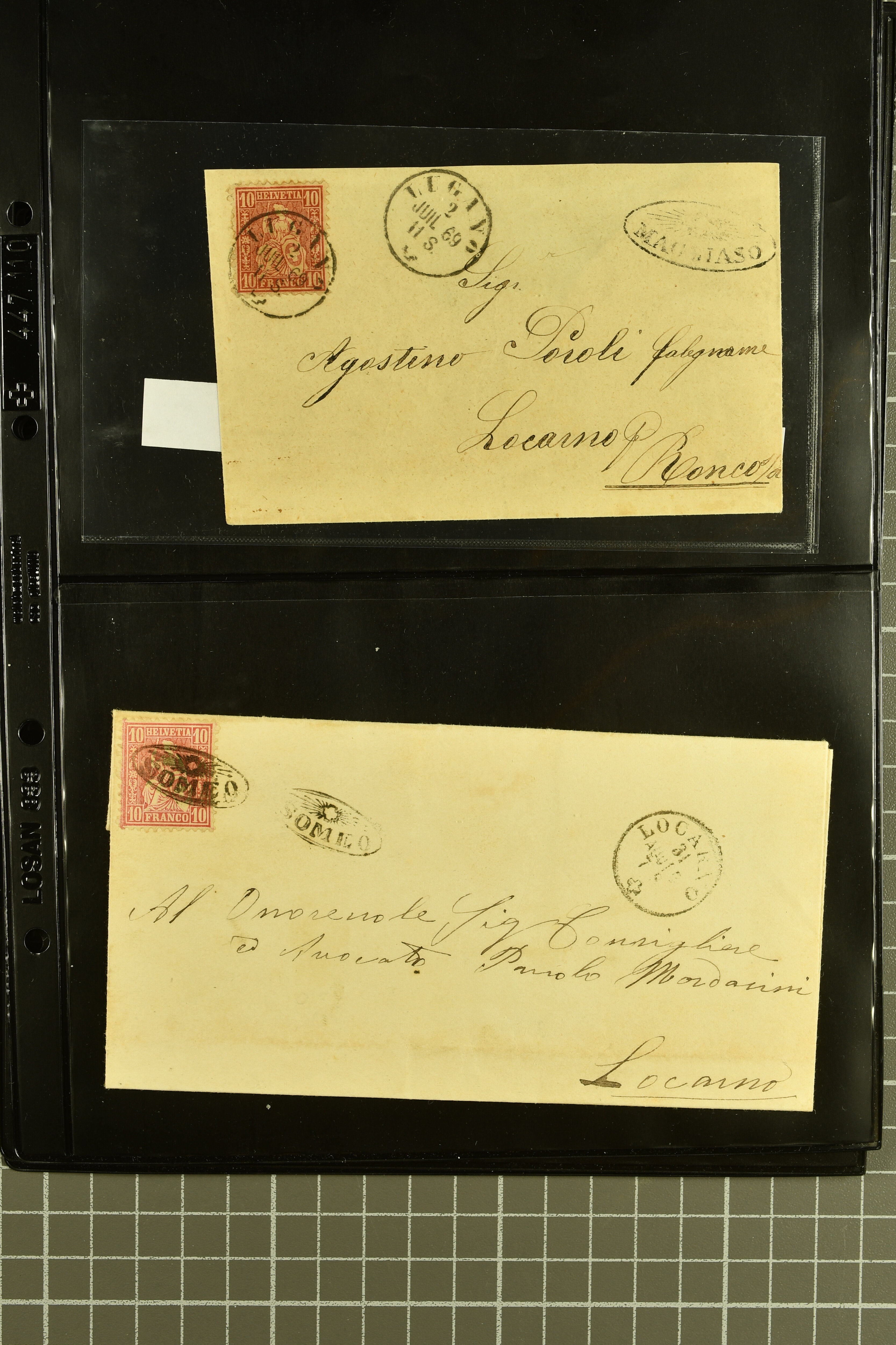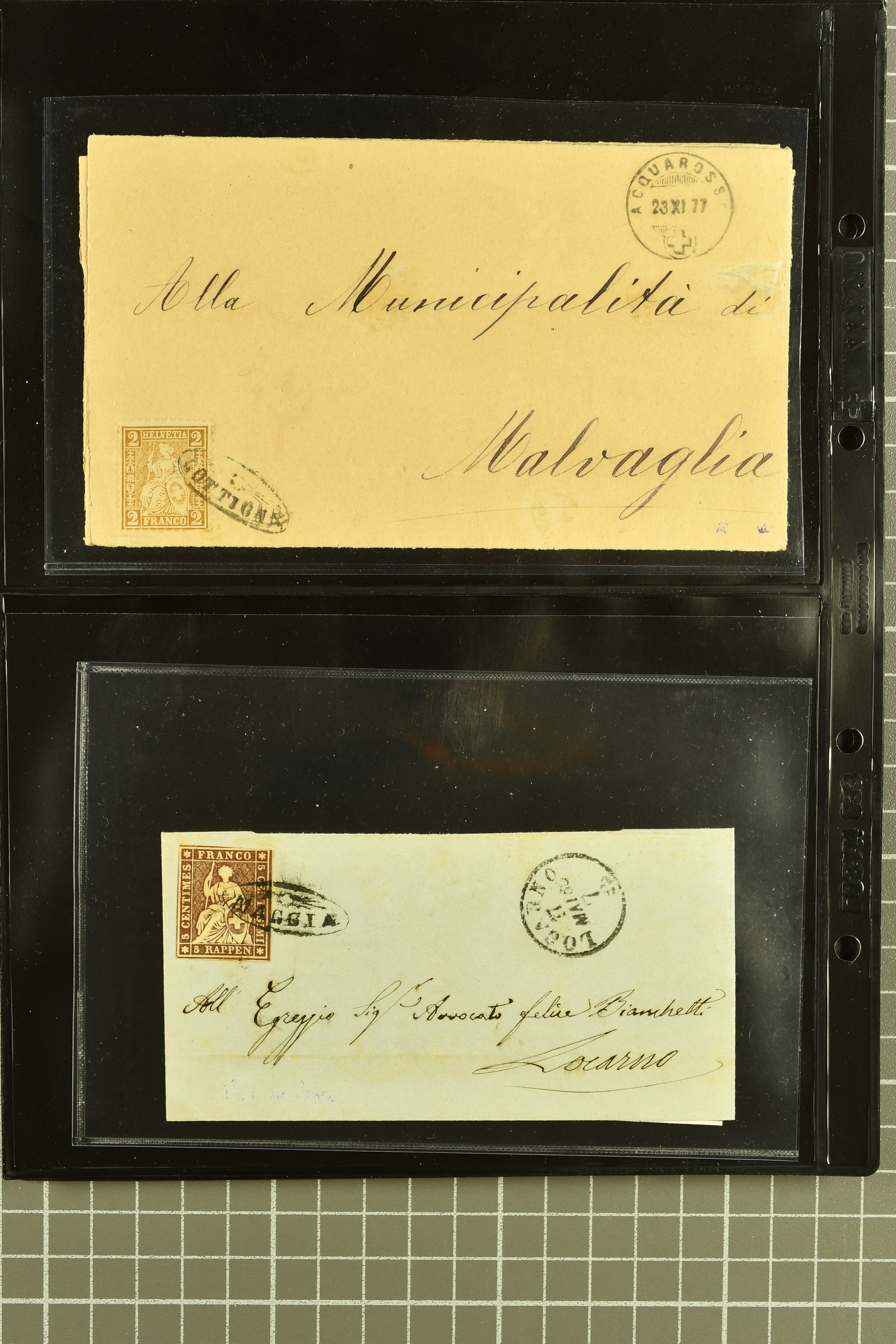9878 cover imageStrahlenstempel Tessin, 1864/87: Auswahl 13 Briefe meist mit Sitzender, einer mit Ziffer sowie zwei Tübli-Briefe, bis auf zwei Briefe und die beiden Ganzsachen die Freimarken immer mit den Strahlenstempeln entwertet, eine ansprechende Auswahl mit generell klaren Abschlägen von ANCONA, CEVIO, CAMPO VM (2), MAGLIASO, SOMEO, MAGGIA, LOTTIGNA, GORDOLA, PECCIA, ASCONA, GIUMAGLIO, LIGORNETTO, MALVAGLIA und CAVIGLIANO (Image 1) (Image 2) (Image 3) (Image 4) (Image 5) (Image 6) (Image 7) (Image 8)