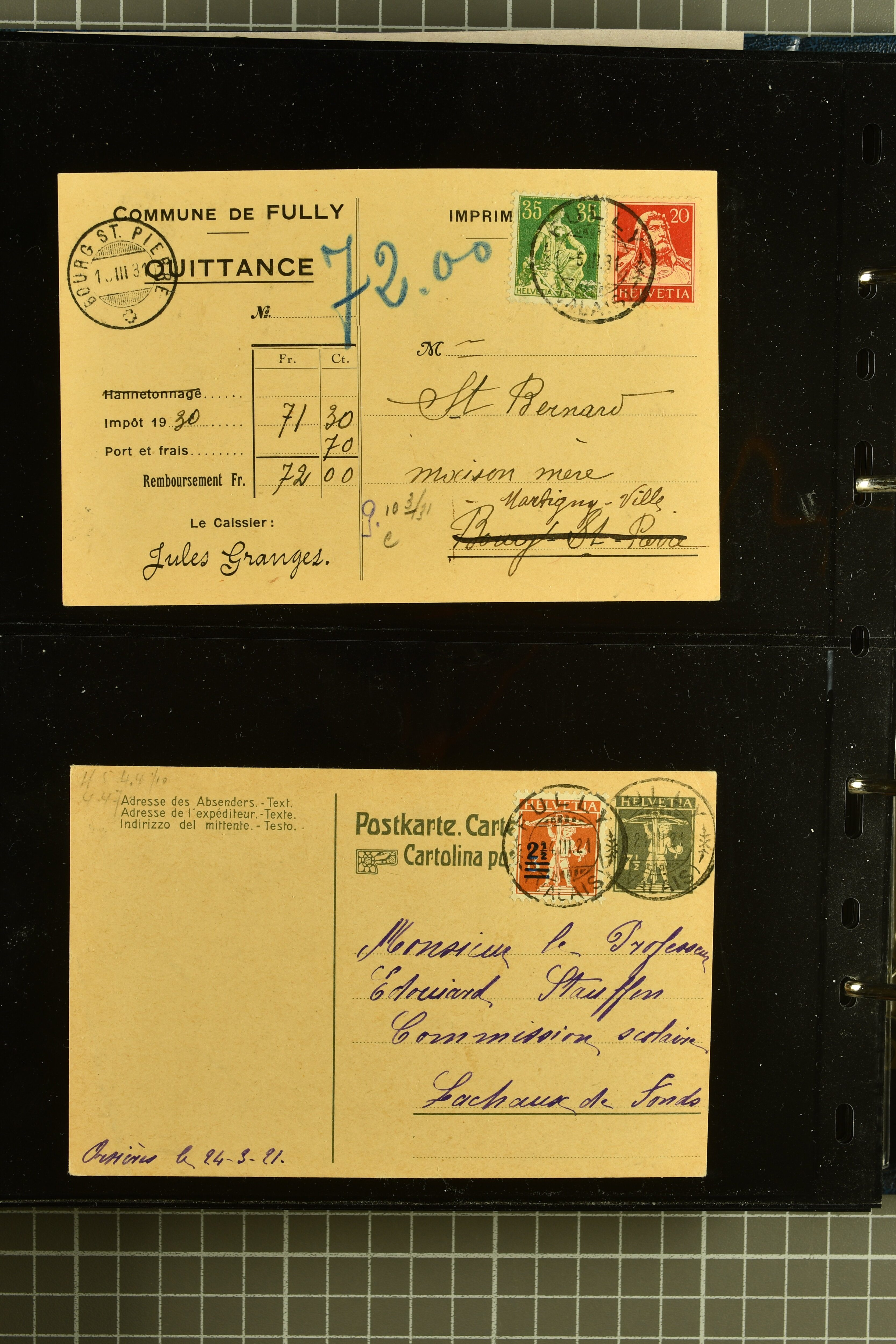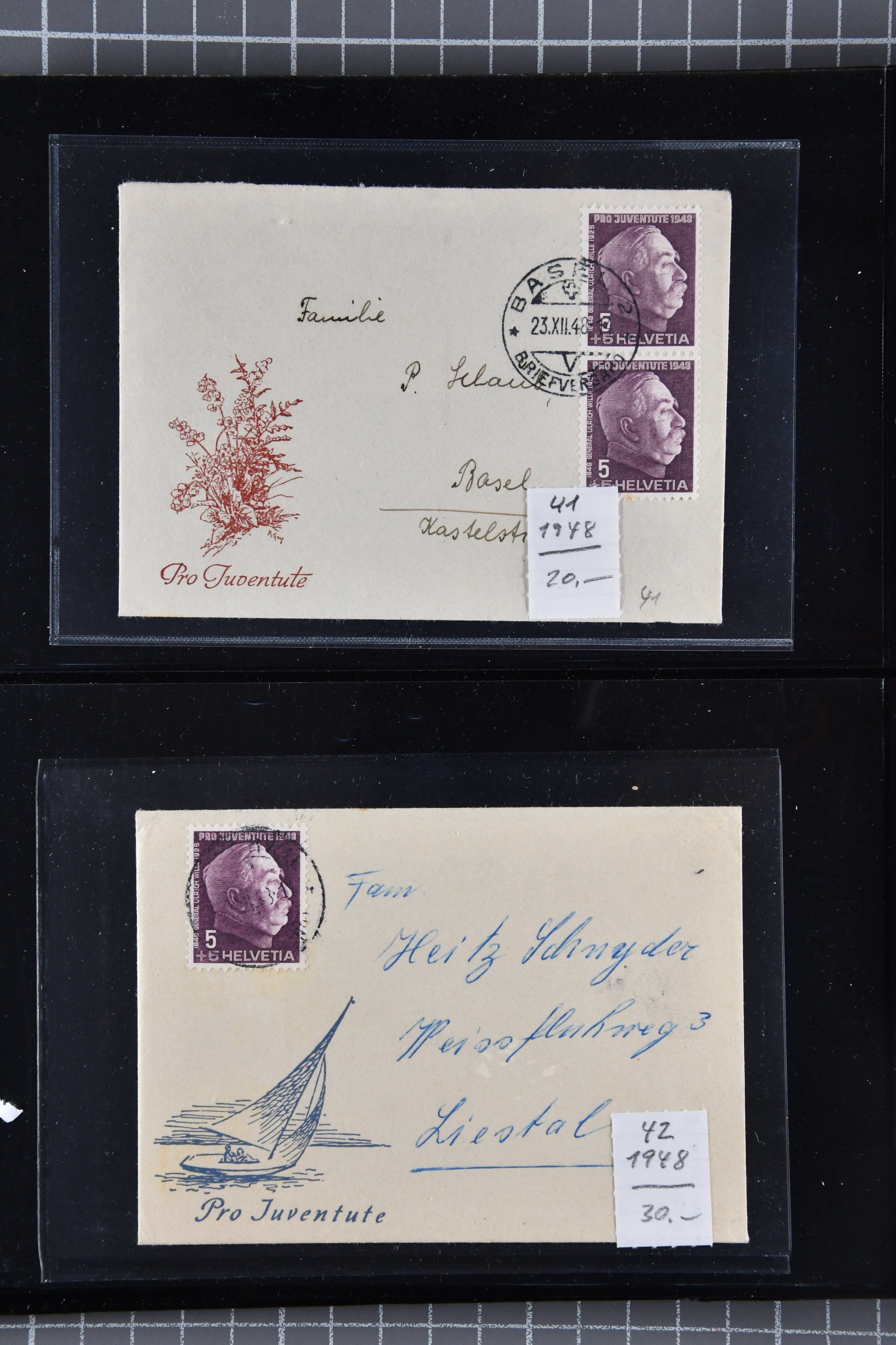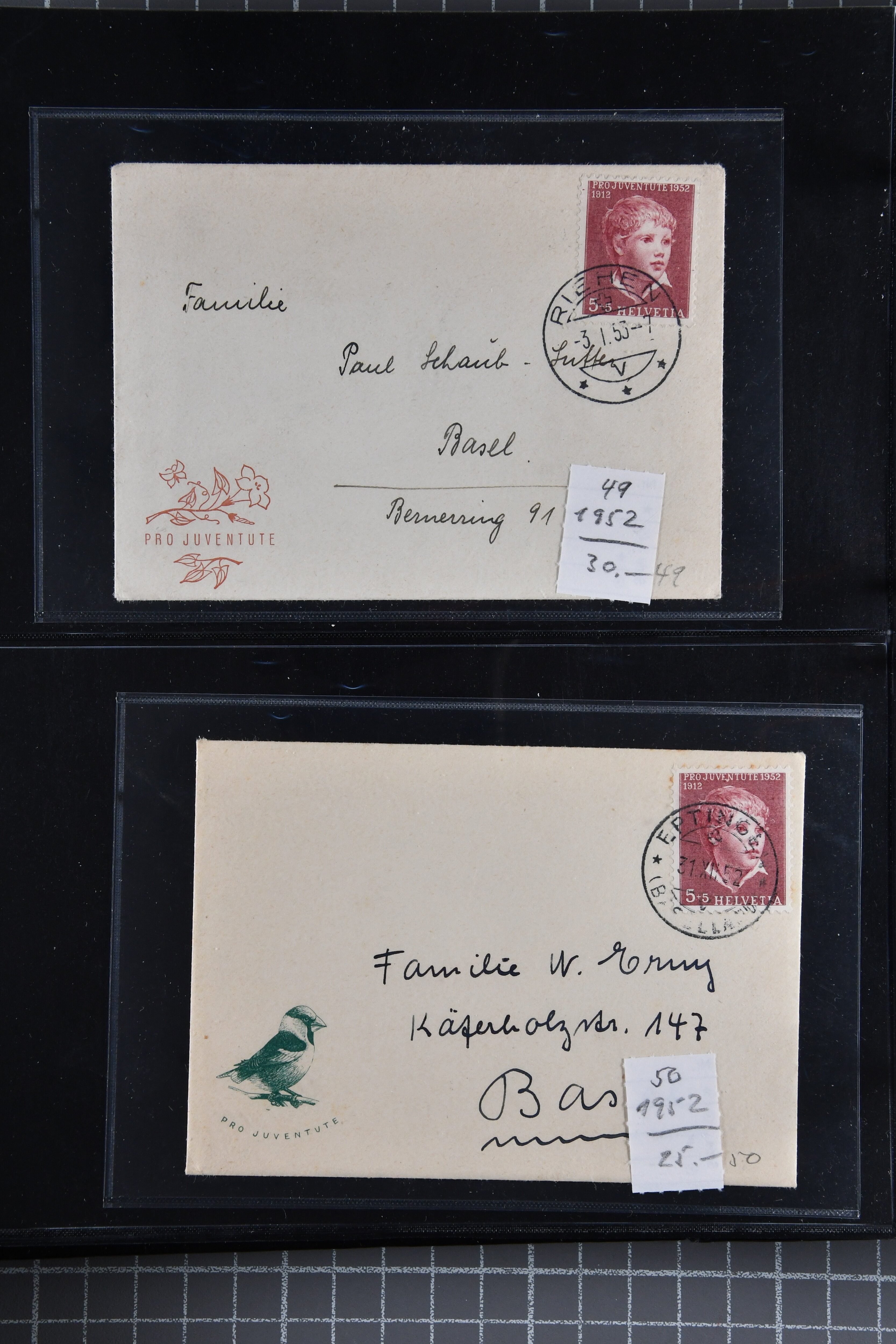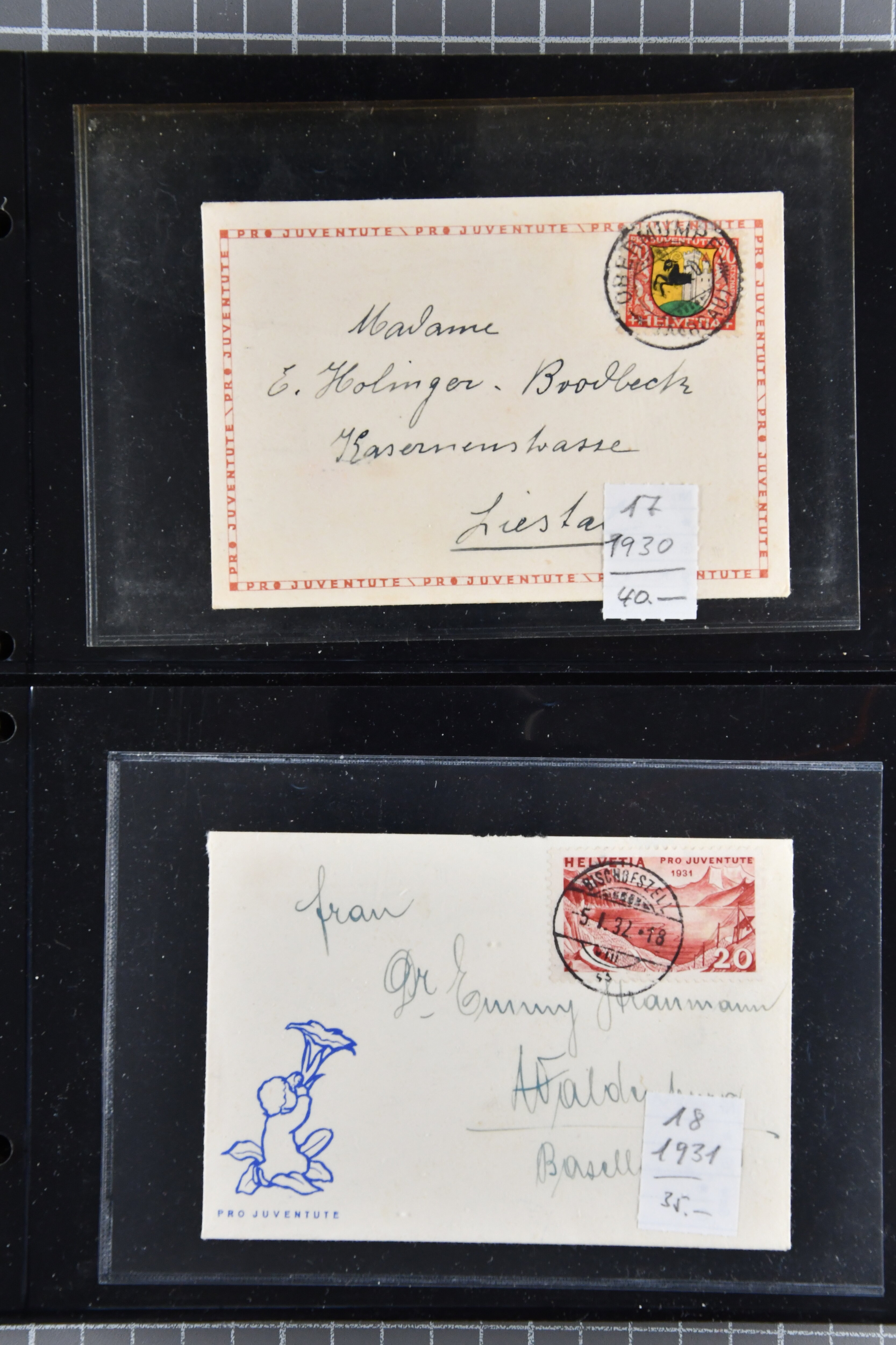 9892 cover image1912/57: Gut organisierter Posten mit Pro Juventute-Karten, Militärkarten, Künstlerkarten sowie Karten mit Flugaufnahmen; ausserdem Karten von Schützen- und Musikfesten. Vielfalt in zwei Karteikästen. Dazu gutes Album mit Pro Juventute-'Briefli' in überwiegend korrekter Verwendung (Image 1) (Image 2) (Image 3) (Image 4) (Image 5) (Image 6) (Image 7) (Image 8) (Image 9) (Image 10) (Image 11) (Image 12) (Image 13) (Image 14) (Image 15) (Image 16) (Image 17) (Image 18) (Image 19) (Image 20) (Image 21) (Image 22) (Image 23) (Image 24) (Image 25) (Image 26) (Image 27) (Image 28) (Image 29) (Image 30) (Image 31) (Image 32)