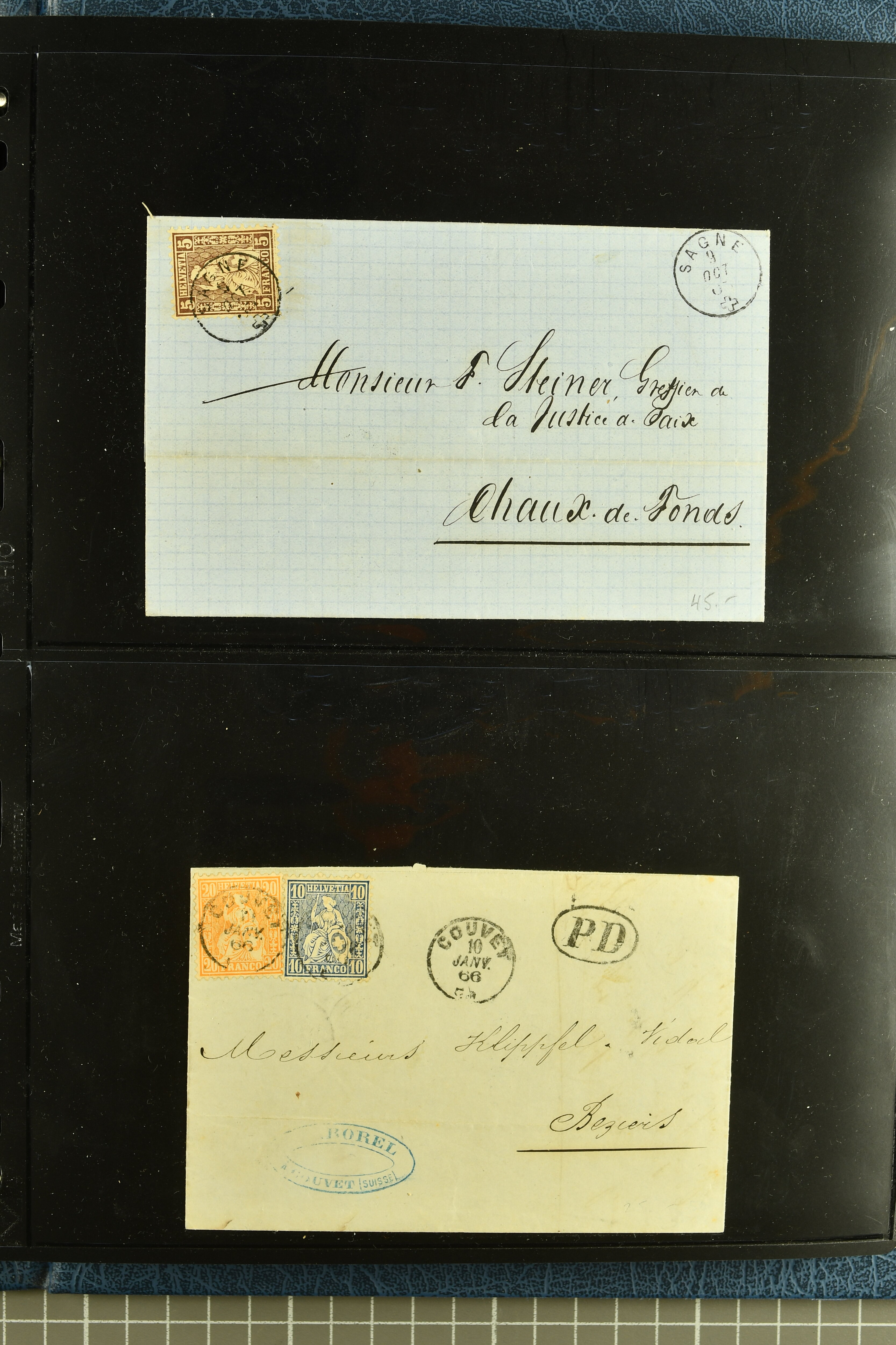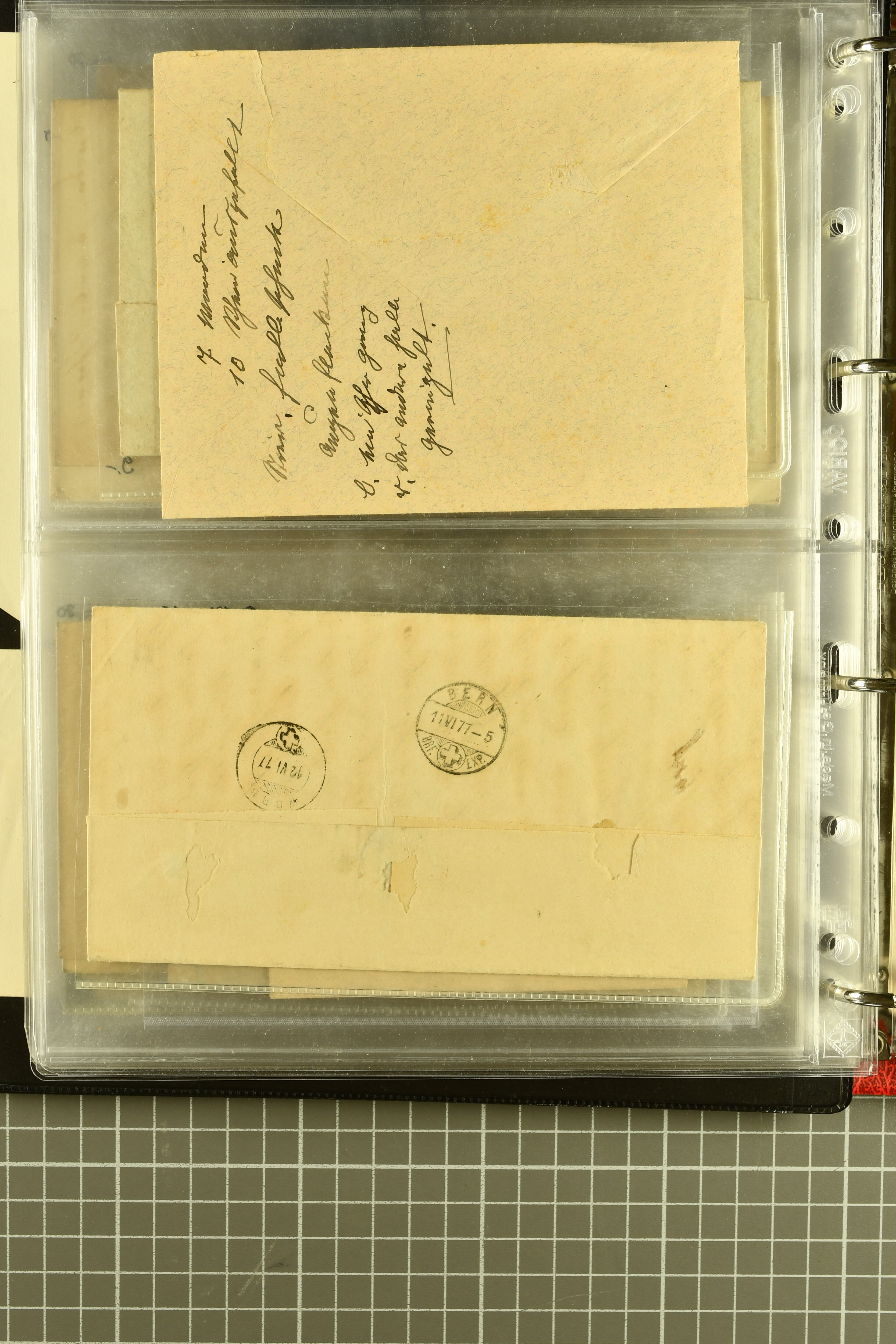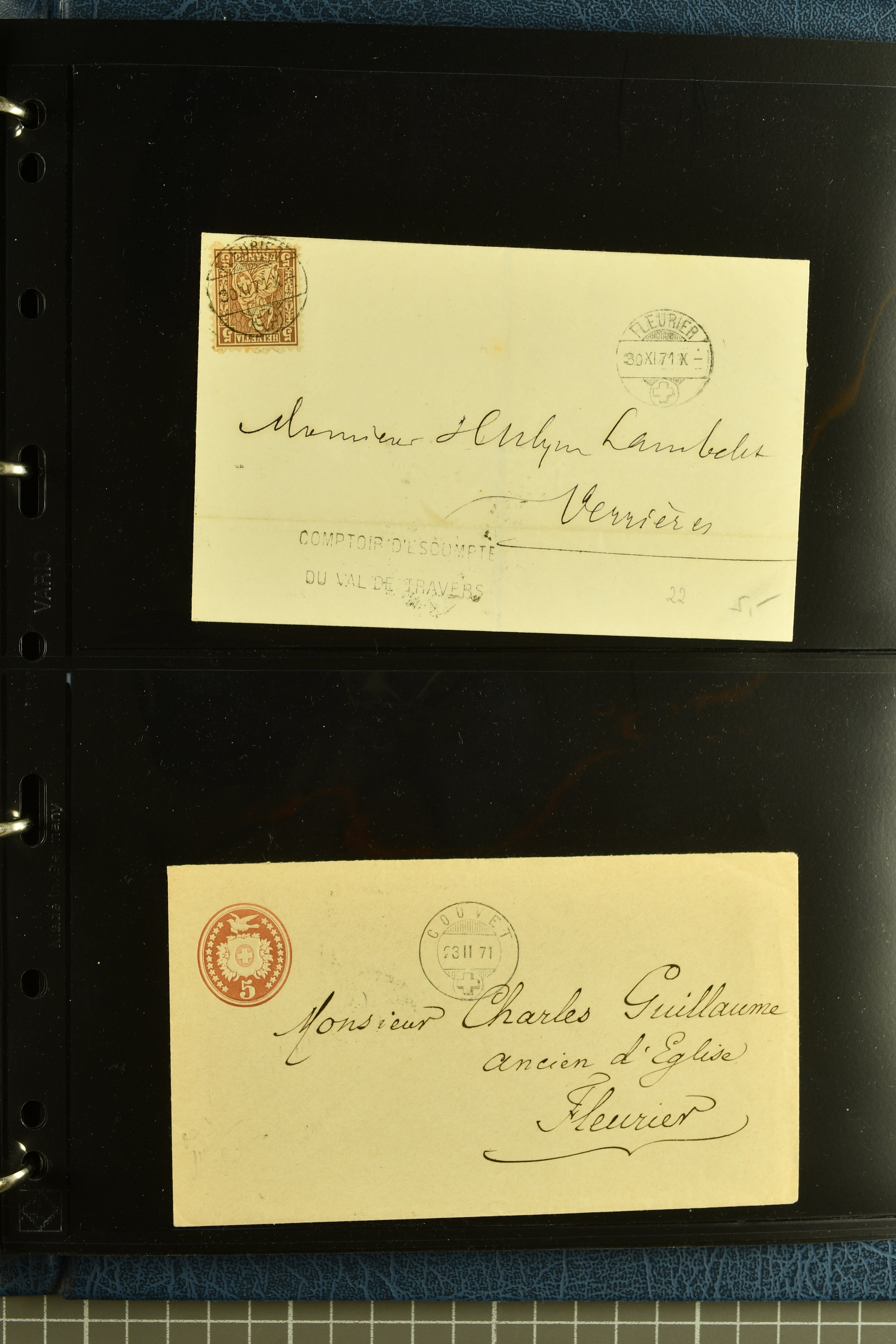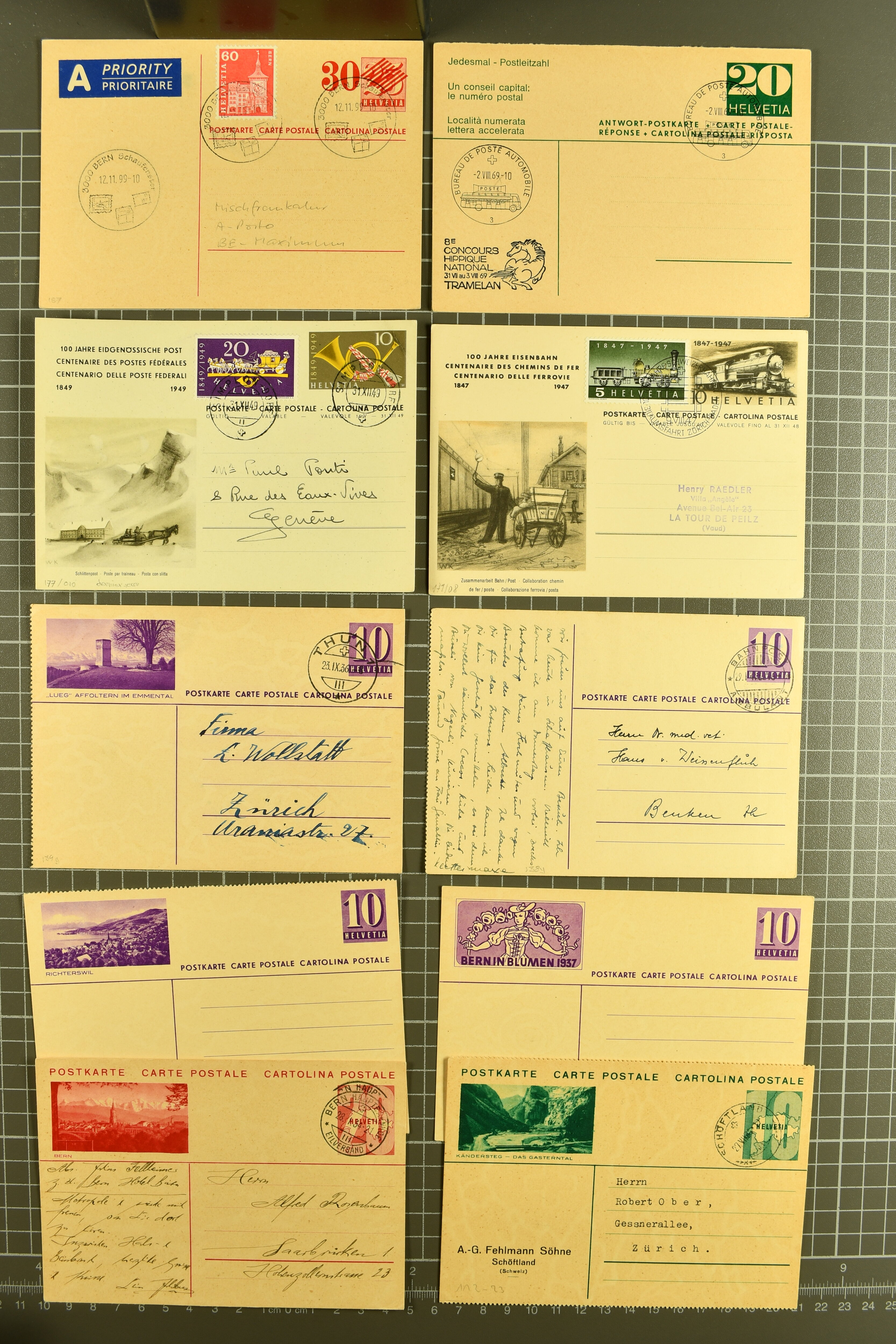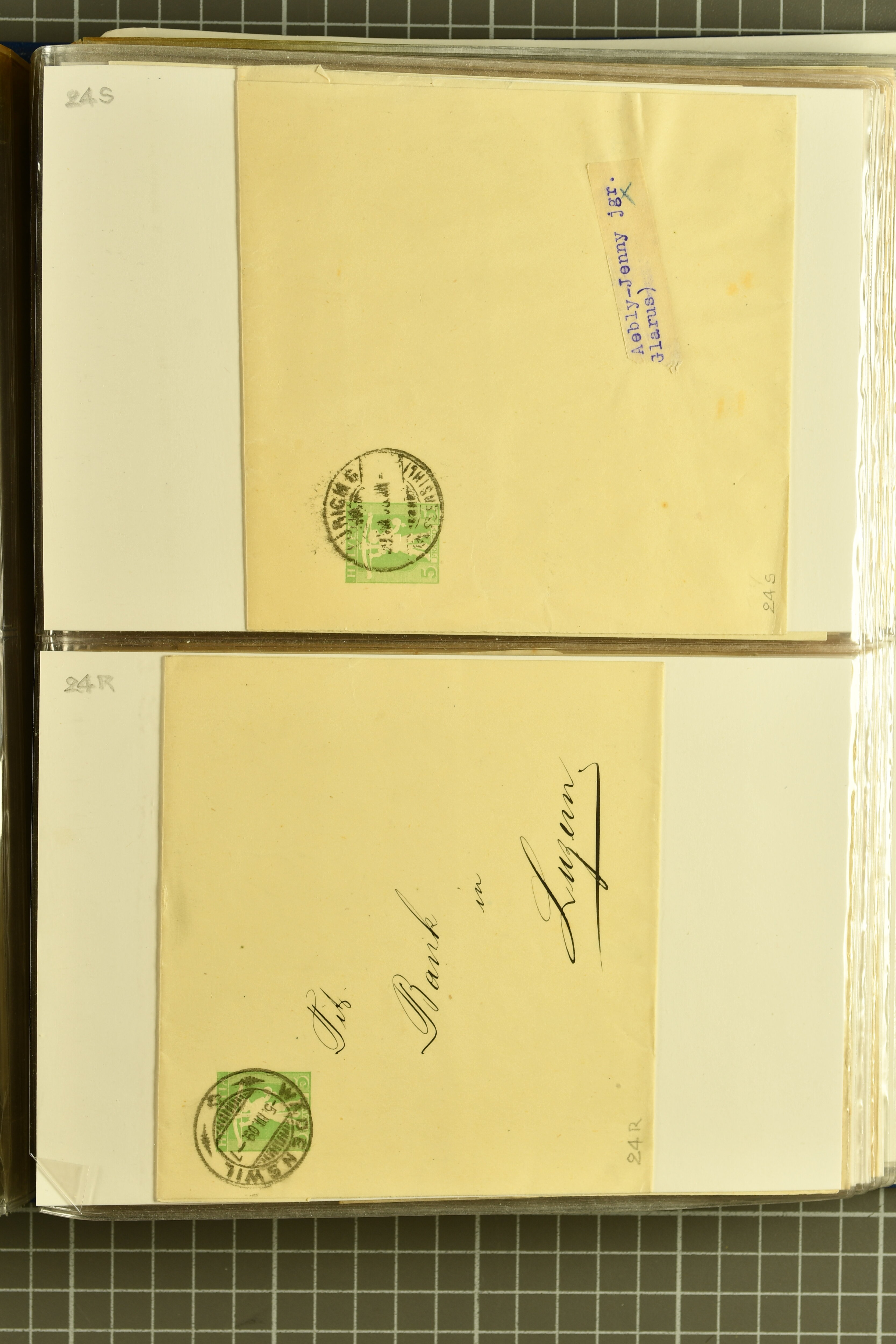 9880 cover imagePostgeschichte Kanton Neuenburg 1854/1940 (ca.): Sammlung 180 Briefe und Karten ab acht Strubelbriefen mit einigen interessanten Entwertungen wie gr. Zierkreisstempel "BOUDRY 28 JANV. 1861", div. Fingerhutstempel oder einem Faltbrief nach Frankreich. Später Sitzende Helvetia und Ganzsachen mit zahlreichen Fingerhutstempeln worunter "MONTMIRAIL 23. NOV. 74" in blau auf Tüblibrief 25 Rp. grün nach Goldberg, Schlesien (Polen) und viele weniger geläufige Stempel, Spätverwendungen der grossen Zierkreisstempel von Serrières, Saint-Sulpice und Auvernier, Stabstp. wie "St. Olivier" auf kleinformatigem Drucksachen-Umschlag mit 2 Rp. grau nach La Chaux-de-Fonds, "CHAMBRELIEN" in blau auf sauberem Briefumschlag mit 10 Rp. rot nach Neuchâtel, verschiedene Güller-Datumstp. in blau aber auch diverse Auslandsfrankaturen der Sitzenden Helvetia oder eine frühe Einladungskarte der "Société la Récréation" in La Chaux-de-Fonds frankiert mit 2 Rp. oliv (1878). Ausserdem Ziffermuster und Stehende Helvetia mit interessanten Auslands-Buntfrankaturen, dekorativen illustrierten Briefen und Karten oder div. Ambulant- und anderen Stabstempeln, UPU 1900 mit 10 Rp.-Ganzsachenpostkarte von La Chaux-de-Fonds nach St. Petersburg, Russland sowie die Ausgaben nach 1907 weiterhin mit interessanten Versandformen wie Expresspostkarten, Stempel wie Stabstp. "CLÉMESIN / NEUCHTEL" auf Postkarte von 1908, Destinationen wie zwei 10 Rp.-Ganzsachenpostkarten nach Chile und Uruguay (1909/14), Vignetten und besseren Frankaturen wie zwei Karten mit Pro Juventute-Vorläufer französisch (SBK JII). Eine interessante Sammlung in meist guter Erhaltung; vier Atteste (Image 1) (Image 2) (Image 3) (Image 4) (Image 5) (Image 6) (Image 7) (Image 8) (Image 9) (Image 10) (Image 11) (Image 12) (Image 13) (Image 14) (Image 15) (Image 16) (Image 17) (Image 18) (Image 19) (Image 20) (Image 21) (Image 22) (Image 23) (Image 24) (Image 25) (Image 26) (Image 27) (Image 28) (Image 29) (Image 30) (Image 31) (Image 32) (Image 33) (Image 34) (Image 35) (Image 36) (Image 37) (Image 38) (Image 39) (Image 40) (Image 41) (Image 42) (Image 43) (Image 44) (Image 45) (Image 46) (Image 47) (Image 48) (Image 49) (Image 50)
