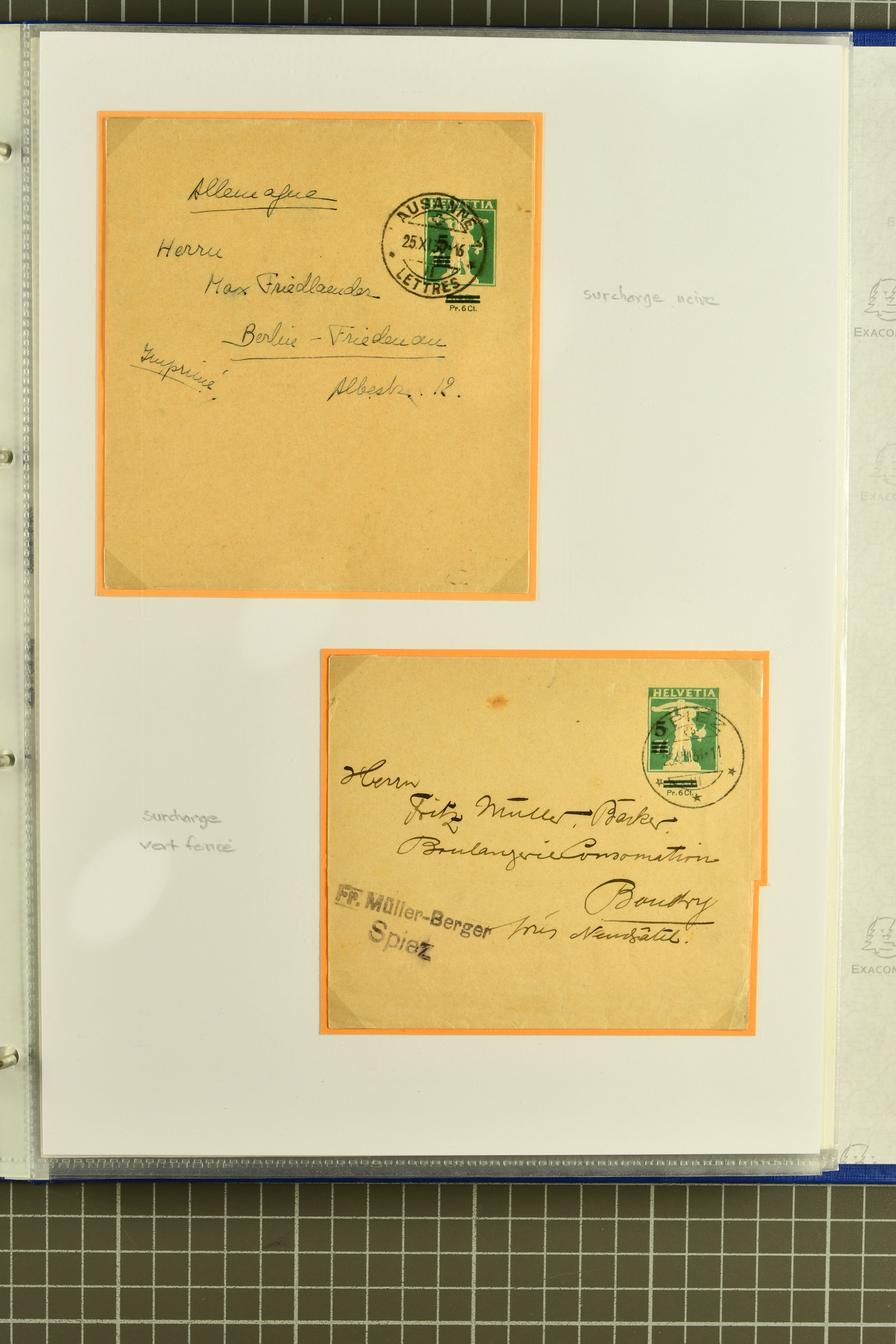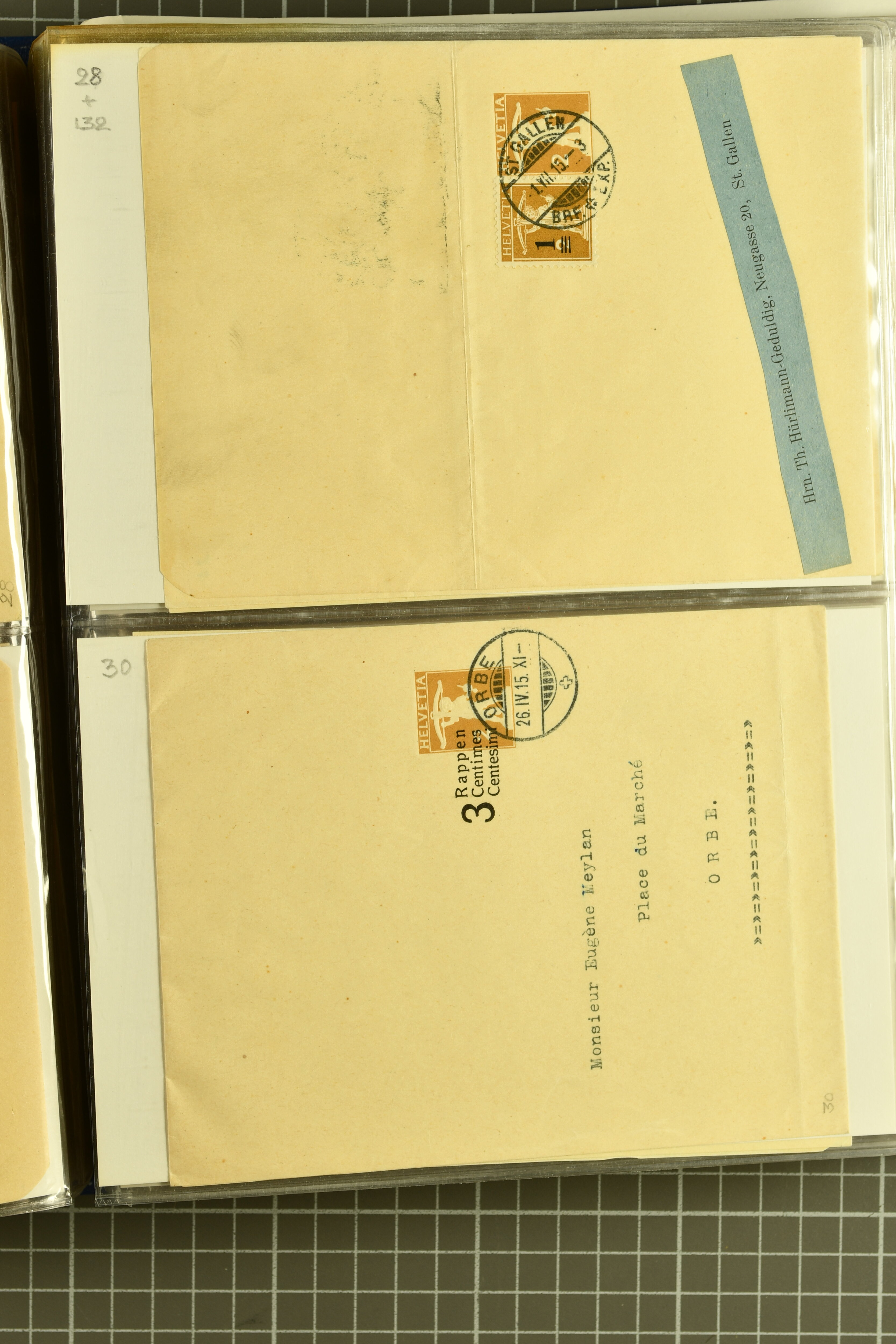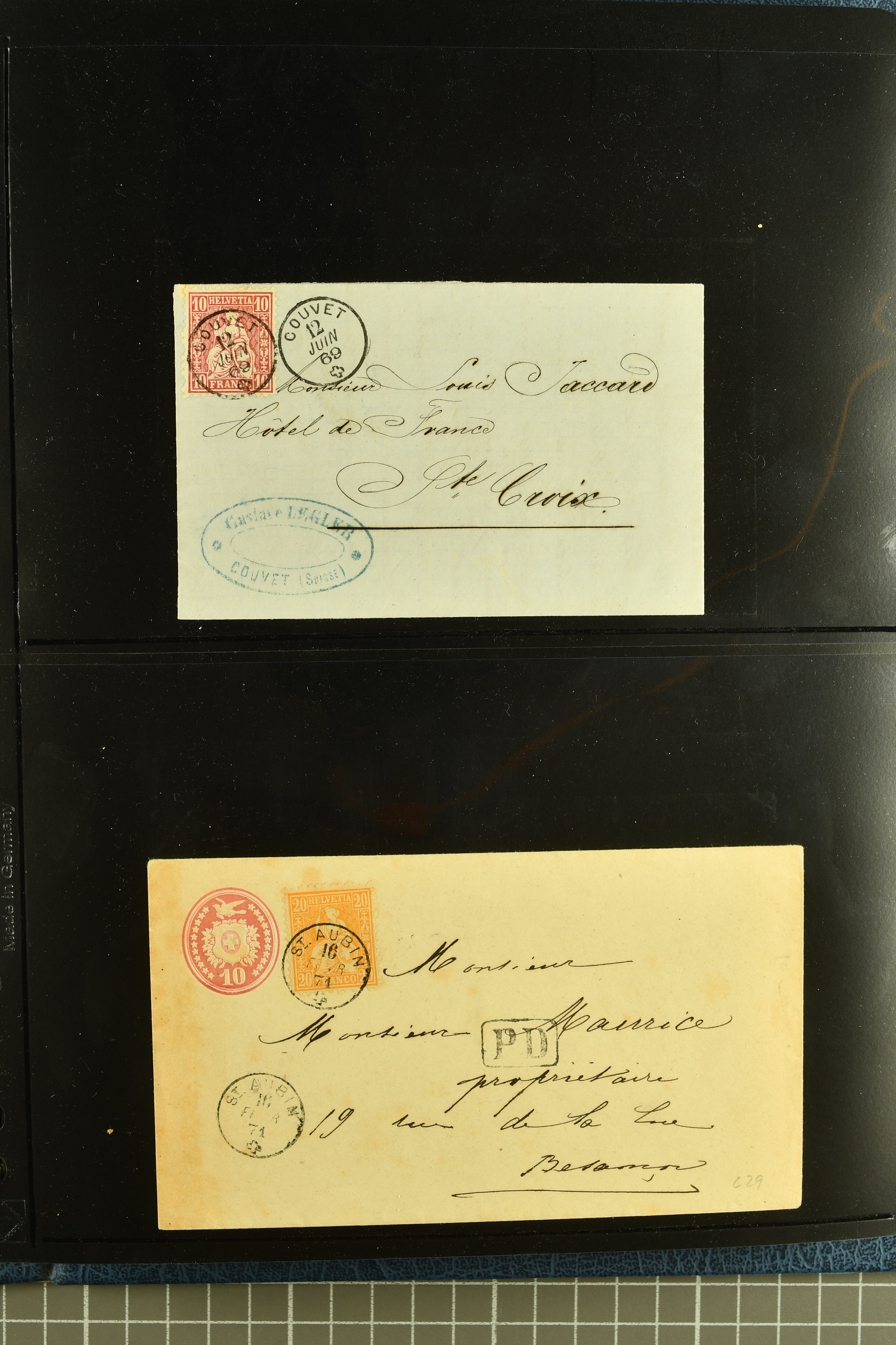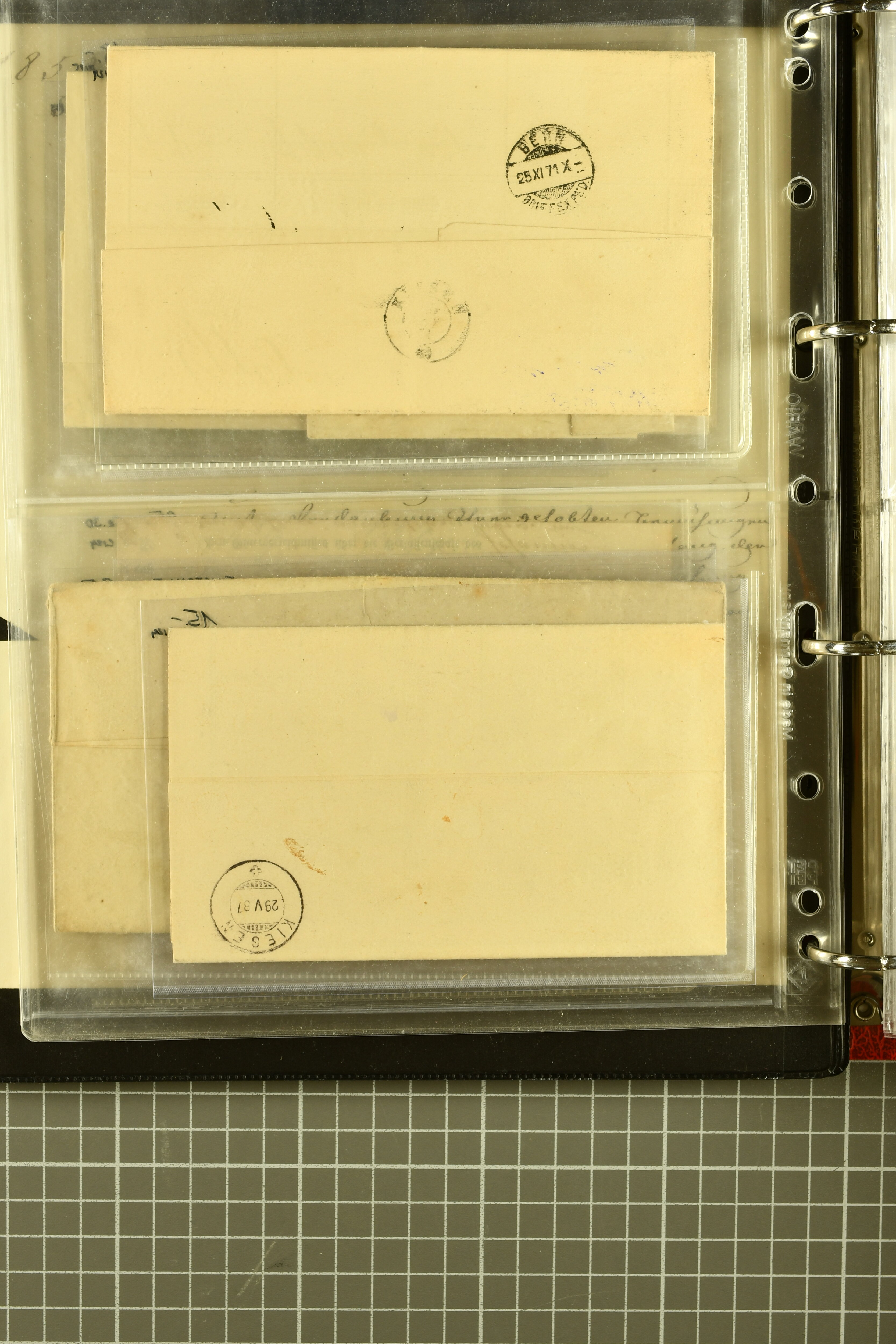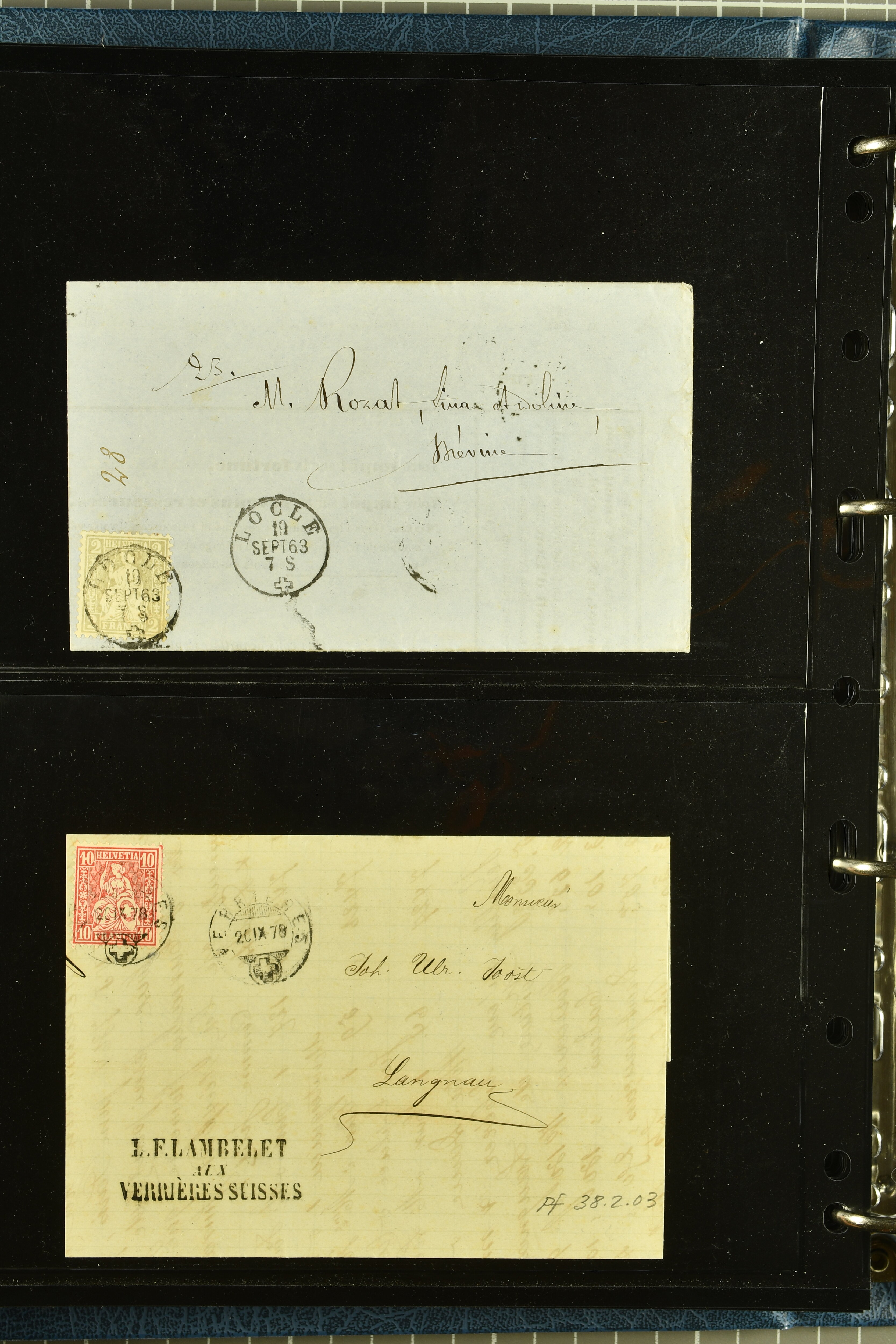 9880 cover imagePostgeschichte Kanton Neuenburg 1854/1940 (ca.): Sammlung 180 Briefe und Karten ab acht Strubelbriefen mit einigen interessanten Entwertungen wie gr. Zierkreisstempel "BOUDRY 28 JANV. 1861", div. Fingerhutstempel oder einem Faltbrief nach Frankreich. Später Sitzende Helvetia und Ganzsachen mit zahlreichen Fingerhutstempeln worunter "MONTMIRAIL 23. NOV. 74" in blau auf Tüblibrief 25 Rp. grün nach Goldberg, Schlesien (Polen) und viele weniger geläufige Stempel, Spätverwendungen der grossen Zierkreisstempel von Serrières, Saint-Sulpice und Auvernier, Stabstp. wie "St. Olivier" auf kleinformatigem Drucksachen-Umschlag mit 2 Rp. grau nach La Chaux-de-Fonds, "CHAMBRELIEN" in blau auf sauberem Briefumschlag mit 10 Rp. rot nach Neuchâtel, verschiedene Güller-Datumstp. in blau aber auch diverse Auslandsfrankaturen der Sitzenden Helvetia oder eine frühe Einladungskarte der "Société la Récréation" in La Chaux-de-Fonds frankiert mit 2 Rp. oliv (1878). Ausserdem Ziffermuster und Stehende Helvetia mit interessanten Auslands-Buntfrankaturen, dekorativen illustrierten Briefen und Karten oder div. Ambulant- und anderen Stabstempeln, UPU 1900 mit 10 Rp.-Ganzsachenpostkarte von La Chaux-de-Fonds nach St. Petersburg, Russland sowie die Ausgaben nach 1907 weiterhin mit interessanten Versandformen wie Expresspostkarten, Stempel wie Stabstp. "CLÉMESIN / NEUCHTEL" auf Postkarte von 1908, Destinationen wie zwei 10 Rp.-Ganzsachenpostkarten nach Chile und Uruguay (1909/14), Vignetten und besseren Frankaturen wie zwei Karten mit Pro Juventute-Vorläufer französisch (SBK JII). Eine interessante Sammlung in meist guter Erhaltung; vier Atteste (Image 1) (Image 2) (Image 3) (Image 4) (Image 5) (Image 6) (Image 7) (Image 8) (Image 9) (Image 10) (Image 11) (Image 12) (Image 13) (Image 14) (Image 15) (Image 16) (Image 17) (Image 18) (Image 19) (Image 20) (Image 21) (Image 22) (Image 23) (Image 24) (Image 25) (Image 26) (Image 27) (Image 28) (Image 29) (Image 30) (Image 31) (Image 32) (Image 33) (Image 34) (Image 35) (Image 36) (Image 37) (Image 38) (Image 39) (Image 40) (Image 41) (Image 42) (Image 43) (Image 44) (Image 45) (Image 46) (Image 47) (Image 48) (Image 49) (Image 50)