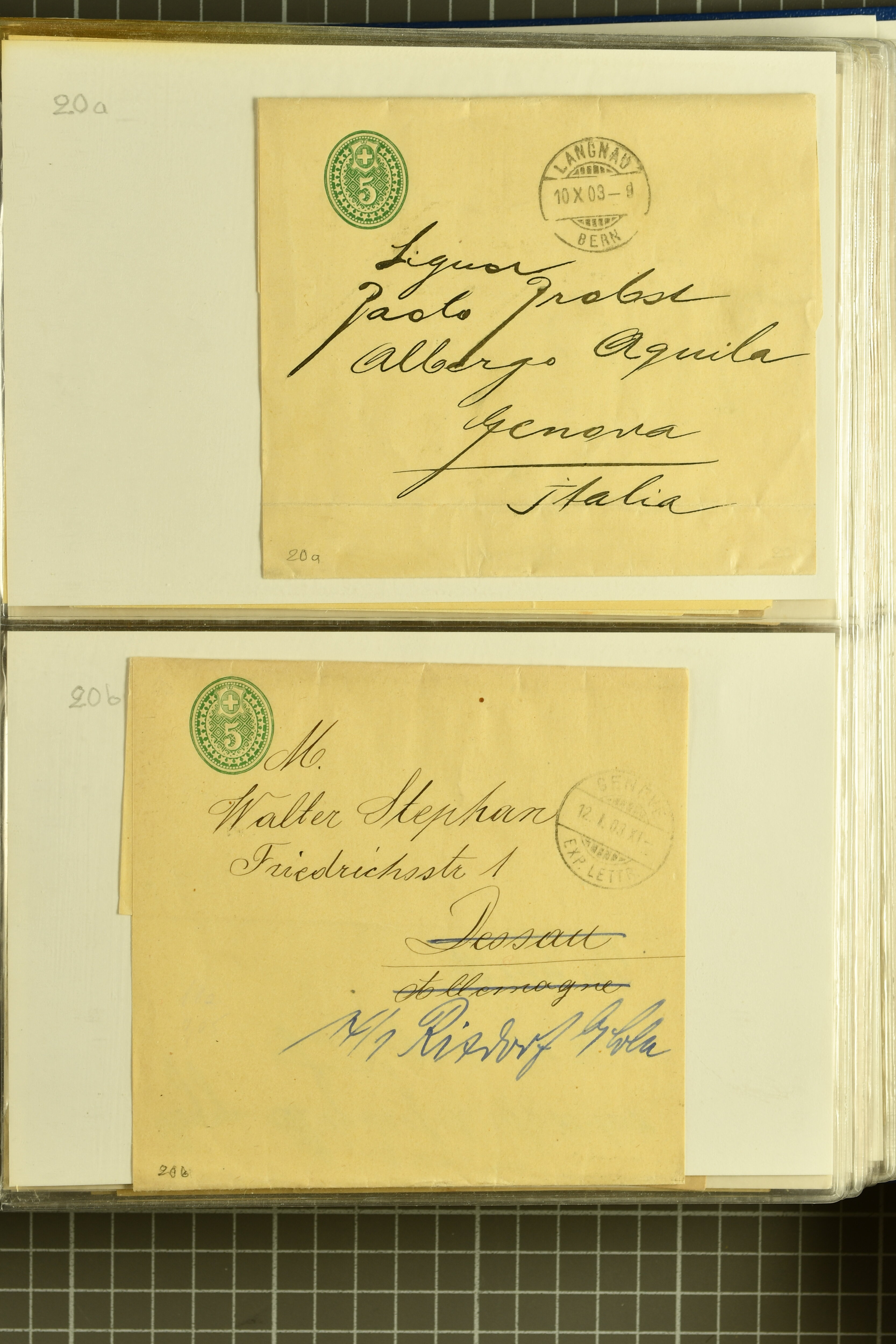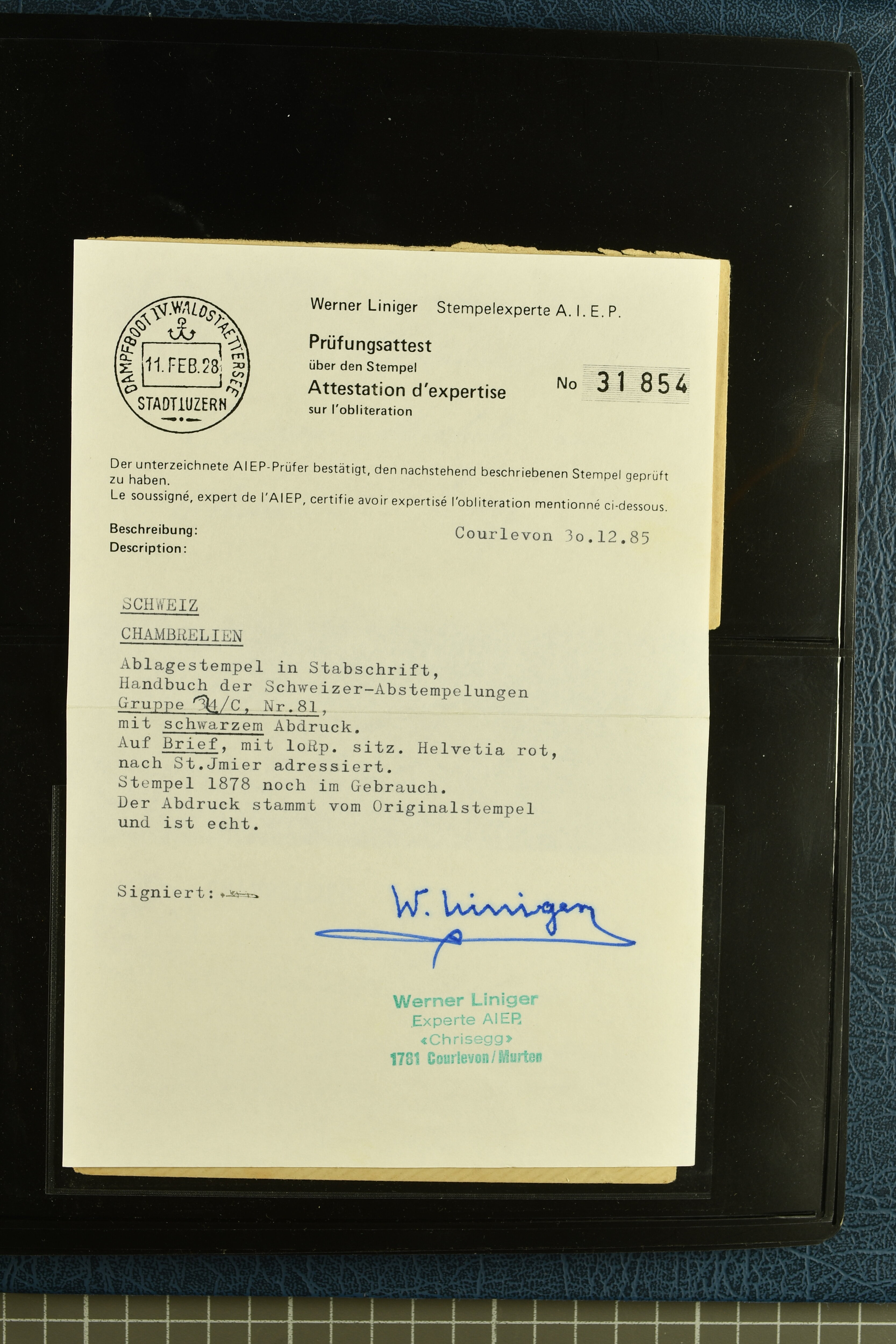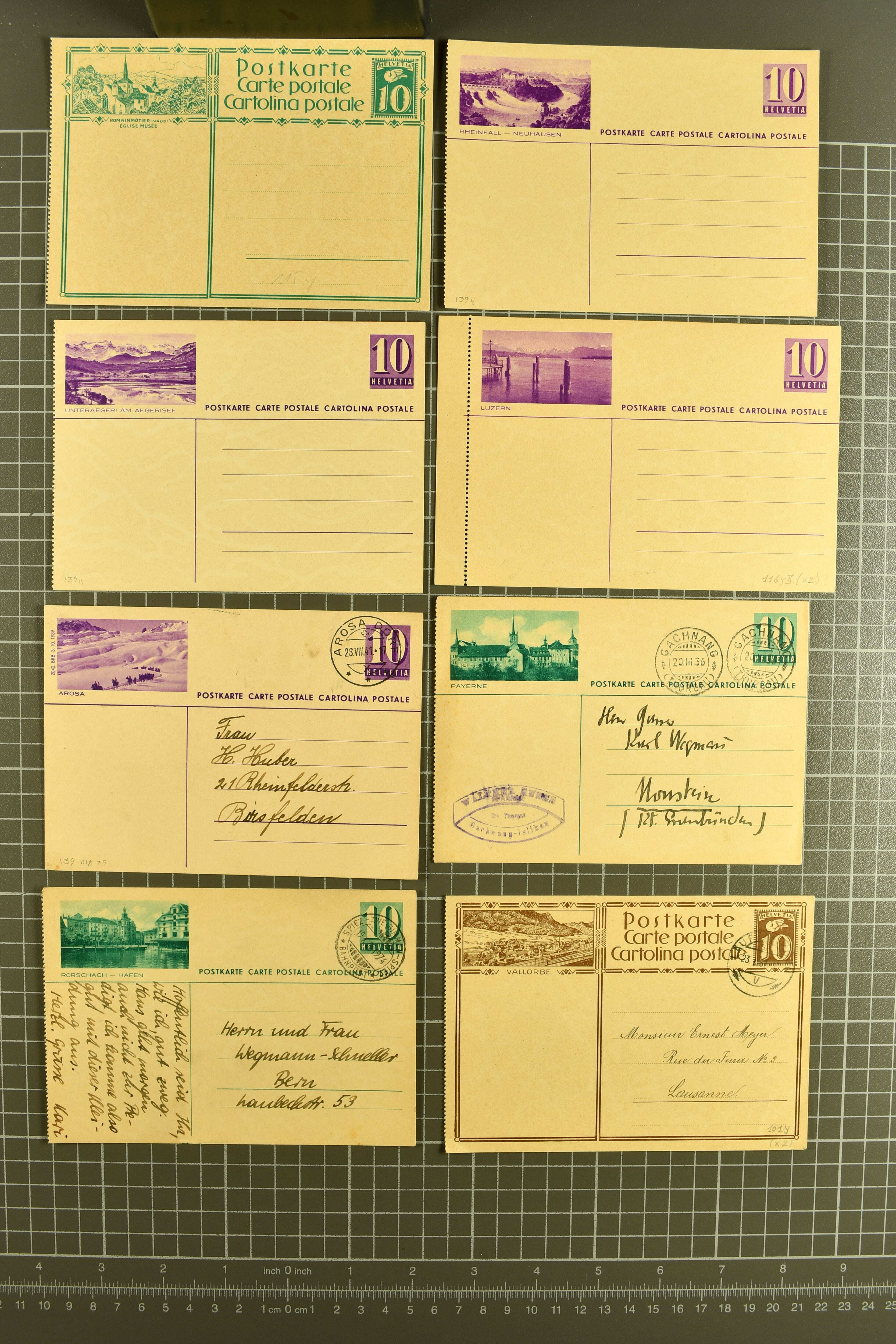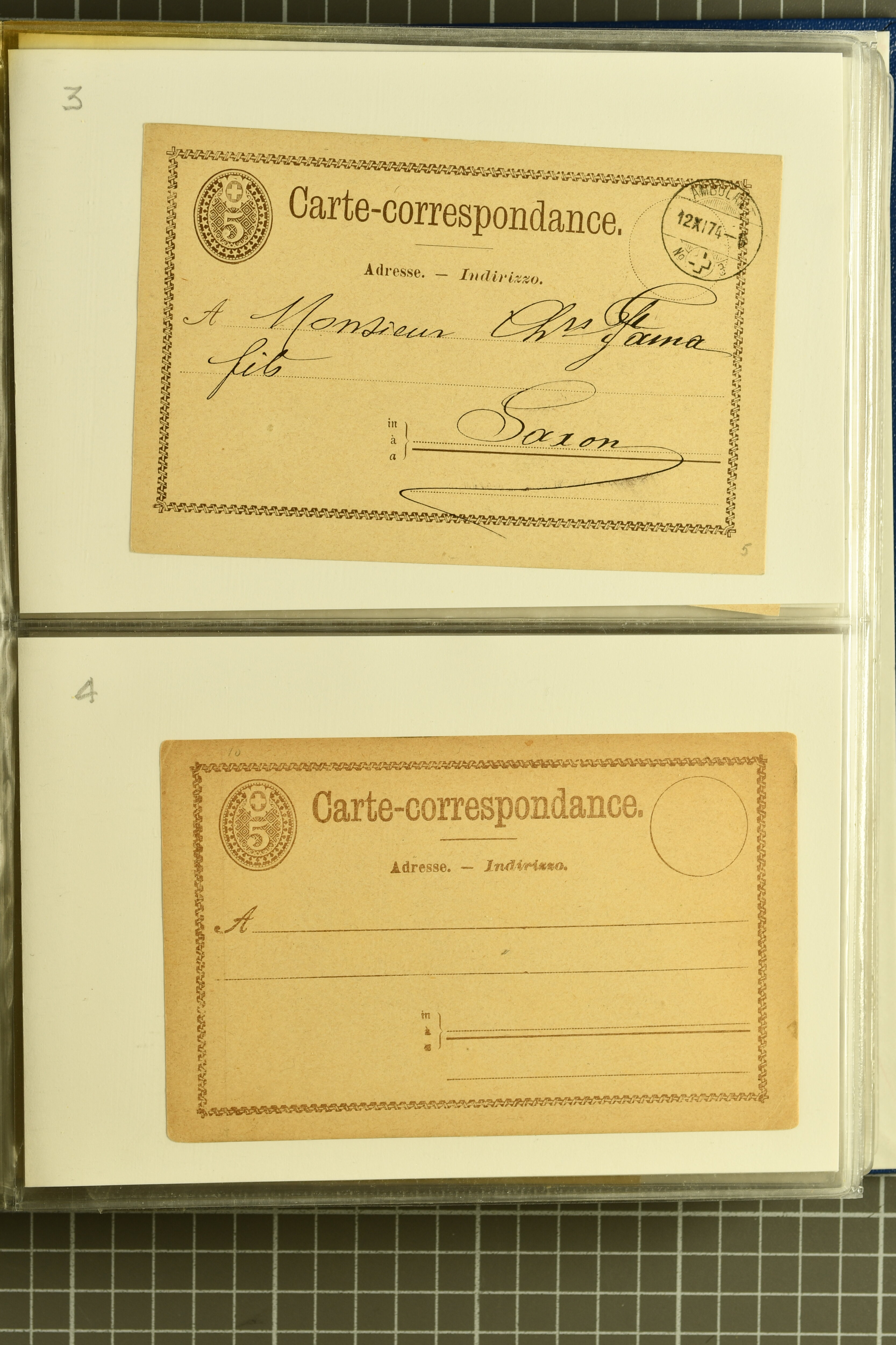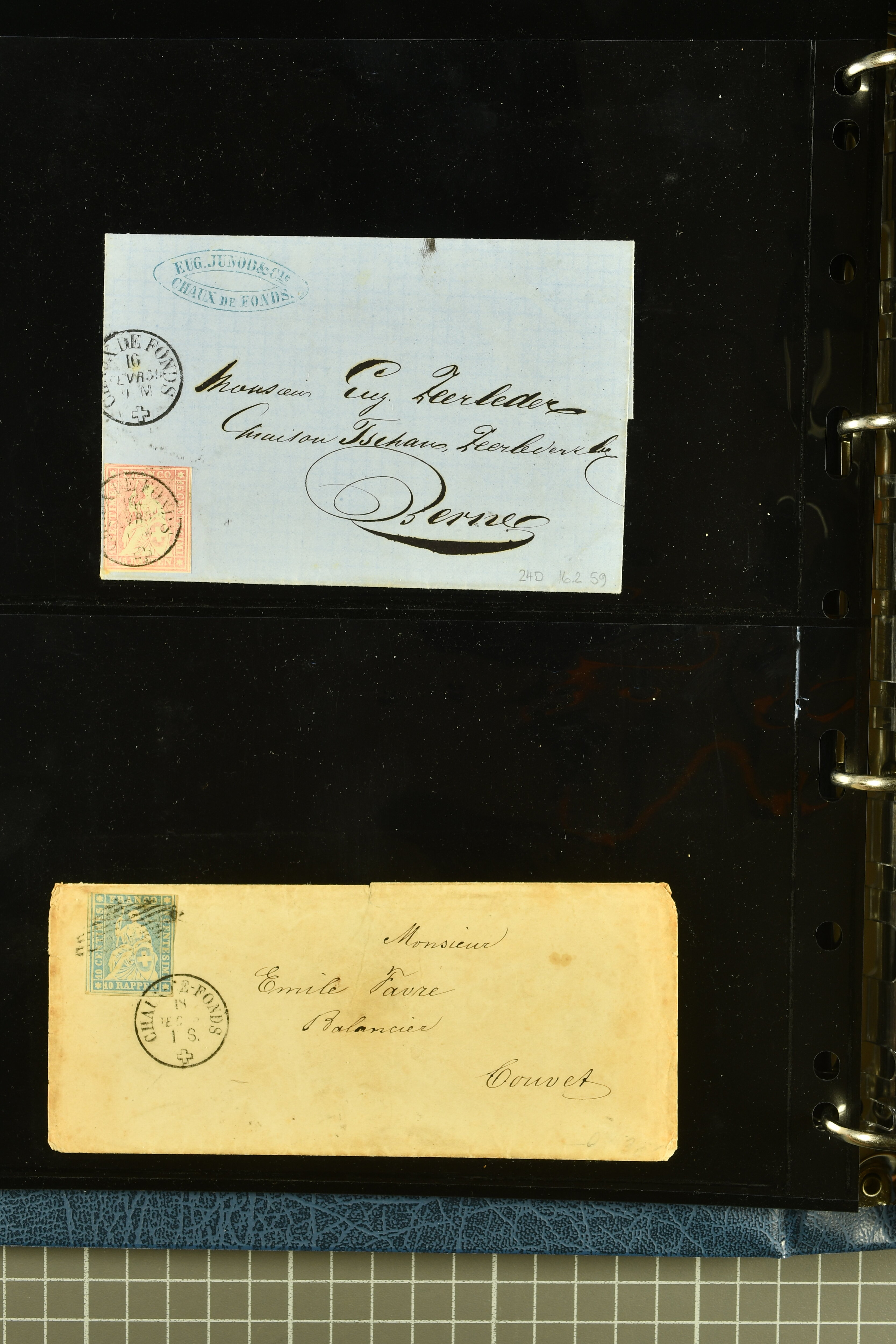 9880 cover imagePostgeschichte Kanton Neuenburg 1854/1940 (ca.): Sammlung 180 Briefe und Karten ab acht Strubelbriefen mit einigen interessanten Entwertungen wie gr. Zierkreisstempel "BOUDRY 28 JANV. 1861", div. Fingerhutstempel oder einem Faltbrief nach Frankreich. Später Sitzende Helvetia und Ganzsachen mit zahlreichen Fingerhutstempeln worunter "MONTMIRAIL 23. NOV. 74" in blau auf Tüblibrief 25 Rp. grün nach Goldberg, Schlesien (Polen) und viele weniger geläufige Stempel, Spätverwendungen der grossen Zierkreisstempel von Serrières, Saint-Sulpice und Auvernier, Stabstp. wie "St. Olivier" auf kleinformatigem Drucksachen-Umschlag mit 2 Rp. grau nach La Chaux-de-Fonds, "CHAMBRELIEN" in blau auf sauberem Briefumschlag mit 10 Rp. rot nach Neuchâtel, verschiedene Güller-Datumstp. in blau aber auch diverse Auslandsfrankaturen der Sitzenden Helvetia oder eine frühe Einladungskarte der "Société la Récréation" in La Chaux-de-Fonds frankiert mit 2 Rp. oliv (1878). Ausserdem Ziffermuster und Stehende Helvetia mit interessanten Auslands-Buntfrankaturen, dekorativen illustrierten Briefen und Karten oder div. Ambulant- und anderen Stabstempeln, UPU 1900 mit 10 Rp.-Ganzsachenpostkarte von La Chaux-de-Fonds nach St. Petersburg, Russland sowie die Ausgaben nach 1907 weiterhin mit interessanten Versandformen wie Expresspostkarten, Stempel wie Stabstp. "CLÉMESIN / NEUCHTEL" auf Postkarte von 1908, Destinationen wie zwei 10 Rp.-Ganzsachenpostkarten nach Chile und Uruguay (1909/14), Vignetten und besseren Frankaturen wie zwei Karten mit Pro Juventute-Vorläufer französisch (SBK JII). Eine interessante Sammlung in meist guter Erhaltung; vier Atteste (Image 1) (Image 2) (Image 3) (Image 4) (Image 5) (Image 6) (Image 7) (Image 8) (Image 9) (Image 10) (Image 11) (Image 12) (Image 13) (Image 14) (Image 15) (Image 16) (Image 17) (Image 18) (Image 19) (Image 20) (Image 21) (Image 22) (Image 23) (Image 24) (Image 25) (Image 26) (Image 27) (Image 28) (Image 29) (Image 30) (Image 31) (Image 32) (Image 33) (Image 34) (Image 35) (Image 36) (Image 37) (Image 38) (Image 39) (Image 40) (Image 41) (Image 42) (Image 43) (Image 44) (Image 45) (Image 46) (Image 47) (Image 48) (Image 49) (Image 50)