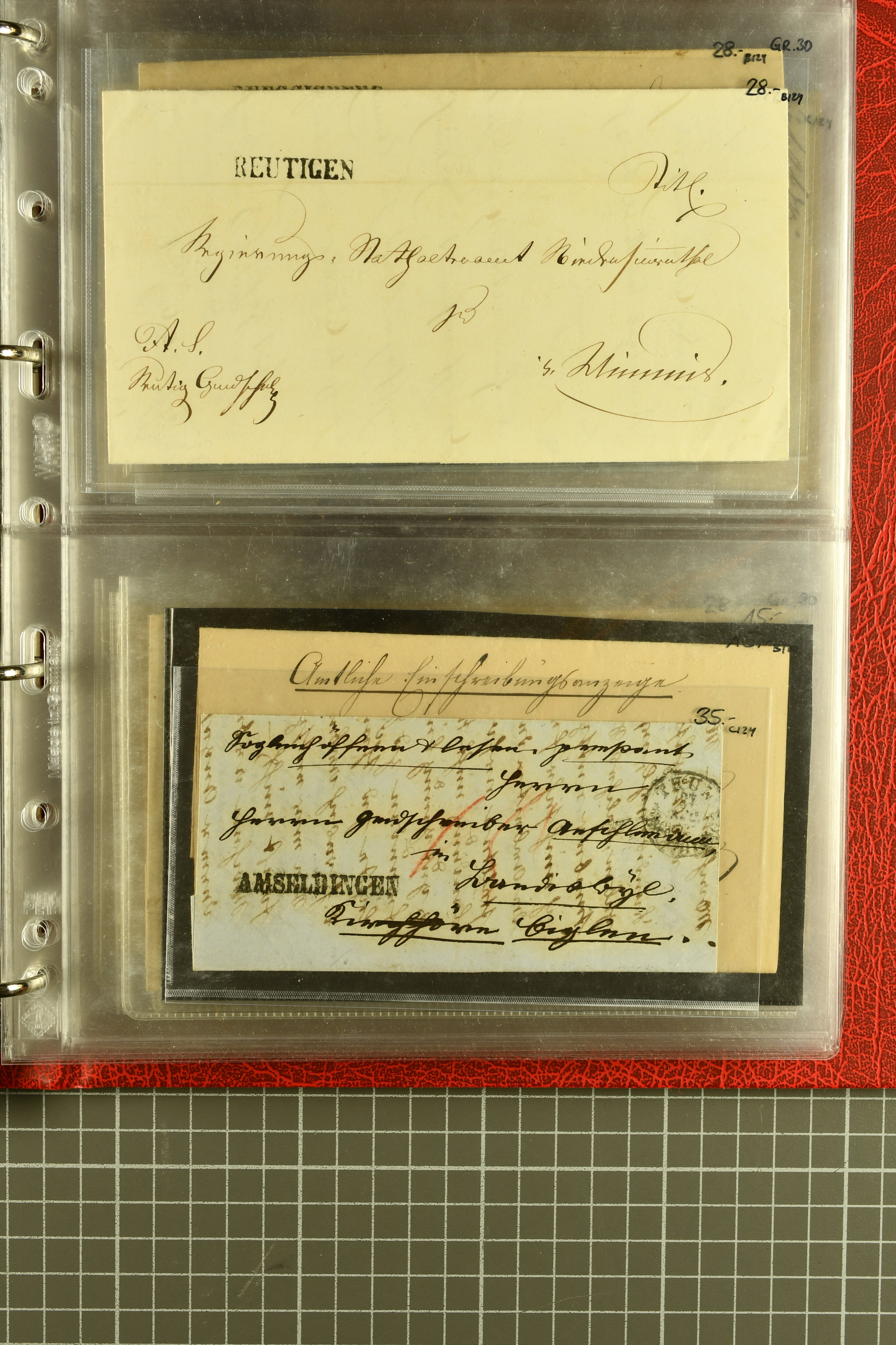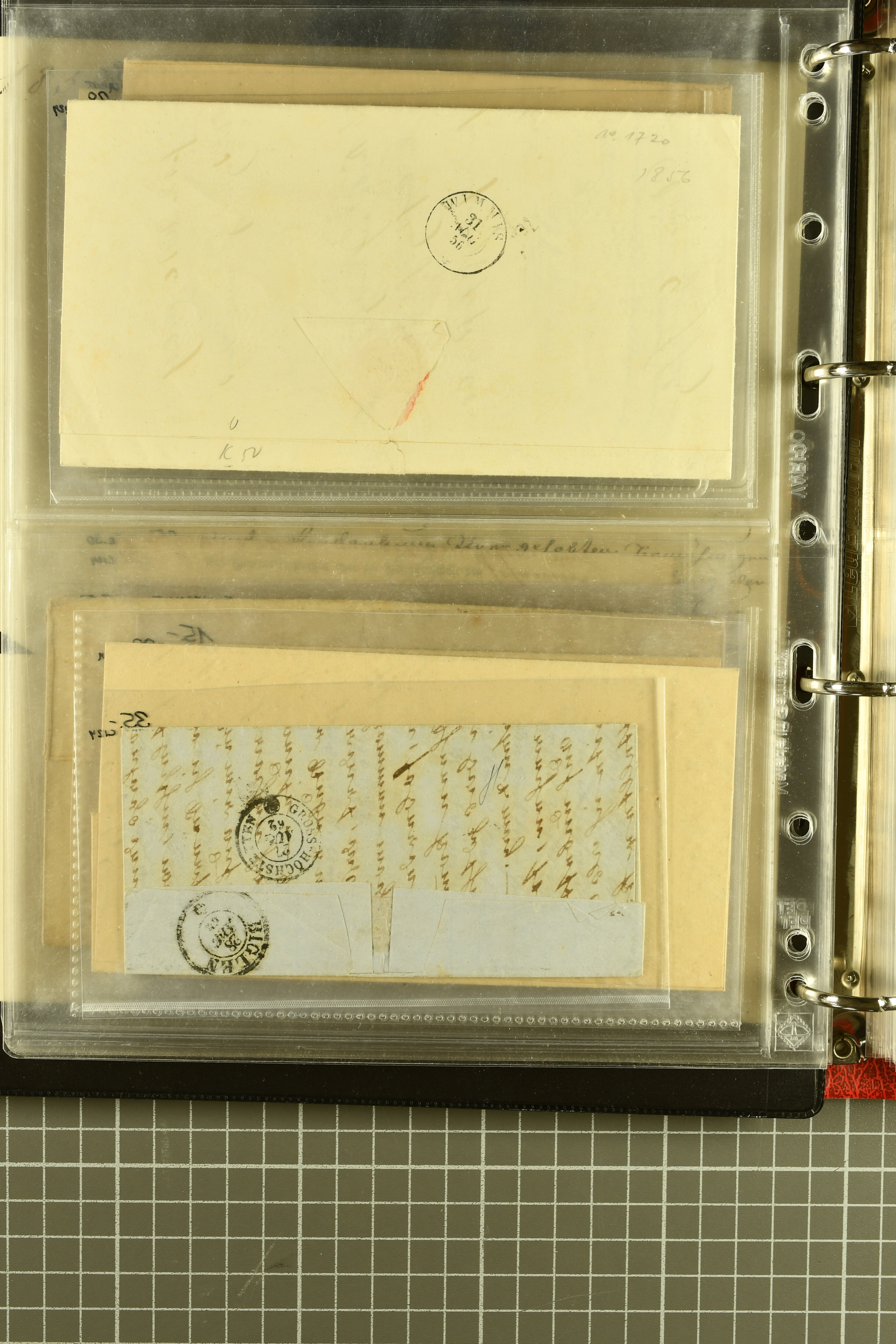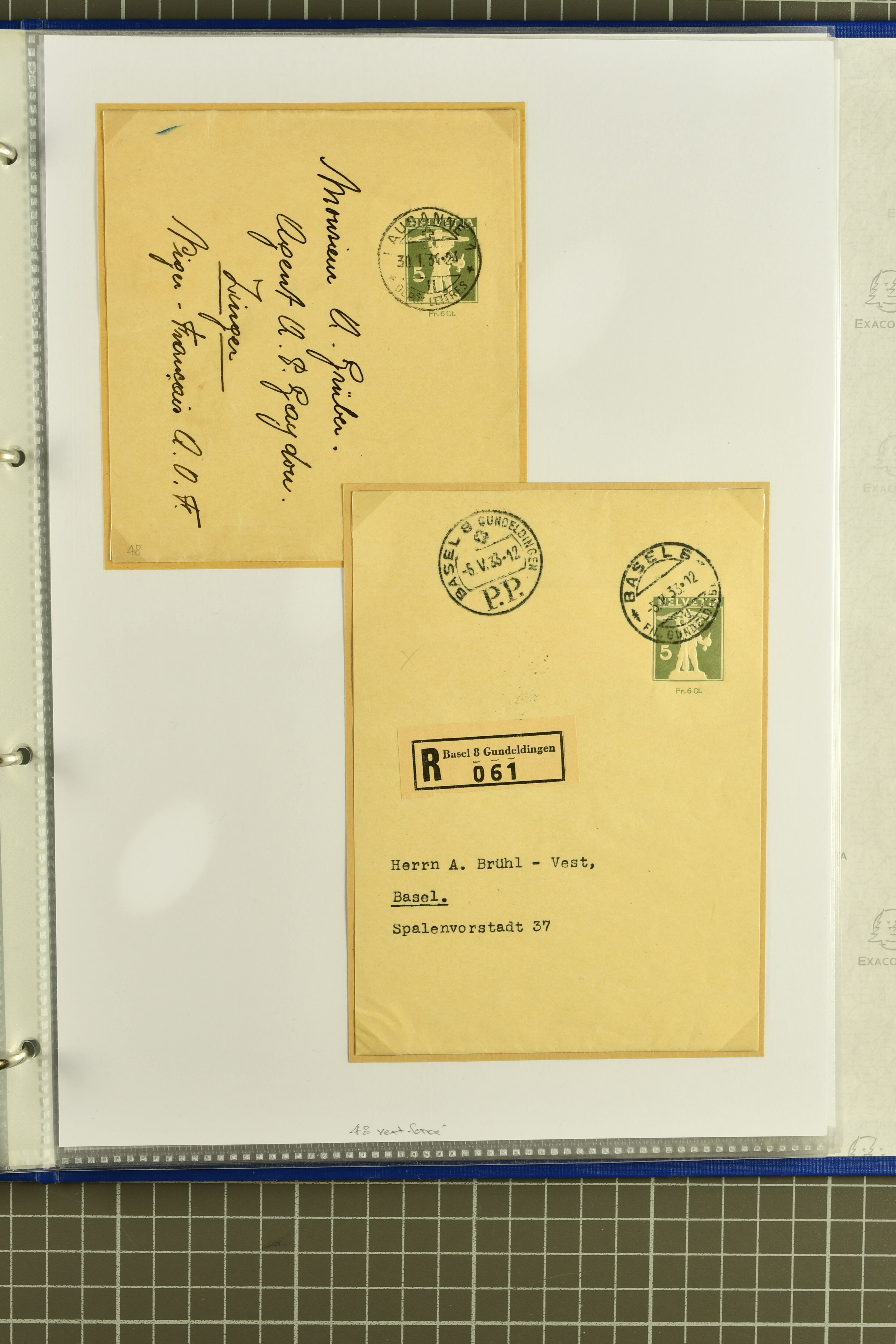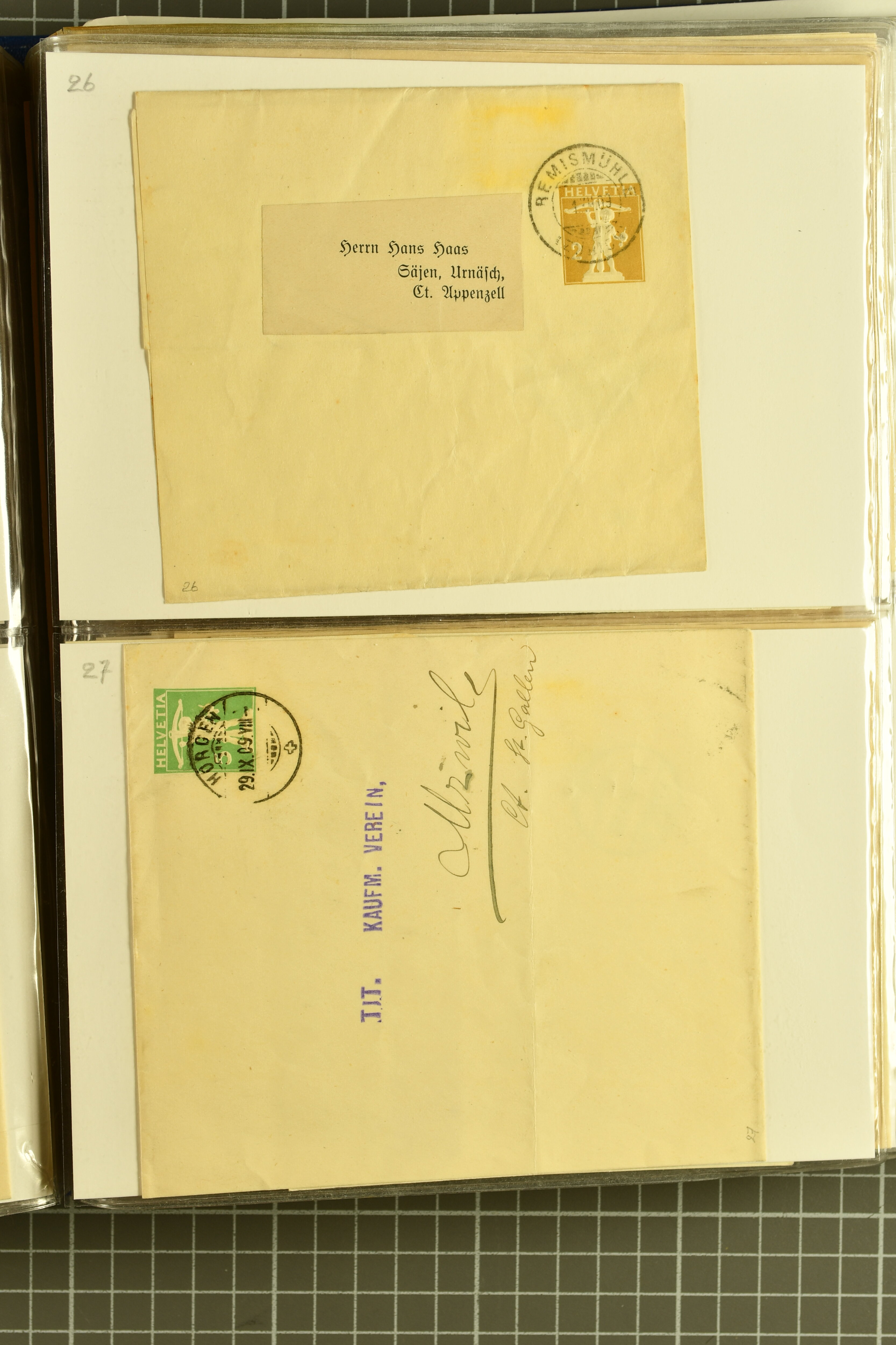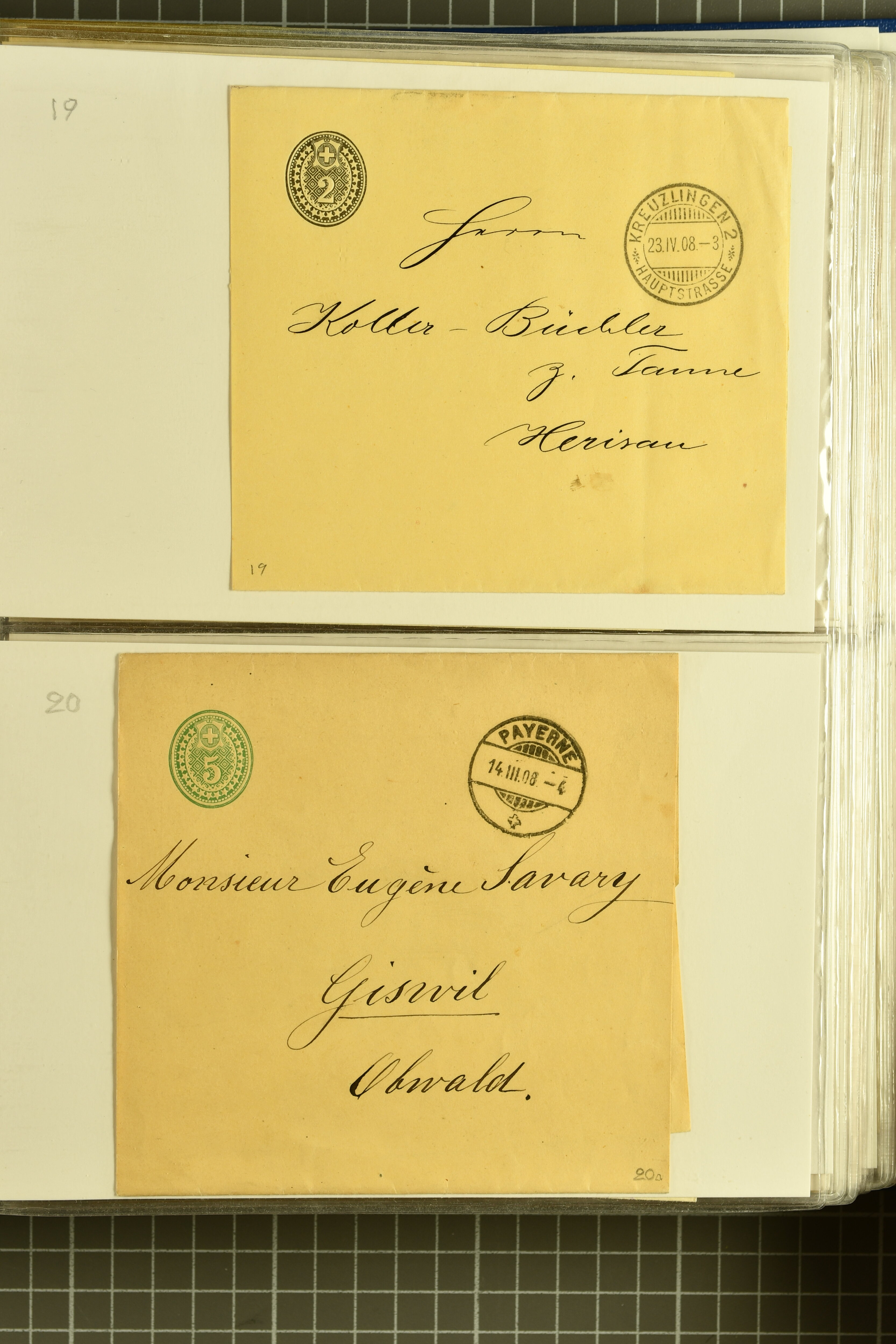 9880 cover imagePostgeschichte Kanton Neuenburg 1854/1940 (ca.): Sammlung 180 Briefe und Karten ab acht Strubelbriefen mit einigen interessanten Entwertungen wie gr. Zierkreisstempel "BOUDRY 28 JANV. 1861", div. Fingerhutstempel oder einem Faltbrief nach Frankreich. Später Sitzende Helvetia und Ganzsachen mit zahlreichen Fingerhutstempeln worunter "MONTMIRAIL 23. NOV. 74" in blau auf Tüblibrief 25 Rp. grün nach Goldberg, Schlesien (Polen) und viele weniger geläufige Stempel, Spätverwendungen der grossen Zierkreisstempel von Serrières, Saint-Sulpice und Auvernier, Stabstp. wie "St. Olivier" auf kleinformatigem Drucksachen-Umschlag mit 2 Rp. grau nach La Chaux-de-Fonds, "CHAMBRELIEN" in blau auf sauberem Briefumschlag mit 10 Rp. rot nach Neuchâtel, verschiedene Güller-Datumstp. in blau aber auch diverse Auslandsfrankaturen der Sitzenden Helvetia oder eine frühe Einladungskarte der "Société la Récréation" in La Chaux-de-Fonds frankiert mit 2 Rp. oliv (1878). Ausserdem Ziffermuster und Stehende Helvetia mit interessanten Auslands-Buntfrankaturen, dekorativen illustrierten Briefen und Karten oder div. Ambulant- und anderen Stabstempeln, UPU 1900 mit 10 Rp.-Ganzsachenpostkarte von La Chaux-de-Fonds nach St. Petersburg, Russland sowie die Ausgaben nach 1907 weiterhin mit interessanten Versandformen wie Expresspostkarten, Stempel wie Stabstp. "CLÉMESIN / NEUCHTEL" auf Postkarte von 1908, Destinationen wie zwei 10 Rp.-Ganzsachenpostkarten nach Chile und Uruguay (1909/14), Vignetten und besseren Frankaturen wie zwei Karten mit Pro Juventute-Vorläufer französisch (SBK JII). Eine interessante Sammlung in meist guter Erhaltung; vier Atteste (Image 1) (Image 2) (Image 3) (Image 4) (Image 5) (Image 6) (Image 7) (Image 8) (Image 9) (Image 10) (Image 11) (Image 12) (Image 13) (Image 14) (Image 15) (Image 16) (Image 17) (Image 18) (Image 19) (Image 20) (Image 21) (Image 22) (Image 23) (Image 24) (Image 25) (Image 26) (Image 27) (Image 28) (Image 29) (Image 30) (Image 31) (Image 32) (Image 33) (Image 34) (Image 35) (Image 36) (Image 37) (Image 38) (Image 39) (Image 40) (Image 41) (Image 42) (Image 43) (Image 44) (Image 45) (Image 46) (Image 47) (Image 48) (Image 49) (Image 50)