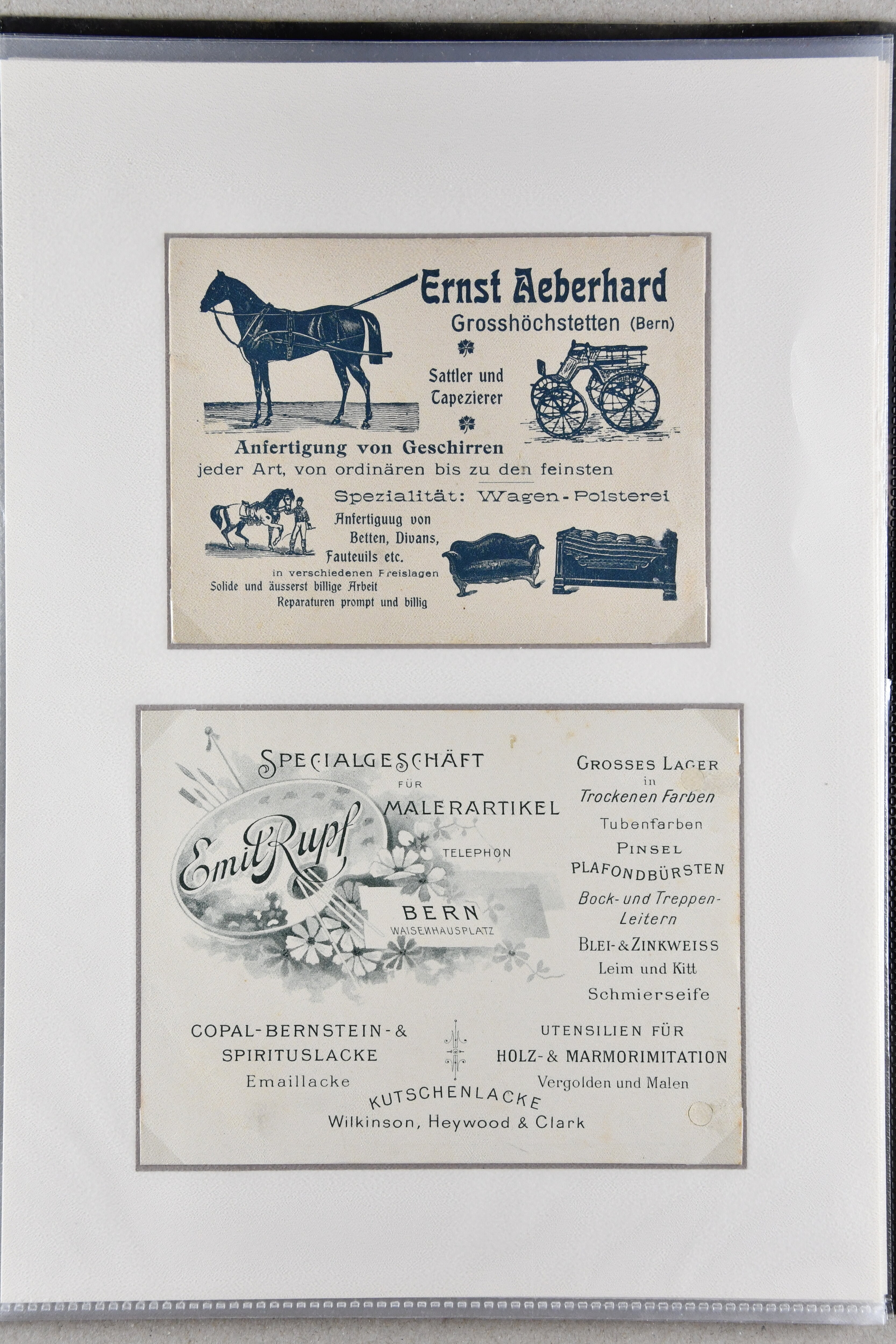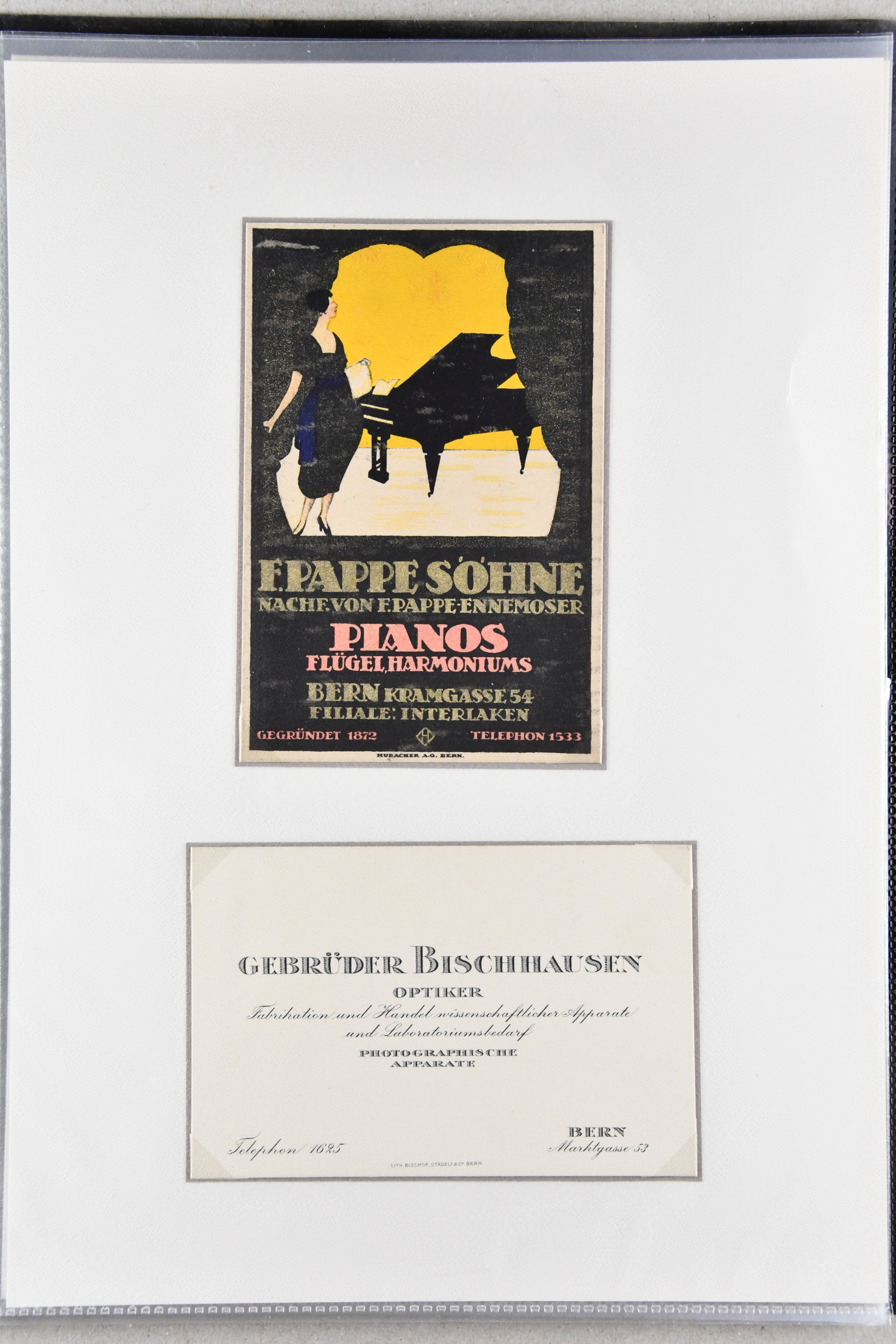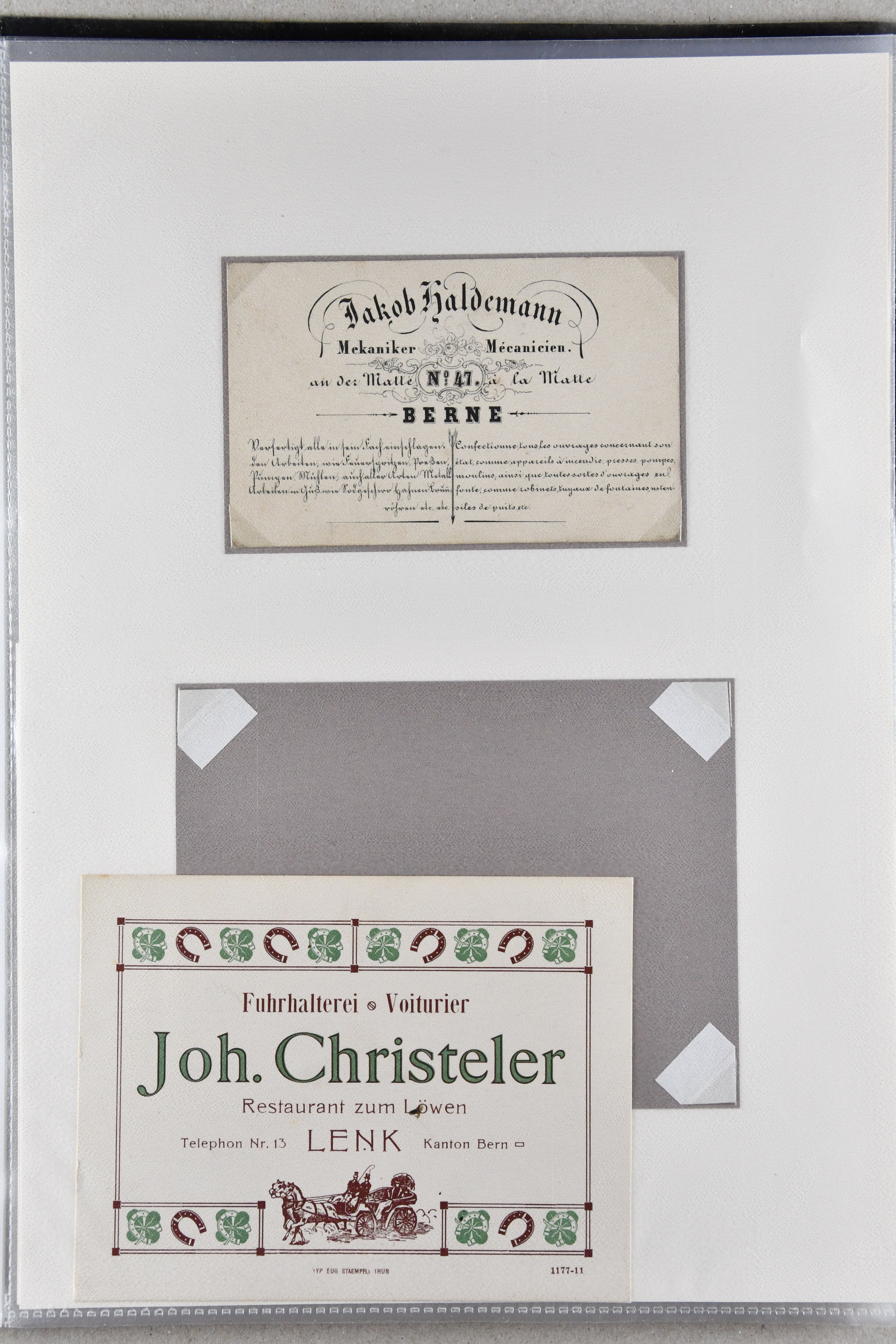 9886 cover image1900/1941: Lot 16 illustrierte Visiten- und Werbekarten aus dem Kanton Bern, dabei 'Bärenmarke - Berner Alpenmilch', attraktive Lithokarte 'F. Pappe Söhne - Pianos Bern" oder frühe Visitenkarte "Jakob Haldenman, Mekaniker / Mécanicien, an der Matte / à la Matte No. 47, Bern" (ca. 1870). Eine charmante Zusammenstellung in guter Erhaltung (Image 1) (Image 2) (Image 3) (Image 4) (Image 5) (Image 6) (Image 7) (Image 8) (Image 9) (Image 10) (Image 11) (Image 12) (Image 13) (Image 14) (Image 15) (Image 16) (Image 17)