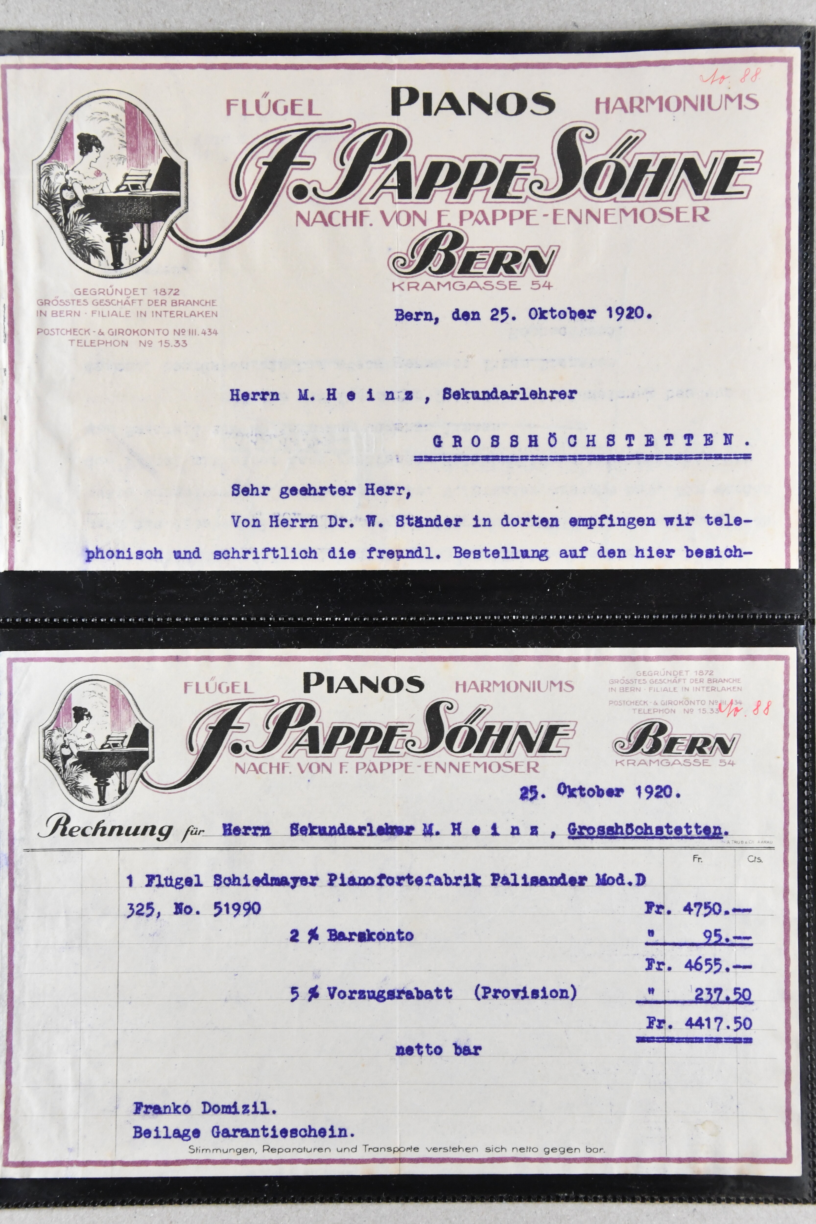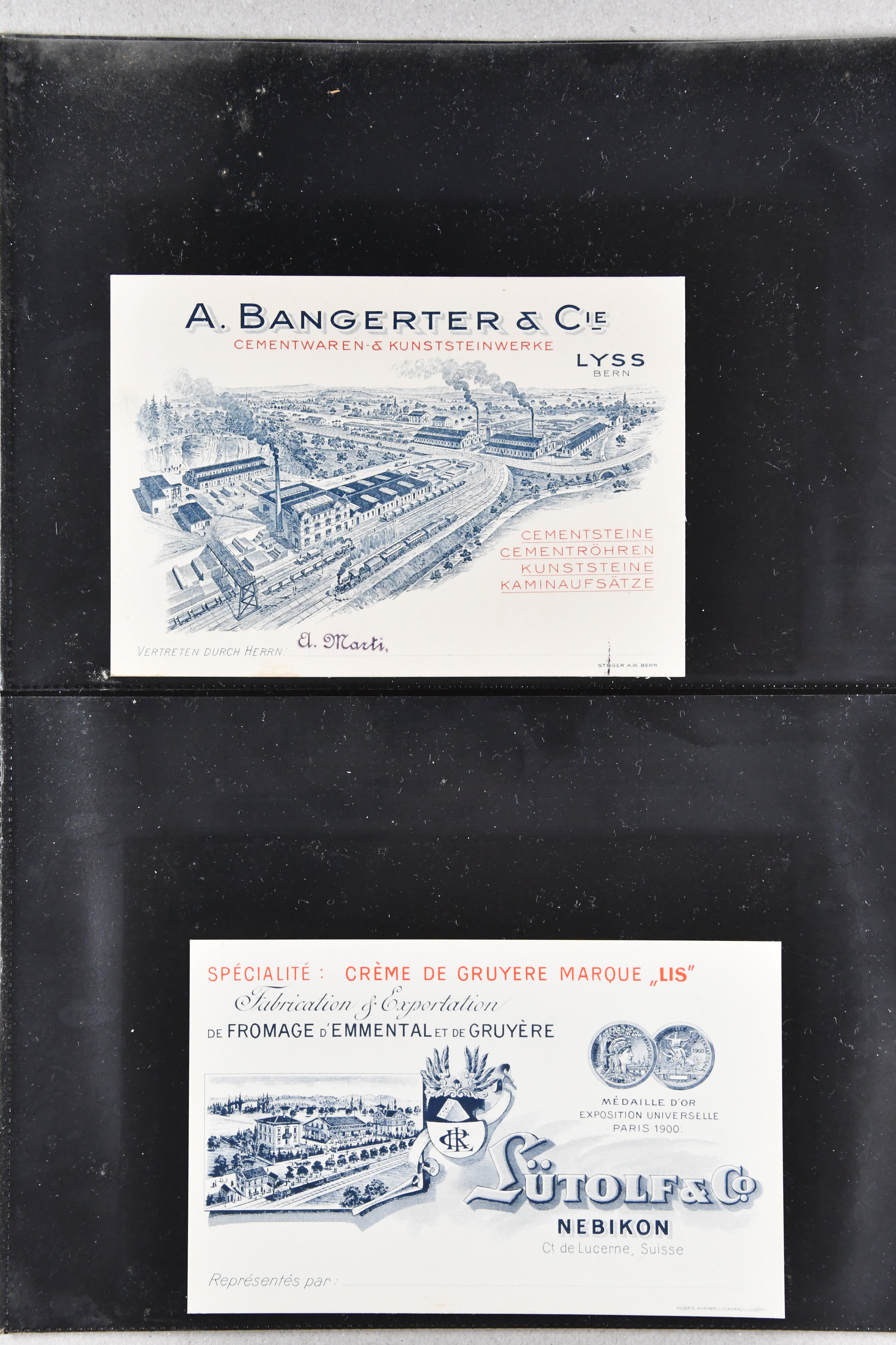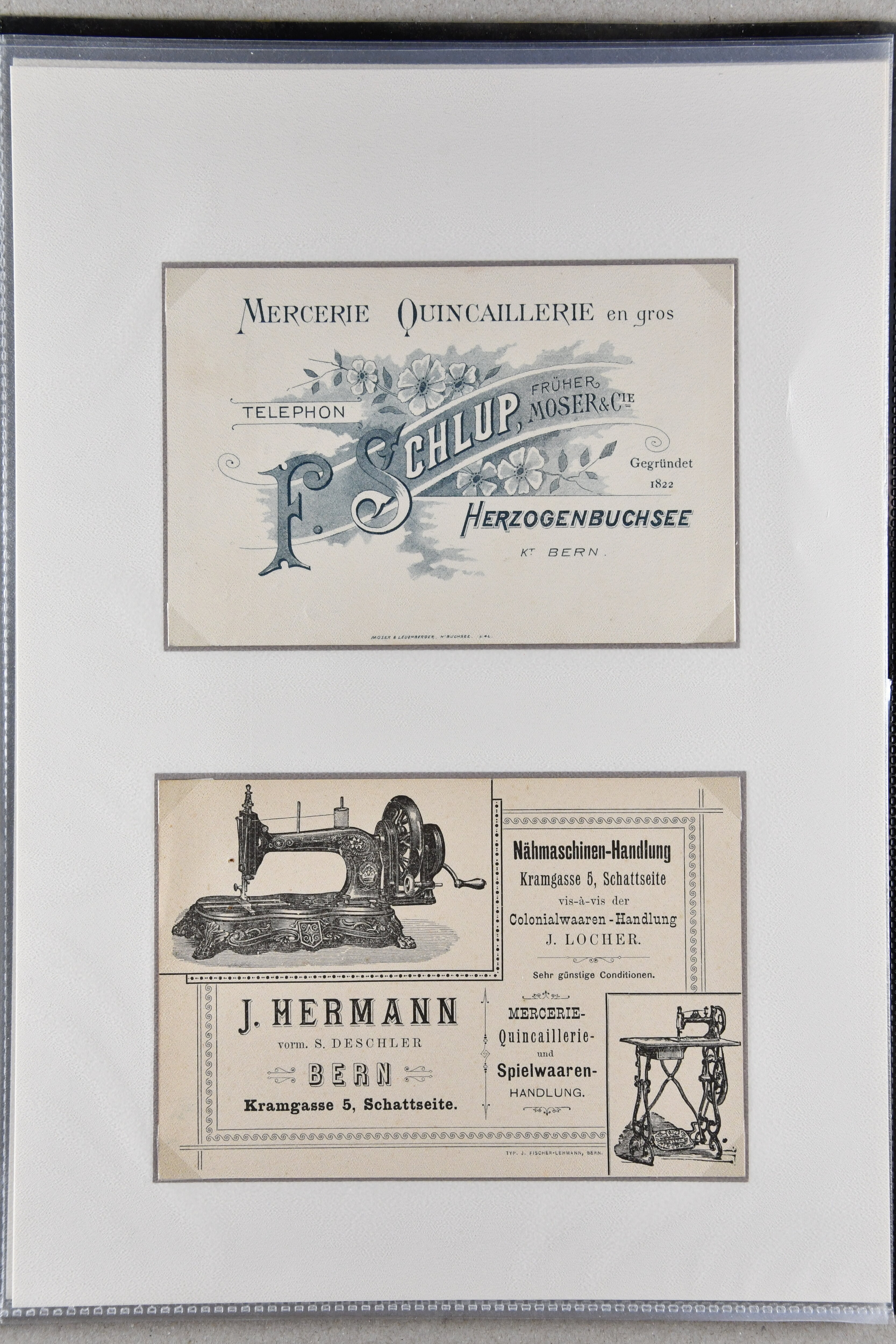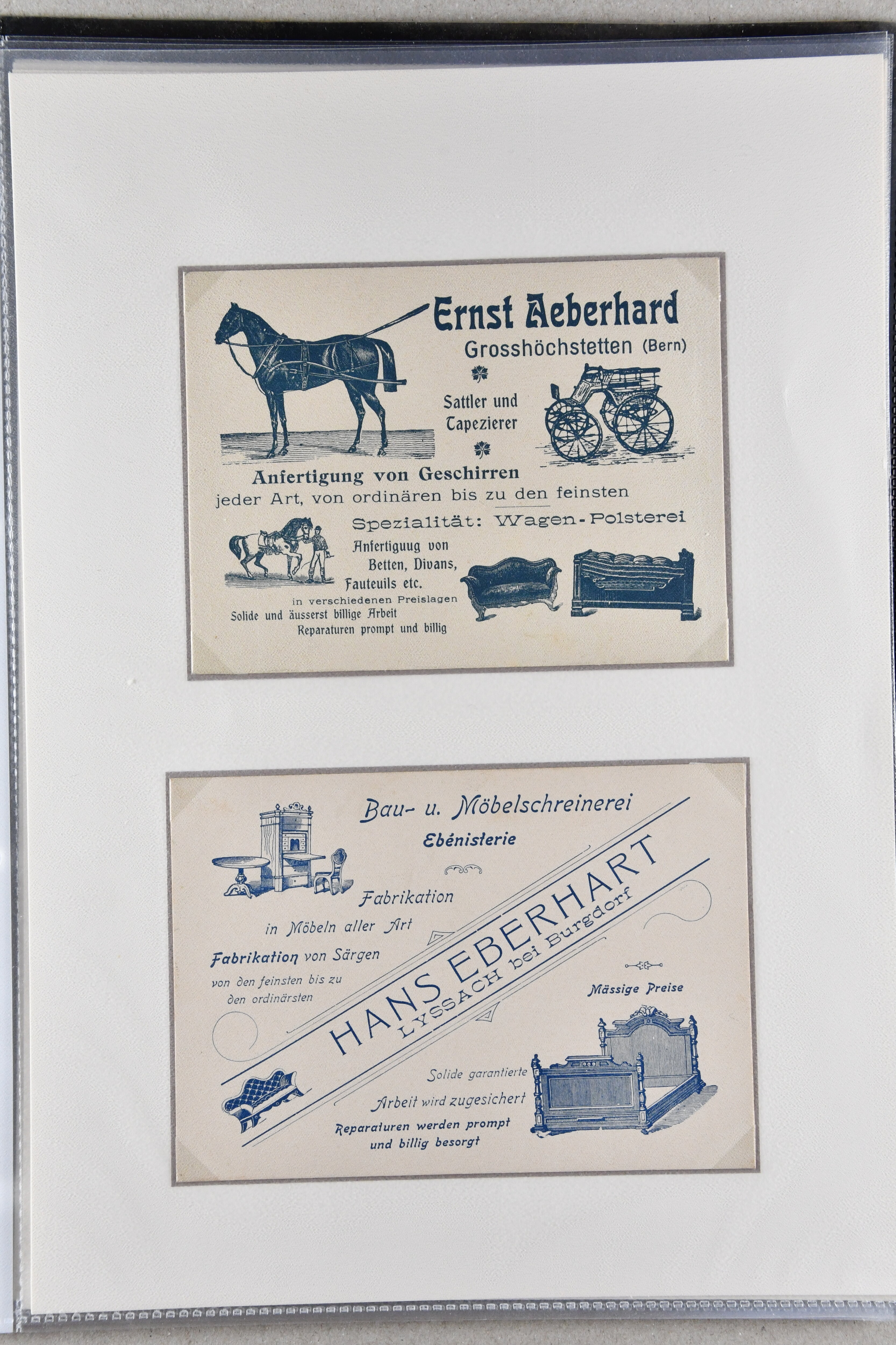 9886 cover image1900/1941: Lot 16 illustrierte Visiten- und Werbekarten aus dem Kanton Bern, dabei 'Bärenmarke - Berner Alpenmilch', attraktive Lithokarte 'F. Pappe Söhne - Pianos Bern" oder frühe Visitenkarte "Jakob Haldenman, Mekaniker / Mécanicien, an der Matte / à la Matte No. 47, Bern" (ca. 1870). Eine charmante Zusammenstellung in guter Erhaltung (Image 1) (Image 2) (Image 3) (Image 4) (Image 5) (Image 6) (Image 7) (Image 8) (Image 9) (Image 10) (Image 11) (Image 12) (Image 13) (Image 14) (Image 15) (Image 16) (Image 17)
