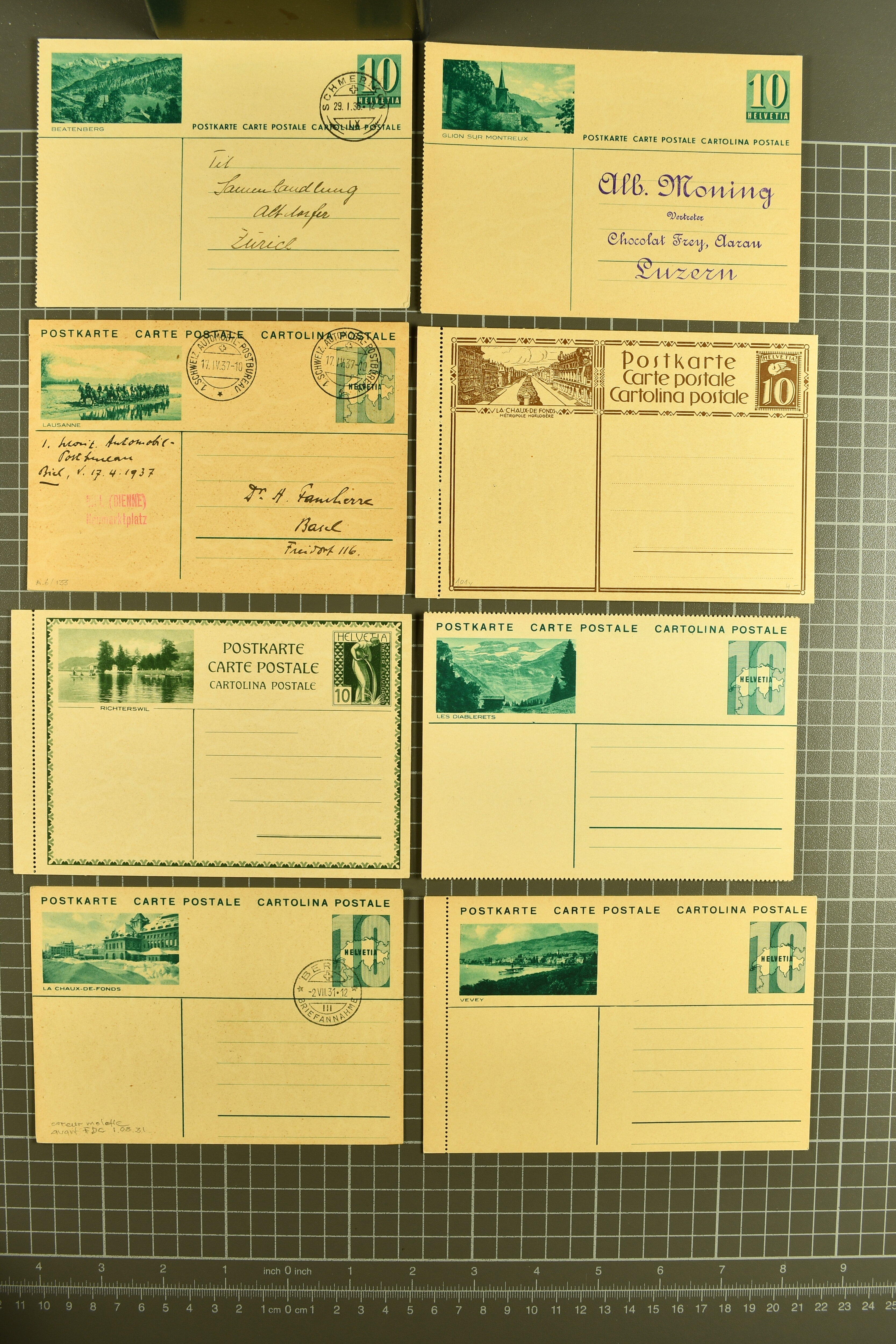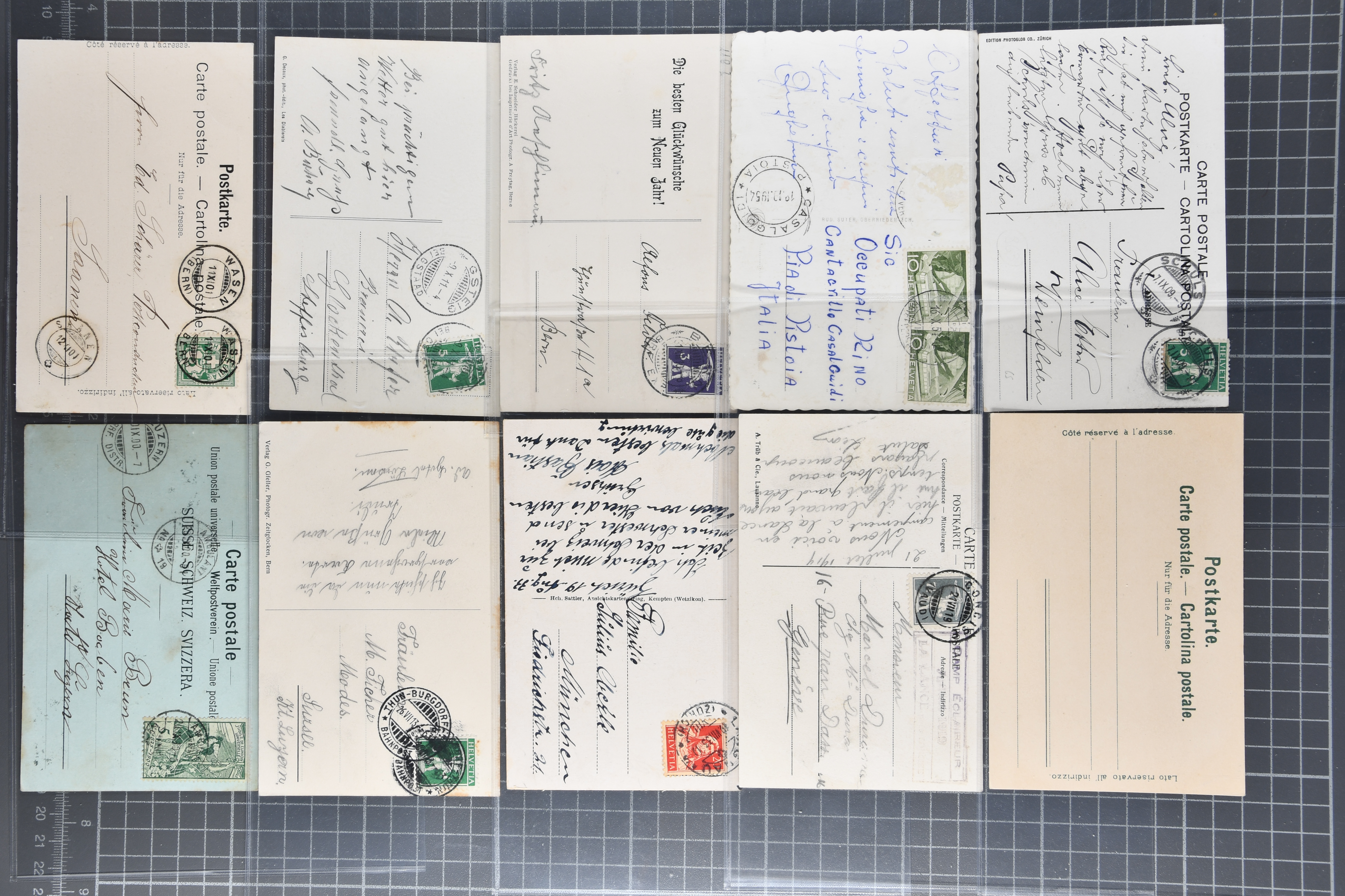 9891 cover image1910/70: Über 90 Karten ganze Schweiz (versch. Kantone), dabei Lithos, s/w Lichtdrucke, kleine Orte aber auch motivstarke Karten wie Flugzeuge, Verkehr etc. in schöner Vielfalt. Erwähnenswert sind auch die Karten aus dem Kanton Tessin, zudem einige interessante Karten mit belebten Szenen; in meist guter Erhaltung (Image 1) (Image 2) (Image 3) (Image 4) (Image 5) (Image 6) (Image 7) (Image 8) (Image 9) (Image 10) (Image 11) (Image 12) (Image 13) (Image 14) (Image 15) (Image 16) (Image 17) (Image 18) (Image 19) (Image 20) (Image 21) (Image 22) (Image 23) (Image 24) (Image 25) (Image 26) (Image 27) (Image 28) (Image 29) (Image 30)