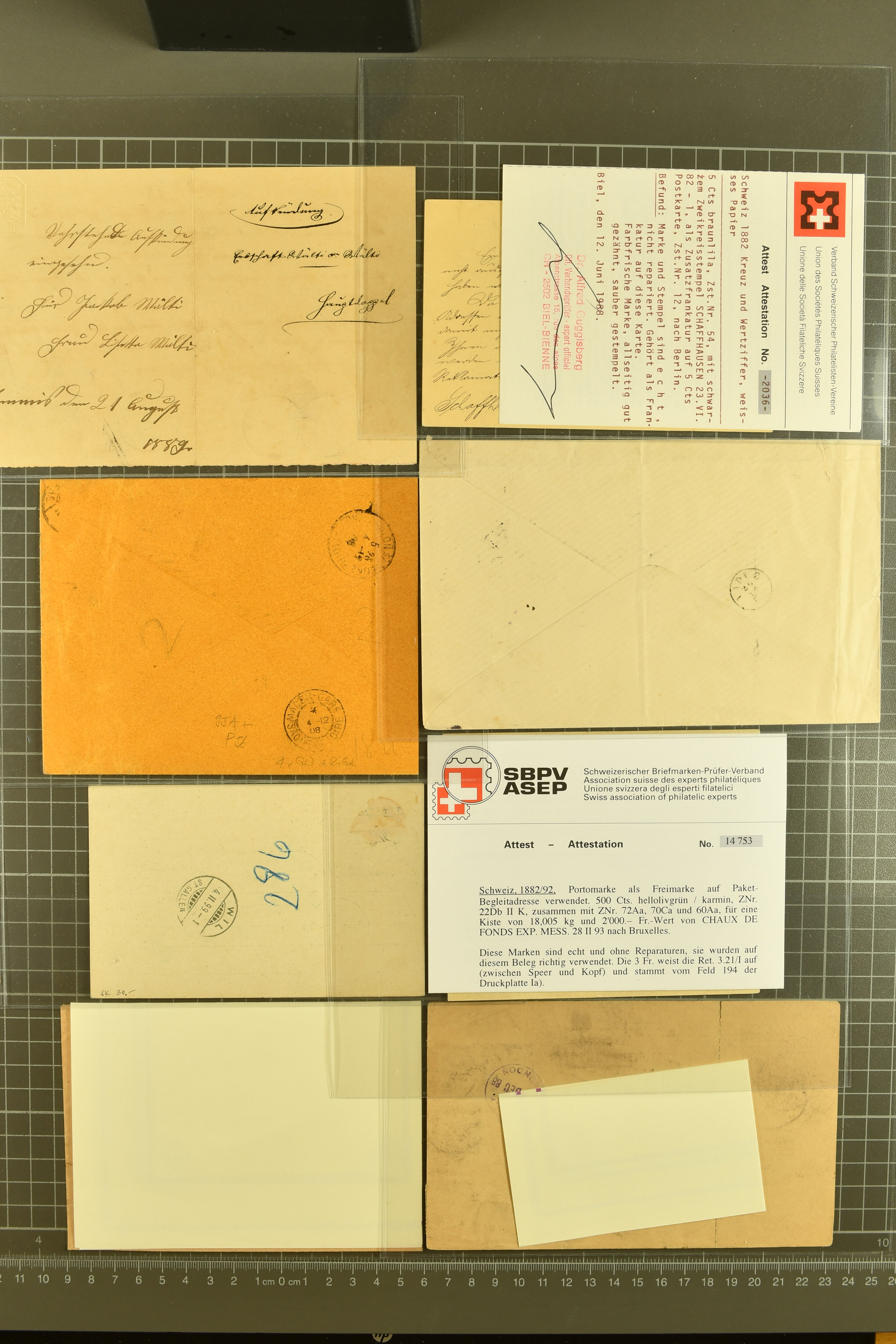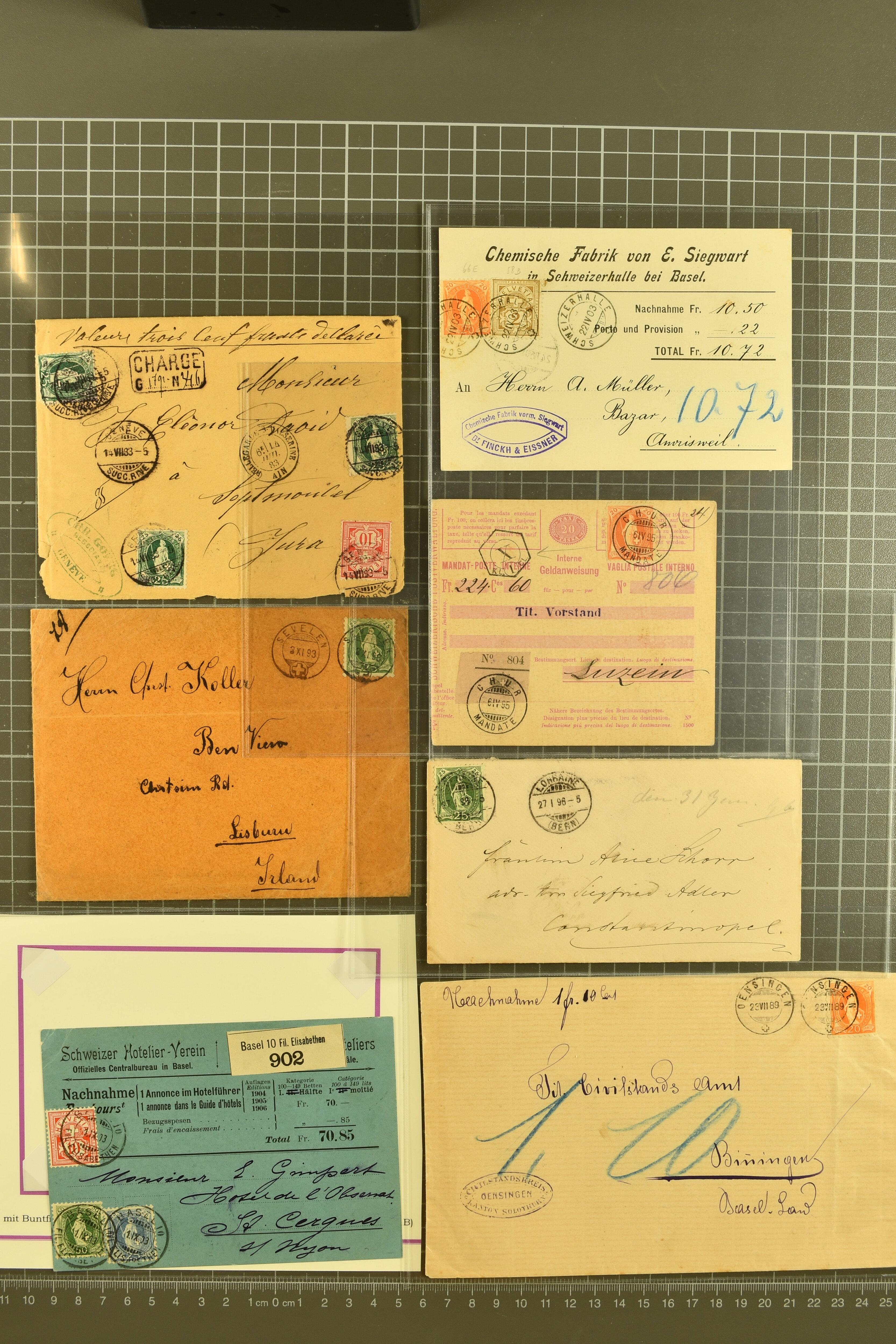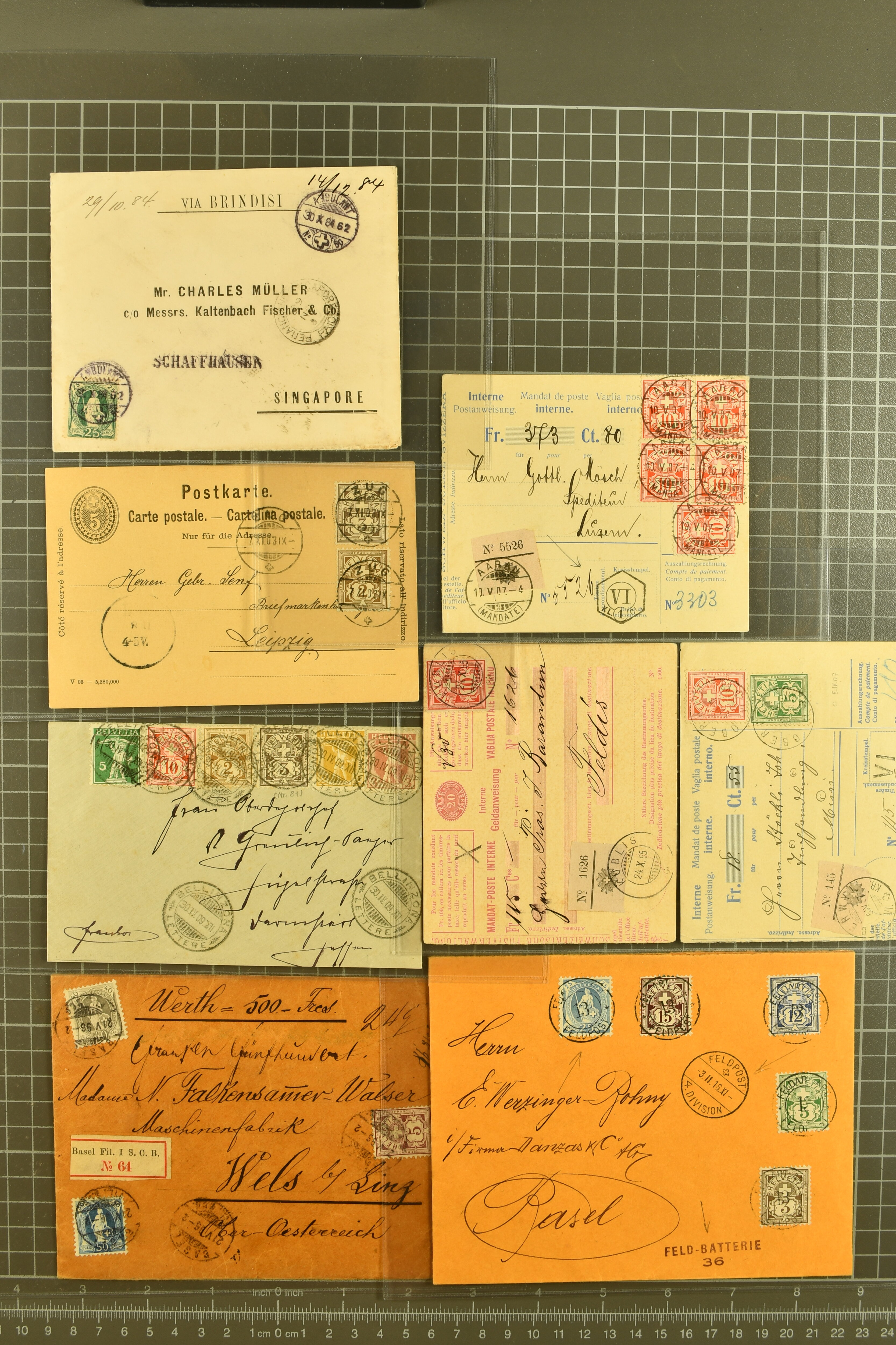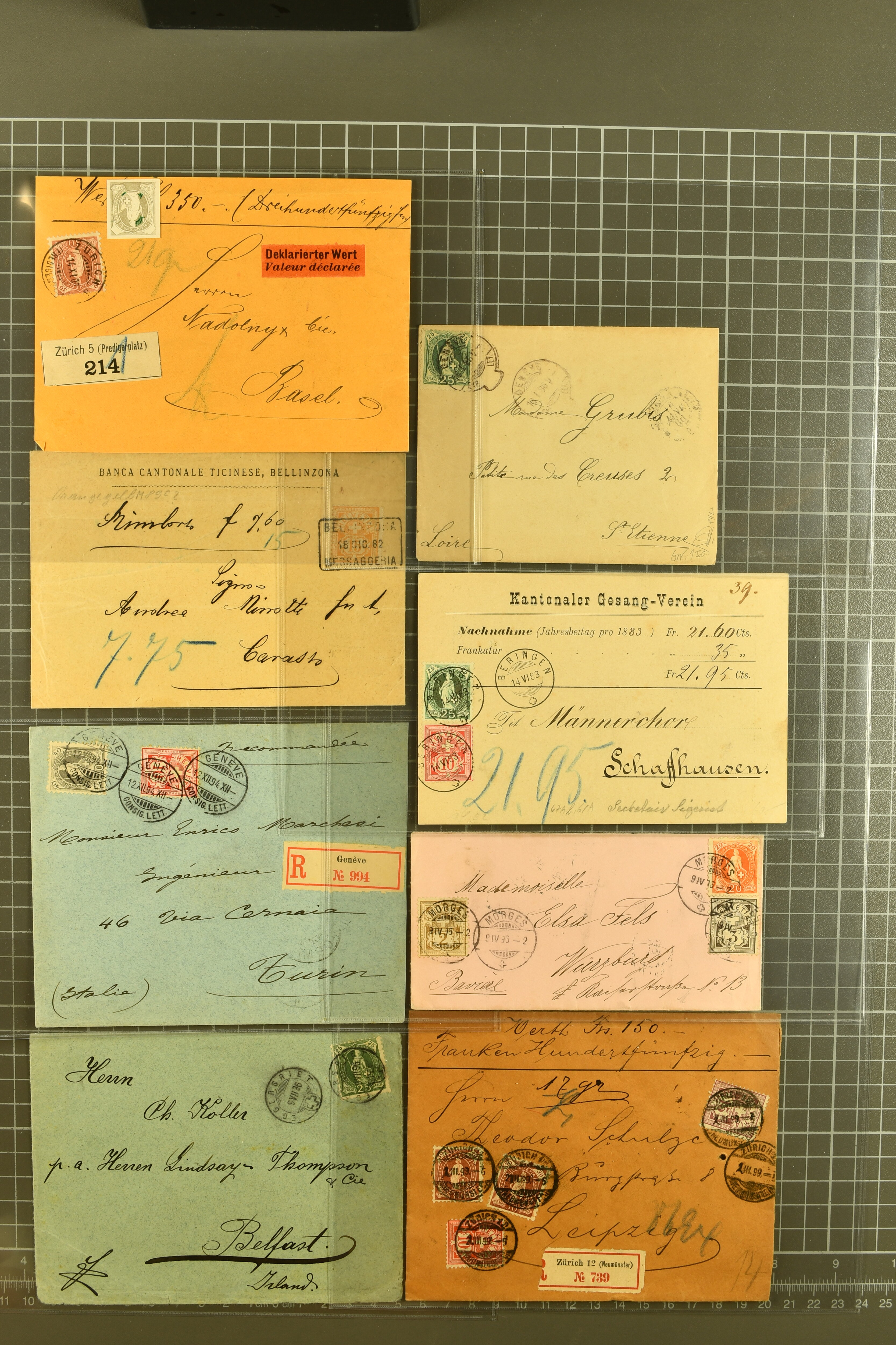 9877 cover image1862/1930: Brieflot von 65 Belgen, Briefe und Karten Stehende Helvetia/Wertziffer/Tell, dabei seltene Misch- und Buntfrankaturen, spezielle Verwendungen, seltene Destinationen, interessante Kombinationen und Verwendungsarten. Eine hochwertige Zusammenstellung, dabei 3 Atteste (Image 1) (Image 2) (Image 3) (Image 4) (Image 5) (Image 6) (Image 7) (Image 8) (Image 9) (Image 10) (Image 11)