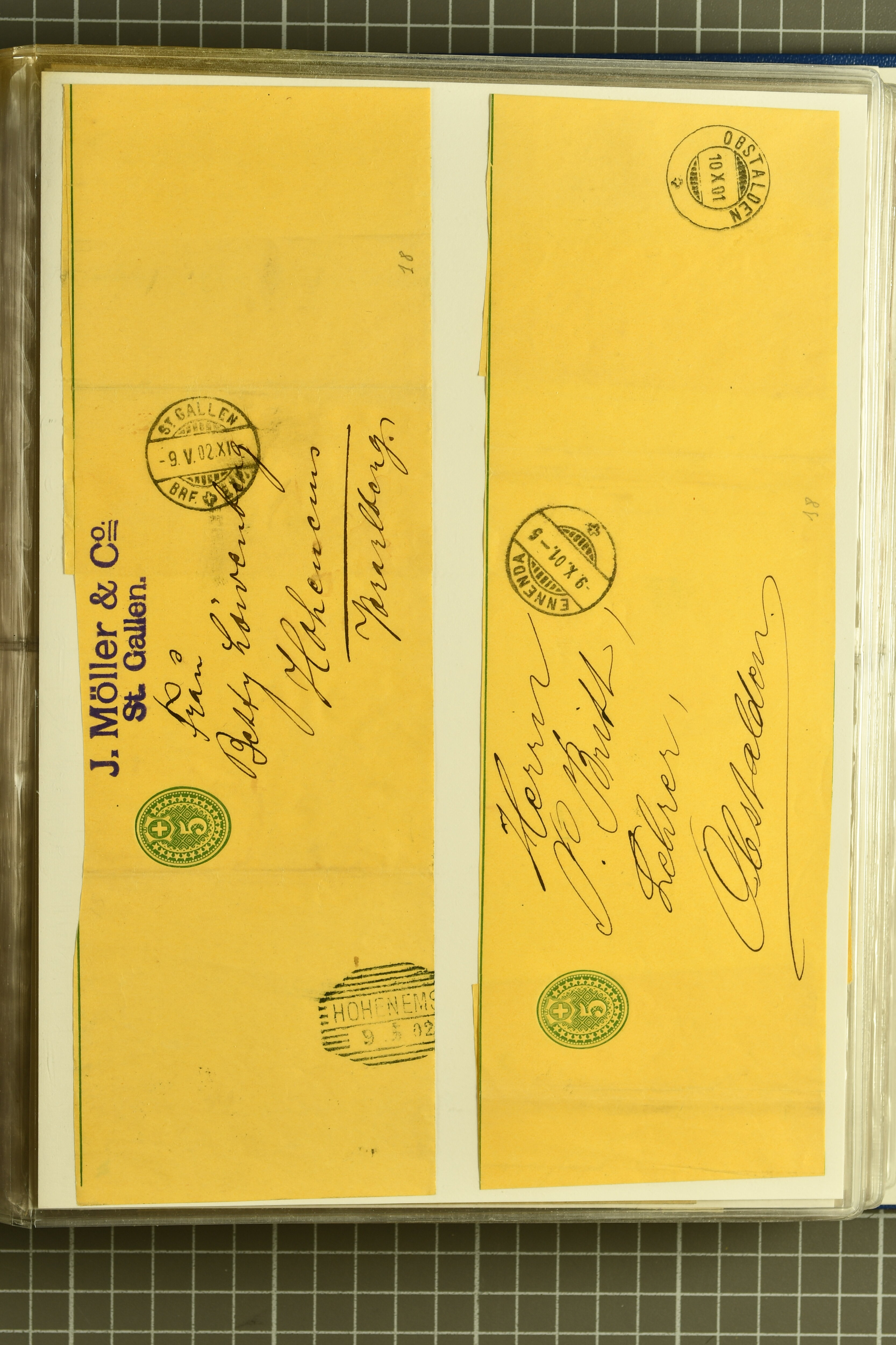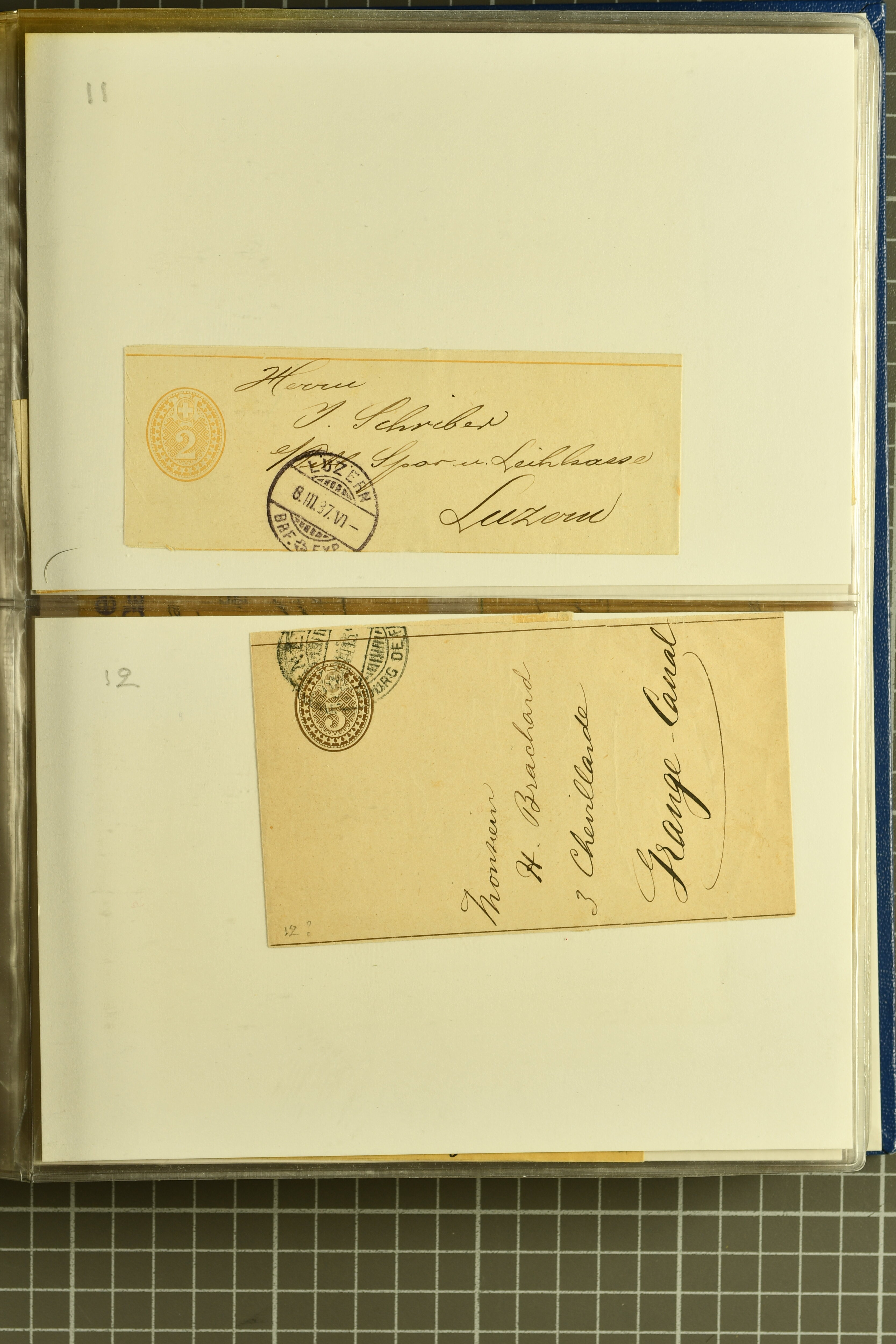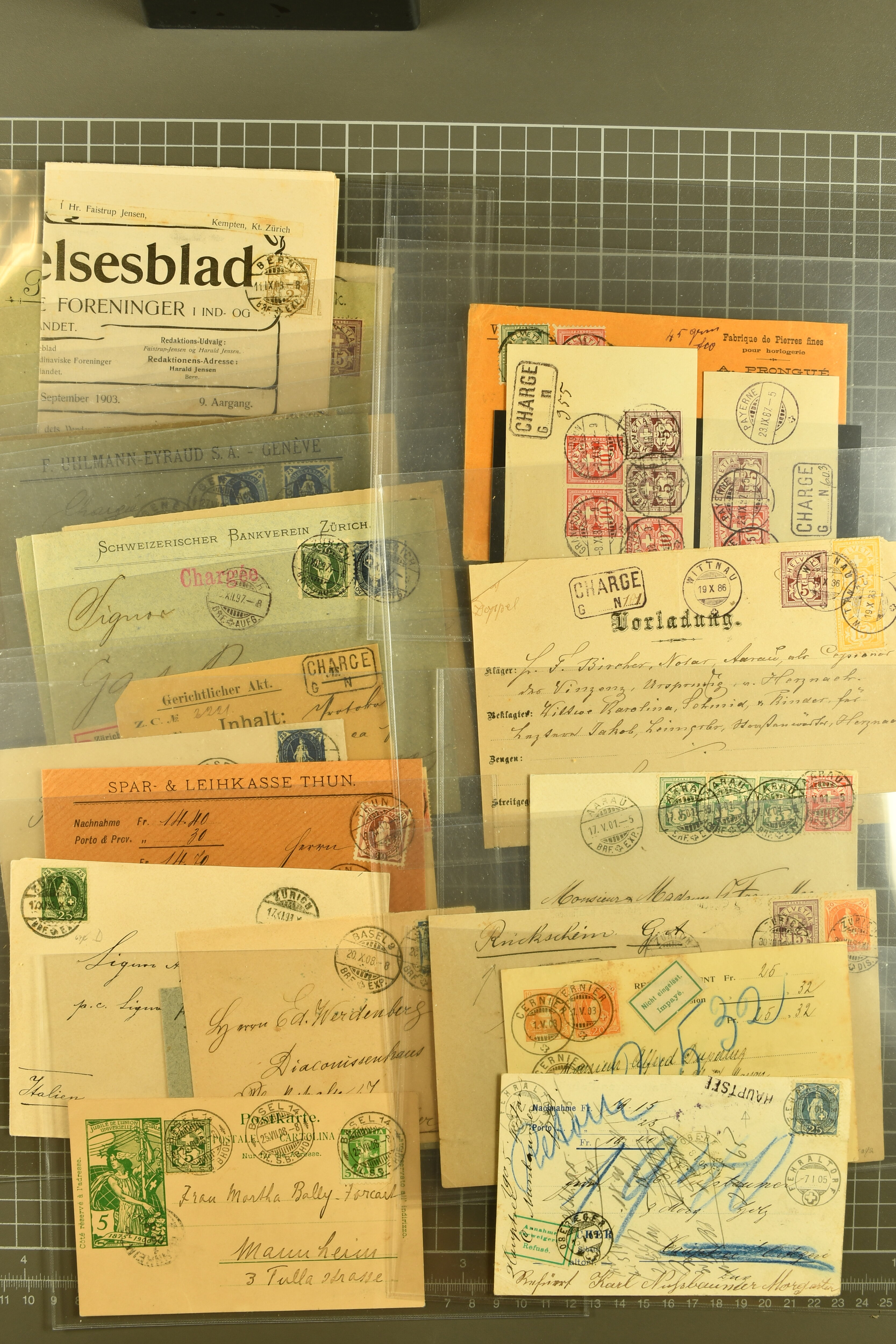 9894 image1873/1963: Sammlung Streifbänder in zwei Briefalben gebraucht und ungebraucht, dabei u.a. 2 Rp. Ausgabe 1873 gestempelt (SGK SB 10); etliche Streifbänder mit Zusatzfrankaturen; Strafporto, Einschreiben; auch einige Steifbänder nur mit Marken frankiert (keine Ganzsachen). Total 250 Belege (Image 1) (Image 2) (Image 3) (Image 4) (Image 5) (Image 6) (Image 7) (Image 8) (Image 9) (Image 10) (Image 11) (Image 12) (Image 13) (Image 14) (Image 15) (Image 16) (Image 17) (Image 18) (Image 19) (Image 20) (Image 21) (Image 22) (Image 23) (Image 24) (Image 25) (Image 26) (Image 27) (Image 28) (Image 29) (Image 30) (Image 31) (Image 32) (Image 33) (Image 34) (Image 35) (Image 36) (Image 37) (Image 38) (Image 39) (Image 40) (Image 41) (Image 42) (Image 43) (Image 44) (Image 45) (Image 46) (Image 47) (Image 48) (Image 49) (Image 50)