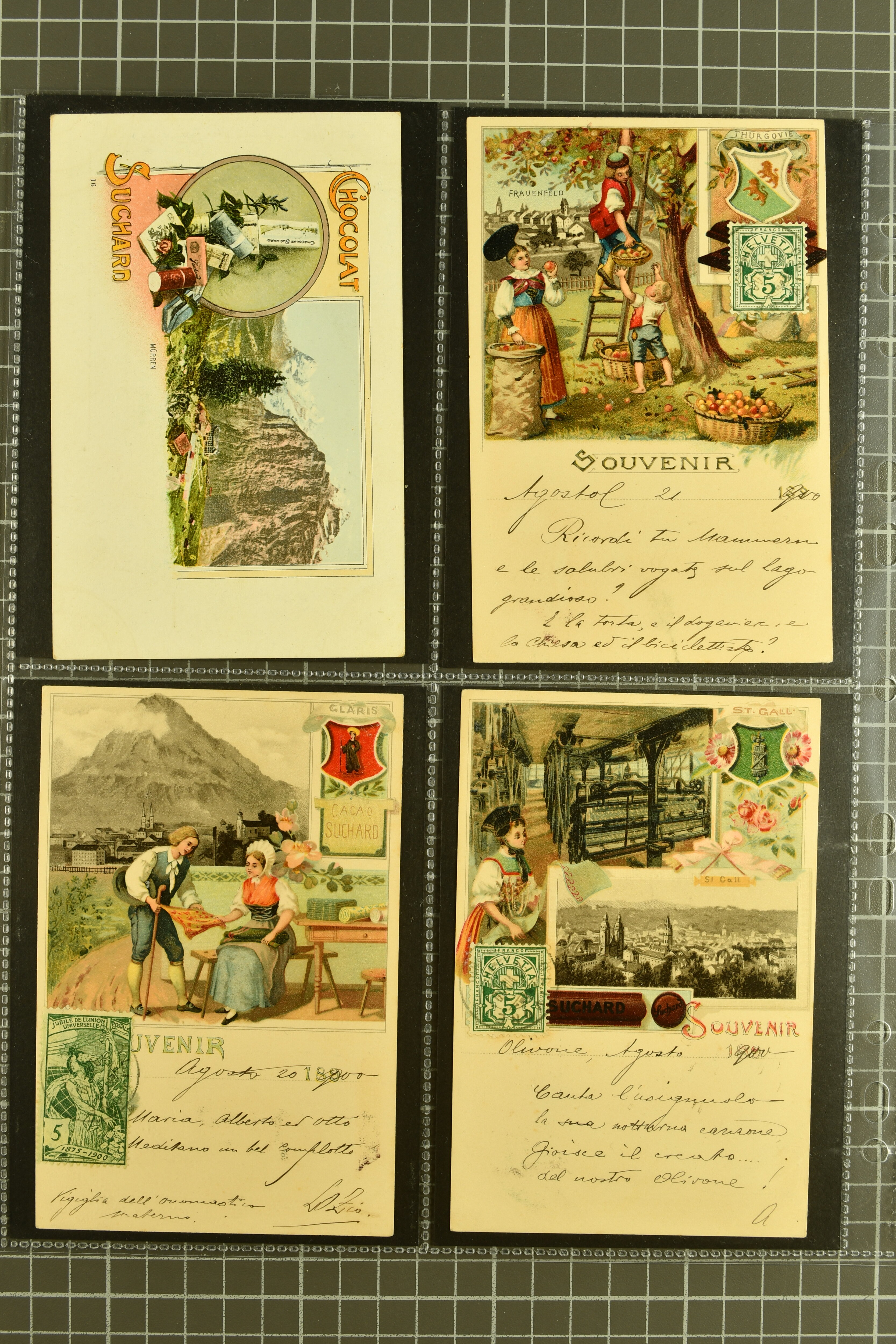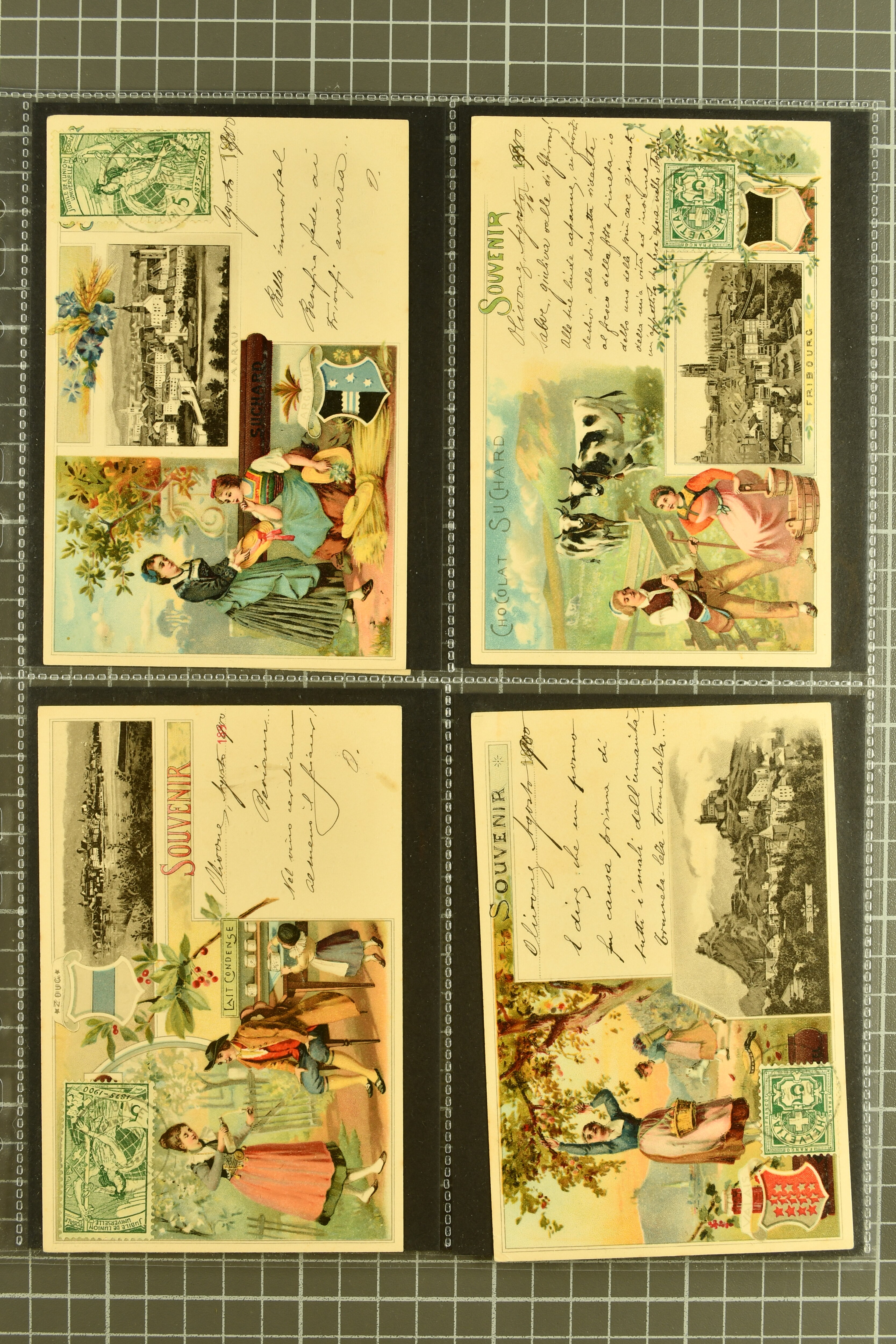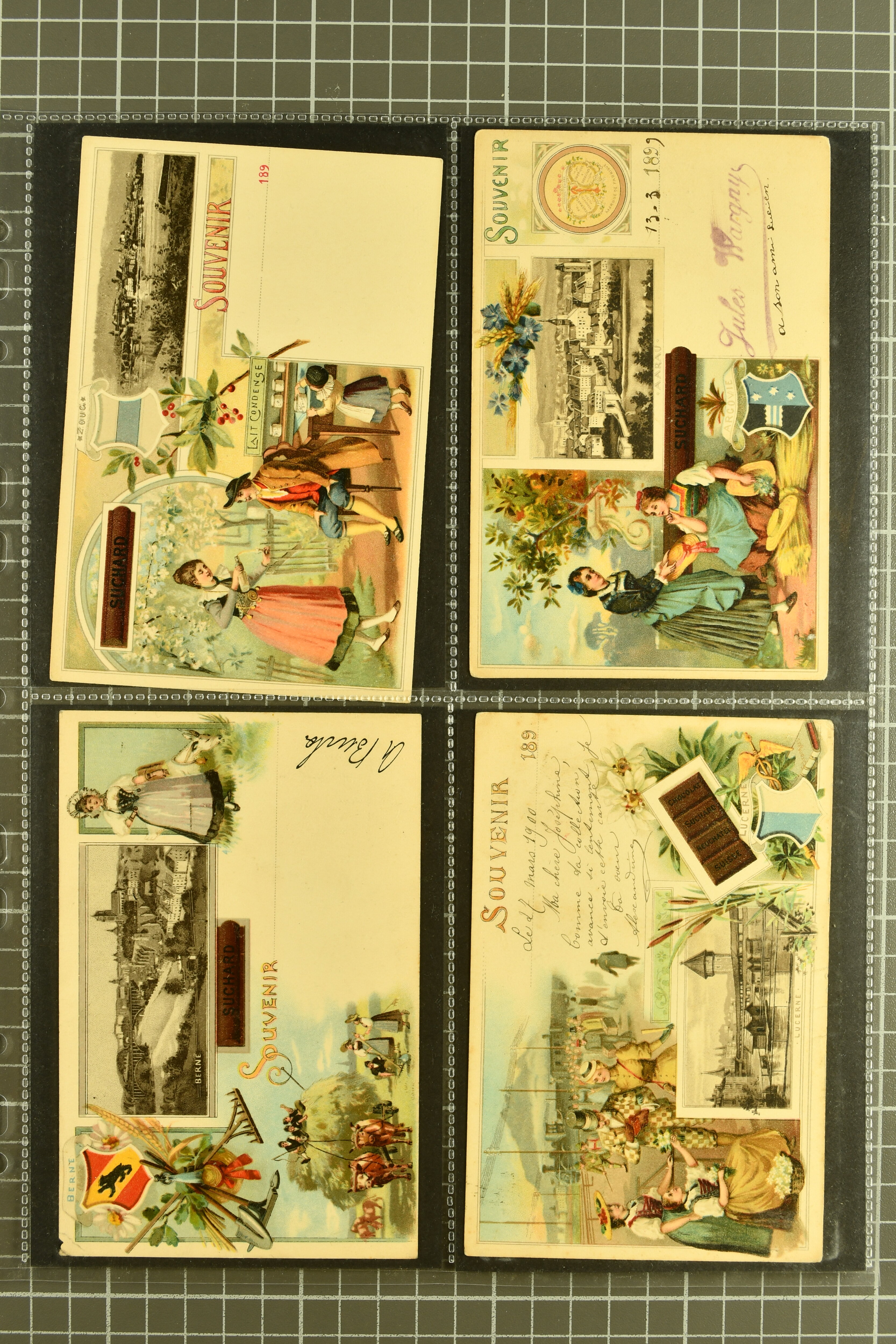 9889 cover image1895/1914c: Auswahl 138 Ansichtskarten und 55 Werbekarten für Suchard und Kohler, geprägte und handkolorierte Karten, auch Topographie meist aus der Romandie, ein interessantes Los (Image 1) (Image 2) (Image 3) (Image 4) (Image 5) (Image 6) (Image 7) (Image 8) (Image 9) (Image 10) (Image 11) (Image 12) (Image 13) (Image 14) (Image 15) (Image 16) (Image 17) (Image 18) (Image 19) (Image 20) (Image 21) (Image 22) (Image 23) (Image 24) (Image 25) (Image 26) (Image 27) (Image 28) (Image 29) (Image 30) (Image 31) (Image 32) (Image 33) (Image 34) (Image 35) (Image 36) (Image 37)
