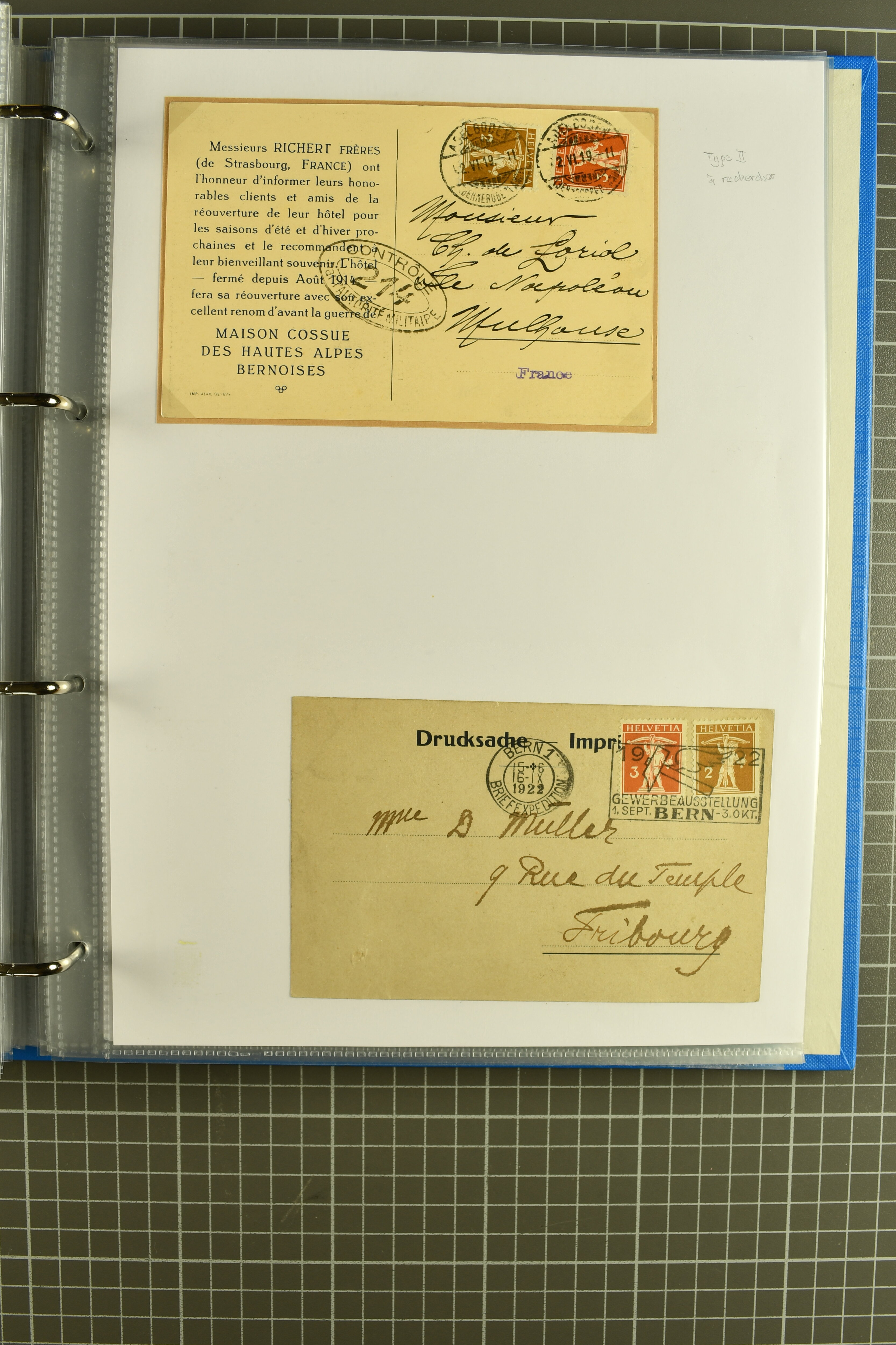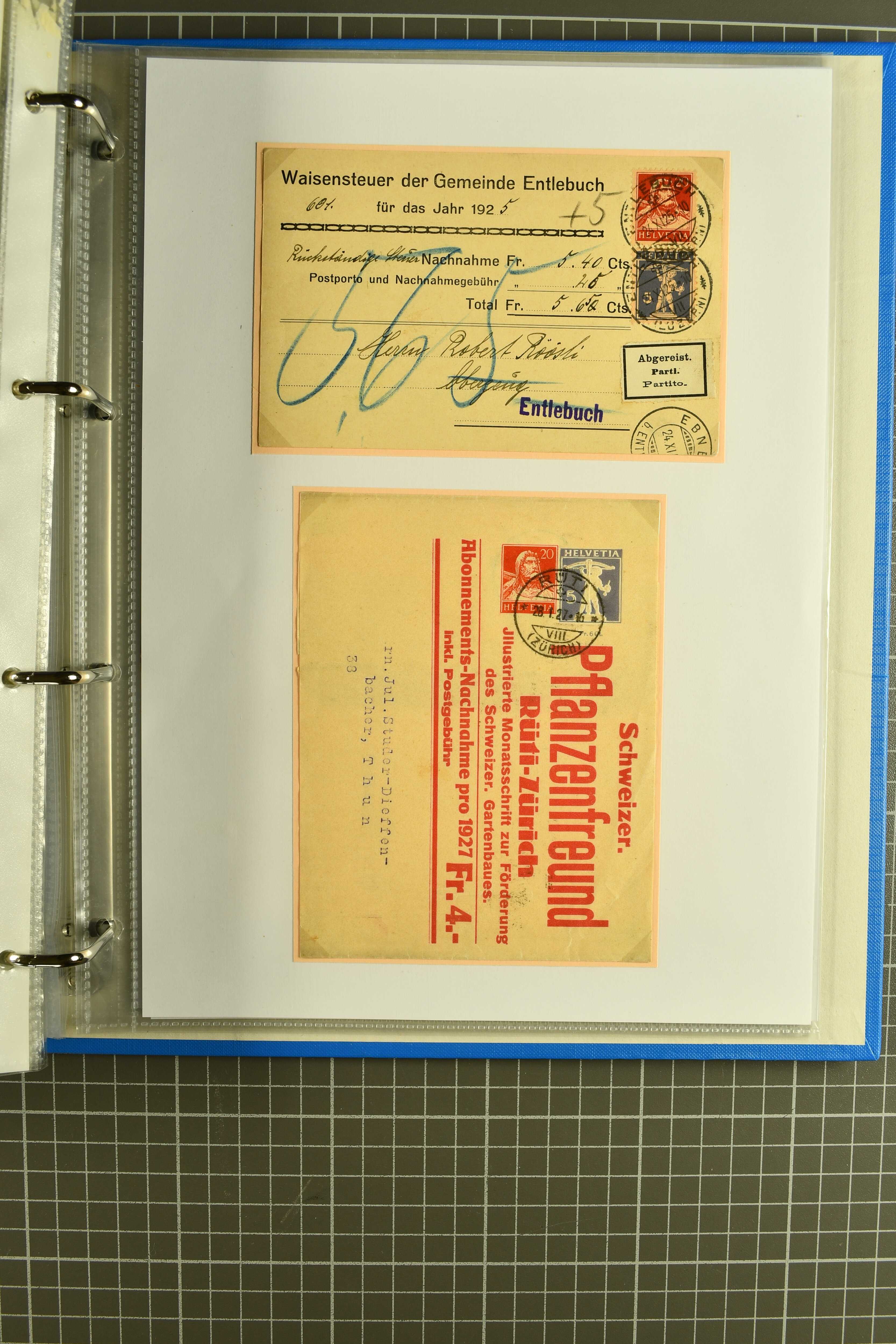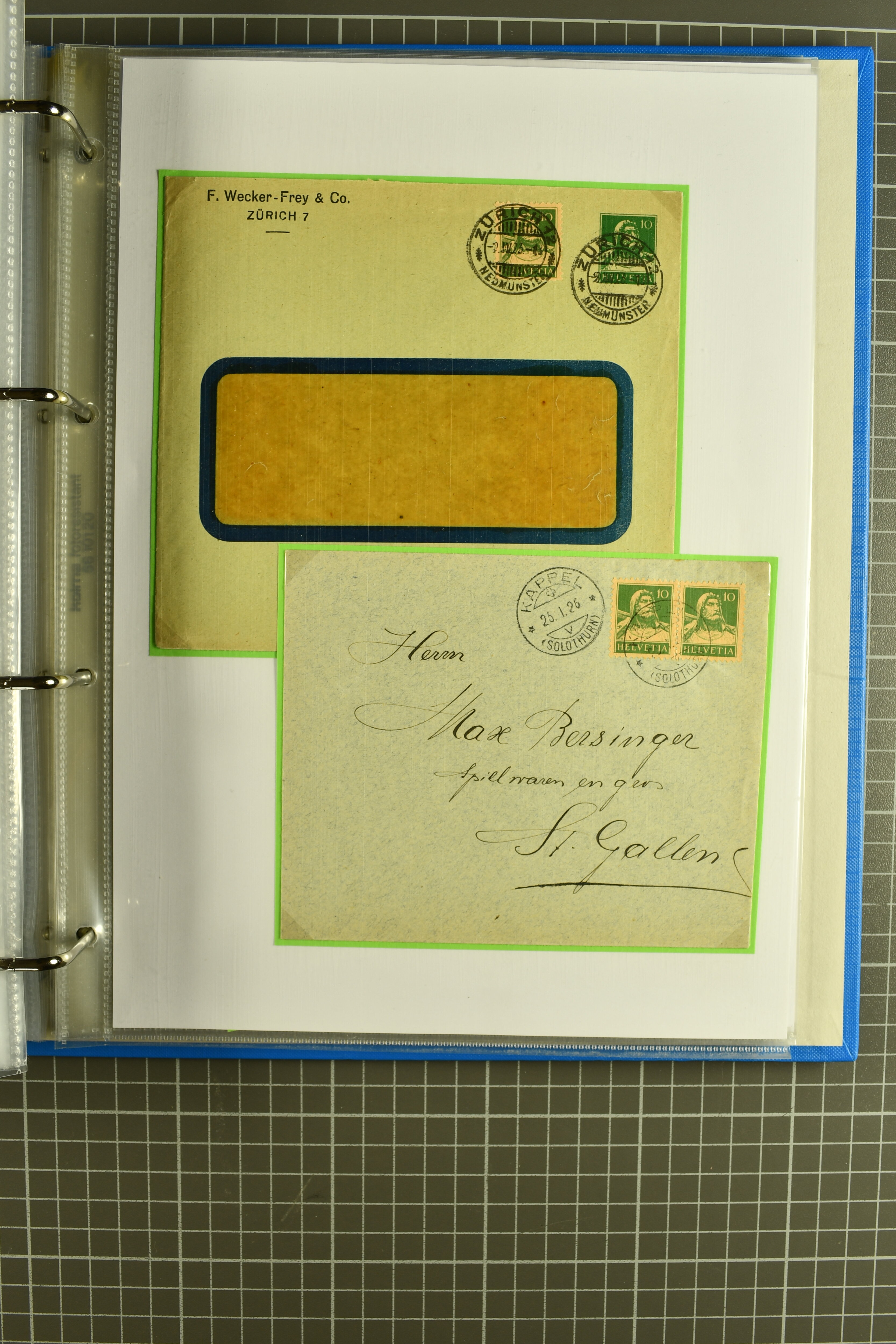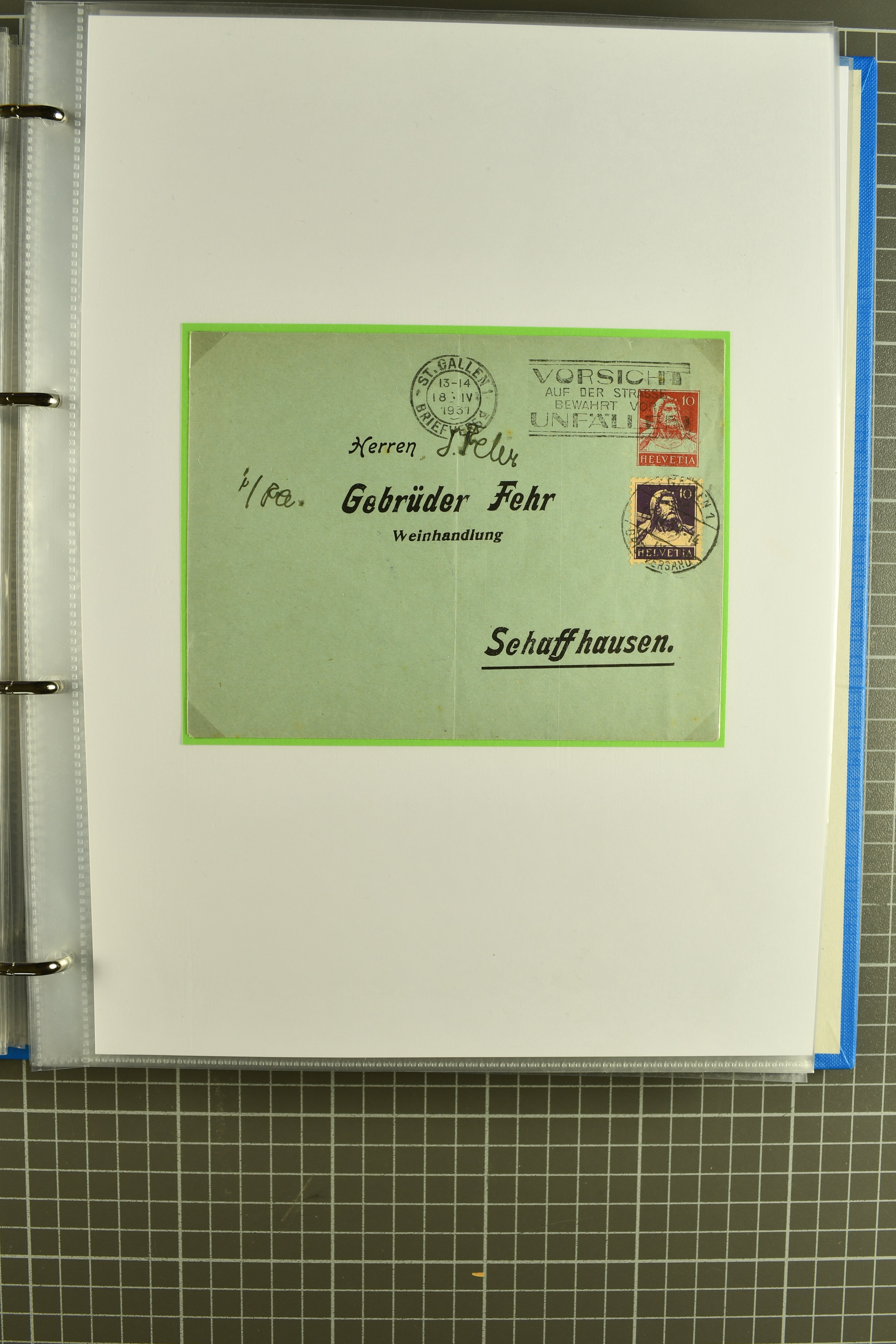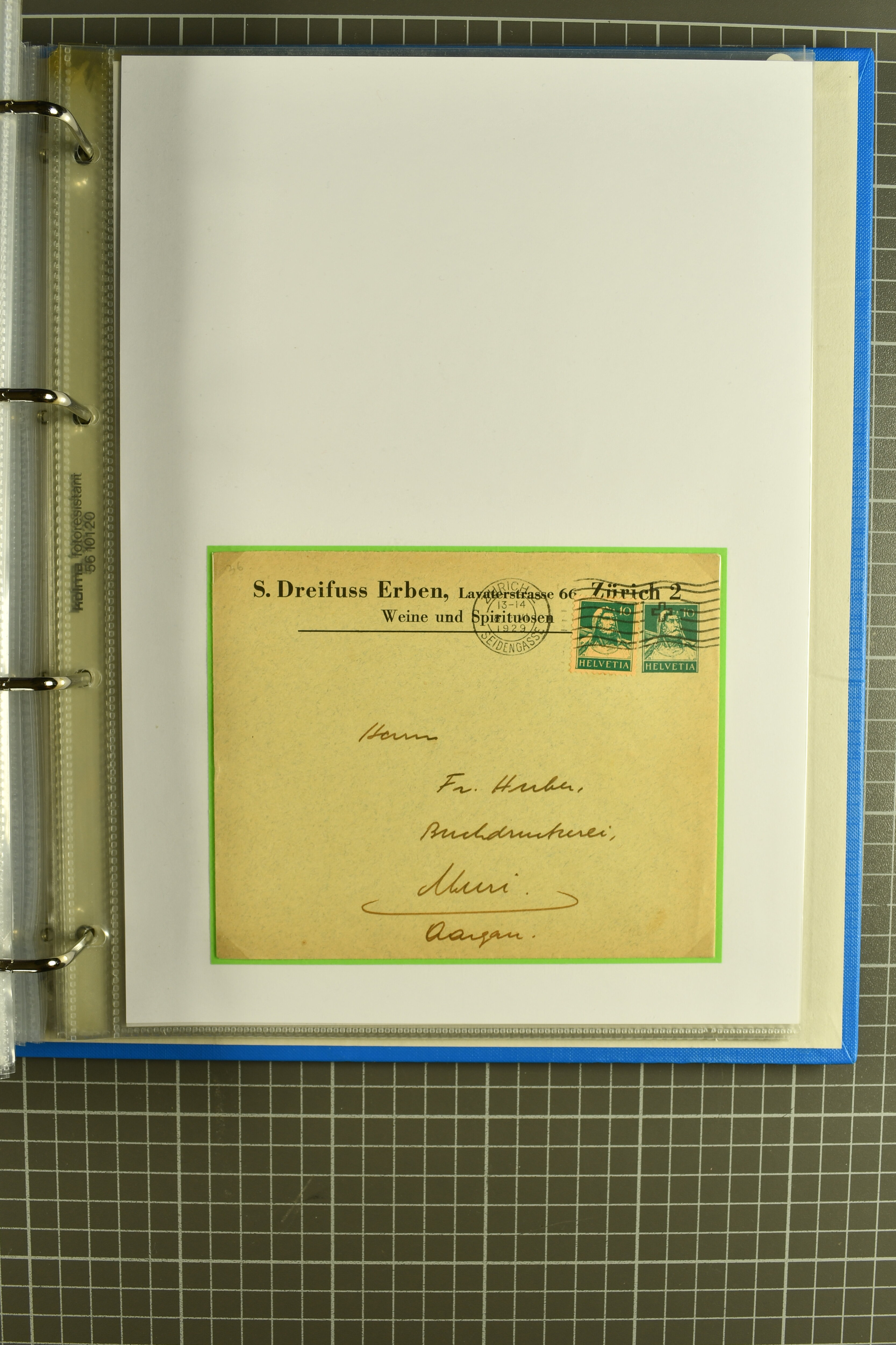 Mischfrankatur gleicher Wertstufen 5 Rp. Nr. 195 + 202, Ansichtskarten usw. 9 Maximumkarten Fussball-WM 1954 'Ouverture' und 2 Karten 'Endspiel'; dazu ca. 115 Briefe zumeist zensuriert nach dem Deutschen Reich (Familienkorrespondenz); Album mit