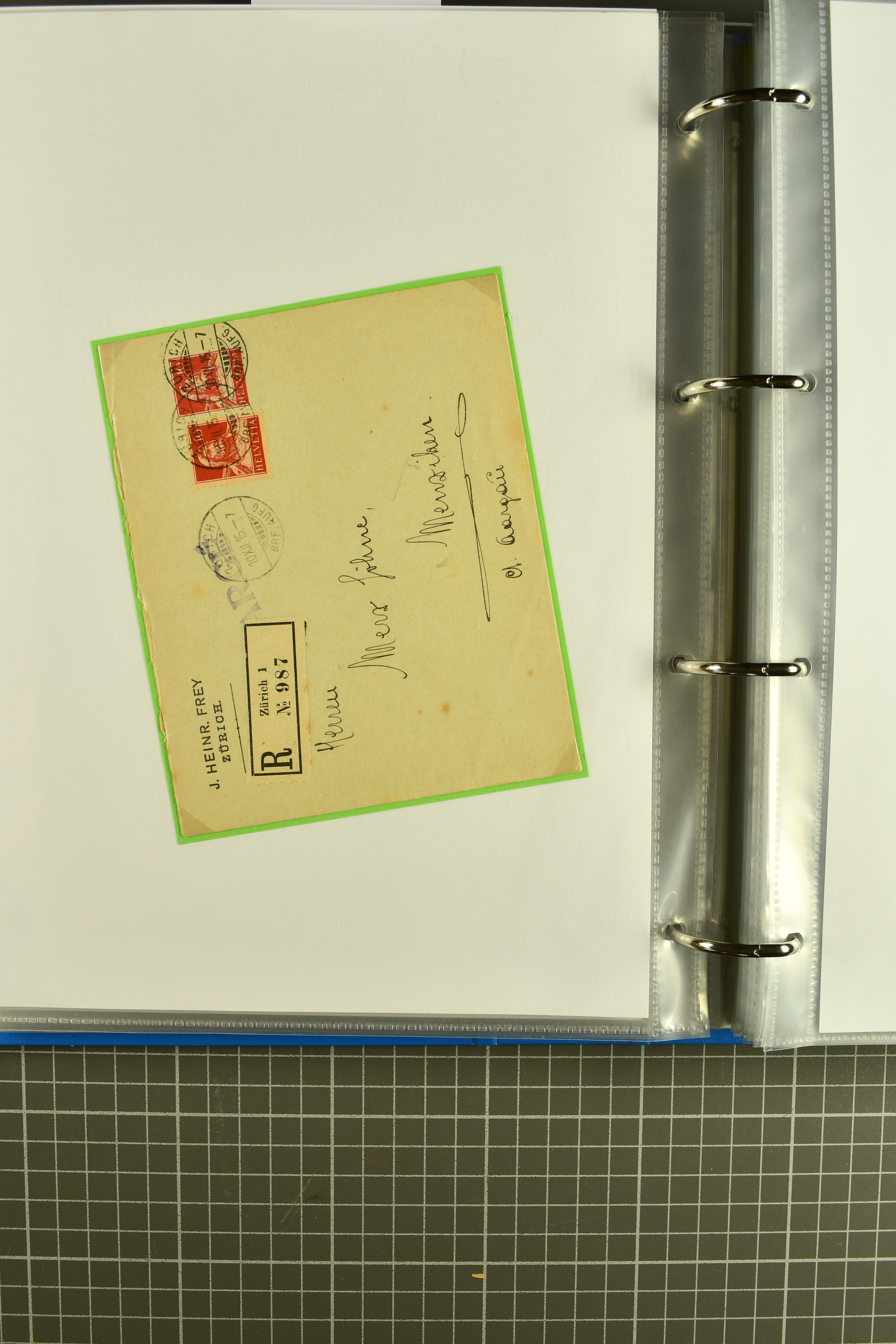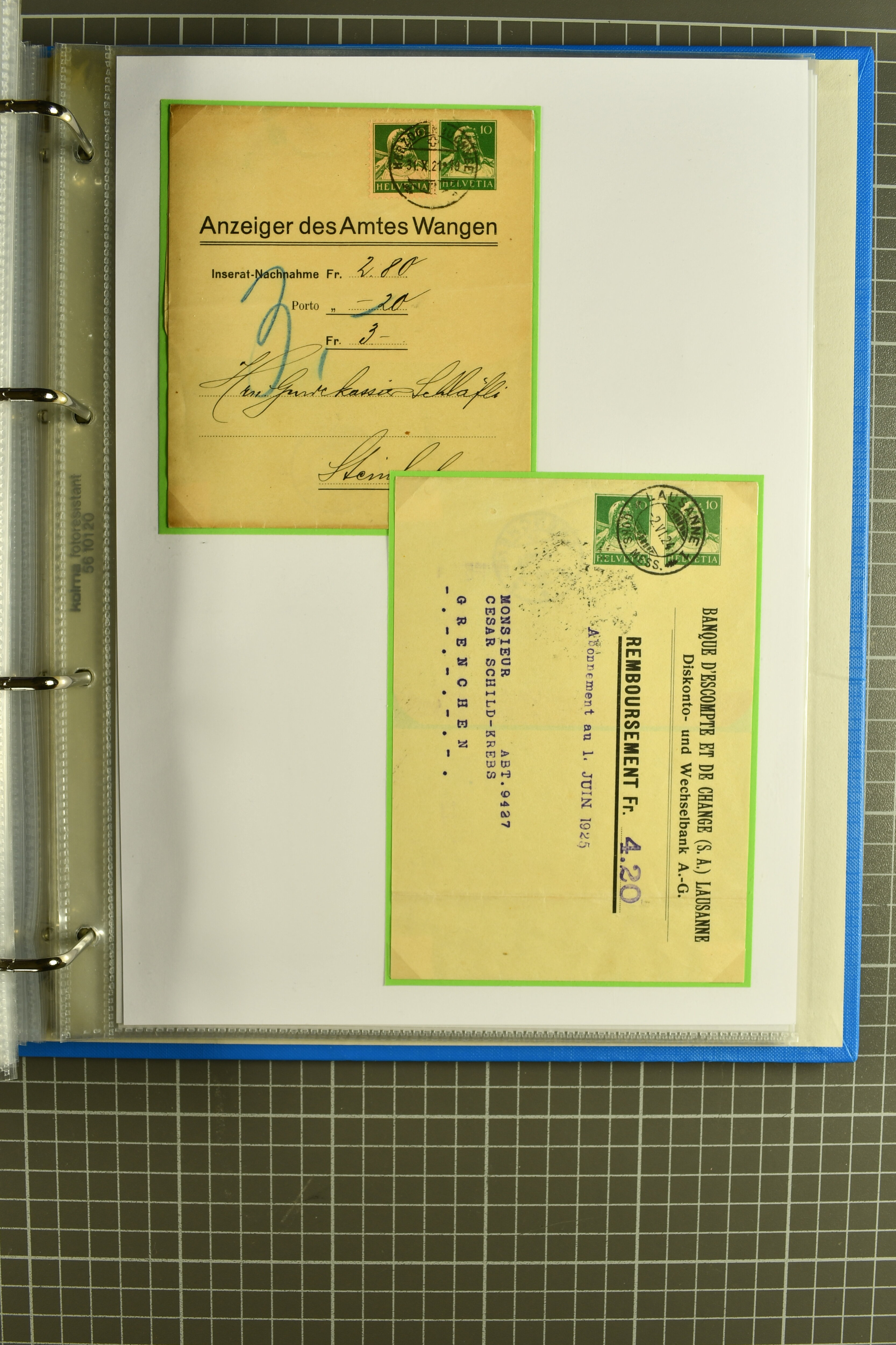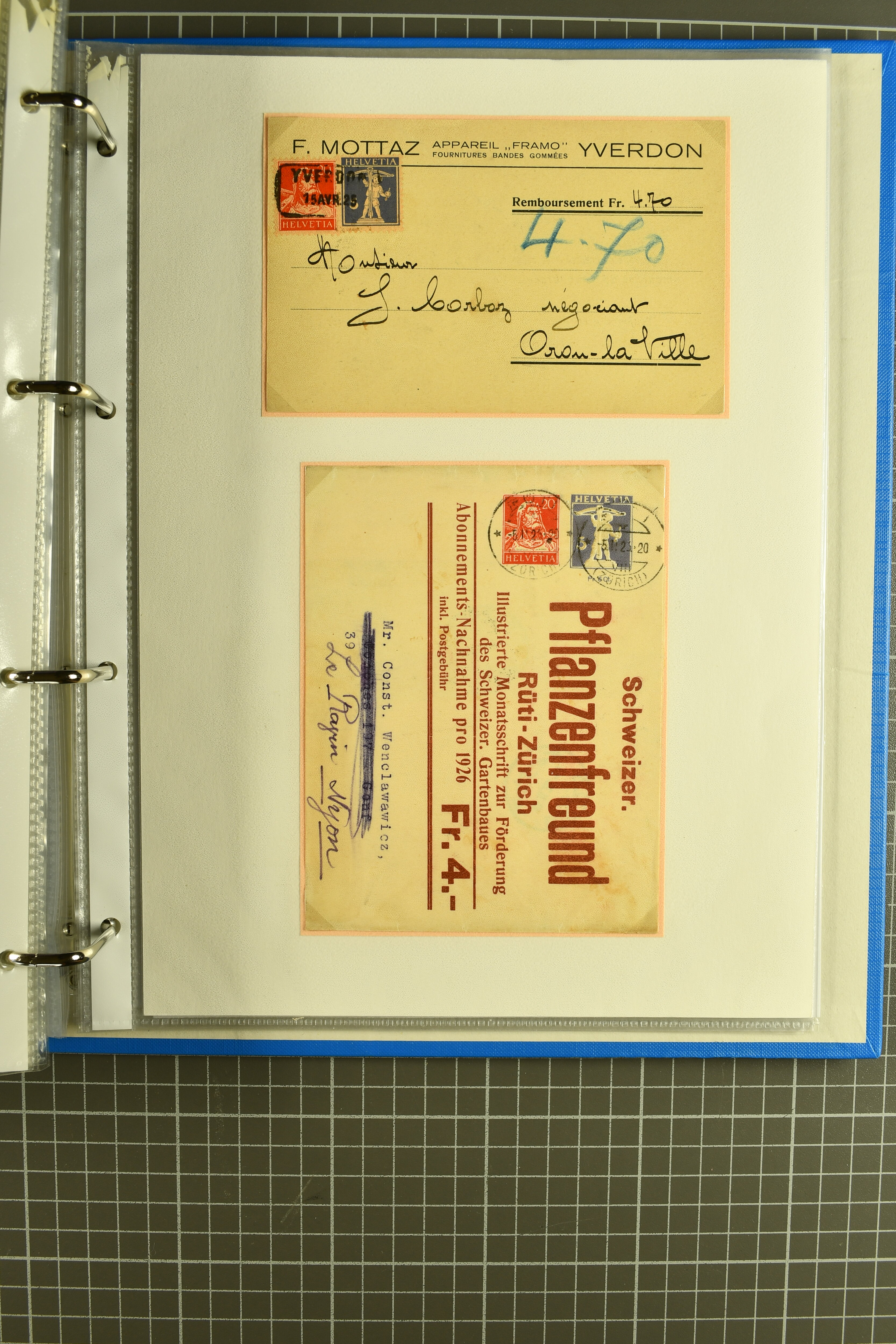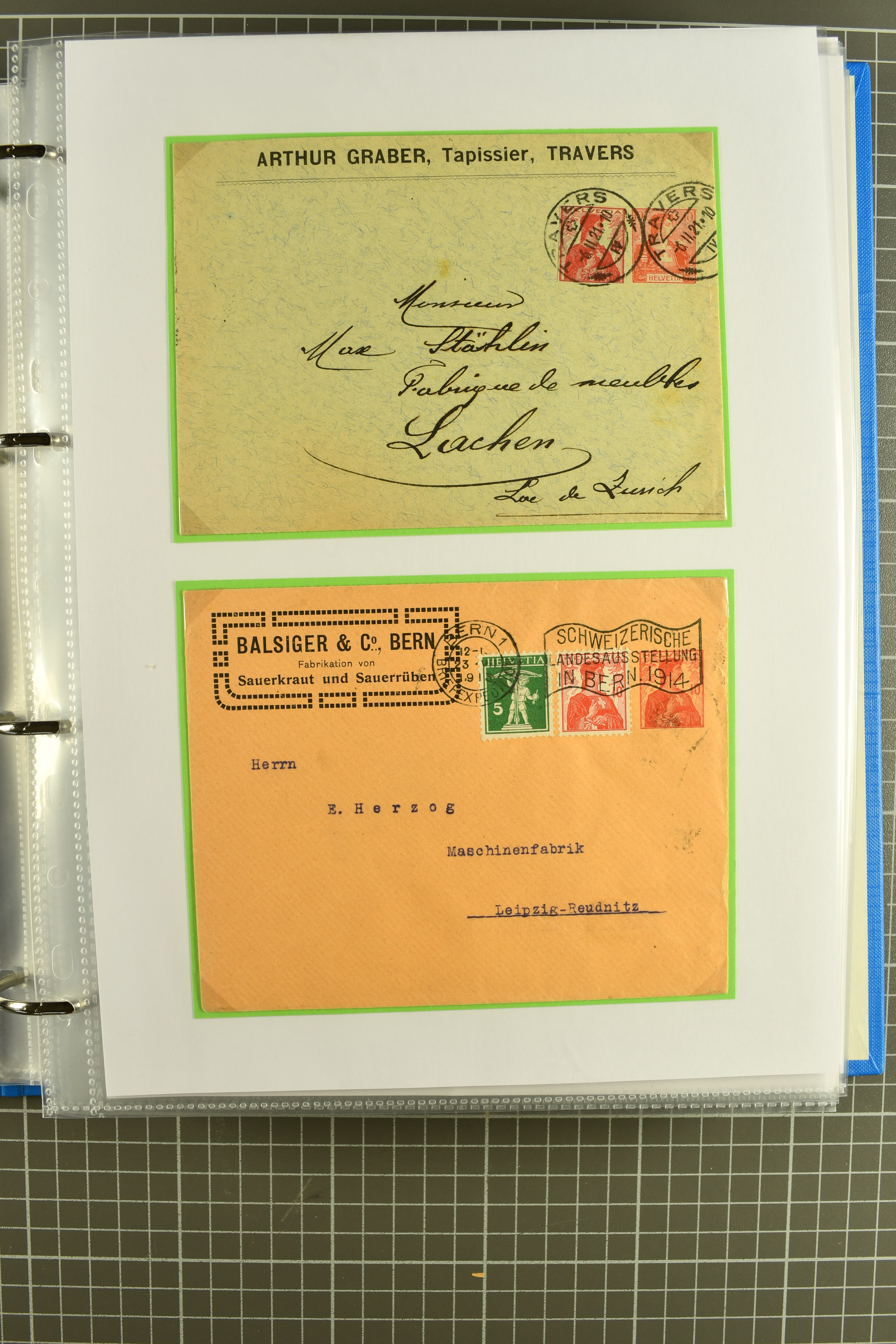 Mischfrankatur gleicher Wertstufen 5 Rp. Nr. 195 + 202, Ansichtskarten usw. 9 Maximumkarten Fussball-WM 1954 'Ouverture' und 2 Karten 'Endspiel'; dazu ca. 115 Briefe zumeist zensuriert nach dem Deutschen Reich (Familienkorrespondenz); Album mit
