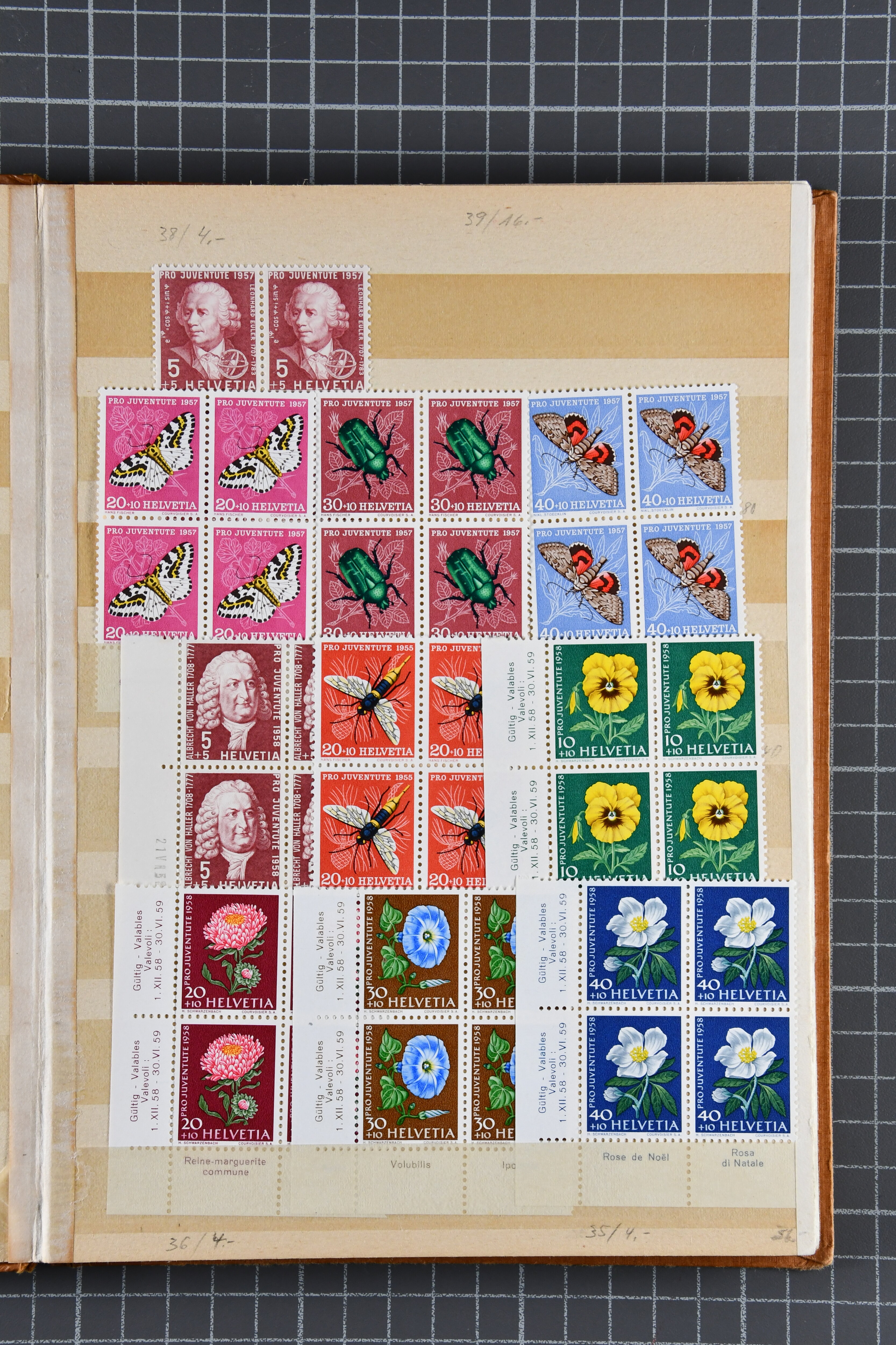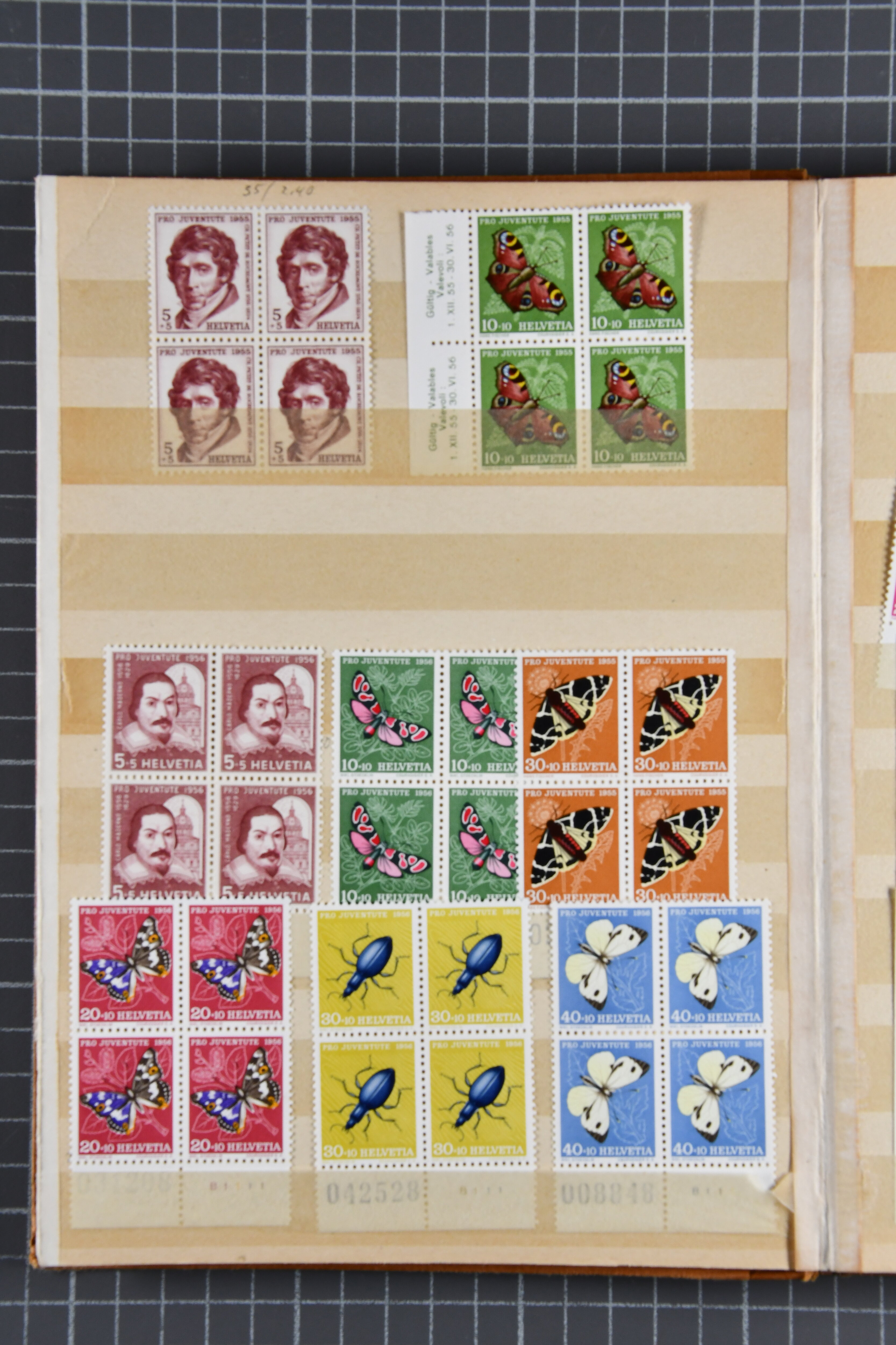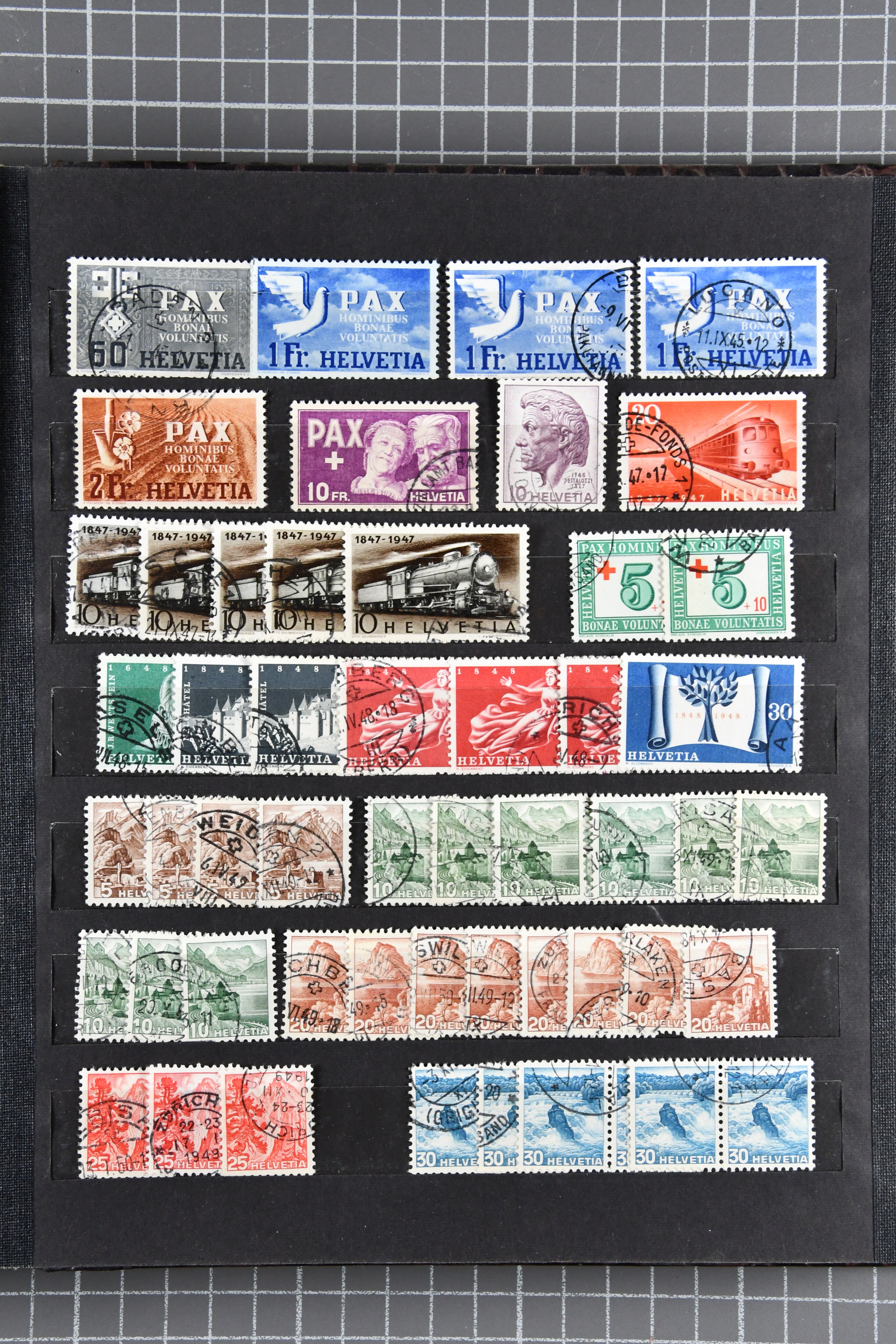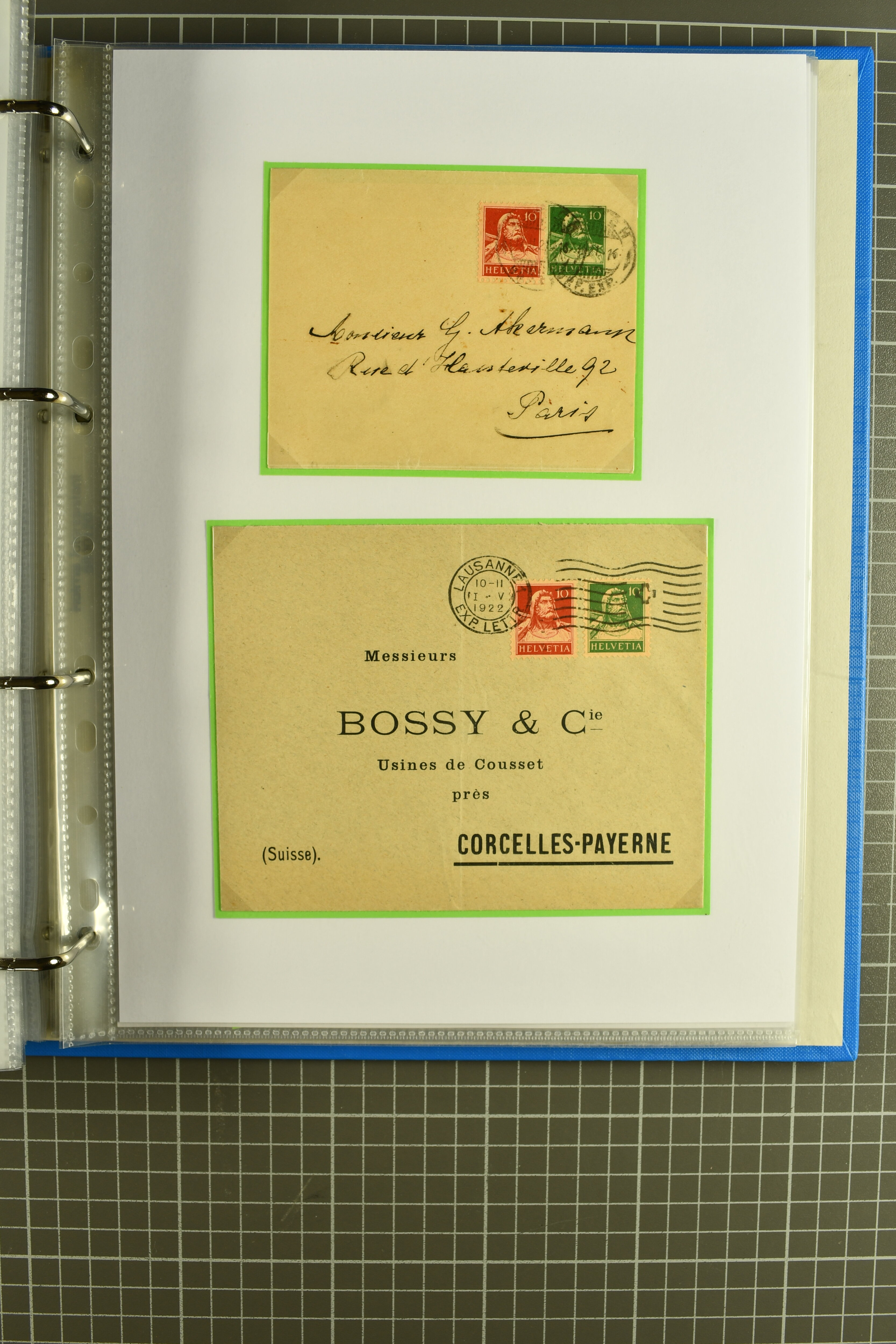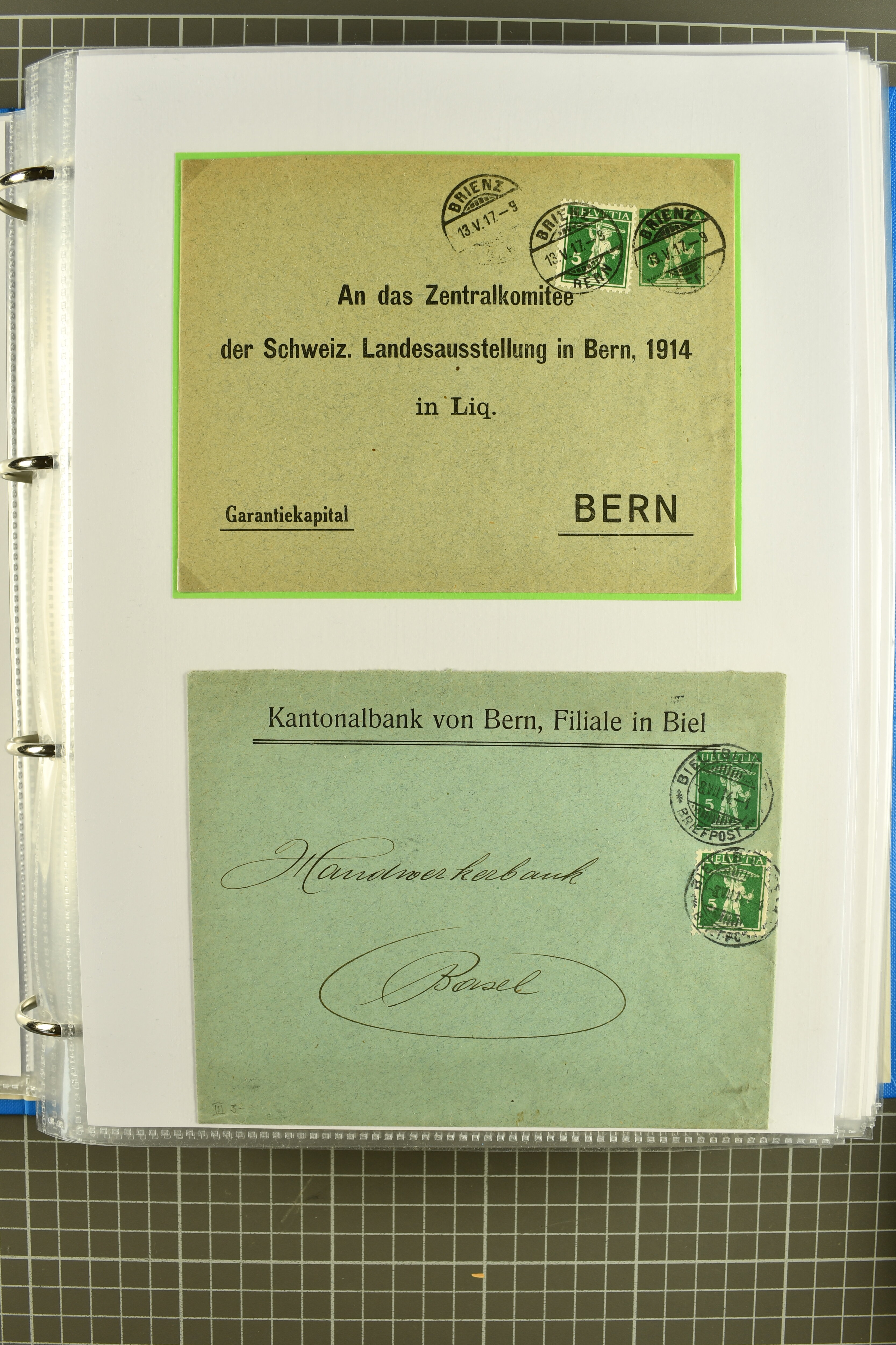 Mischfrankatur gleicher Wertstufen 5 Rp. Nr. 195 + 202, Ansichtskarten usw. 9 Maximumkarten Fussball-WM 1954 'Ouverture' und 2 Karten 'Endspiel'; dazu ca. 115 Briefe zumeist zensuriert nach dem Deutschen Reich (Familienkorrespondenz); Album mit