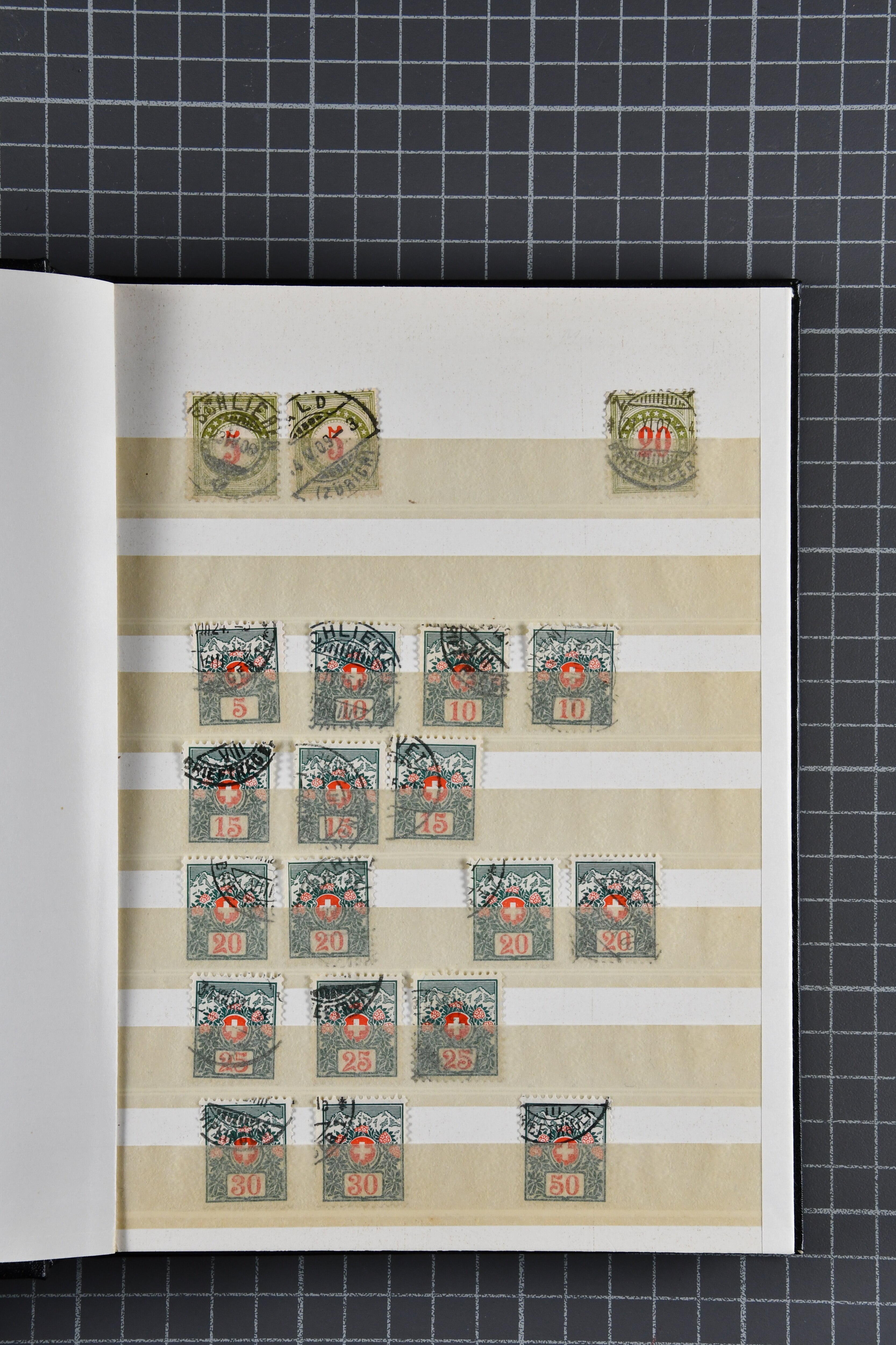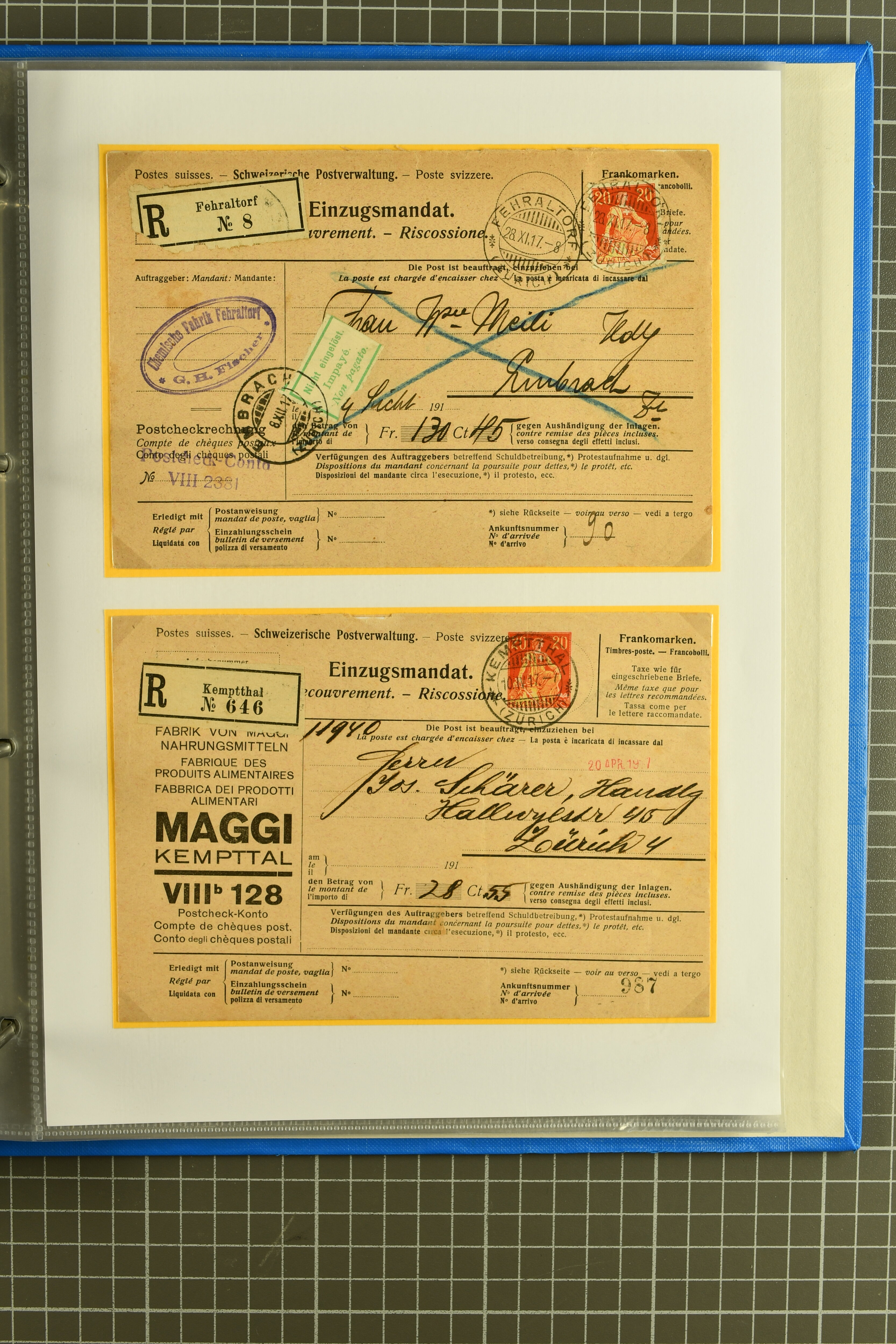 wegen vorübergehender Unverfügbarkeit des obligatorischen Postkreis-Kontrollstp. "X" zur Bezeichnung des rechnungsführenden Postkreises mit Taxzahlstempel "10" versehen. Ausserdem Verwendungen mit hohen Zusatzfrankaturen, Formulare ohne Werteindruck