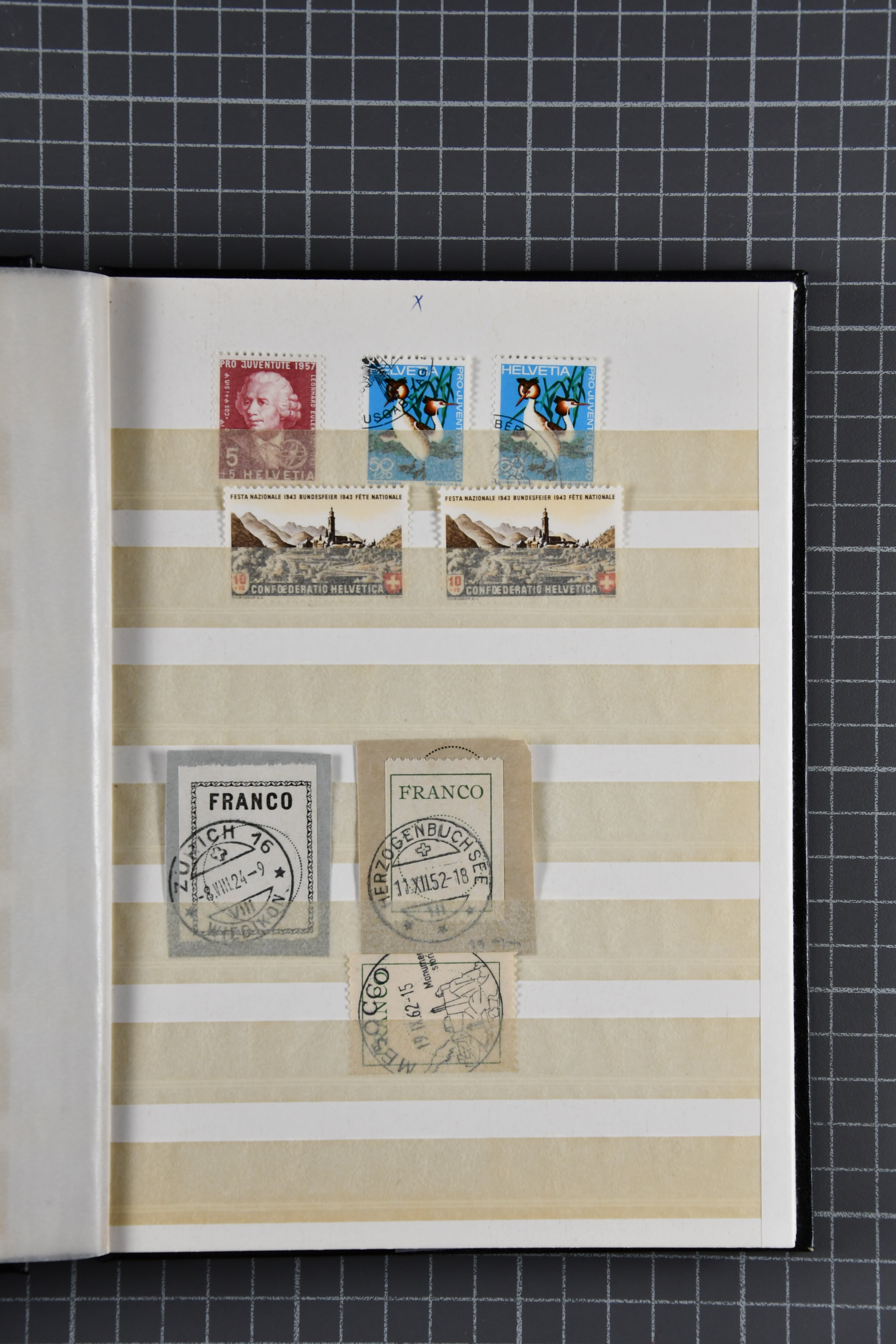 1960/2004ca.: Partie Frankaturware, Schönes Schaubekalbum 1960-2000 (dazu auch aus dem Bedarf u. ET-gestempelte), sowie Einsteckalbum und einige Abolieferungen. Reiner Frankaturwert = CHF 1360 (Image 1)