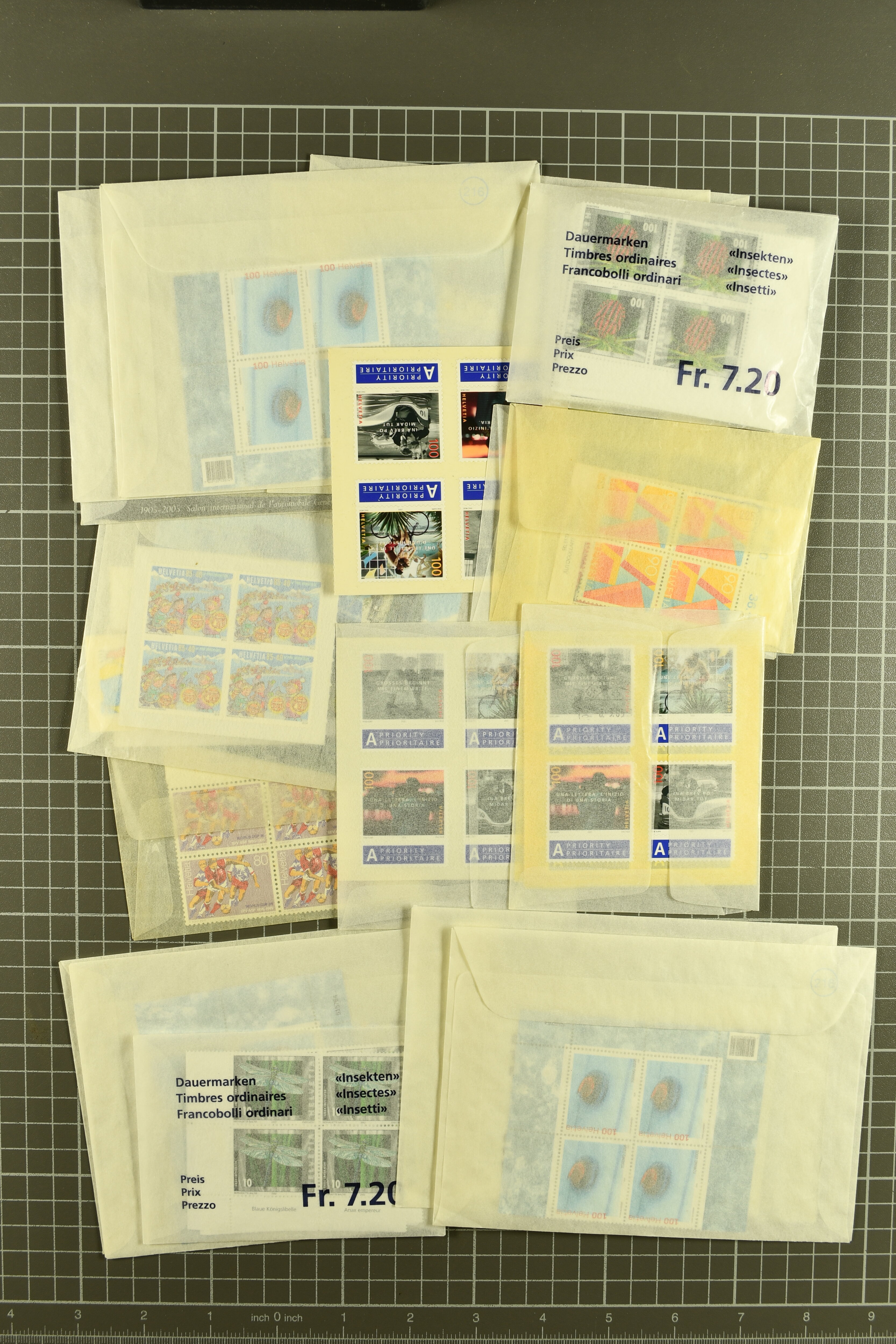 2000/12 (ca.): Posten Frankaturware in Blocks, Bogen und sieben Jahrbüchern, worunter viele hohe Nennwerte. Frankaturwert ca. 750 CHF (Image 1)