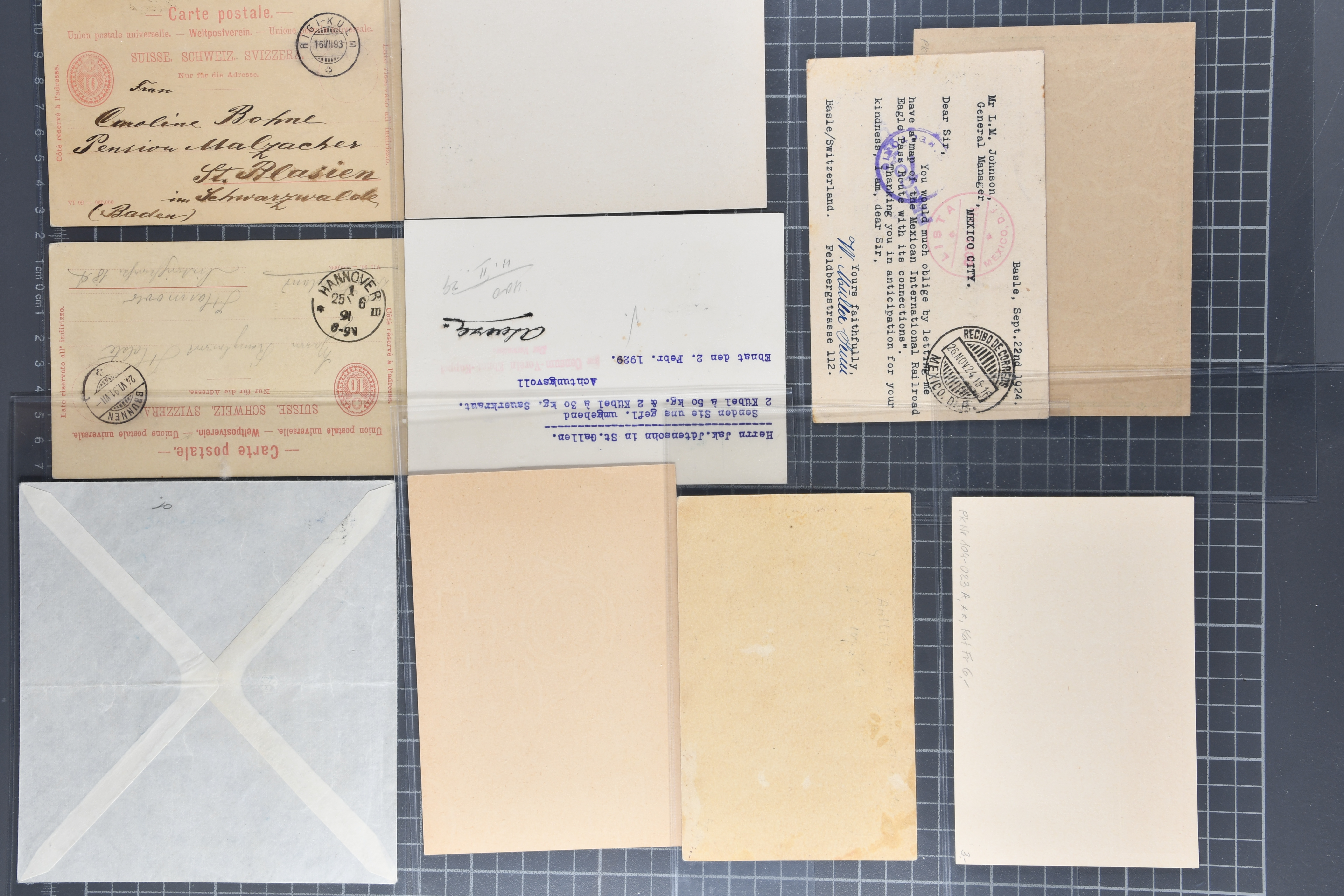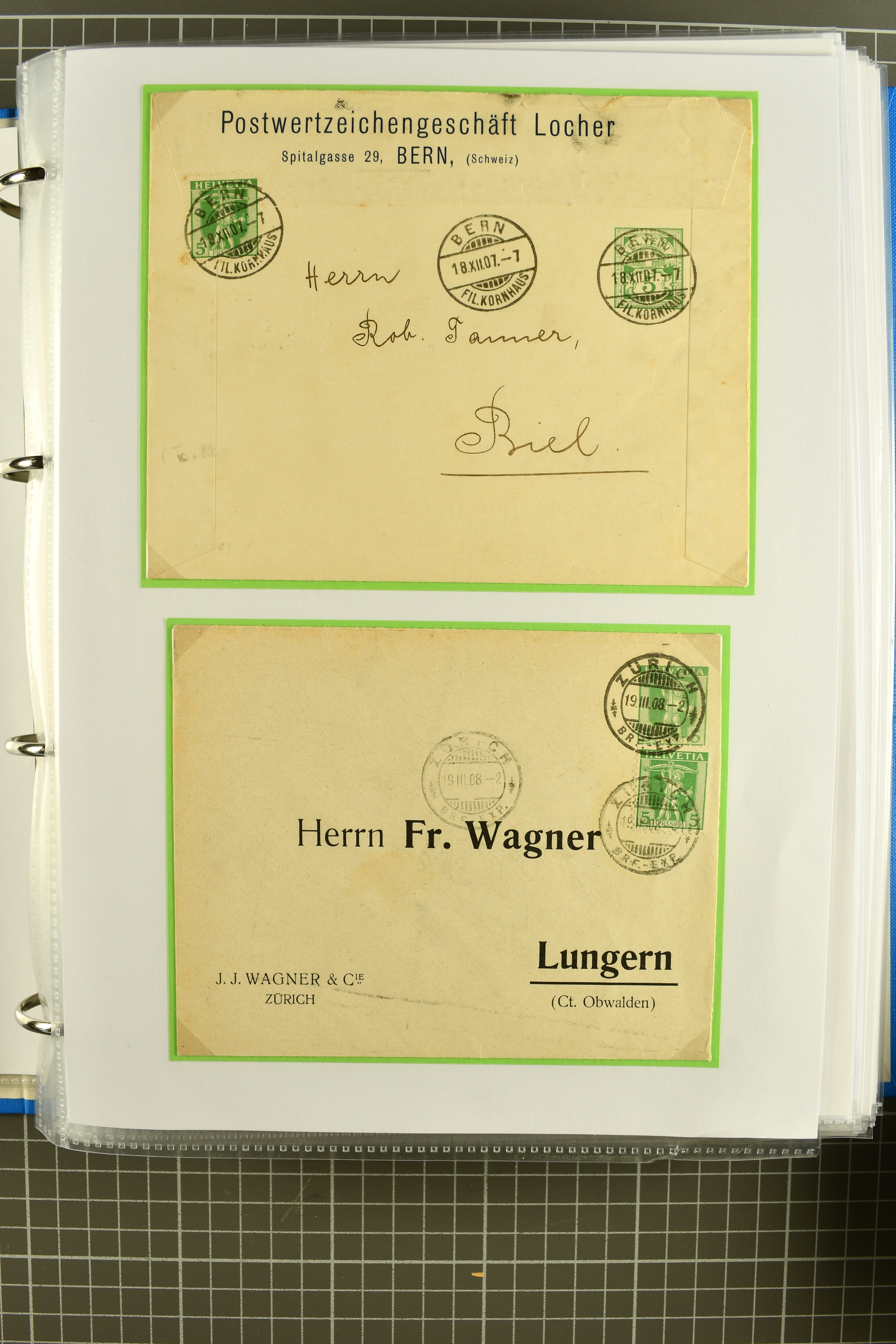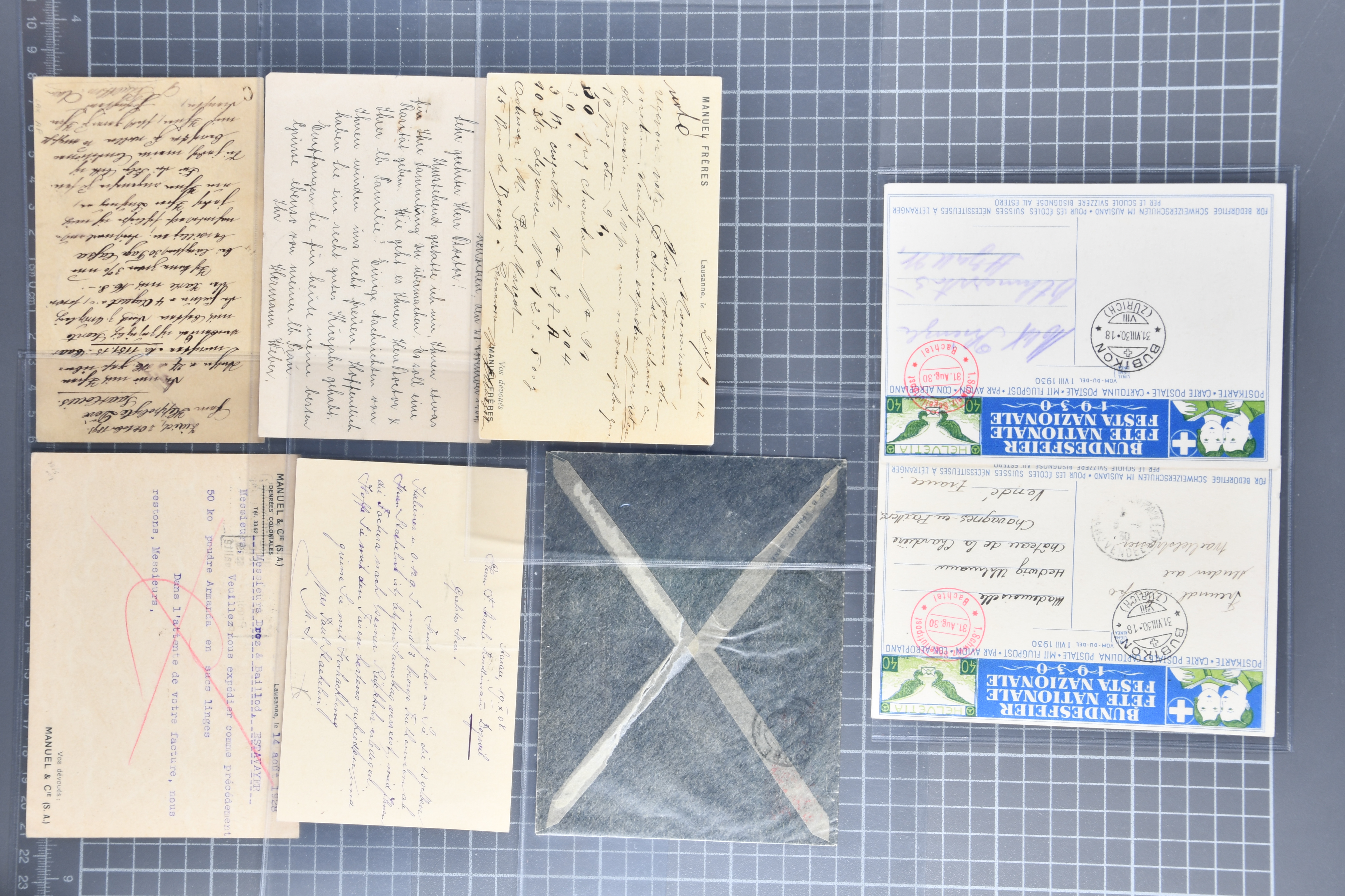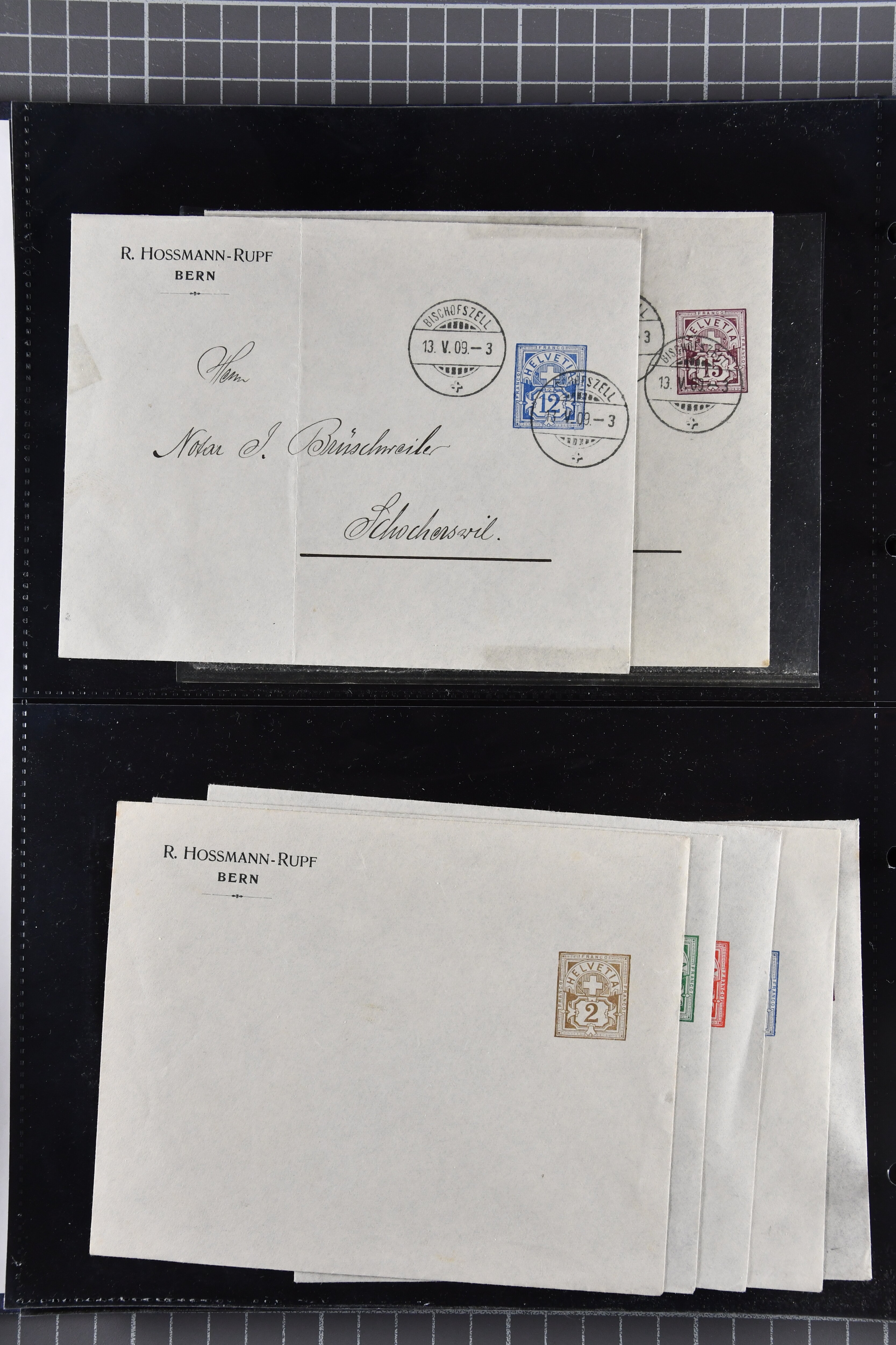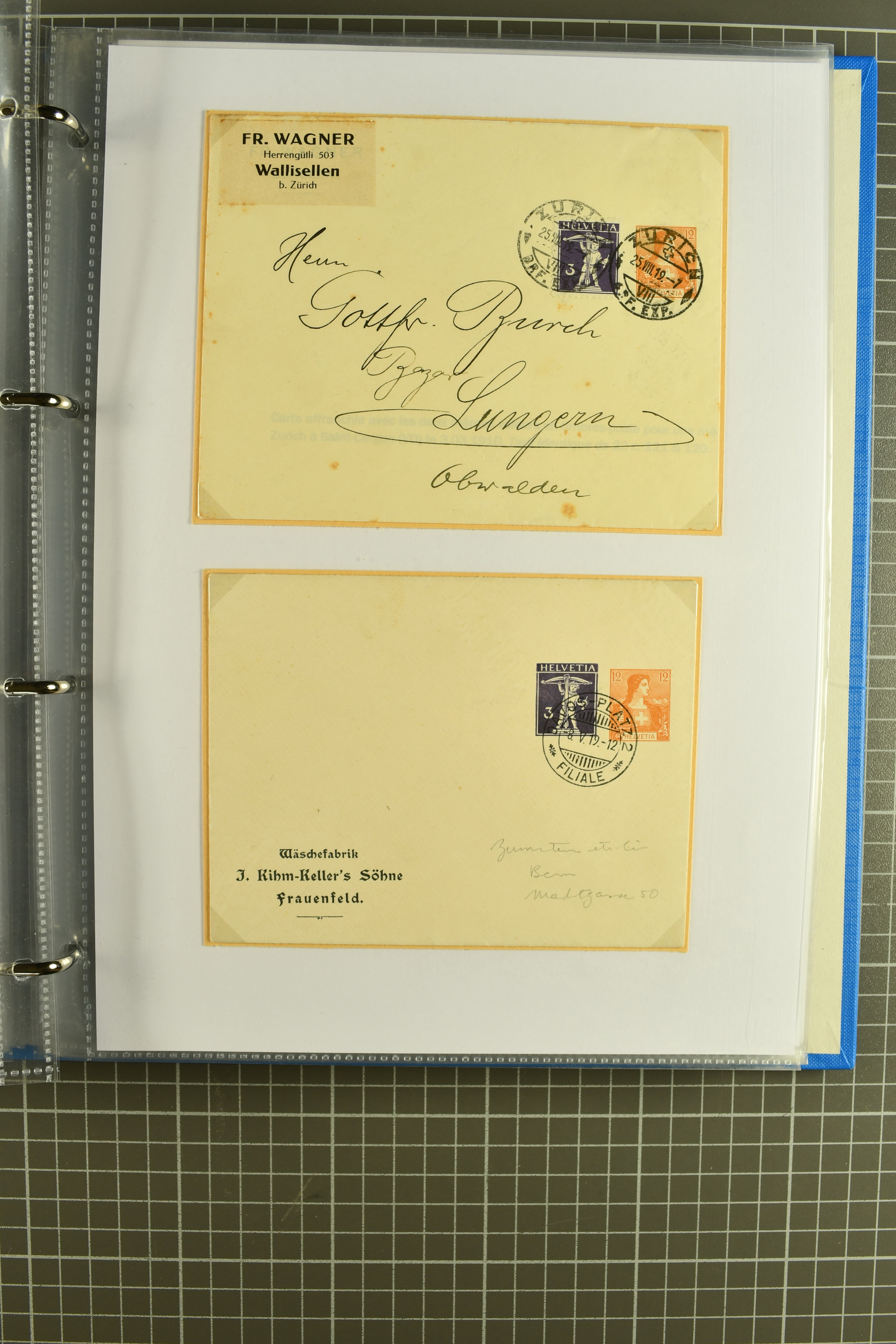 1907/1930ca.: Privatganzsachen, zumeist echt gelaufen. Sammlung mit Schwerpunkt Umschläge verschiedener Absenderfirmen (darunter auch Briefmarkenhändler). Enthalten u. a. seltene Gerichts-Zustellungsurkunde 10 Rp.