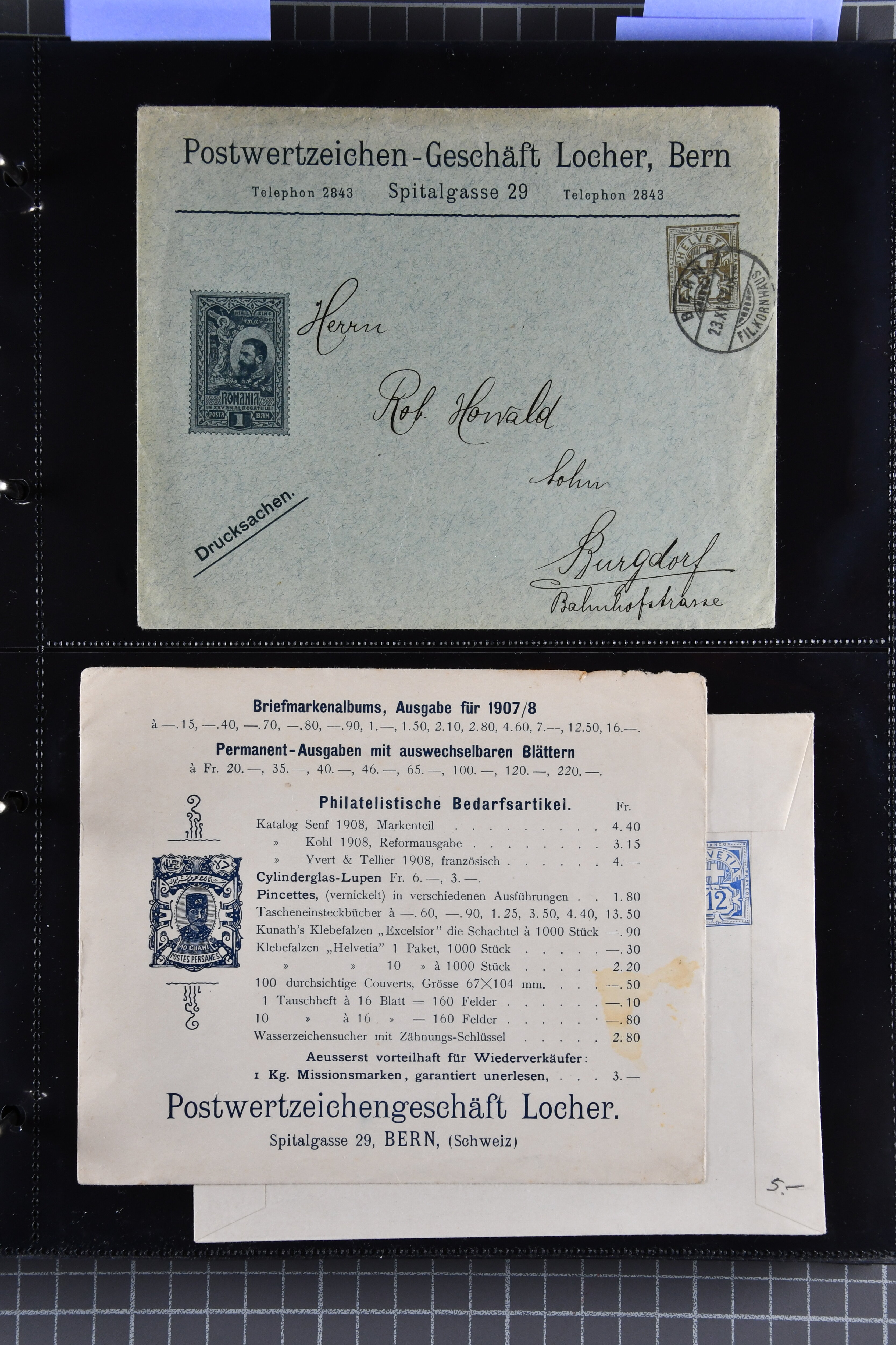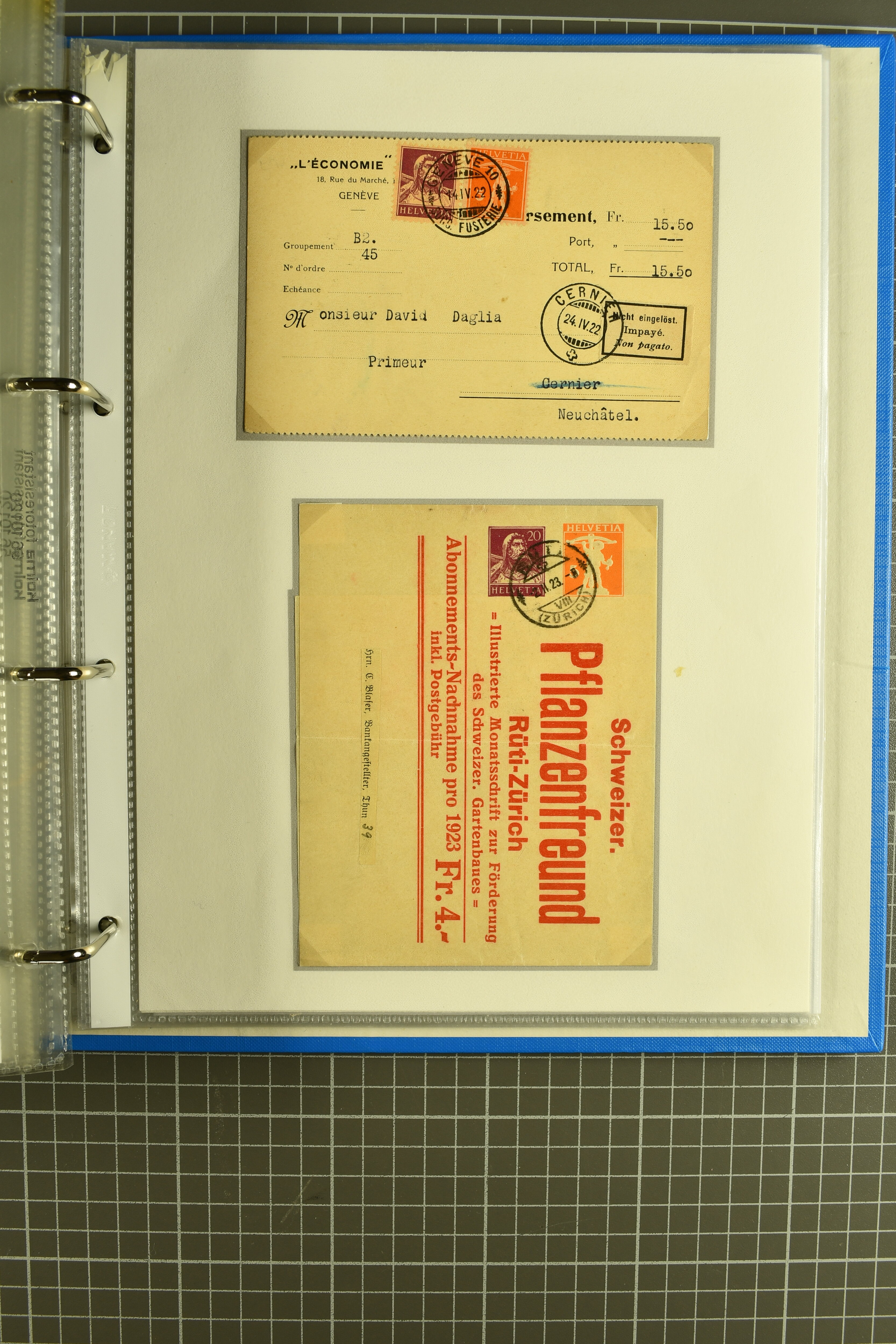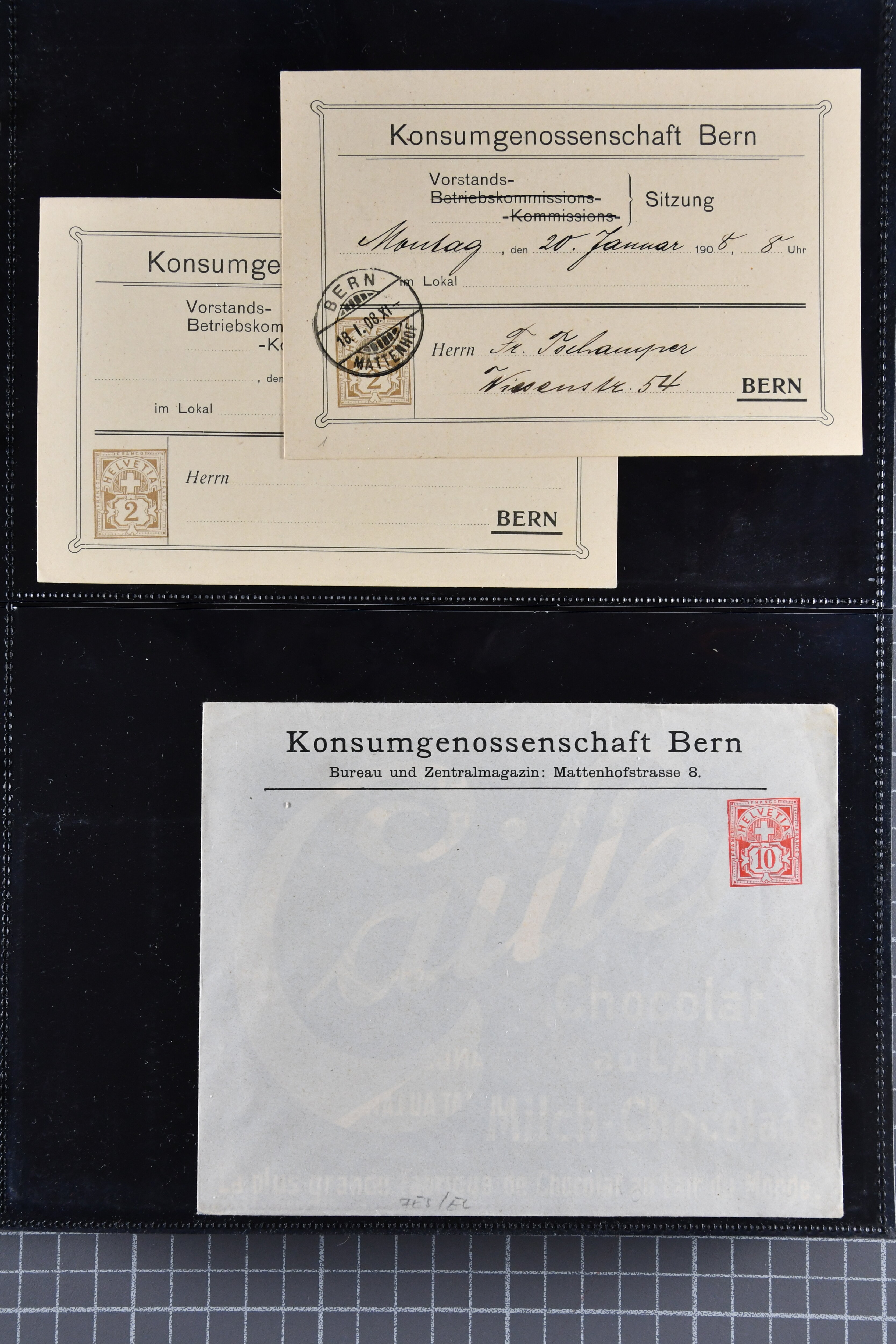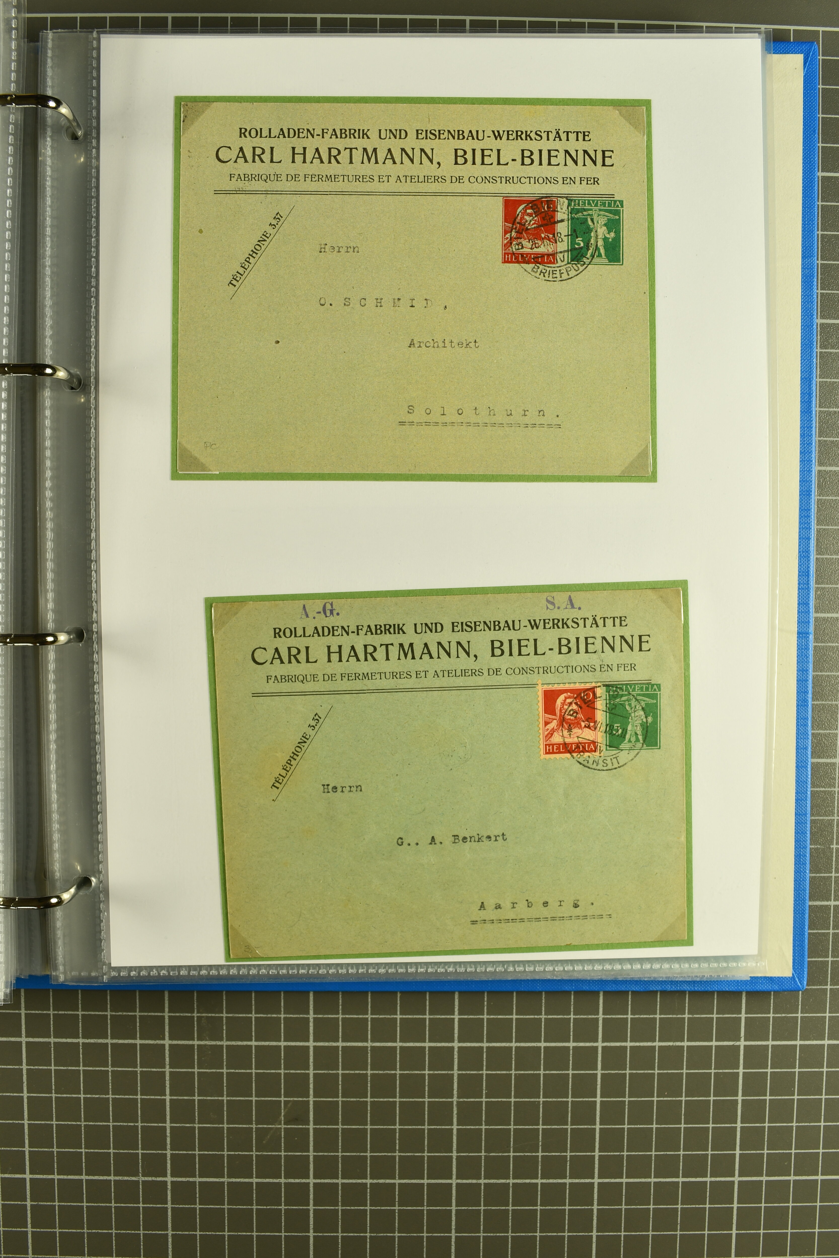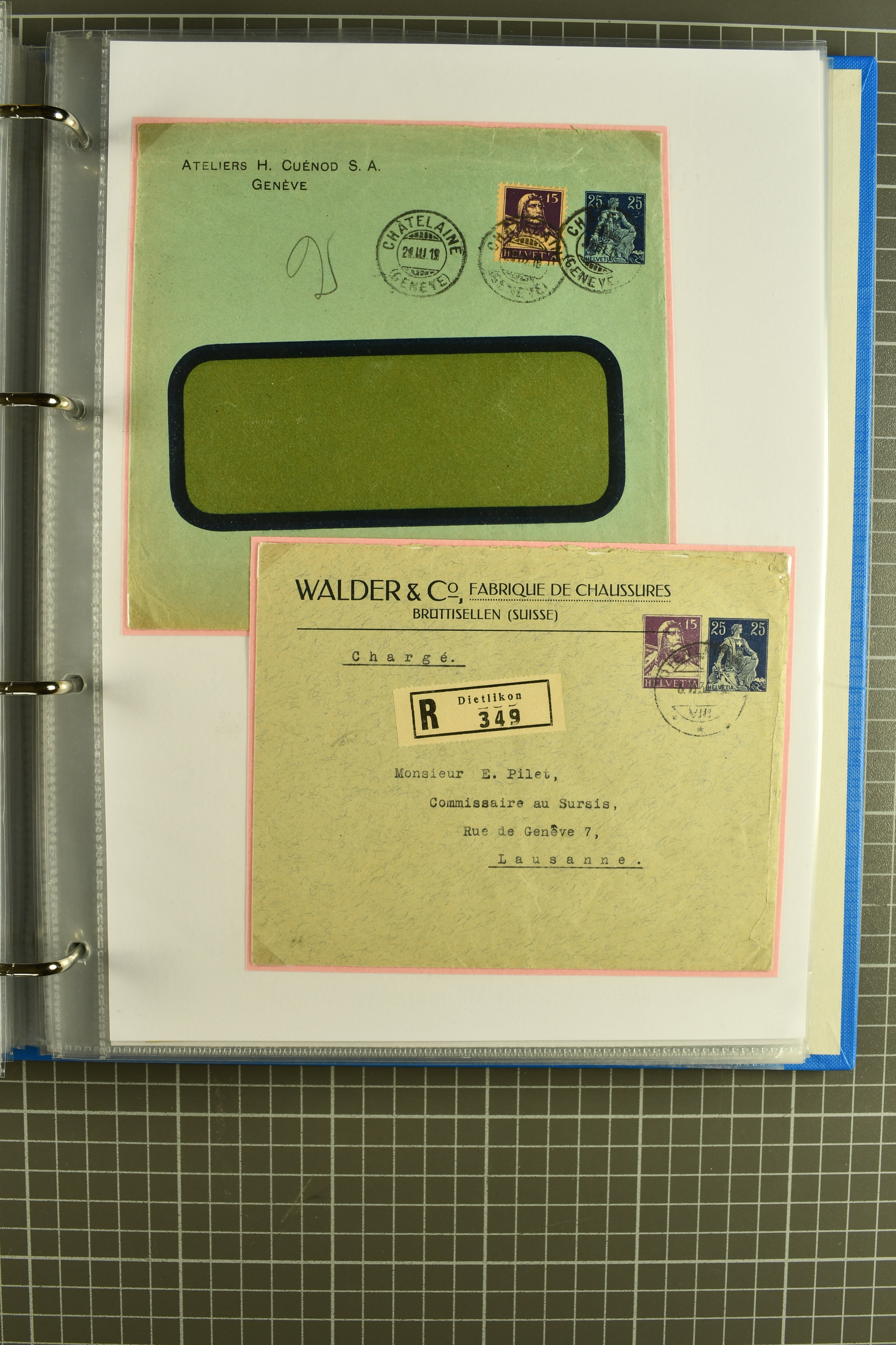 1907/1930ca.: Privatganzsachen, zumeist echt gelaufen. Sammlung mit Schwerpunkt Umschläge verschiedener Absenderfirmen (darunter auch Briefmarkenhändler). Enthalten u. a. seltene Gerichts-Zustellungsurkunde 10 Rp.